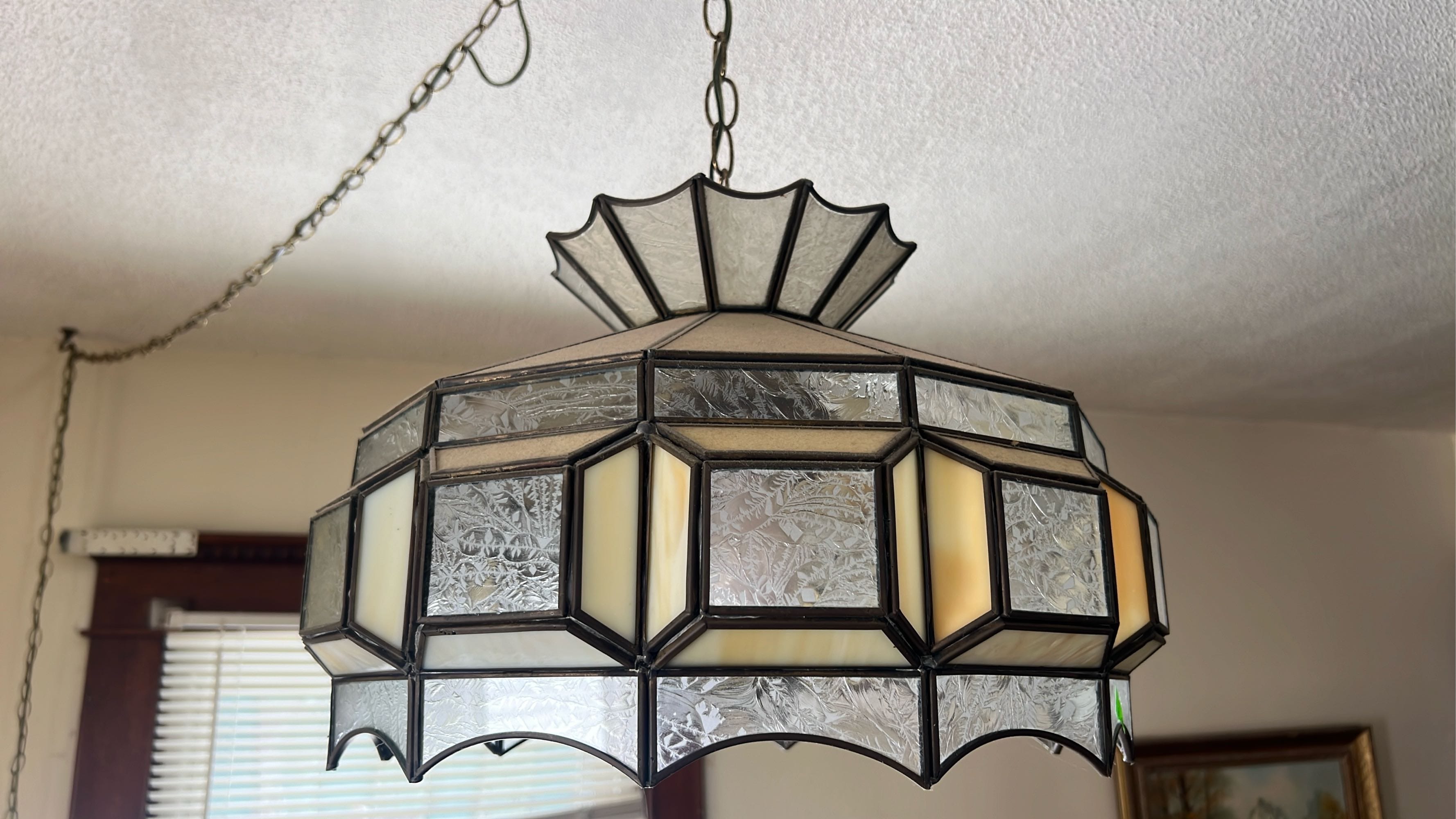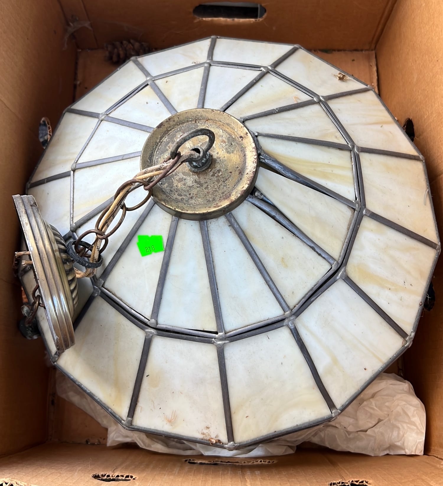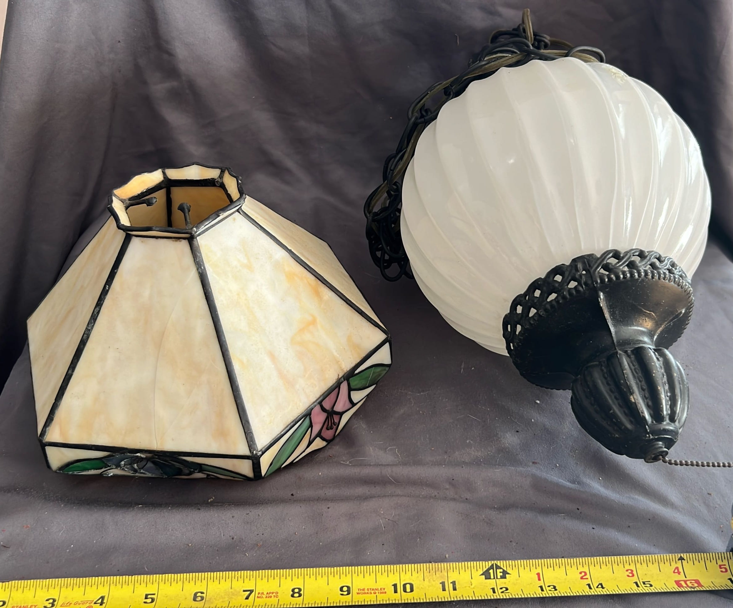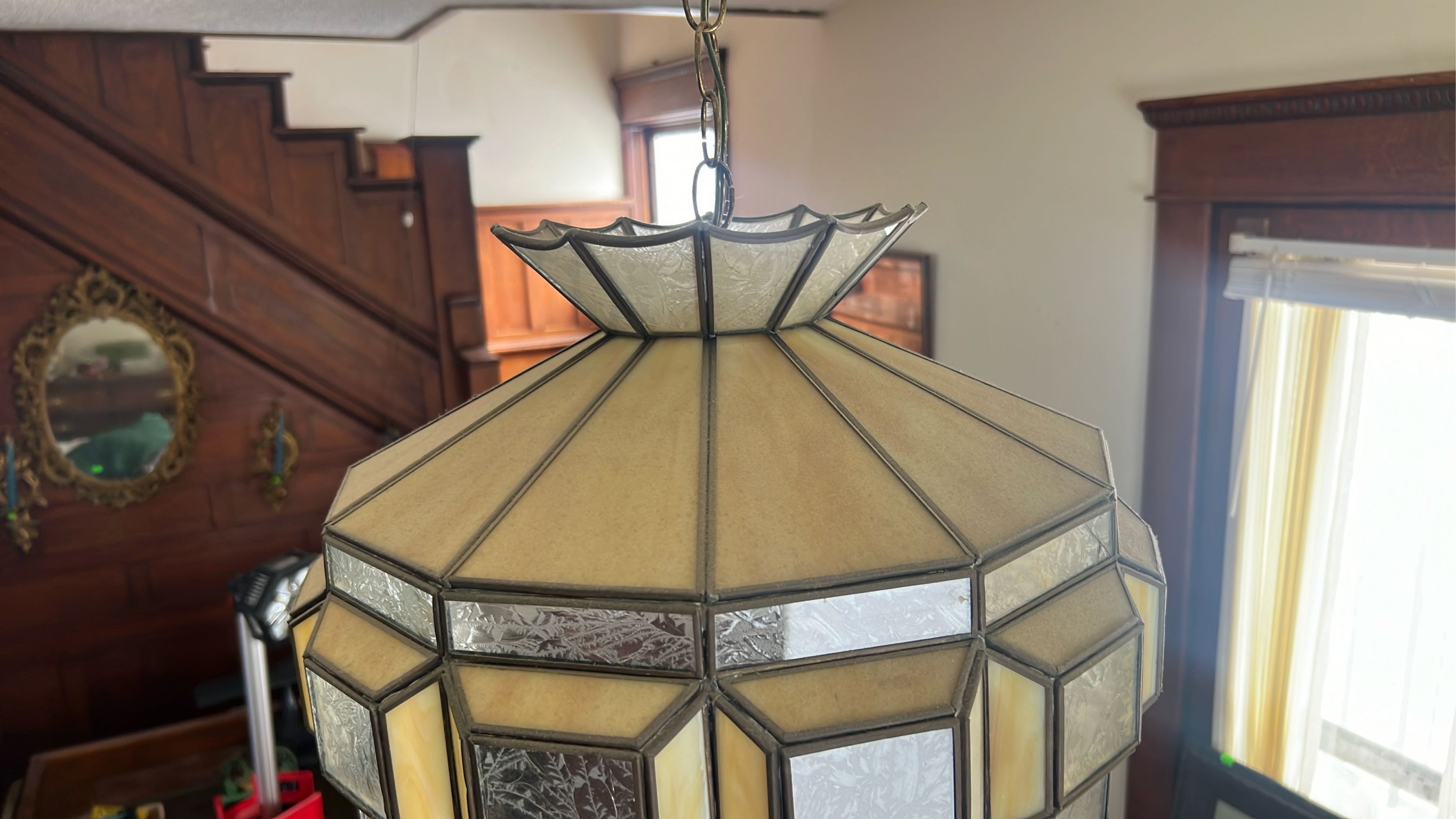 33 Hanging Light with Frosted & Stained Glass Panels 16”