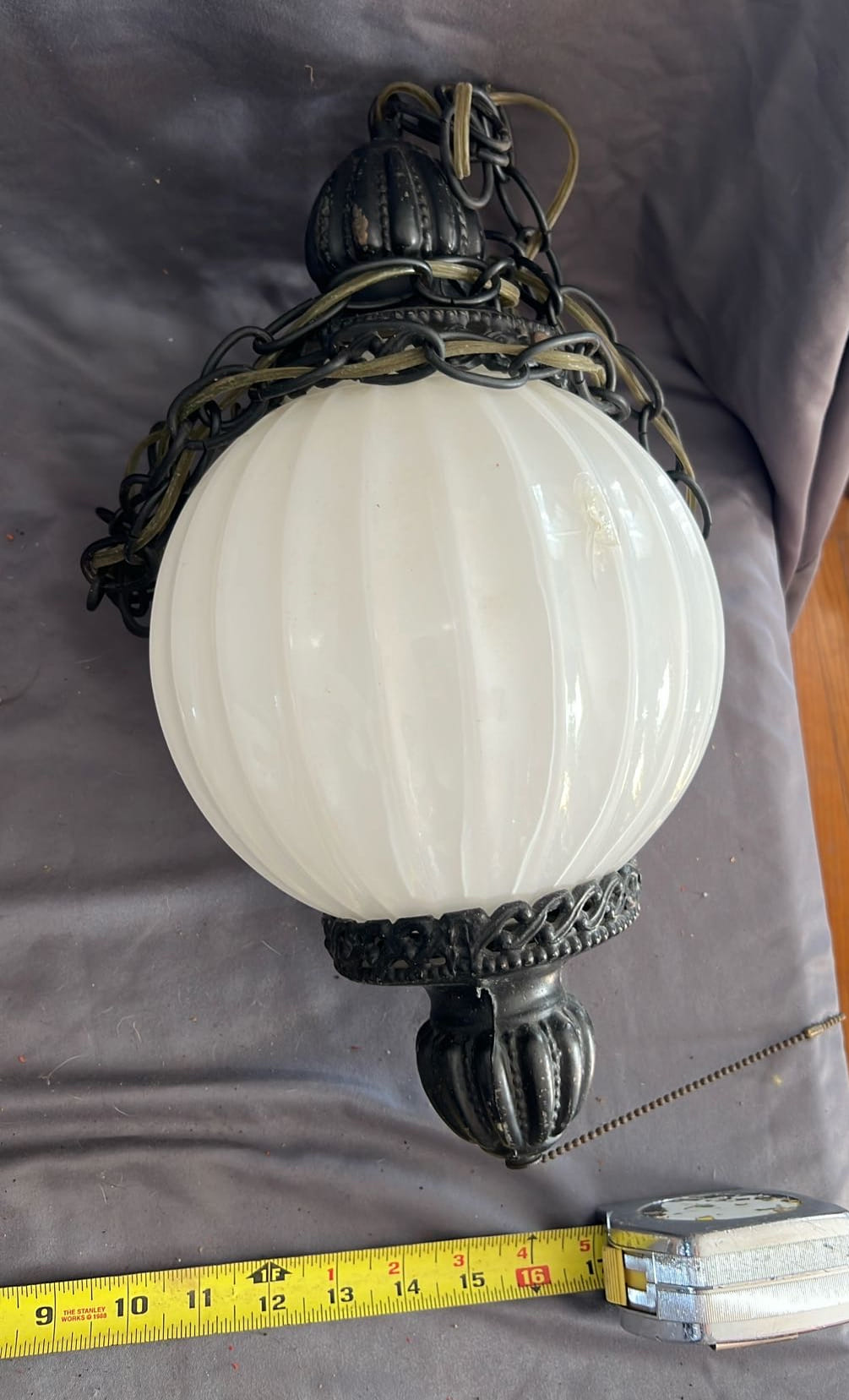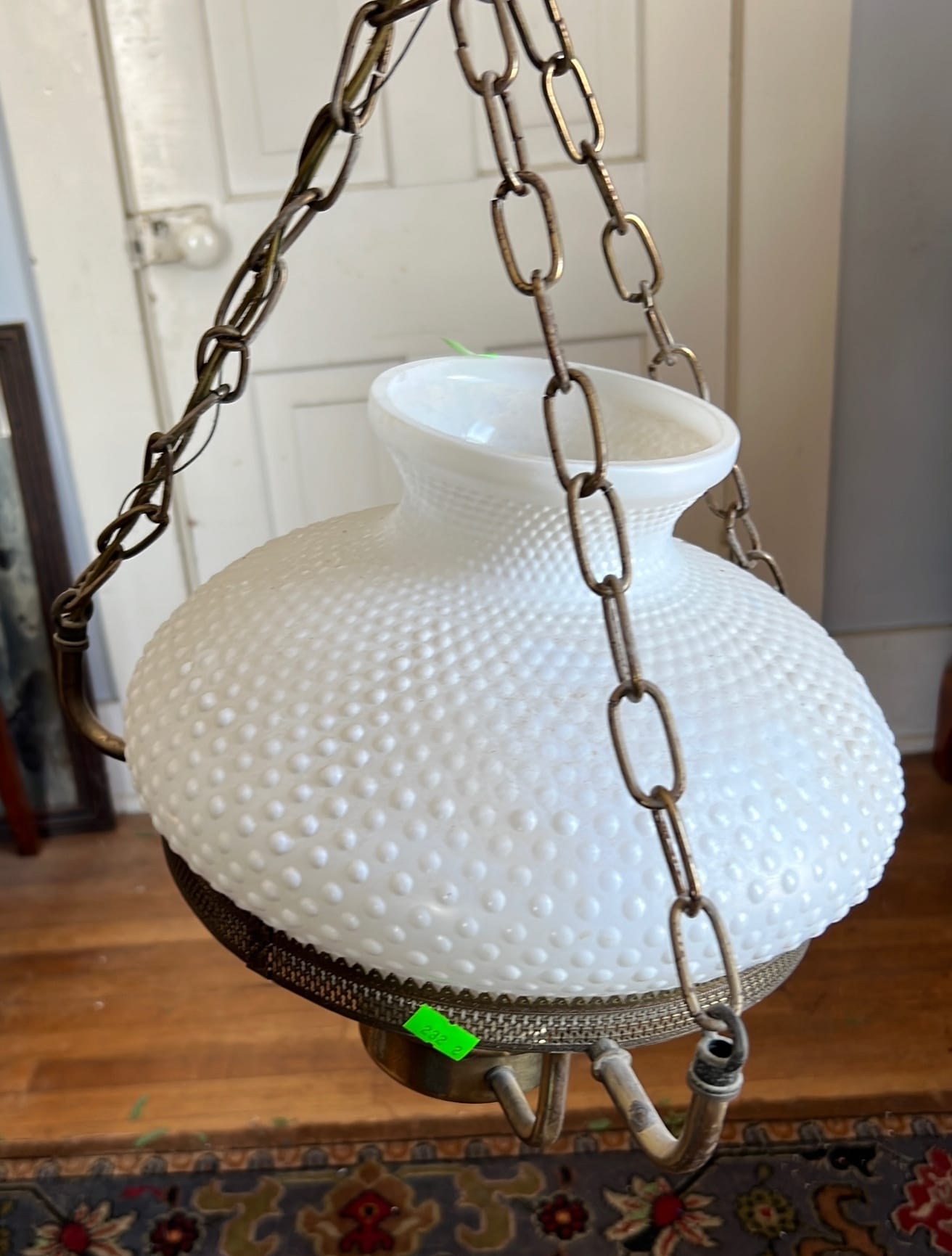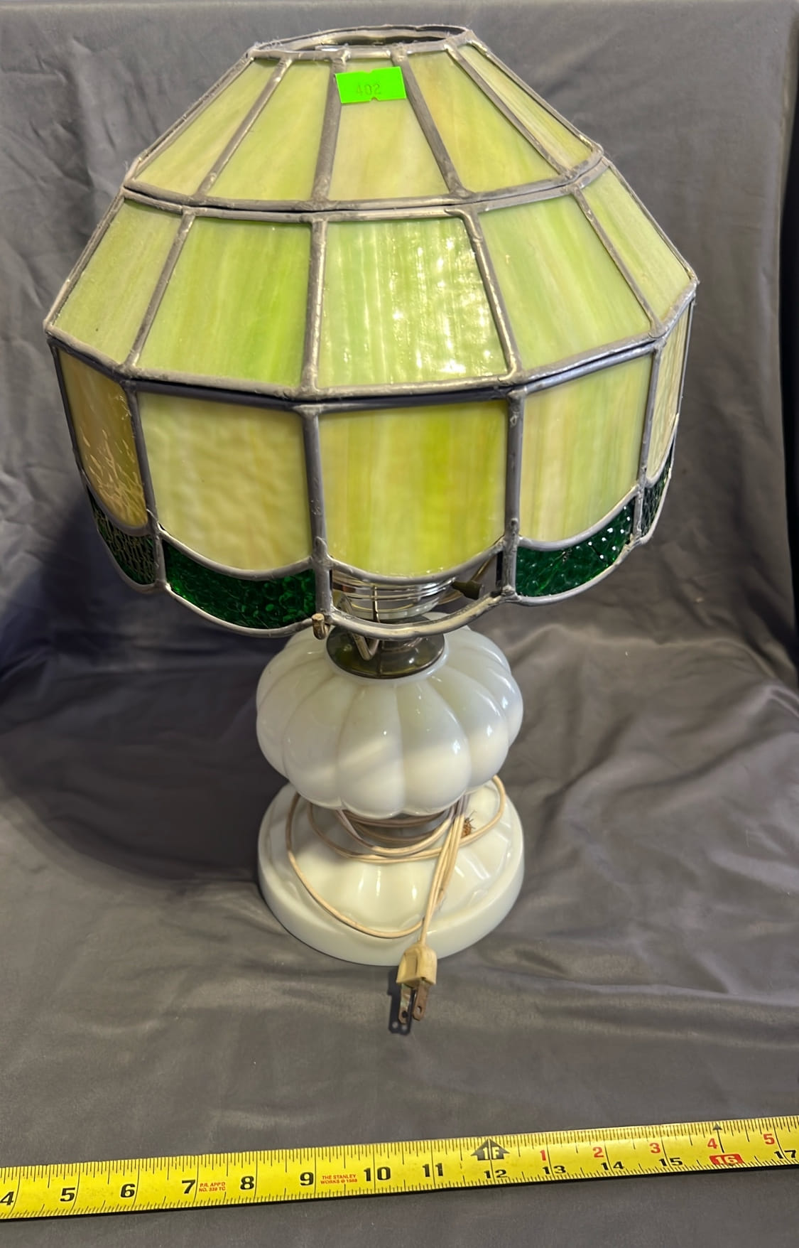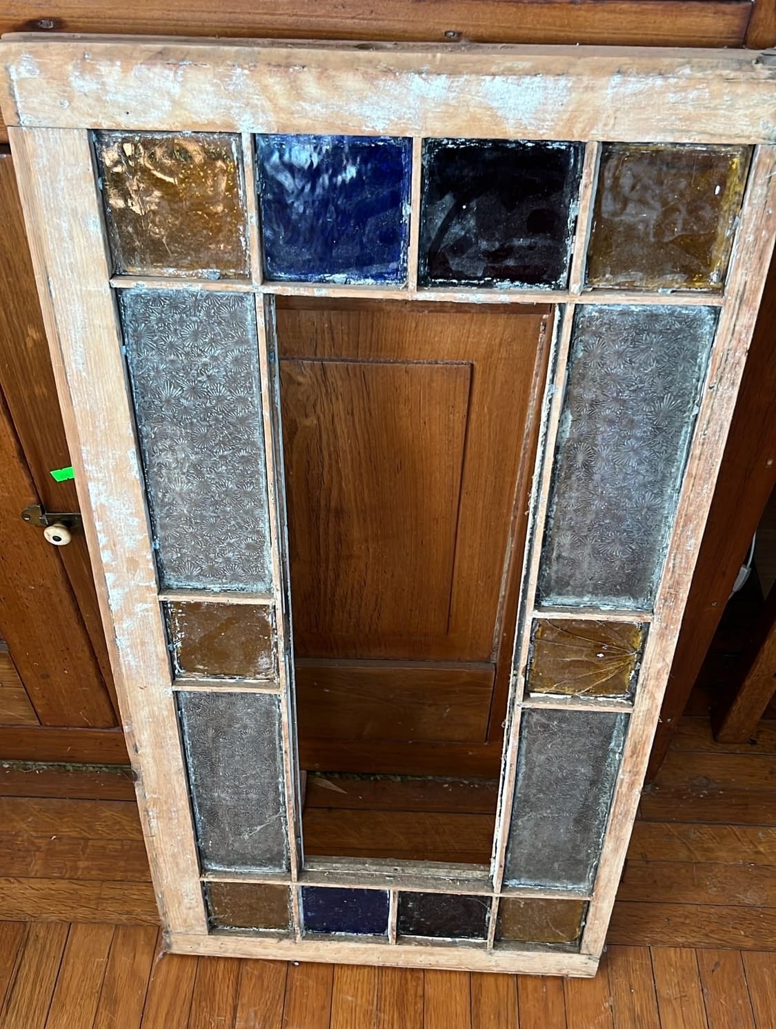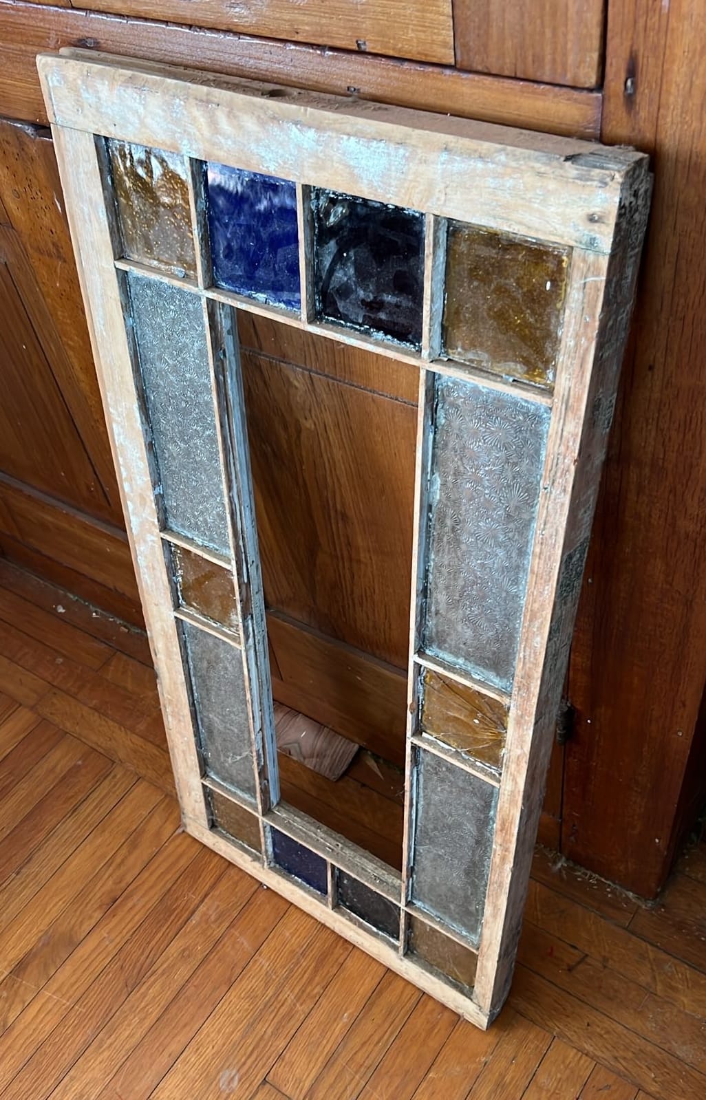 33 Hanging Light with Frosted & Stained Glass Panels 16”