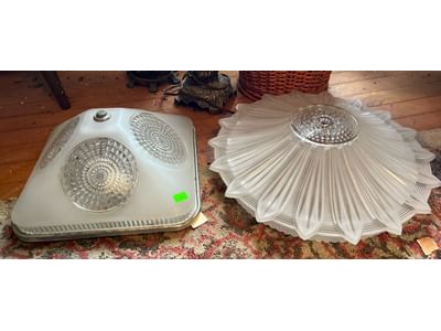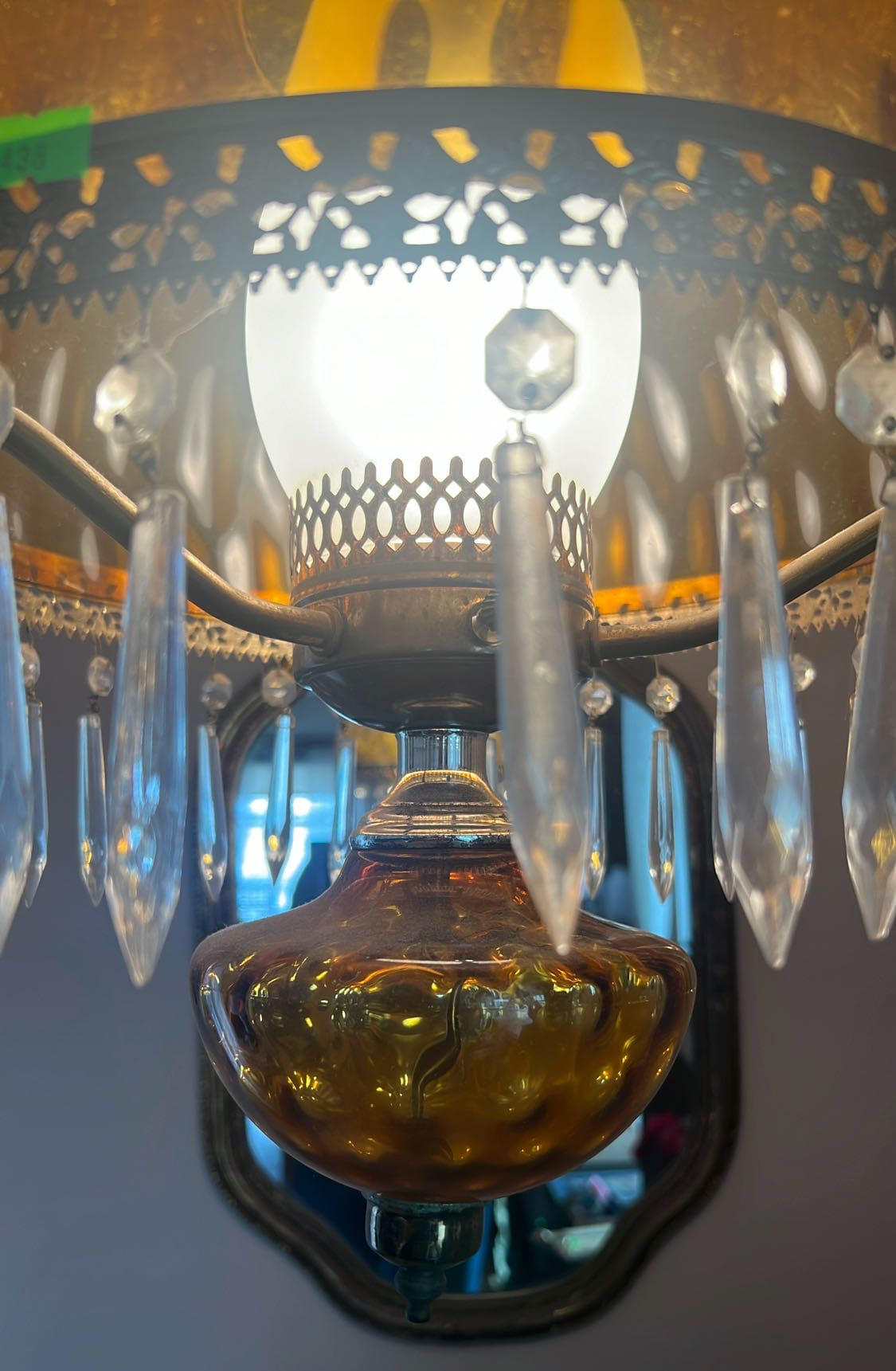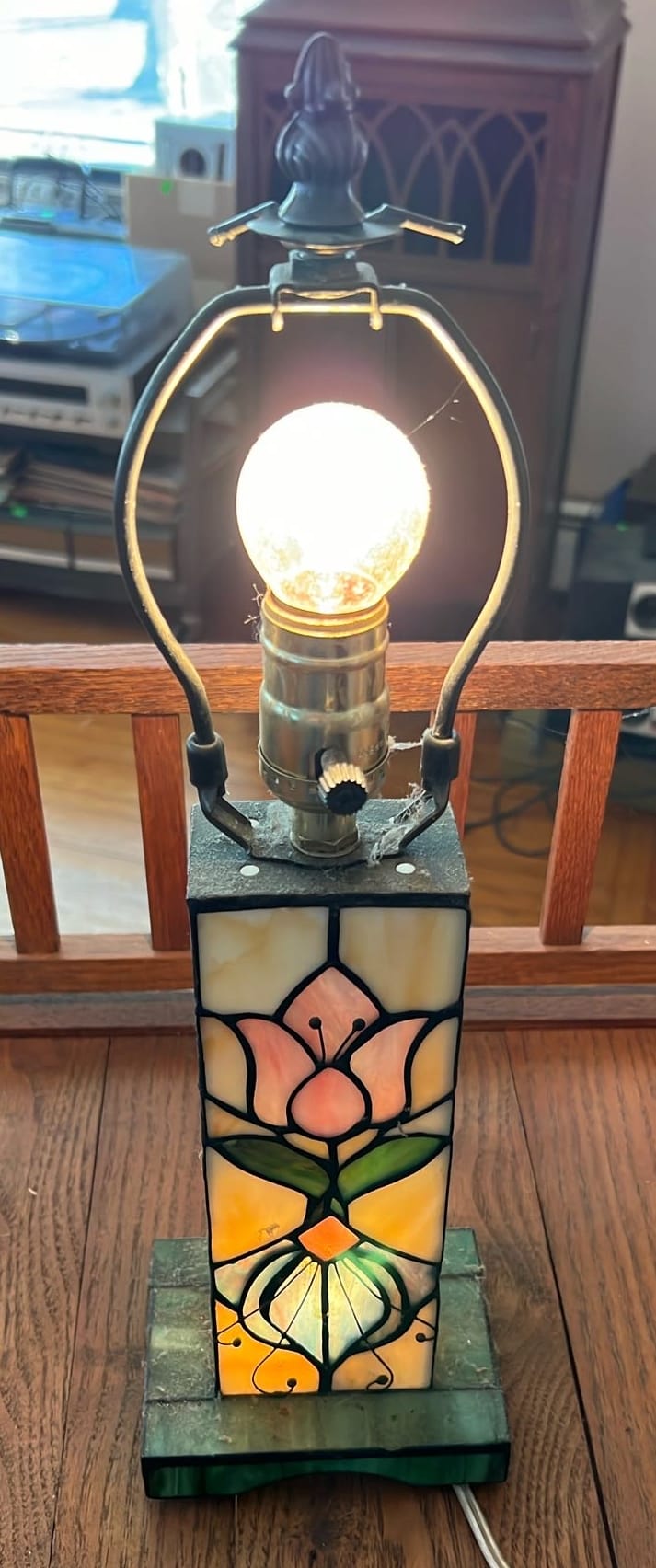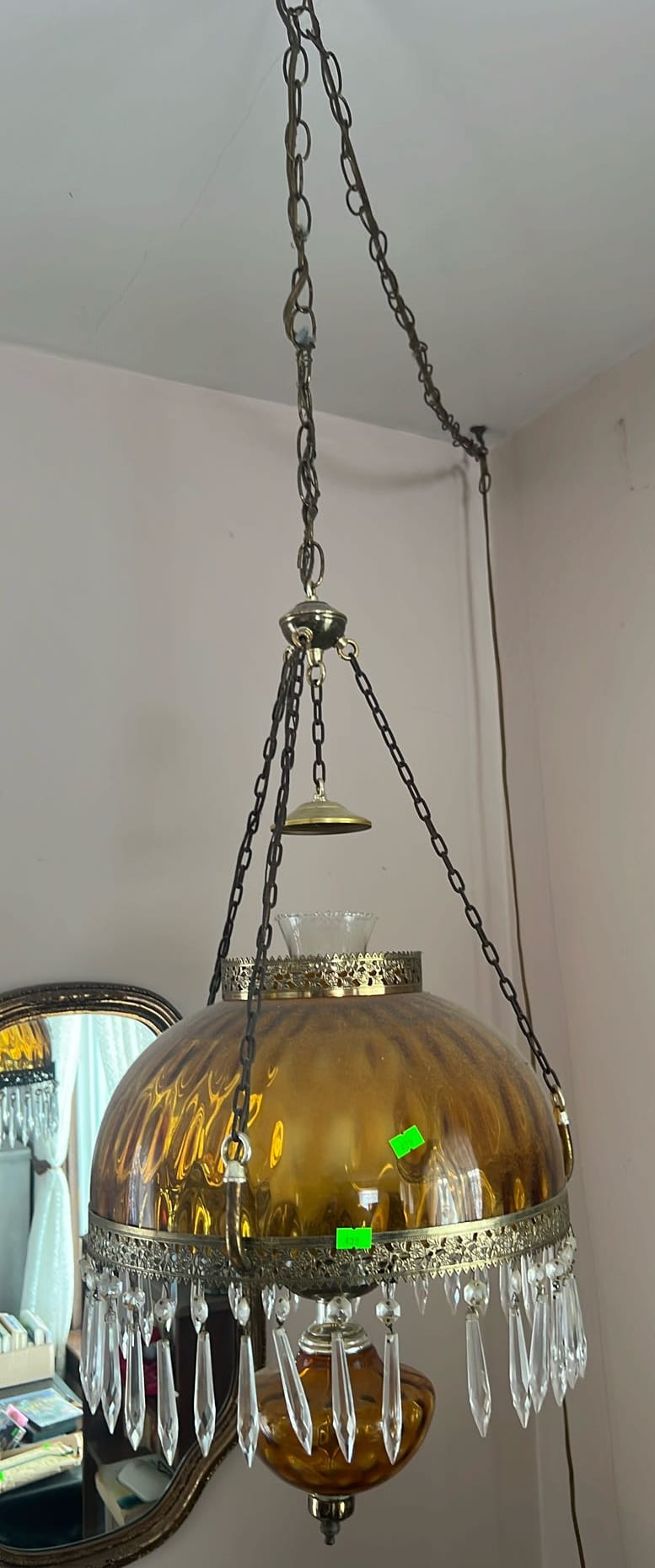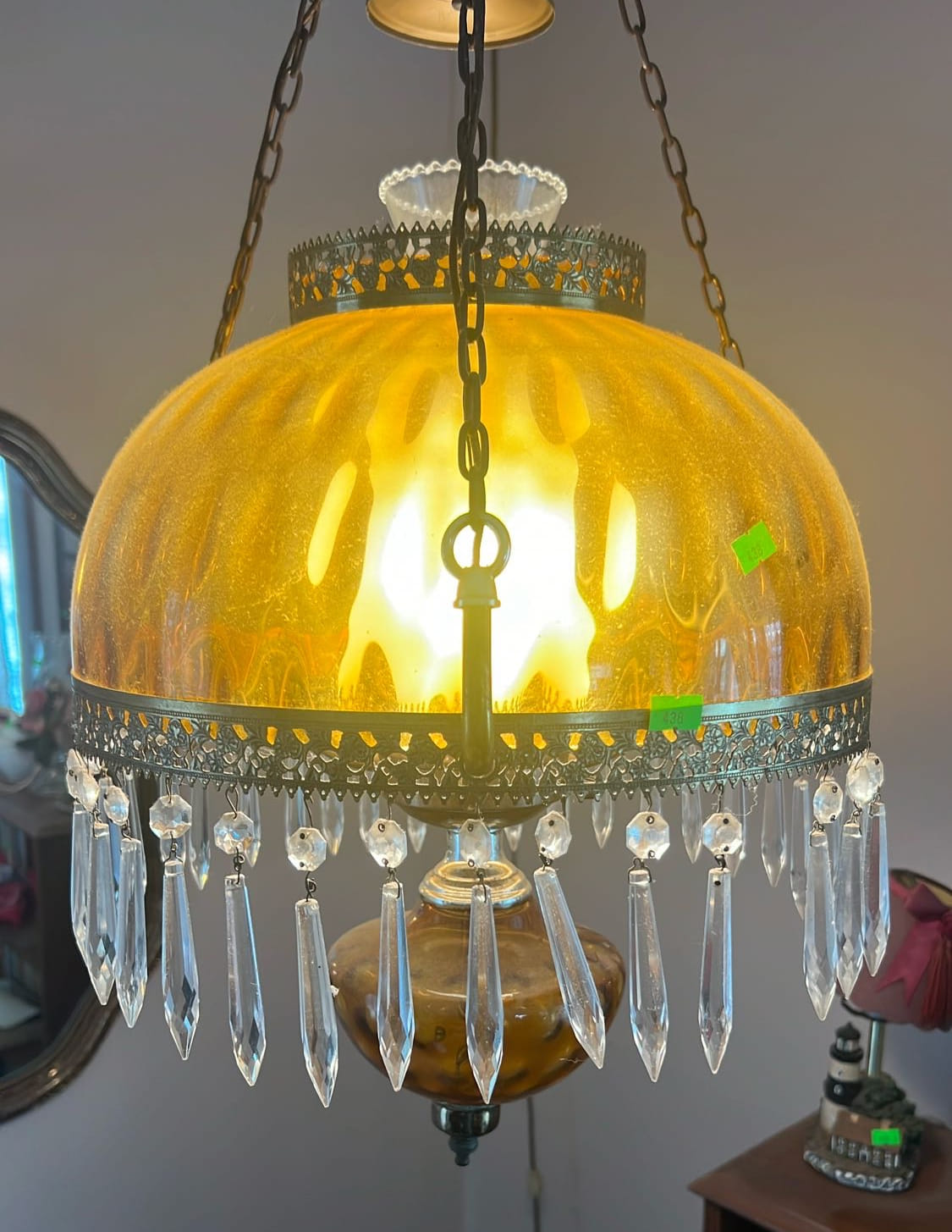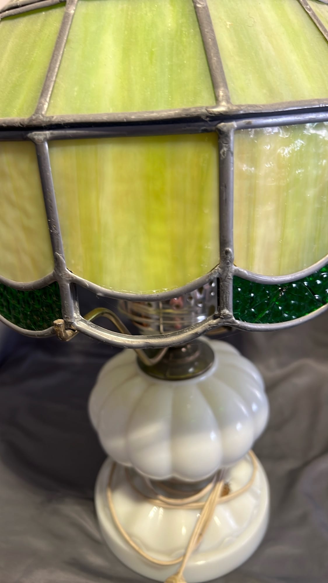 33 Hanging Light with Frosted & Stained Glass Panels 16”
