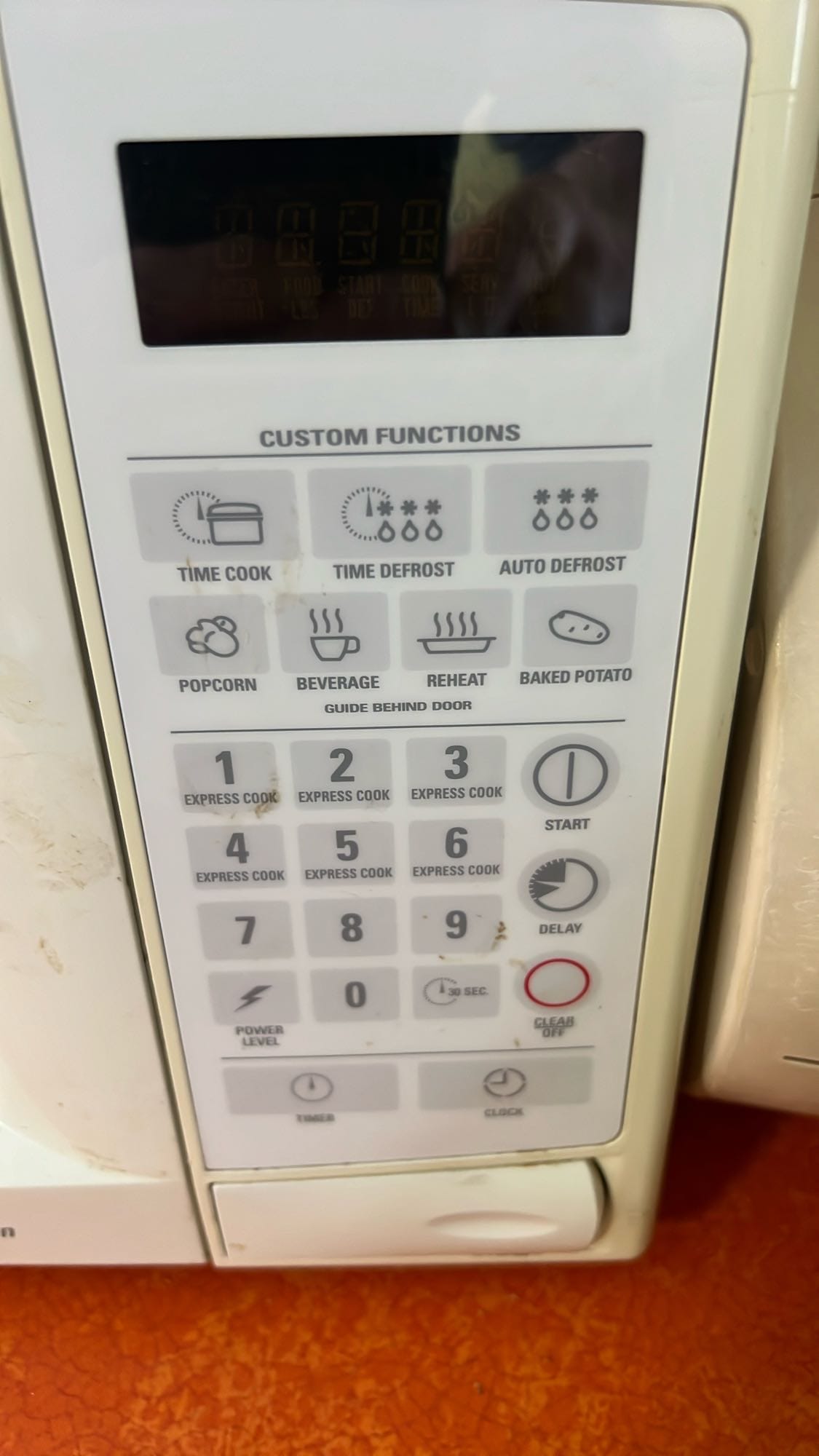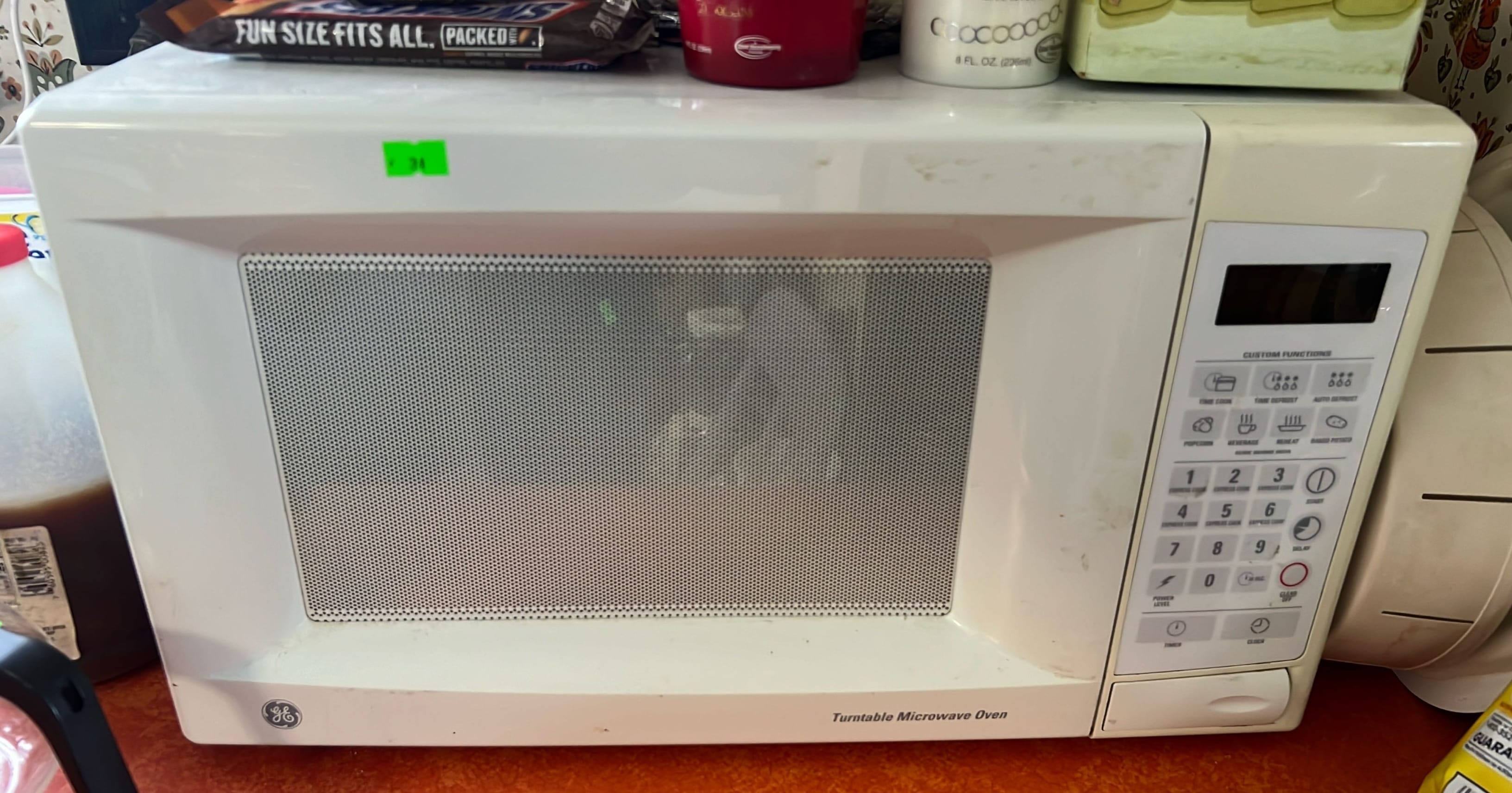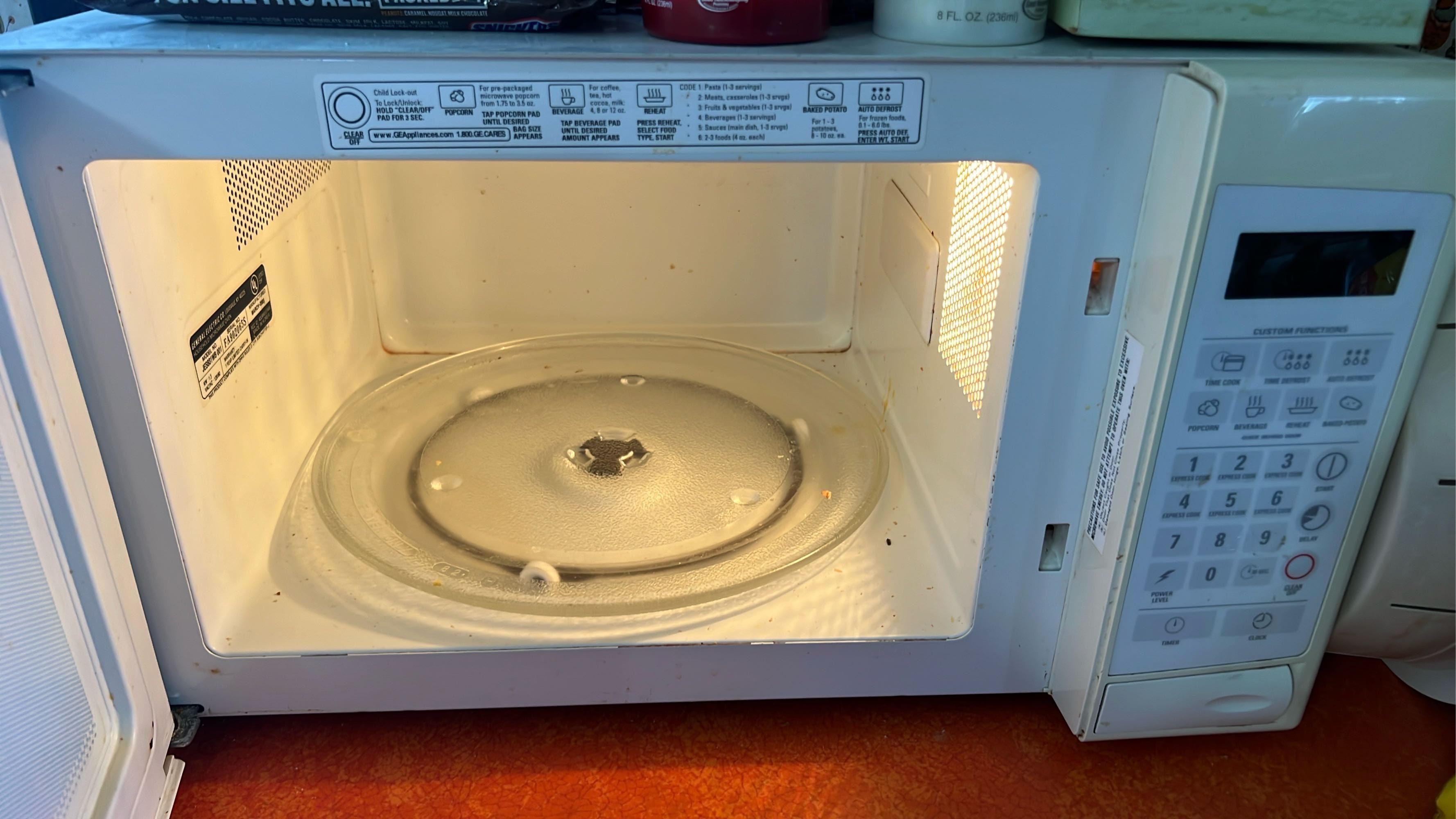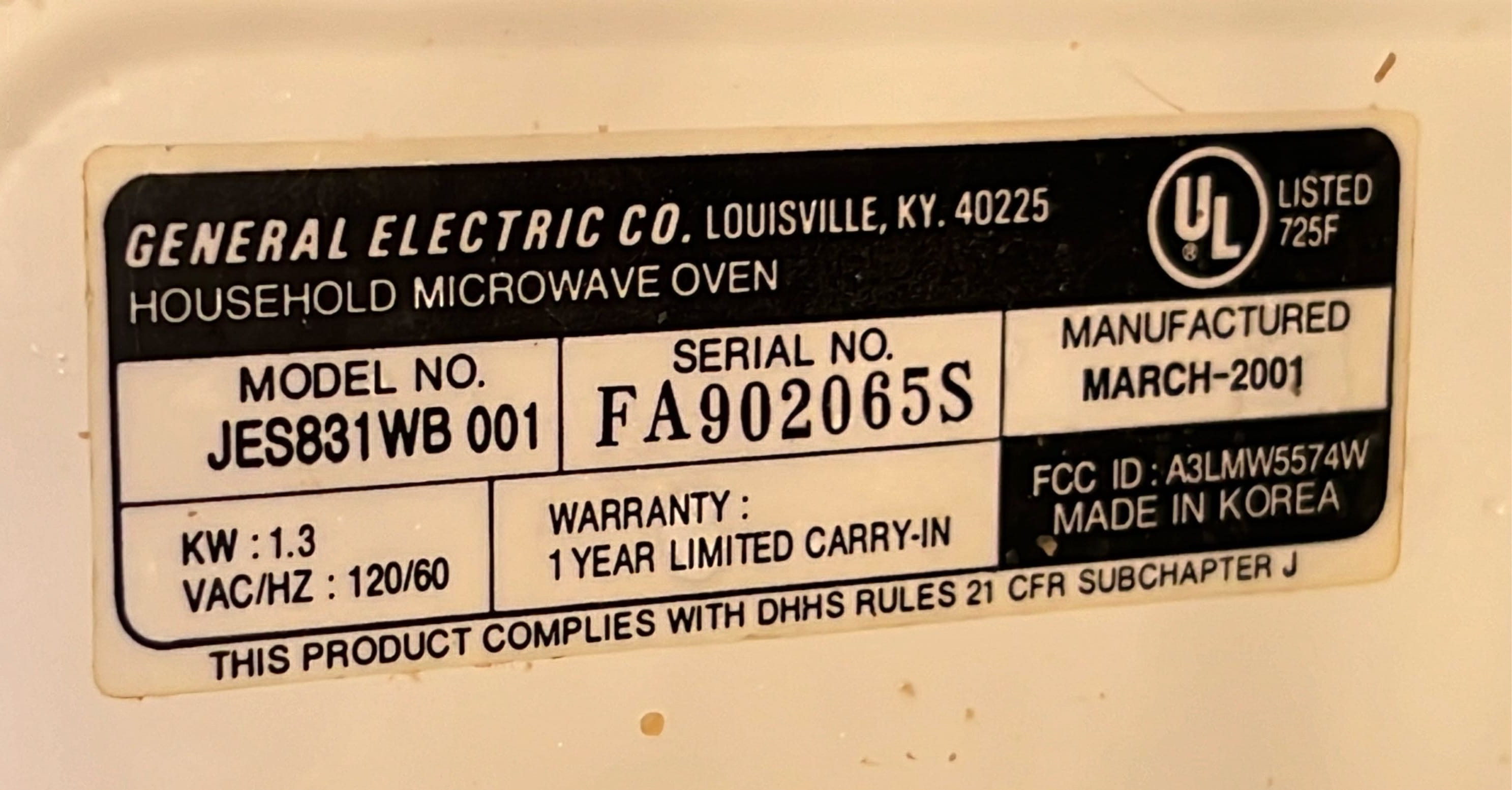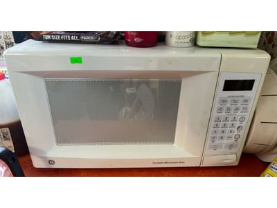 34 General Electric Turntable Microwave Oven with accessories - Model #JES831WB001 - 20.5”x11.5”x14”, works