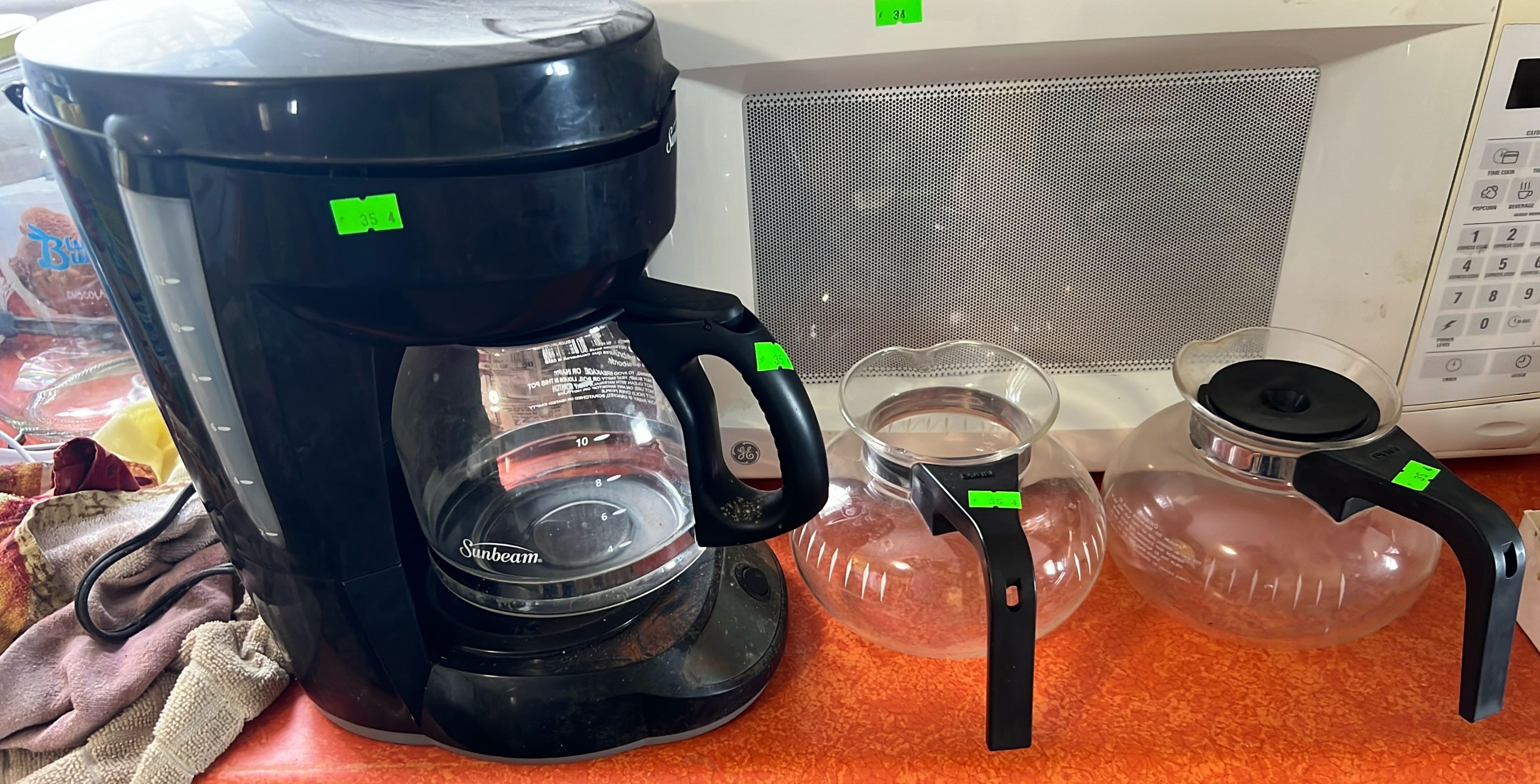 35 Sunbeam 12 Cup Coffee Maker with Carafe & (2) Bun Carafes
