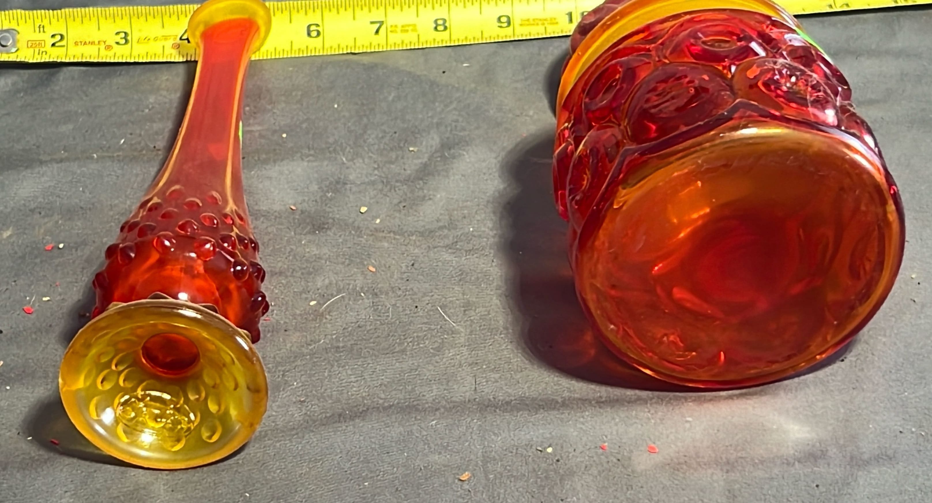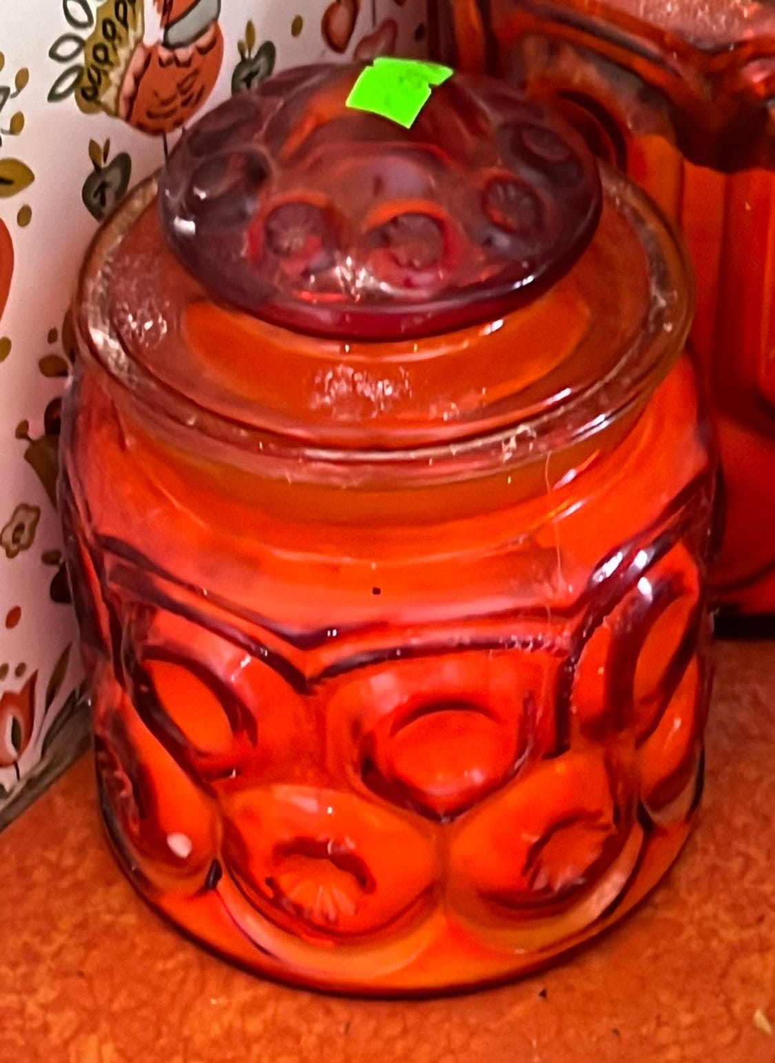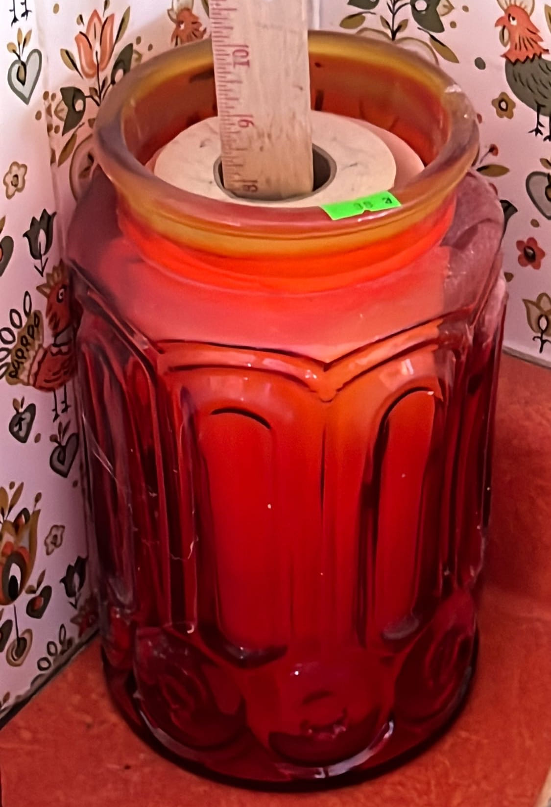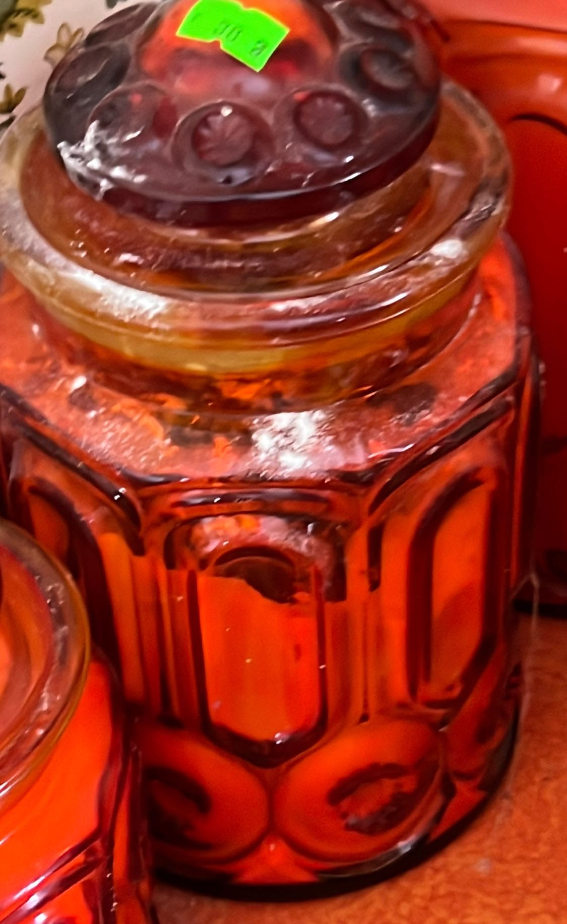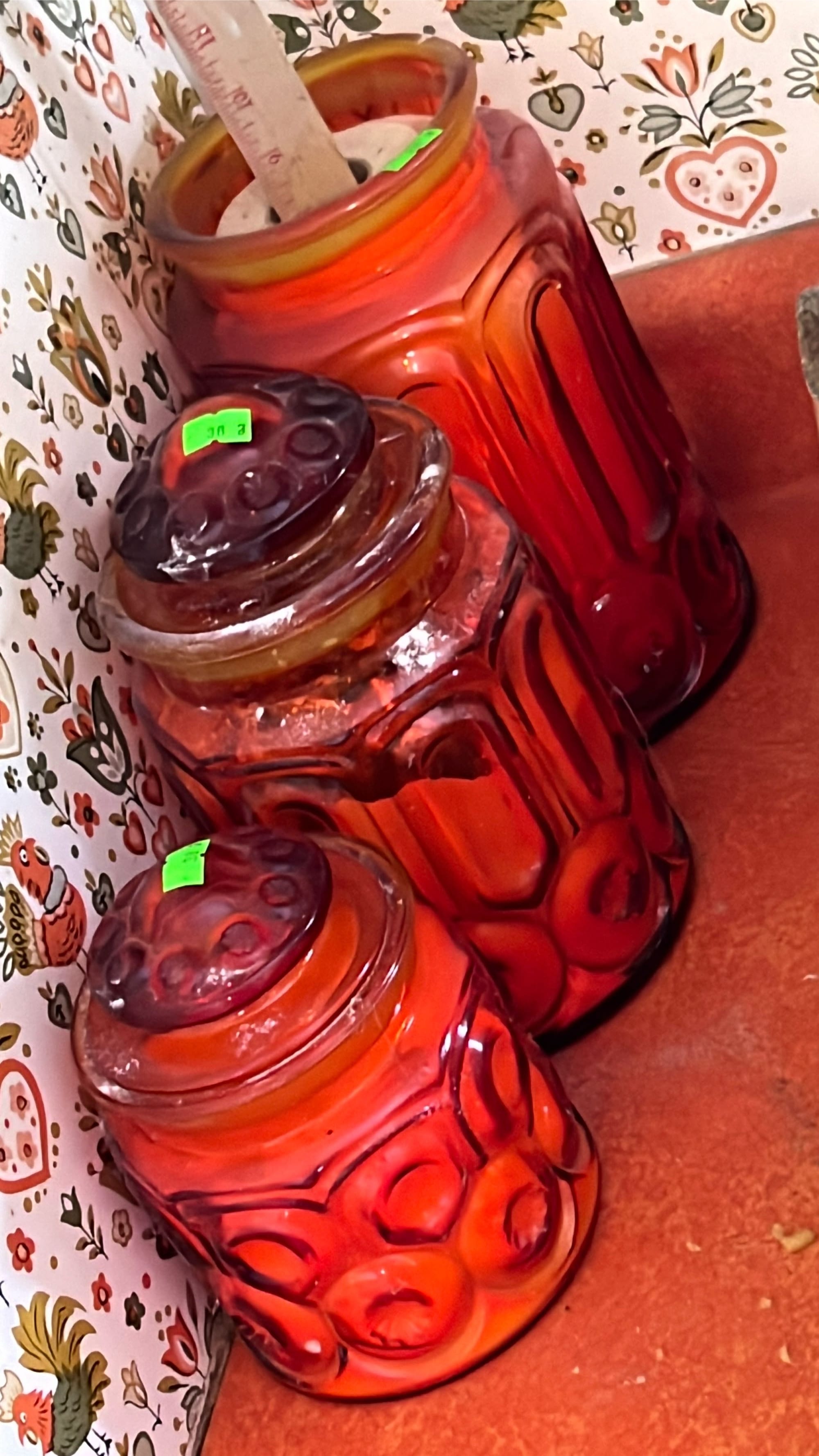 38 Three - Vintage LE Smith Moon and Star Amberina Canisters 7”, 9.5”, 9.5” (large one is missing the lid)