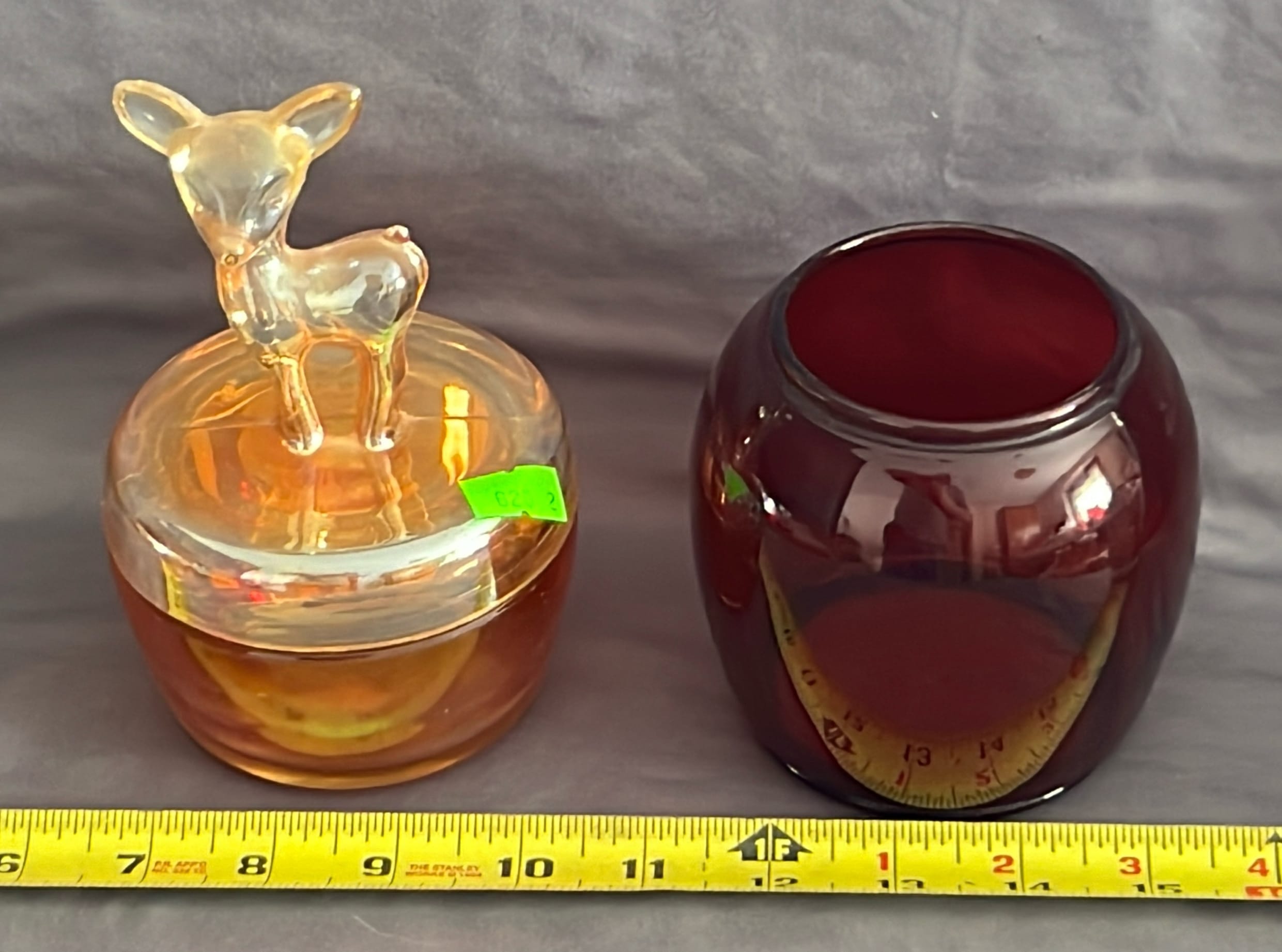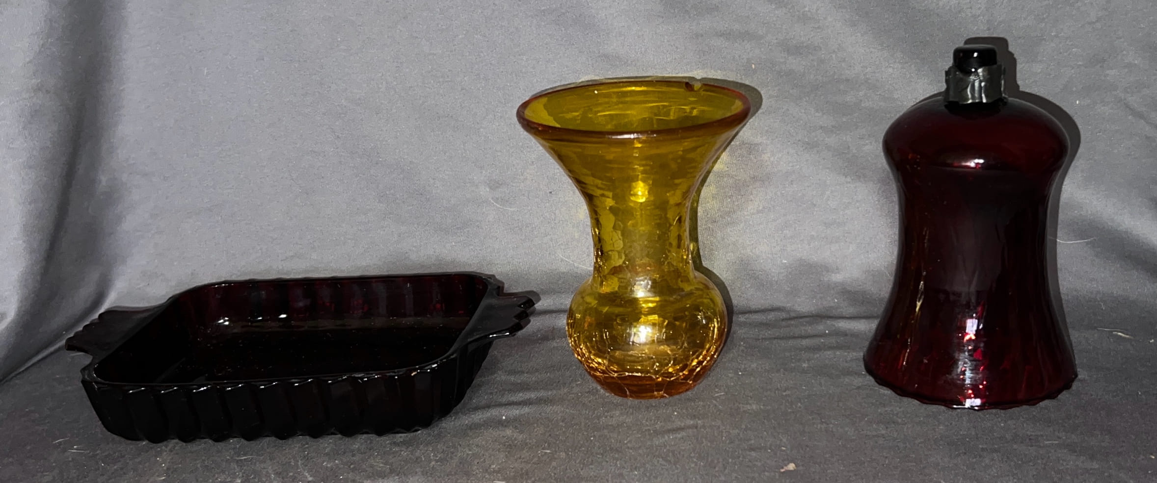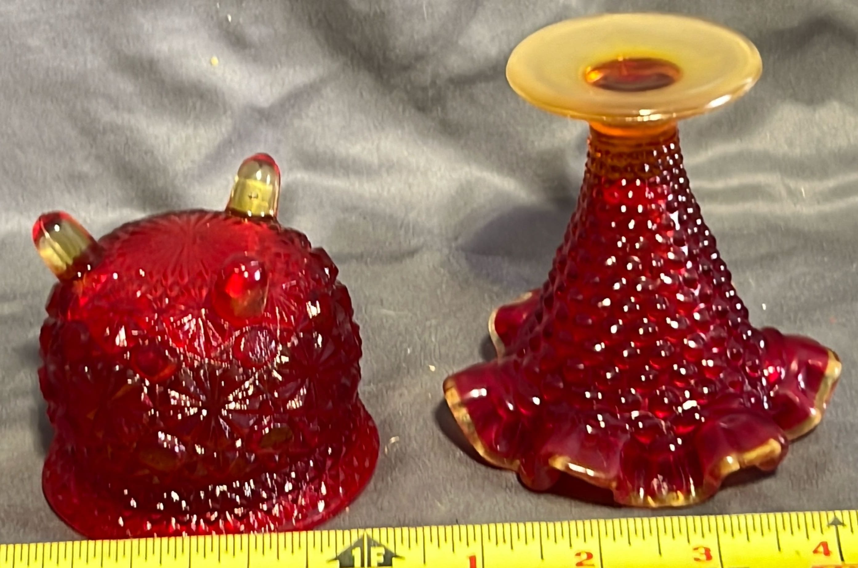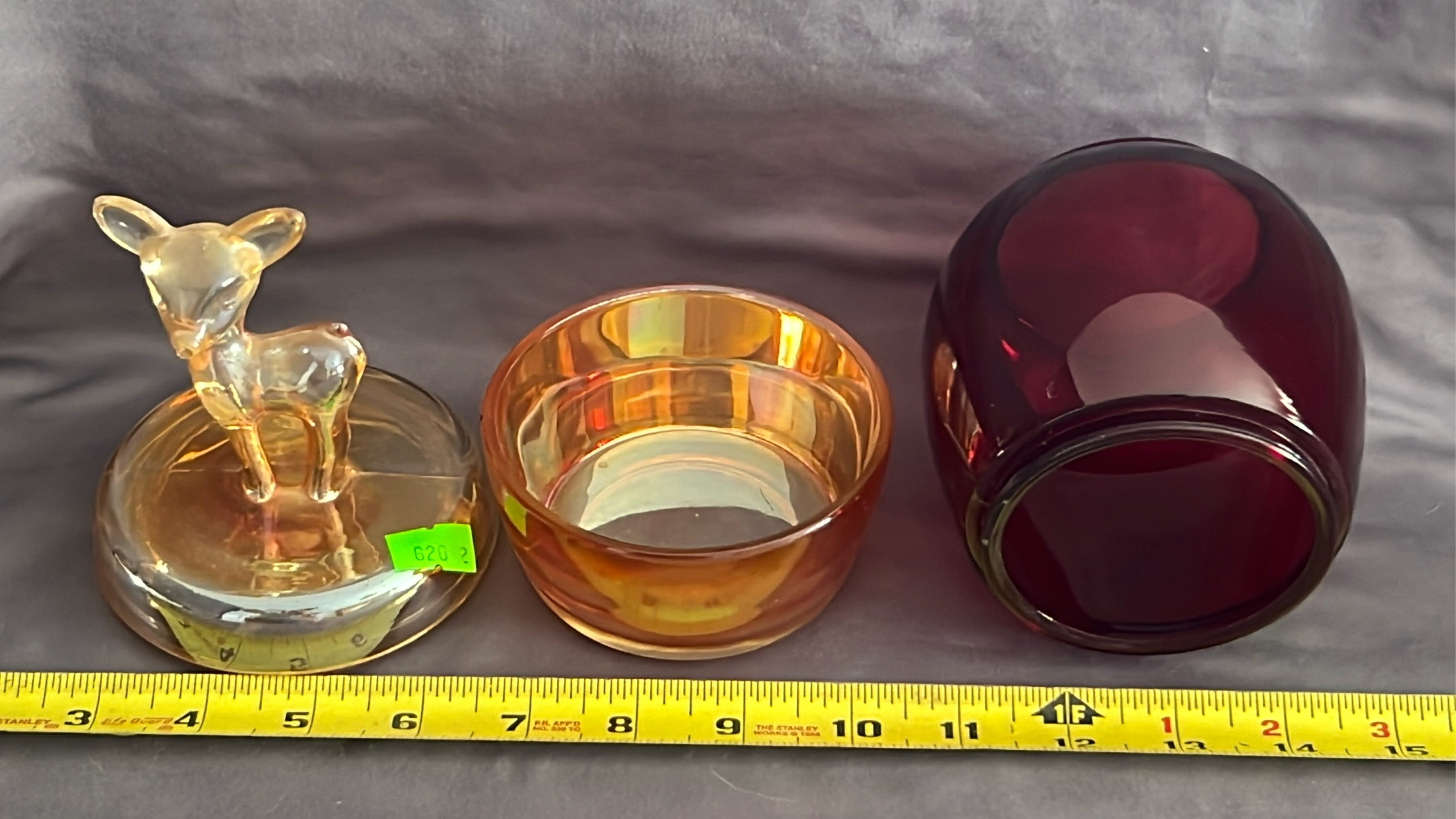 38 Three - Vintage LE Smith Moon and Star Amberina Canisters 7”, 9.5”, 9.5” (large one is missing the lid)