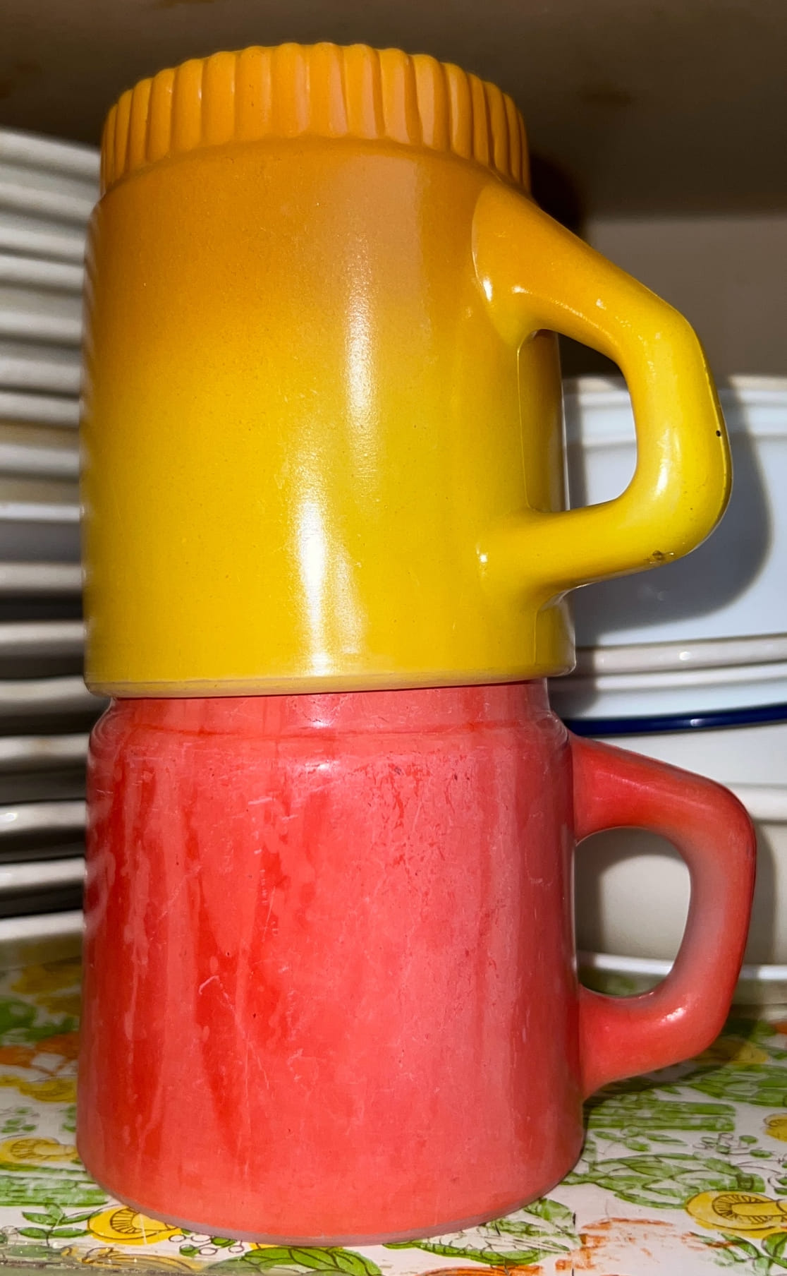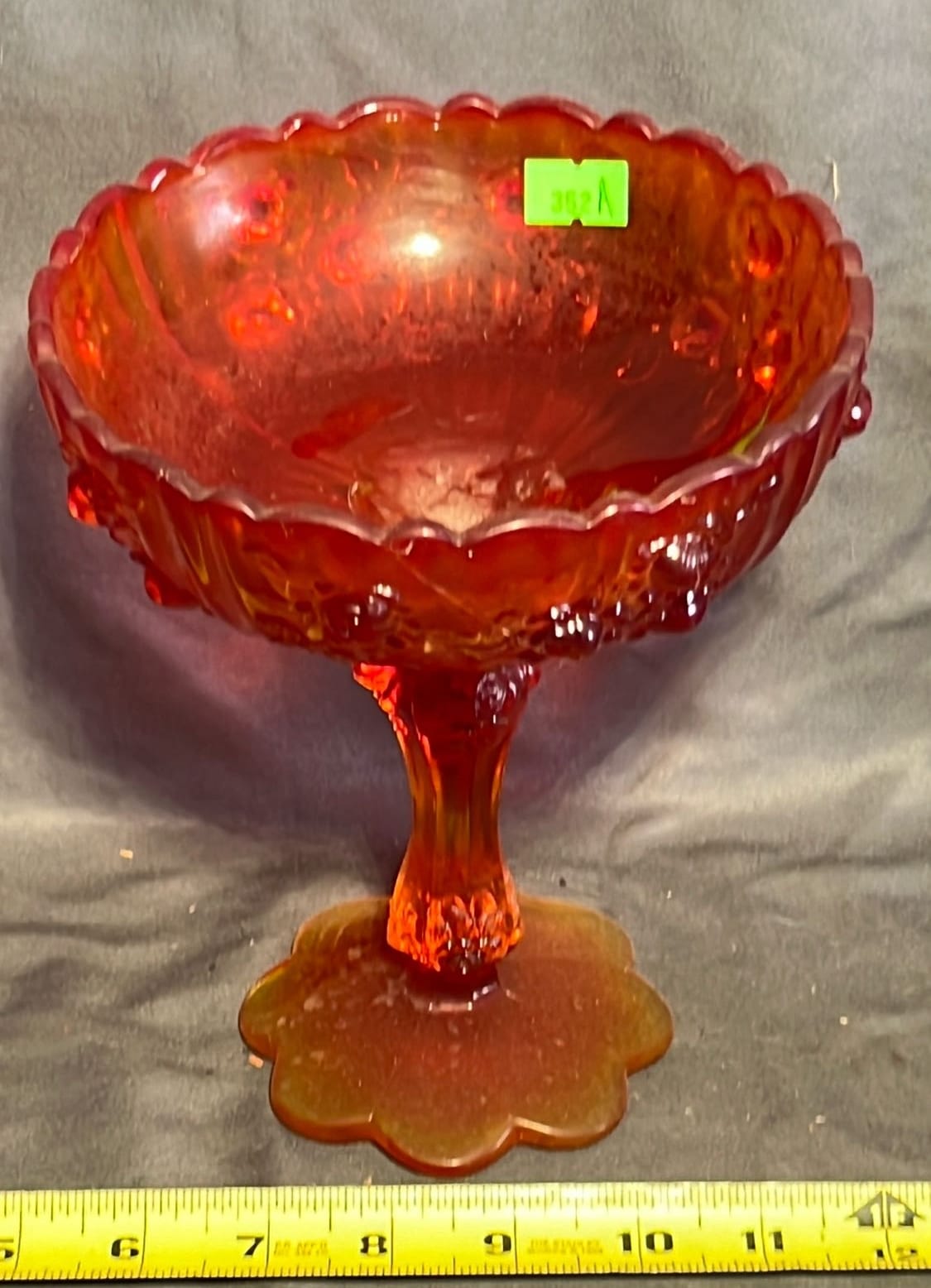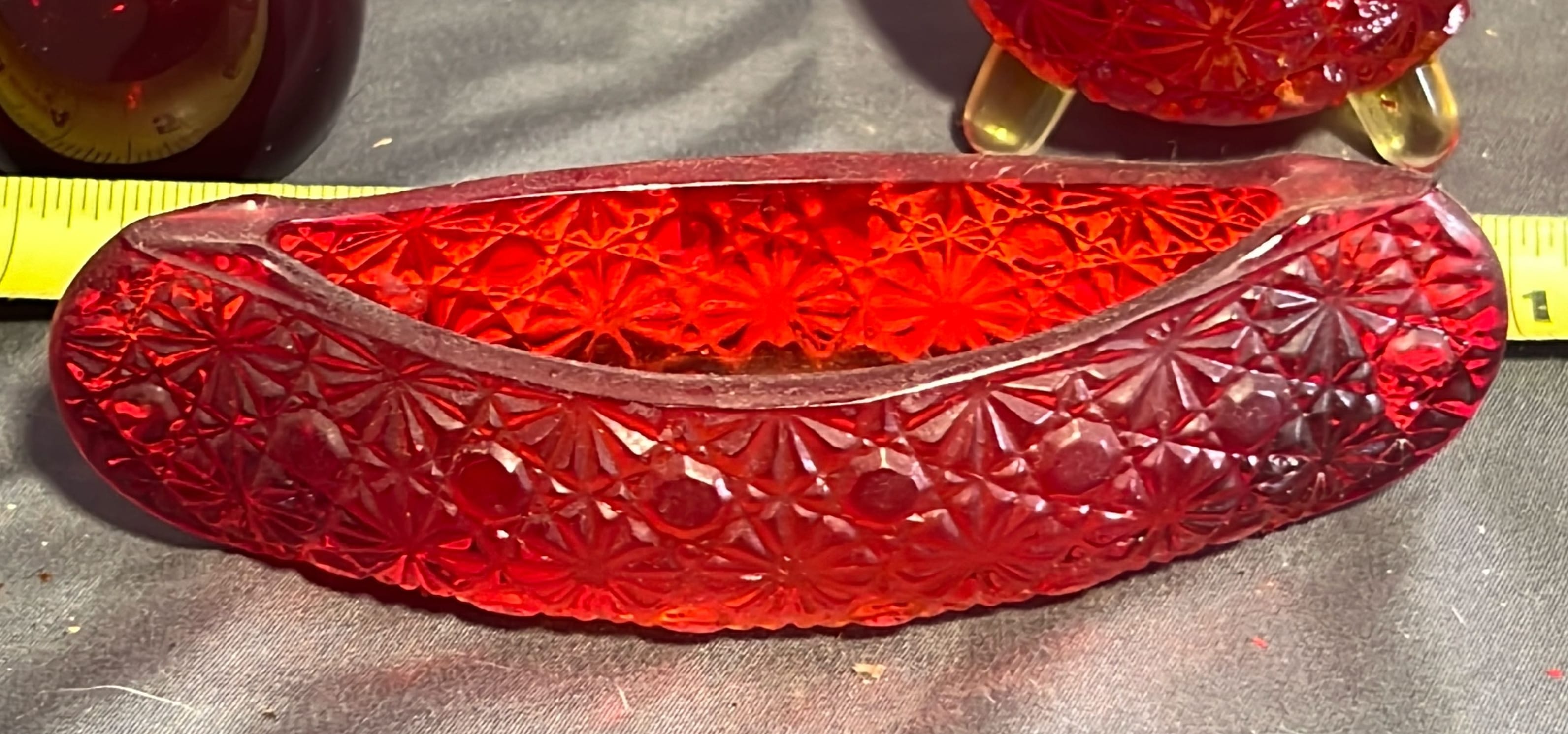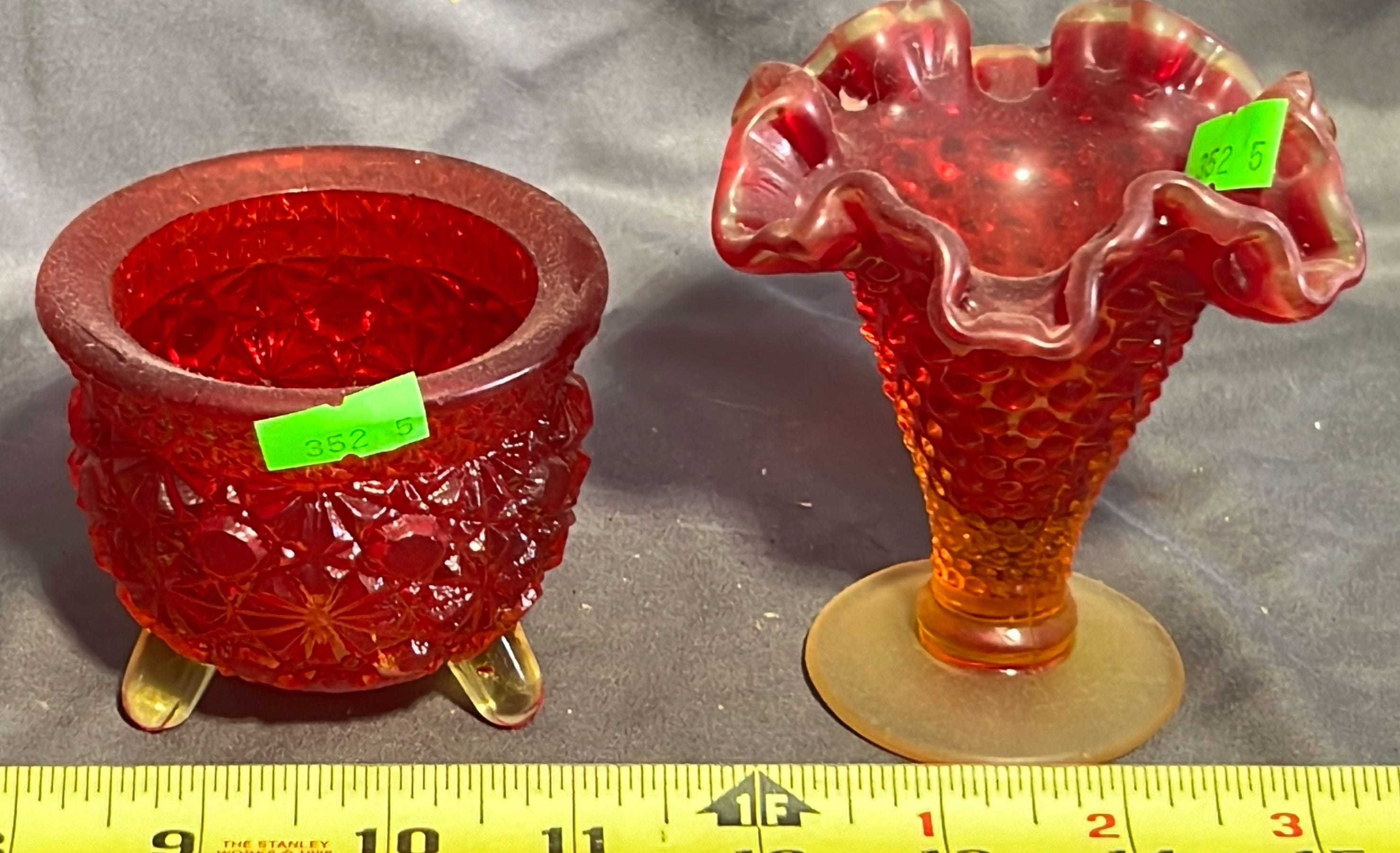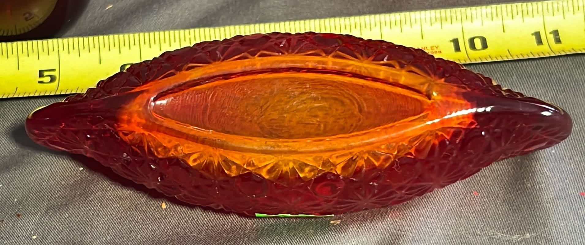 38 Three - Vintage LE Smith Moon and Star Amberina Canisters 7”, 9.5”, 9.5” (large one is missing the lid)