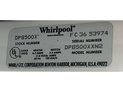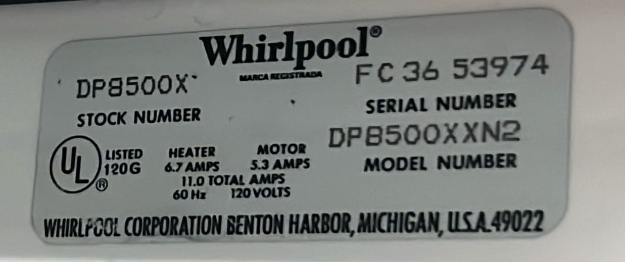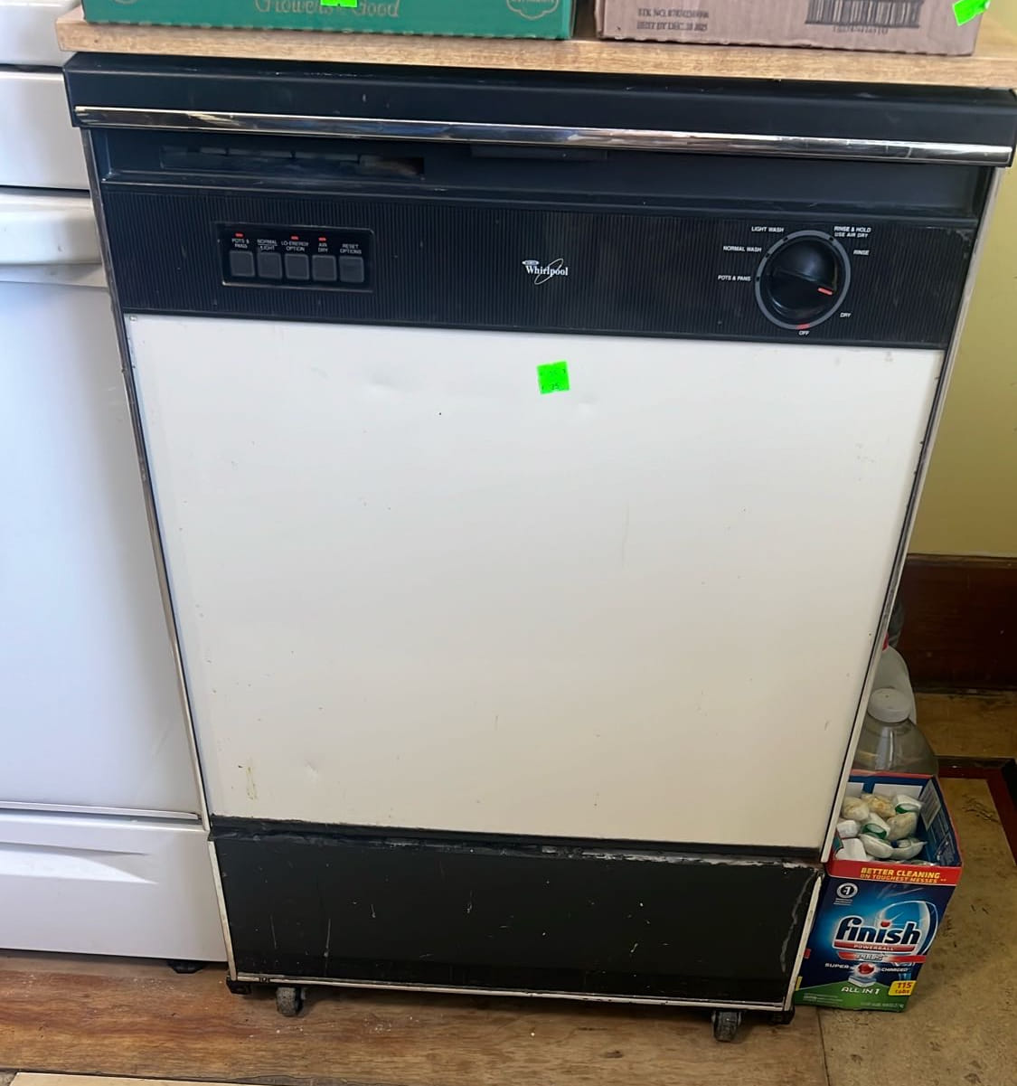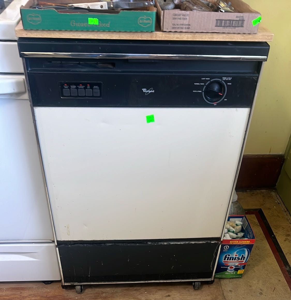 39 Whirlpool portable dishwasher, 24”x26.5”x36”, contents not included