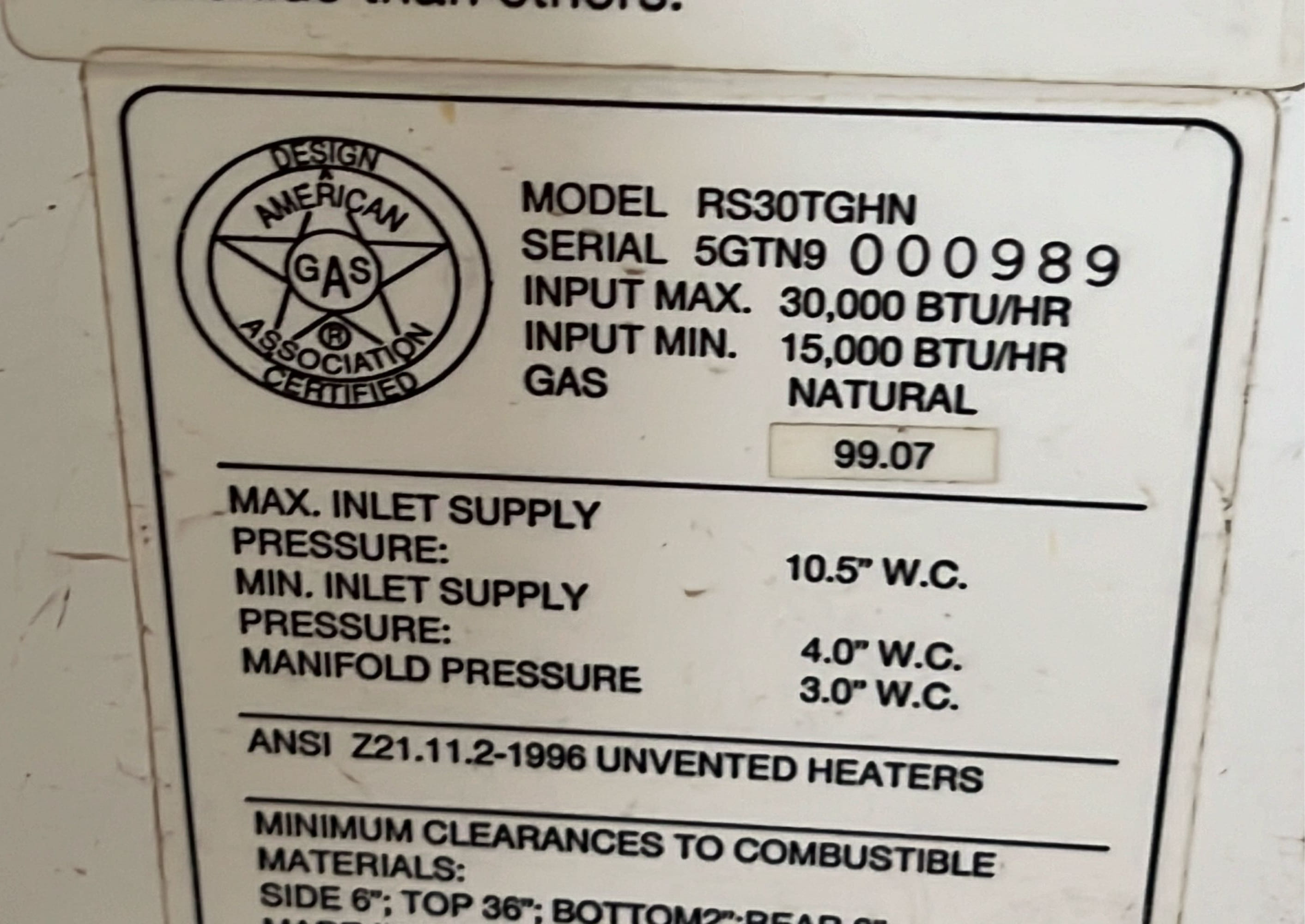 42 Natural Gas Heater, works, 12”x26”x 25.5”, free standing