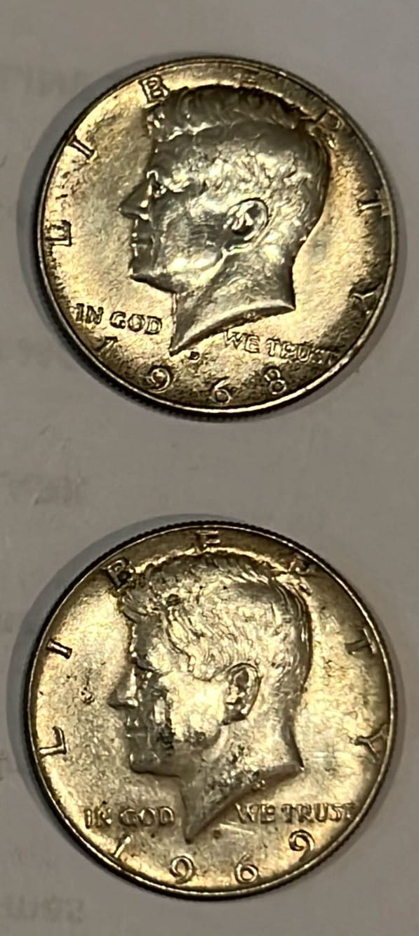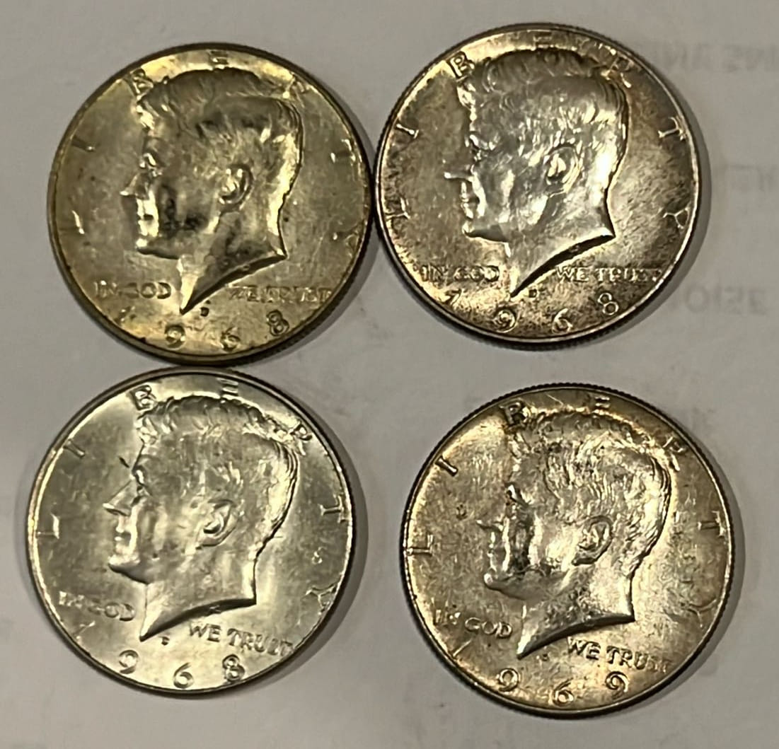 49 4 - Eisenhower Half Dollars , 3 - 1968 D , 1 - 1969 D