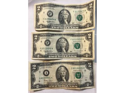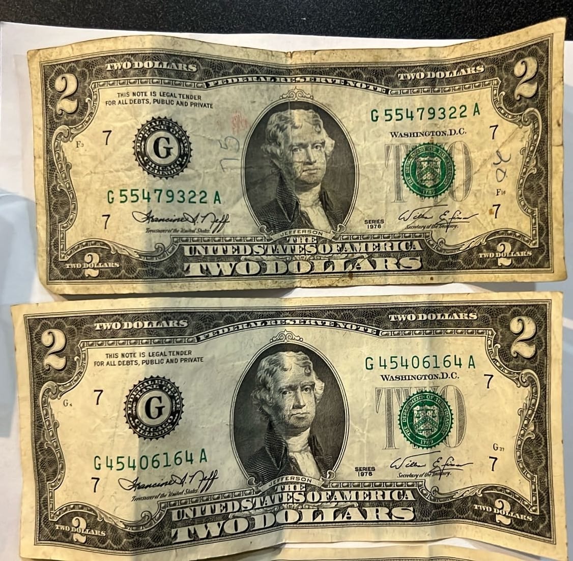 72 7- Two Dollar Bills , 4- 1976 , 2- 1995 ,1- 2003