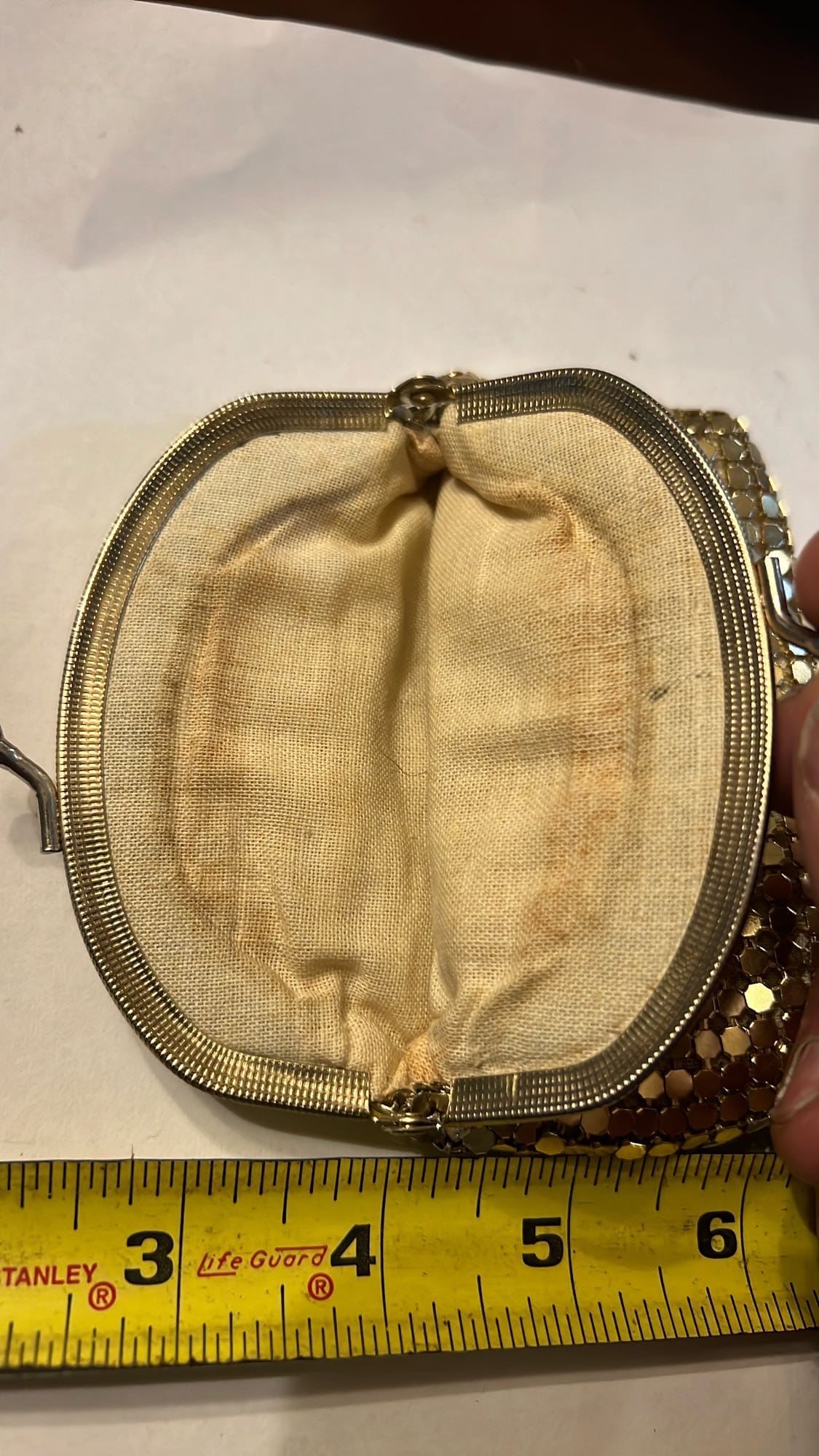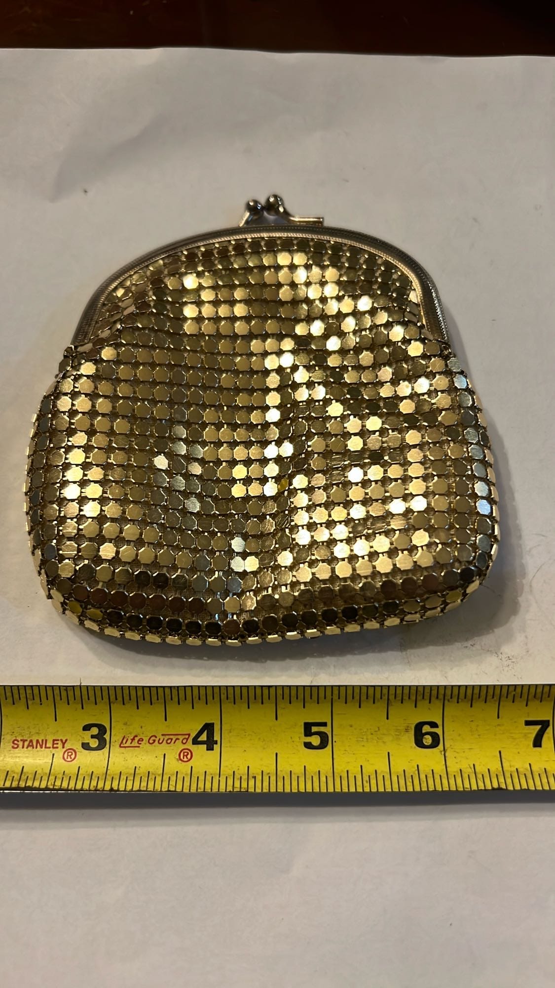 73 Vintage Snap Coin Pouch Gold Metallic Mesh Sequins Kiss-Lock Closure-Small 5"x5"