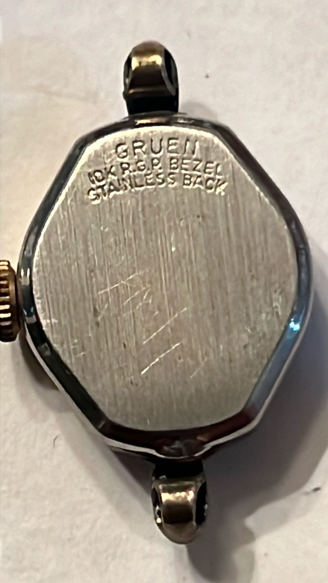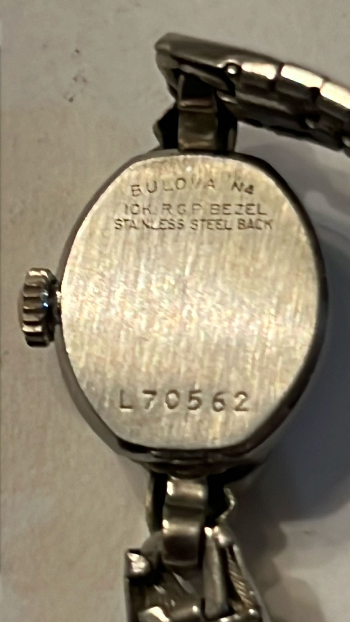 74 2- Ladies watches inc. Gruen 17 jewel, 10k RPG Bezel with stainless steel back, Bulova 10k RPG Bezel