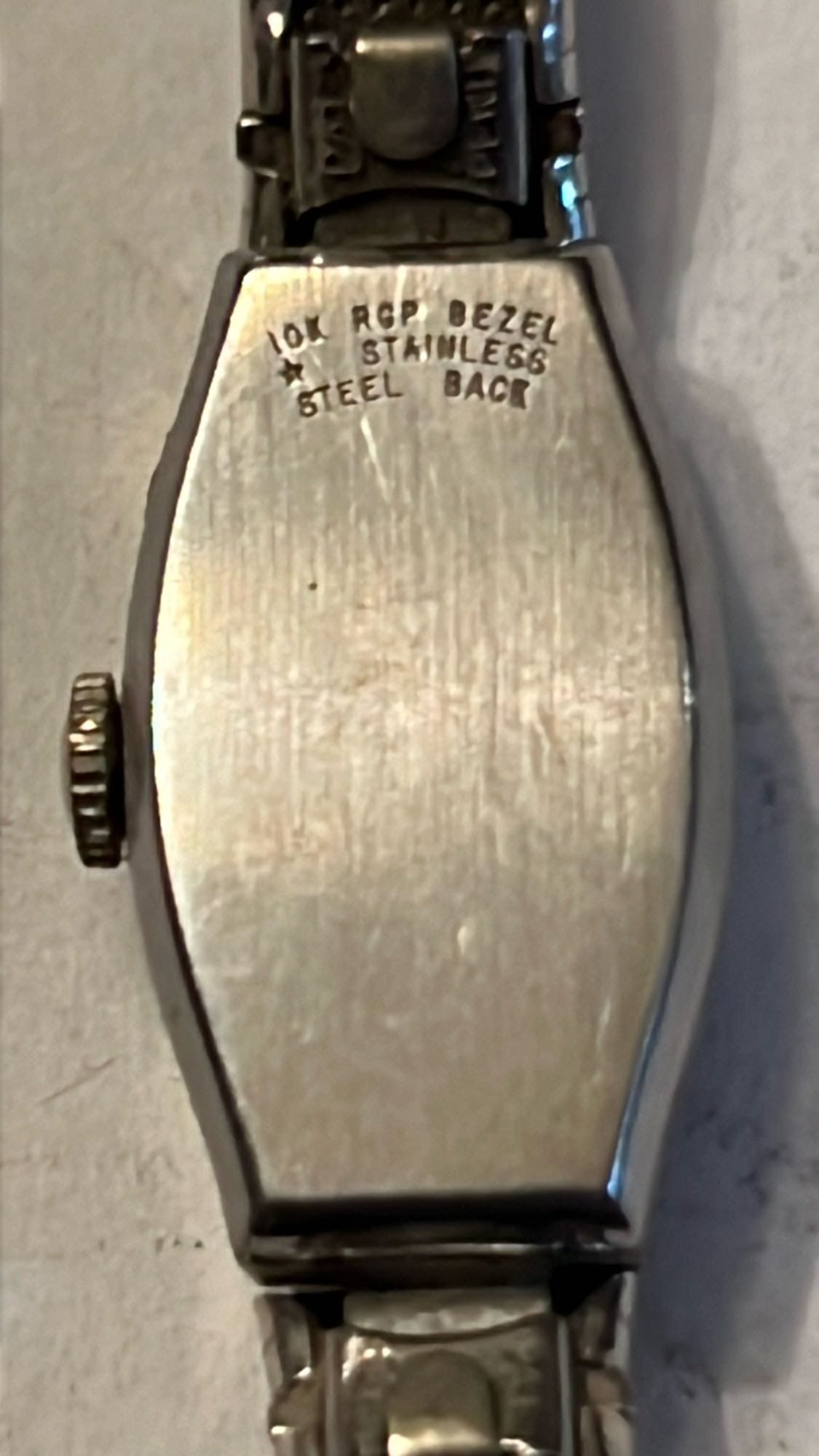 75 Wittnauer Ladies watch, 10k RPG Bezel, stainless steel back with band