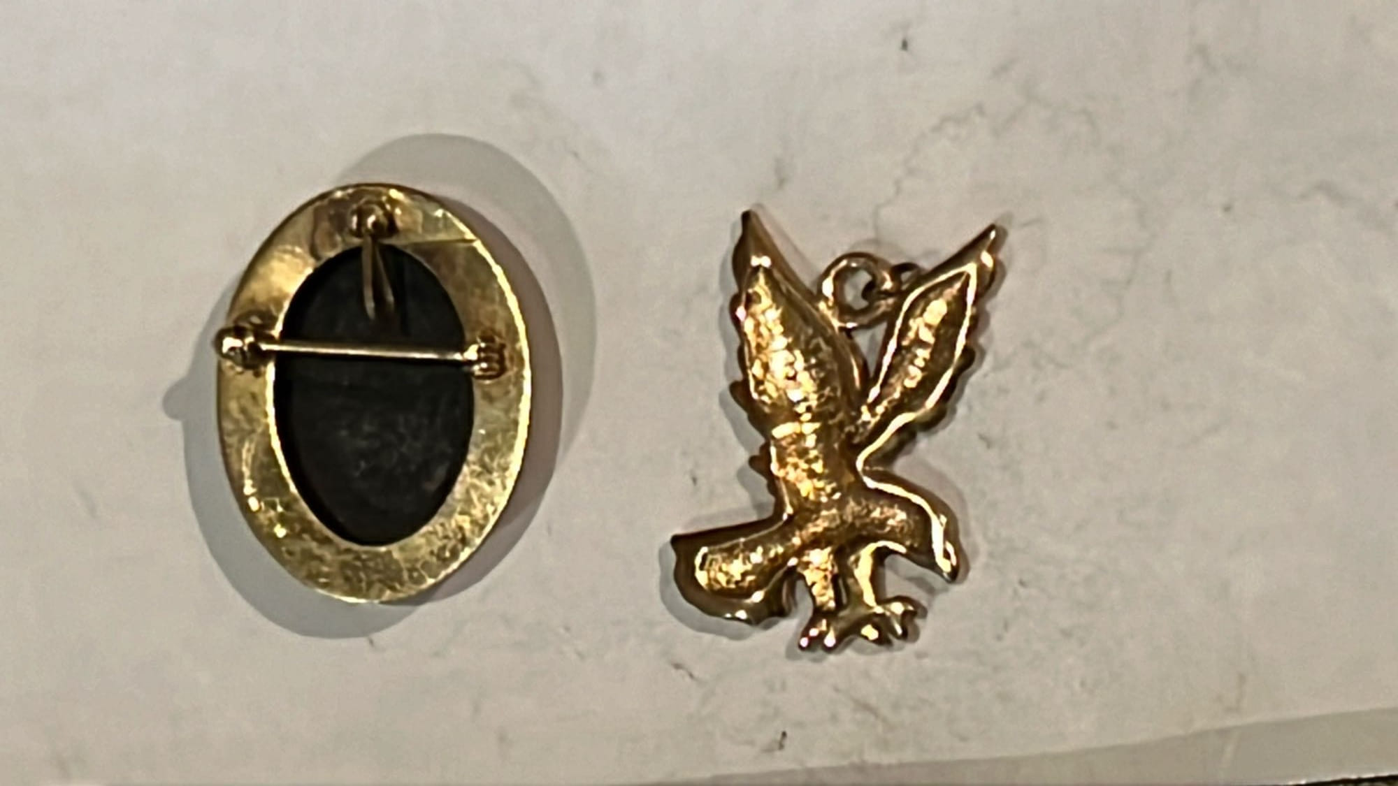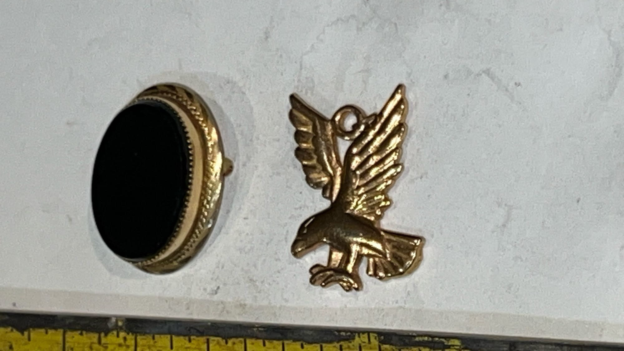 80 Black Onyx Gold filled brooch, gold filled Eagle Charm
