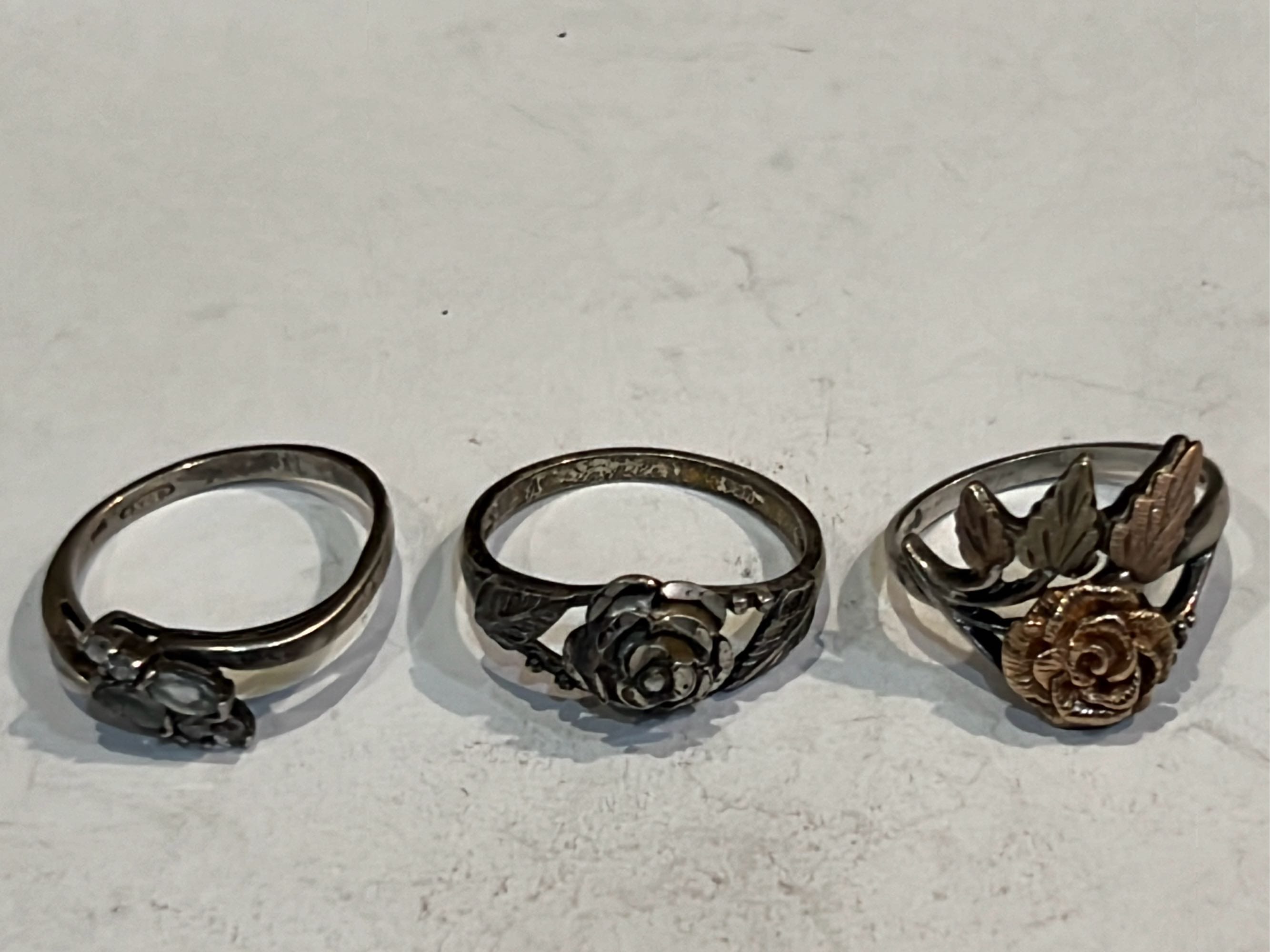 83 3- Sterling Rings, sizes 5, 6 1/2, 8 3/4