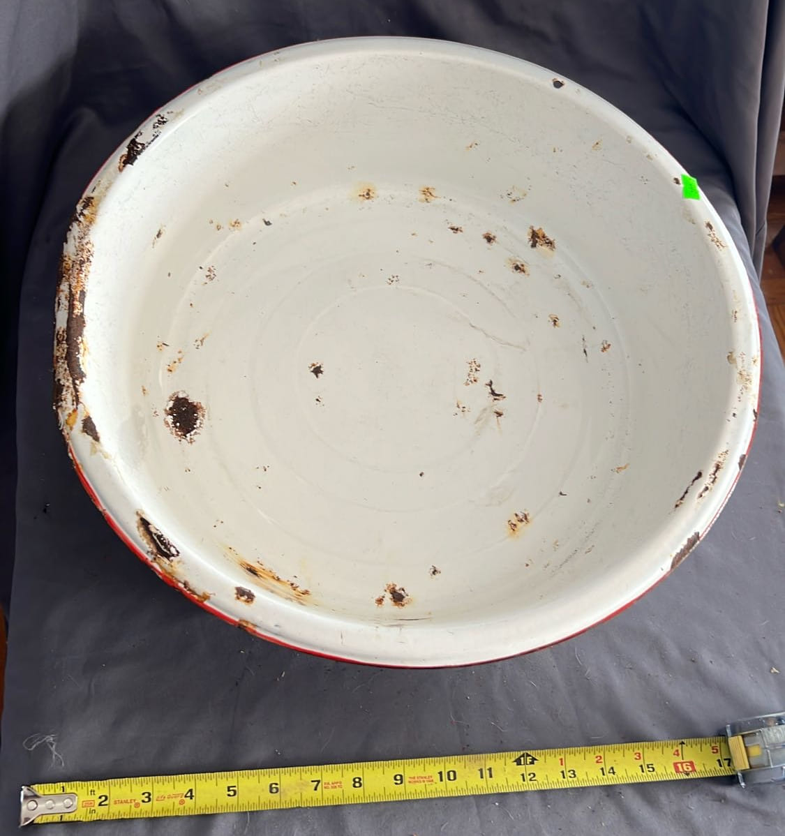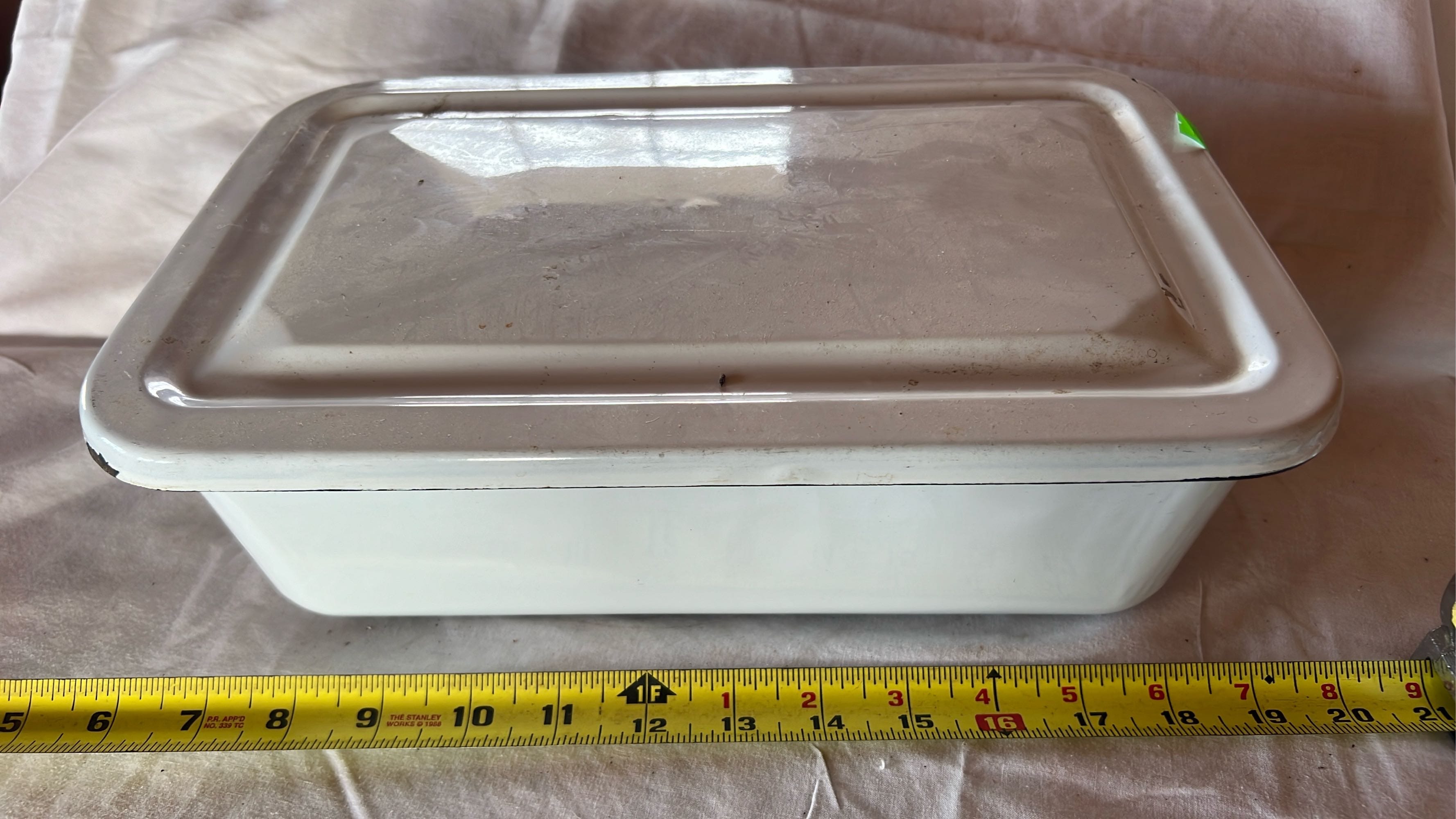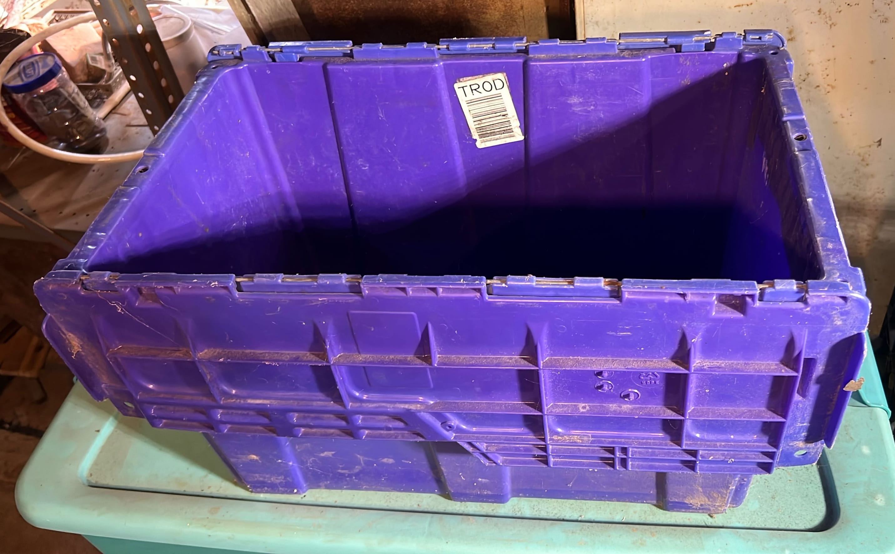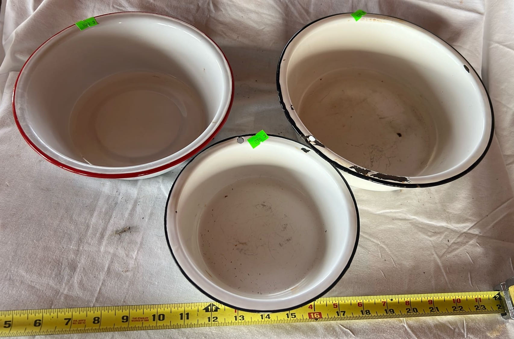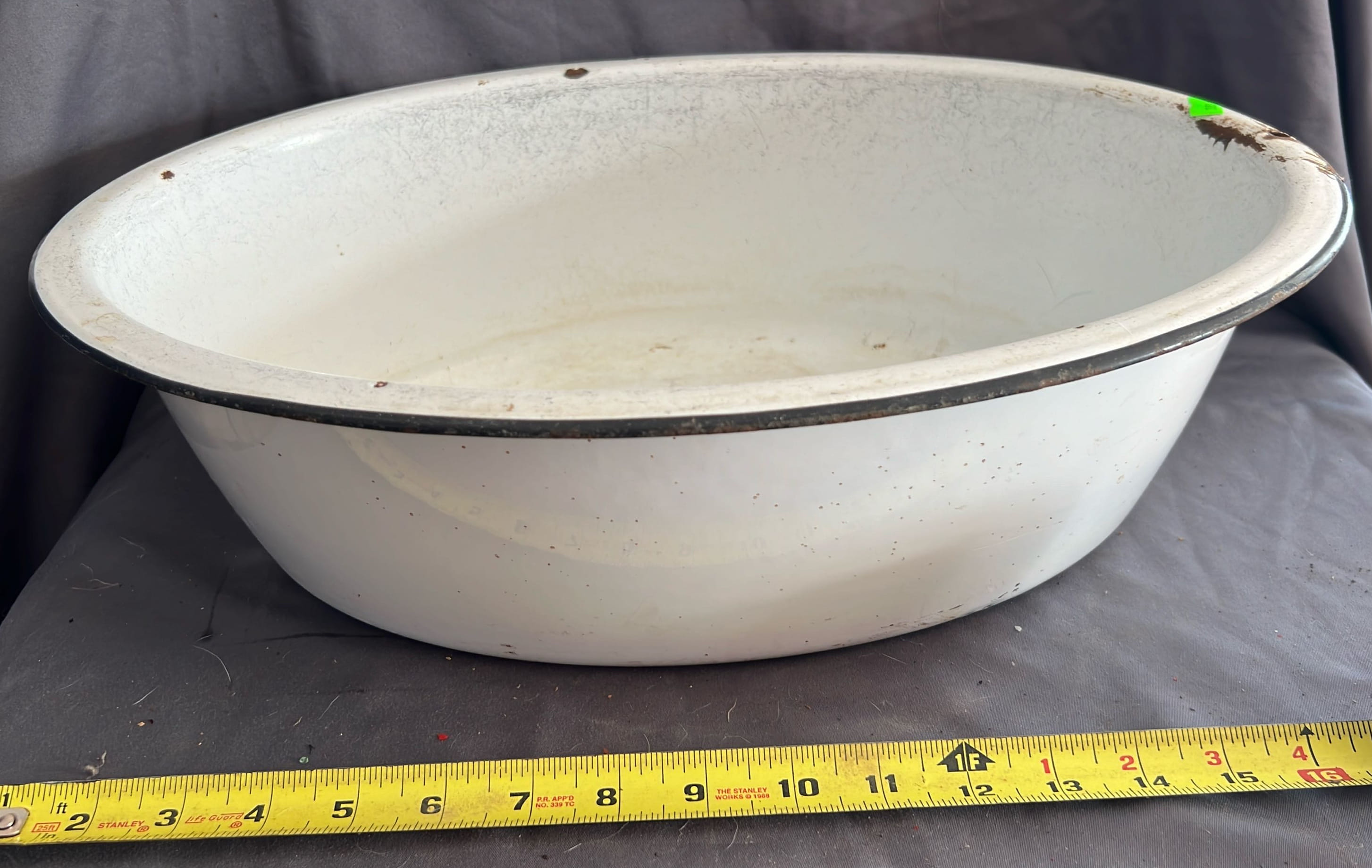 1129 Electric Water Bucket 10” • Electric Animal Pan 11” • Plastic Watering Can • Wood Fruit Crate missing one slat 19.5”x10”x13.25”