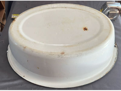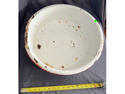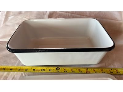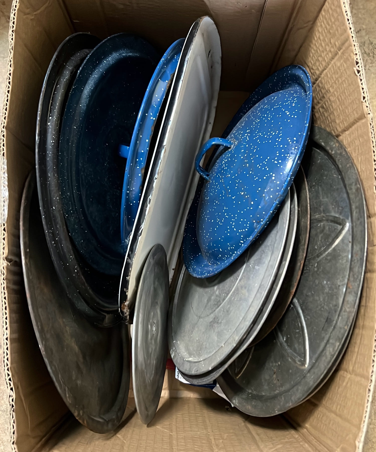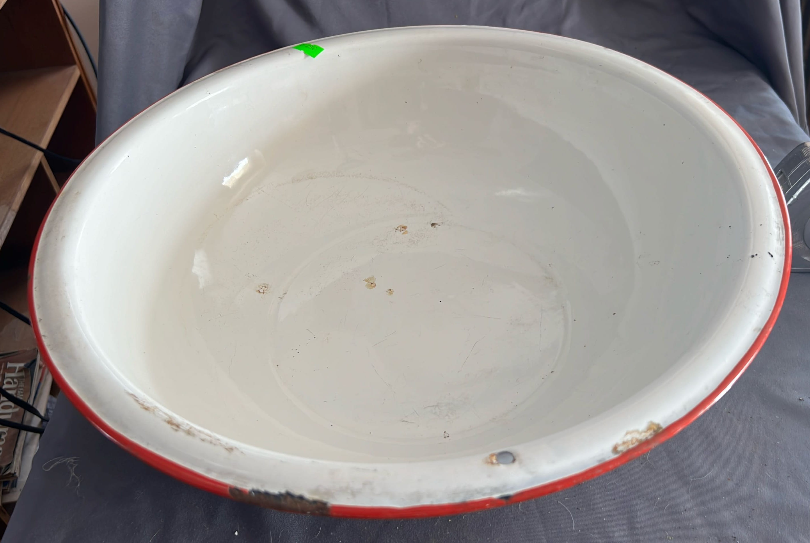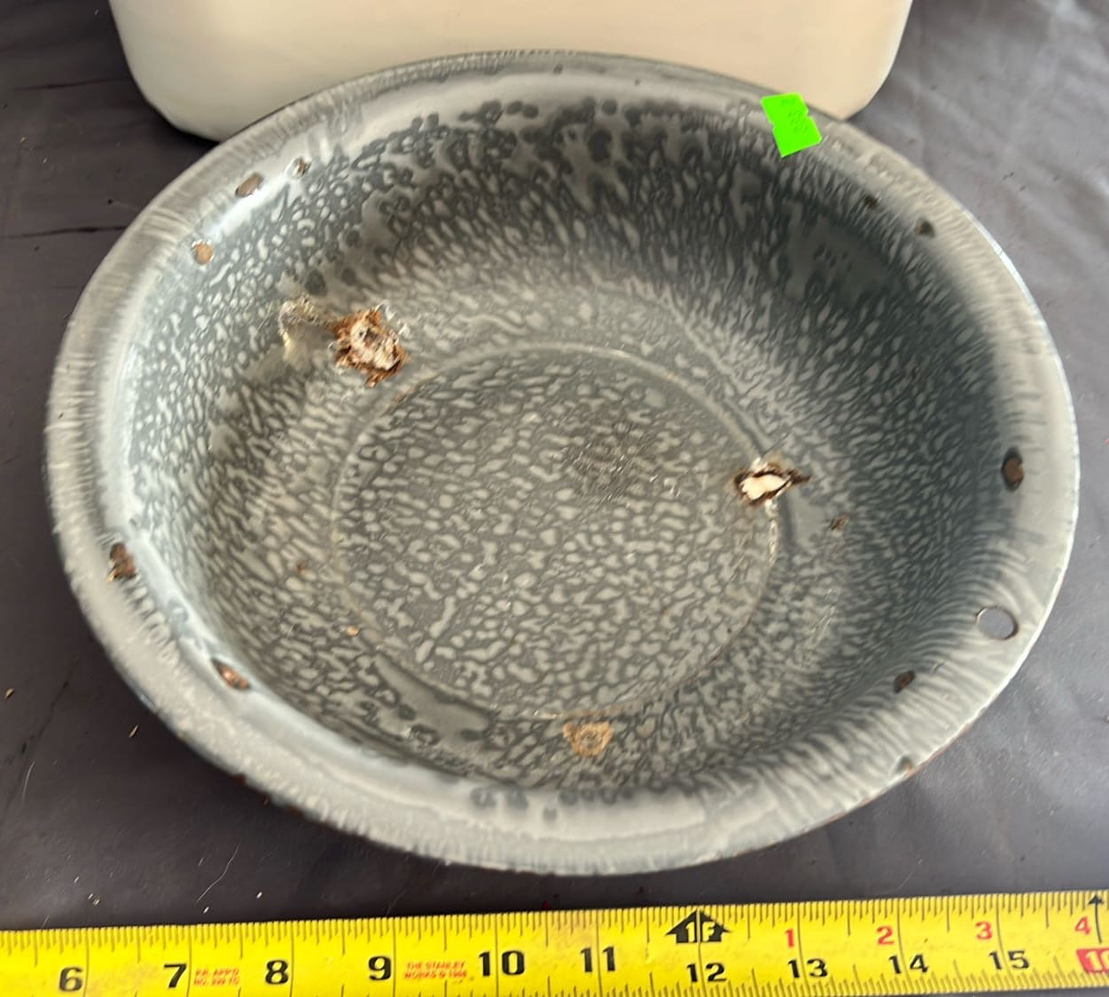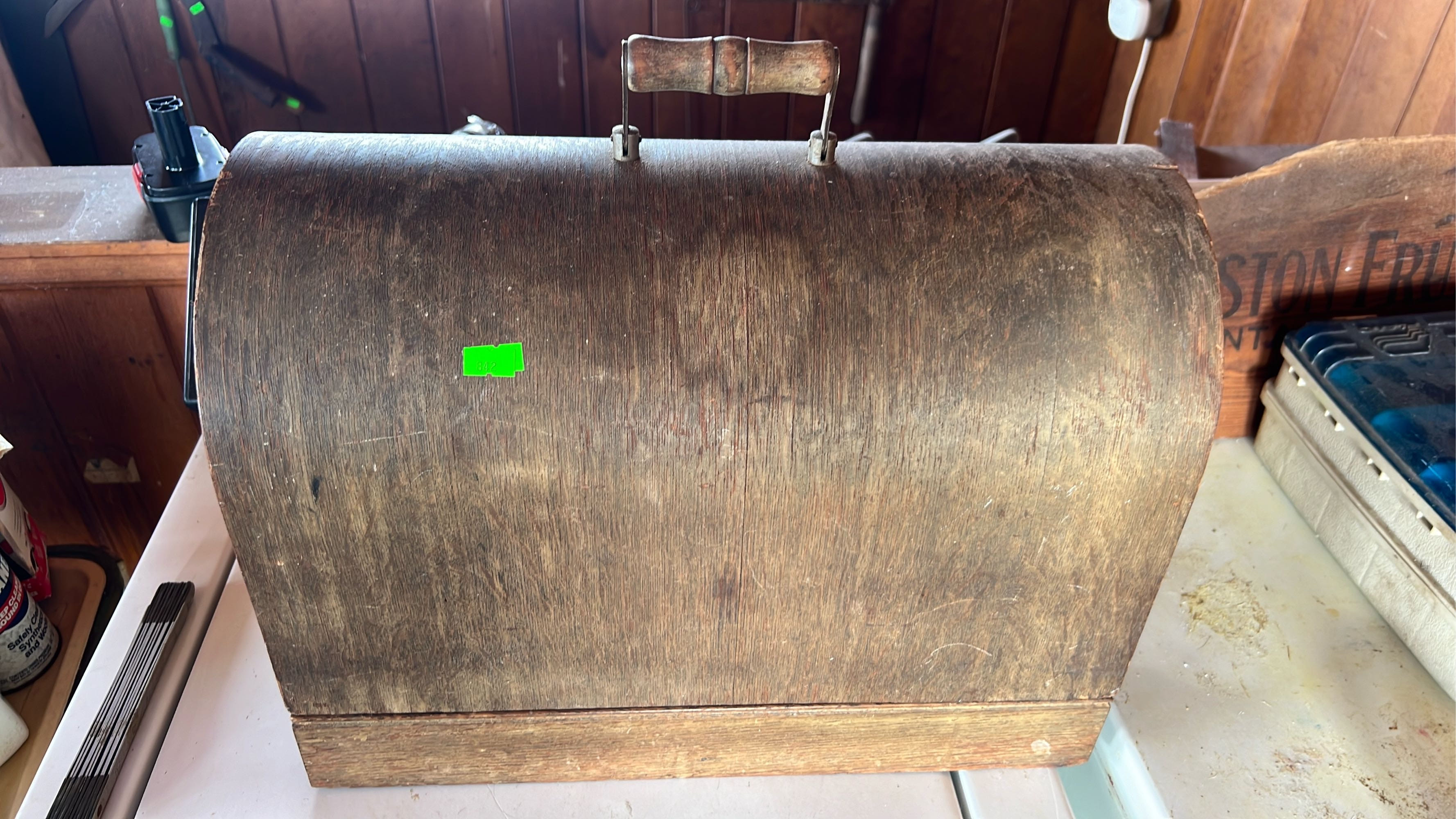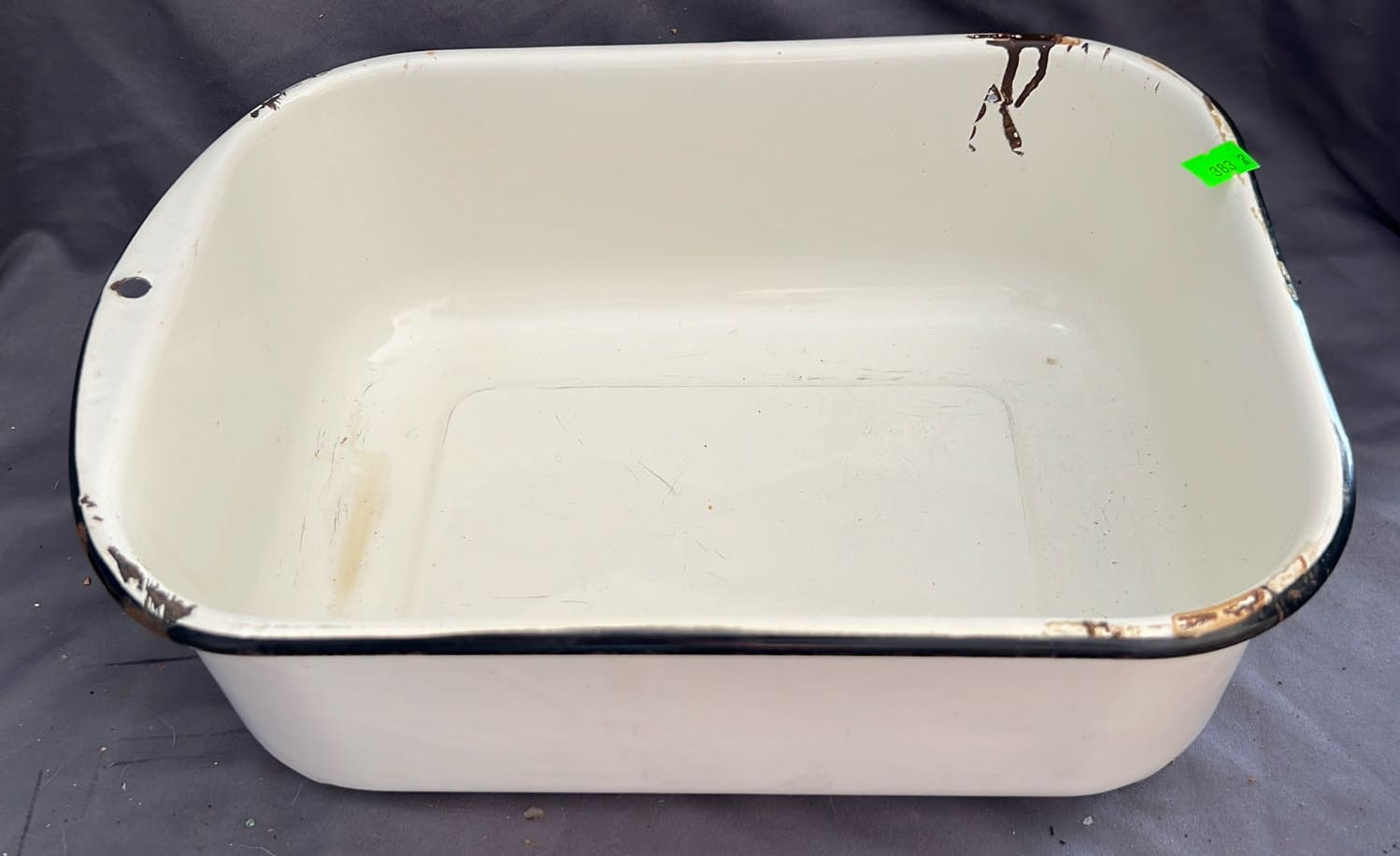 1129 Electric Water Bucket 10” • Electric Animal Pan 11” • Plastic Watering Can • Wood Fruit Crate missing one slat 19.5”x10”x13.25”