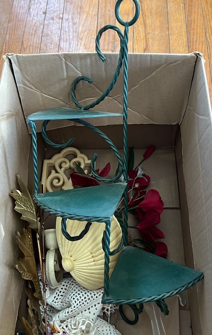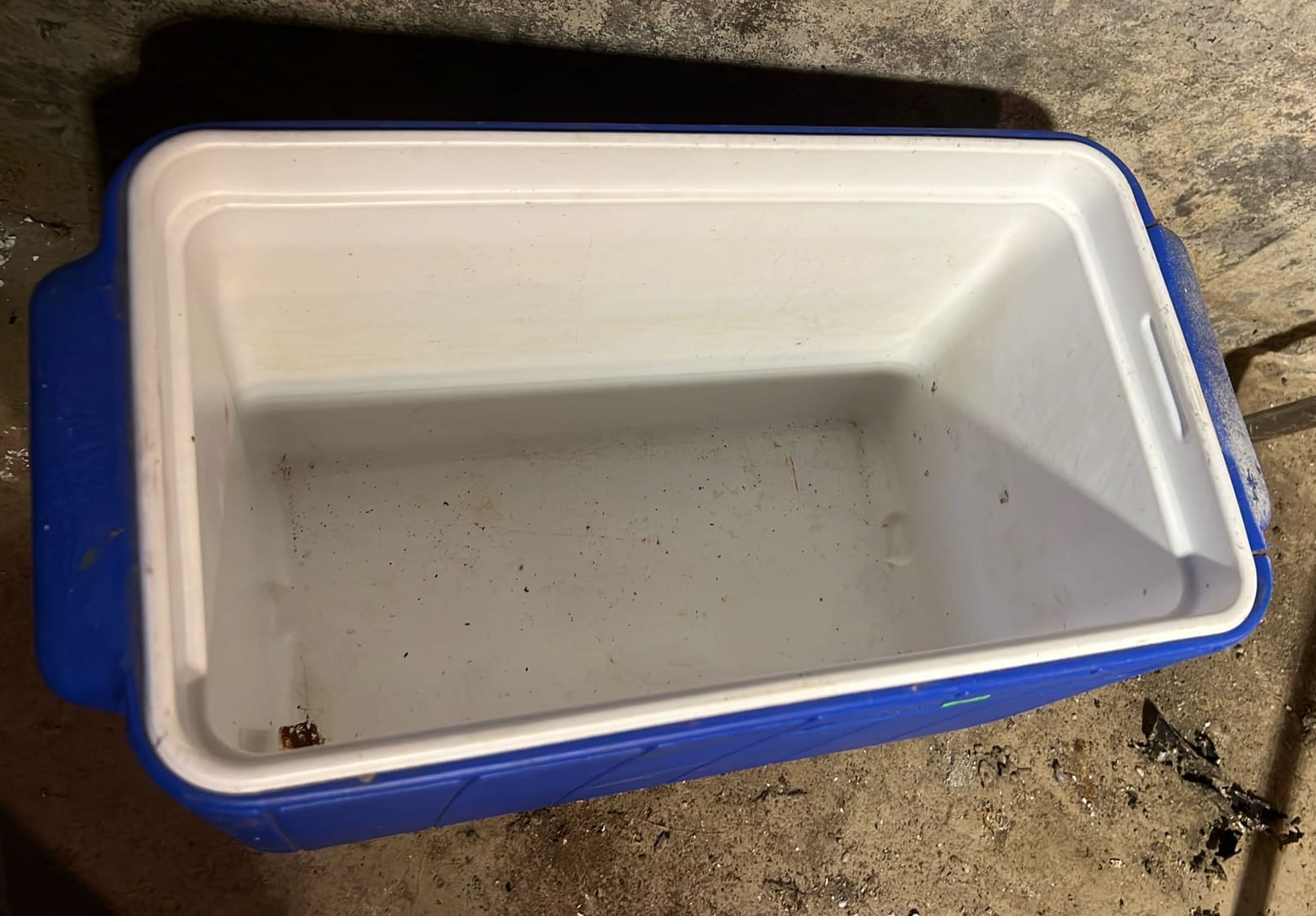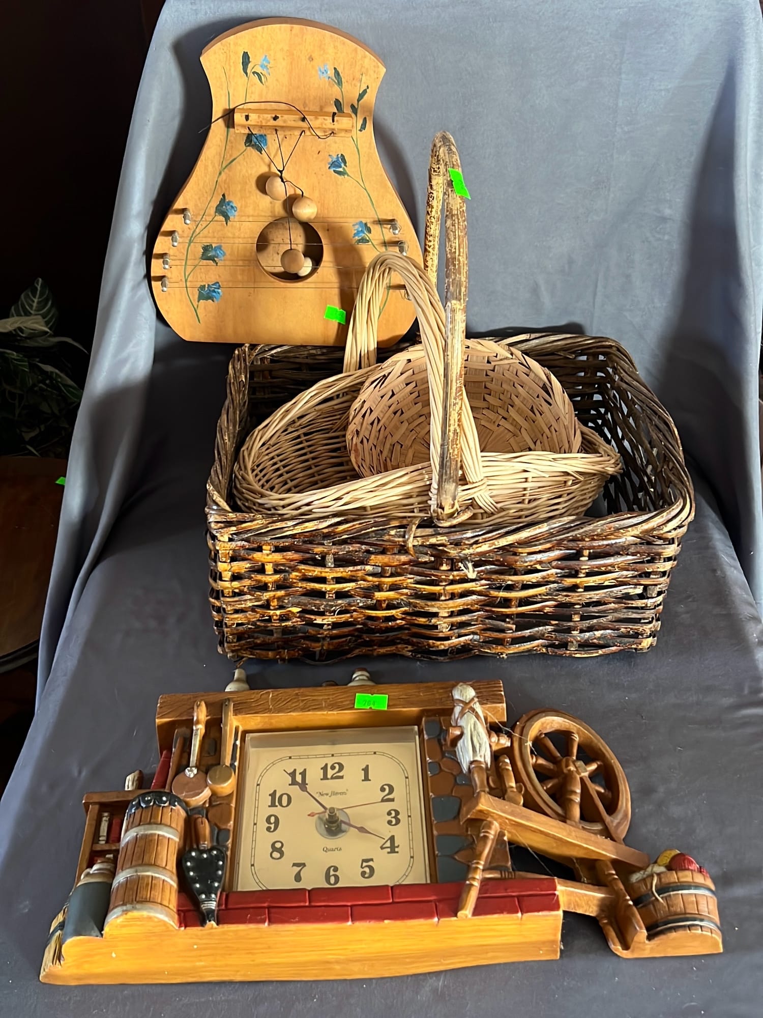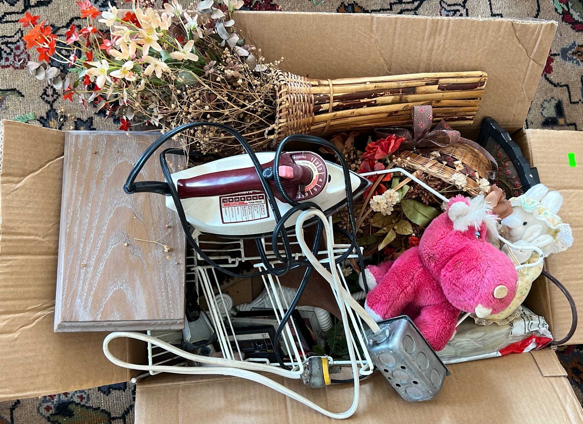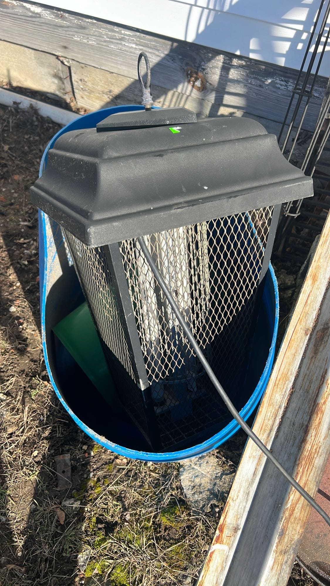 1129 Electric Water Bucket 10” • Electric Animal Pan 11” • Plastic Watering Can • Wood Fruit Crate missing one slat 19.5”x10”x13.25”