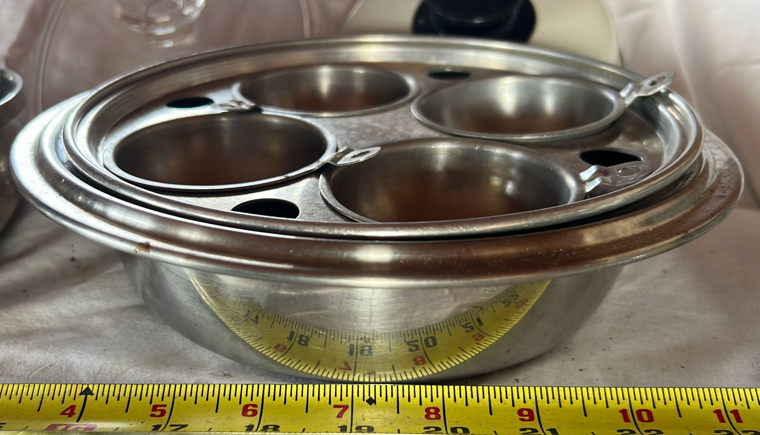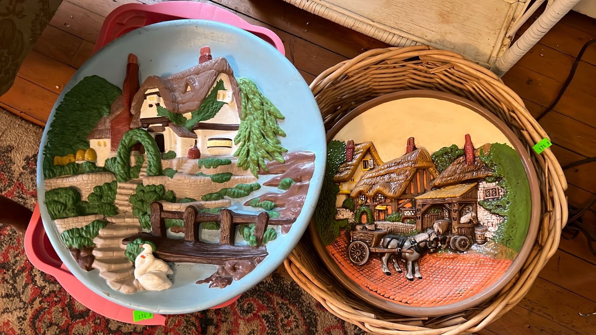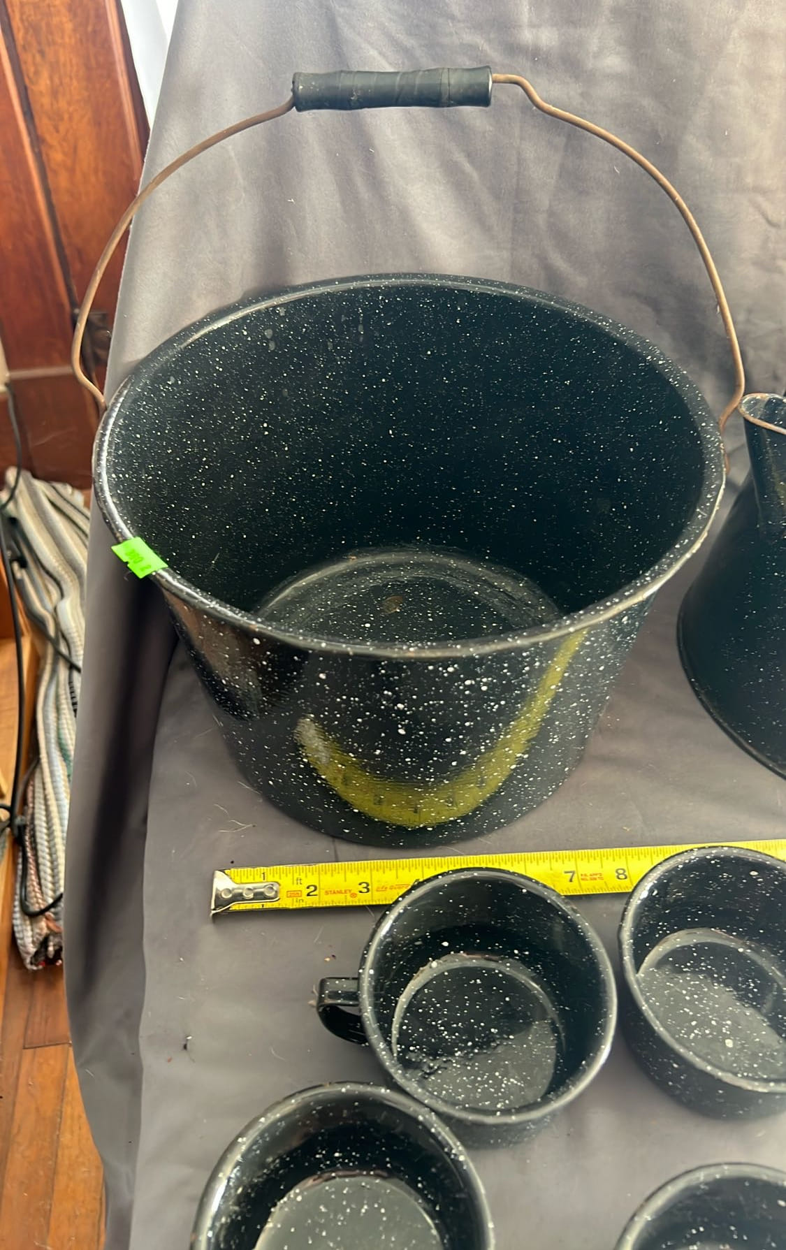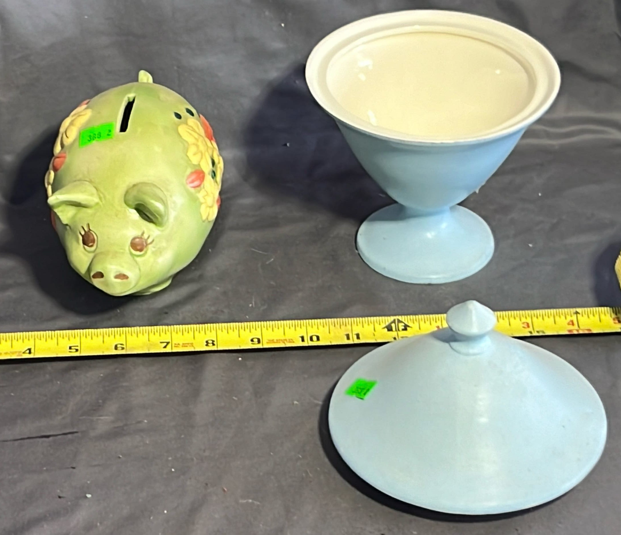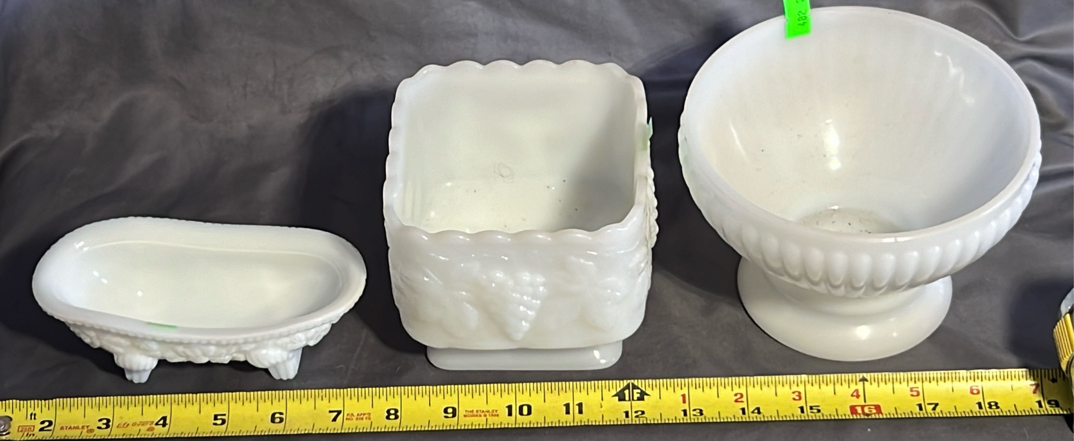 1129 Electric Water Bucket 10” • Electric Animal Pan 11” • Plastic Watering Can • Wood Fruit Crate missing one slat 19.5”x10”x13.25”