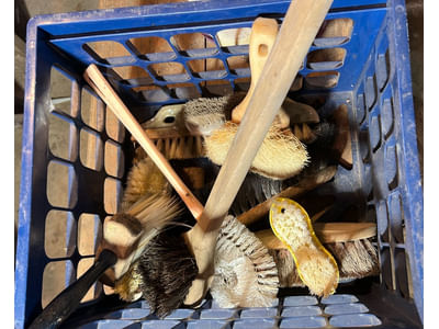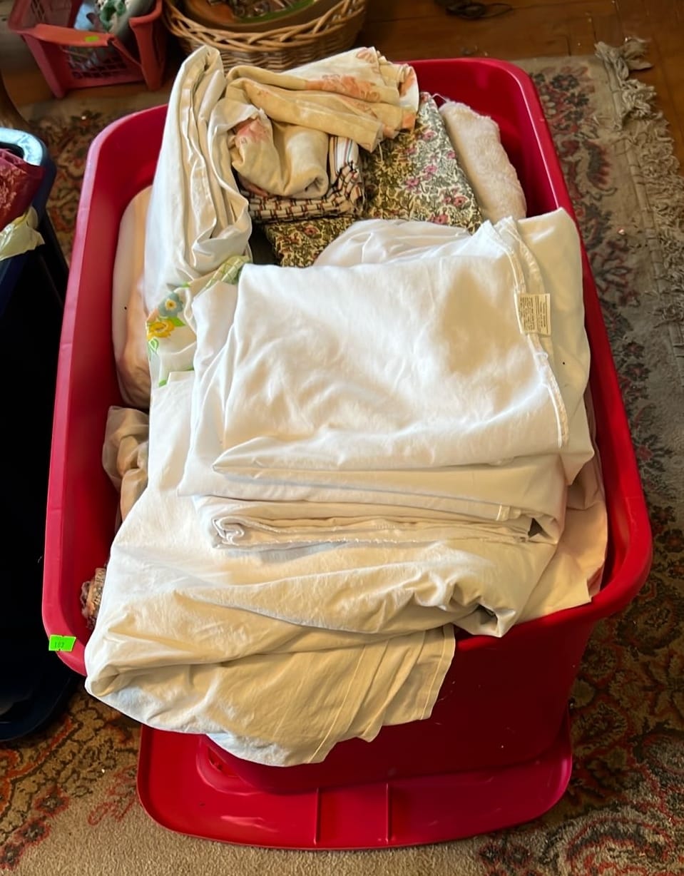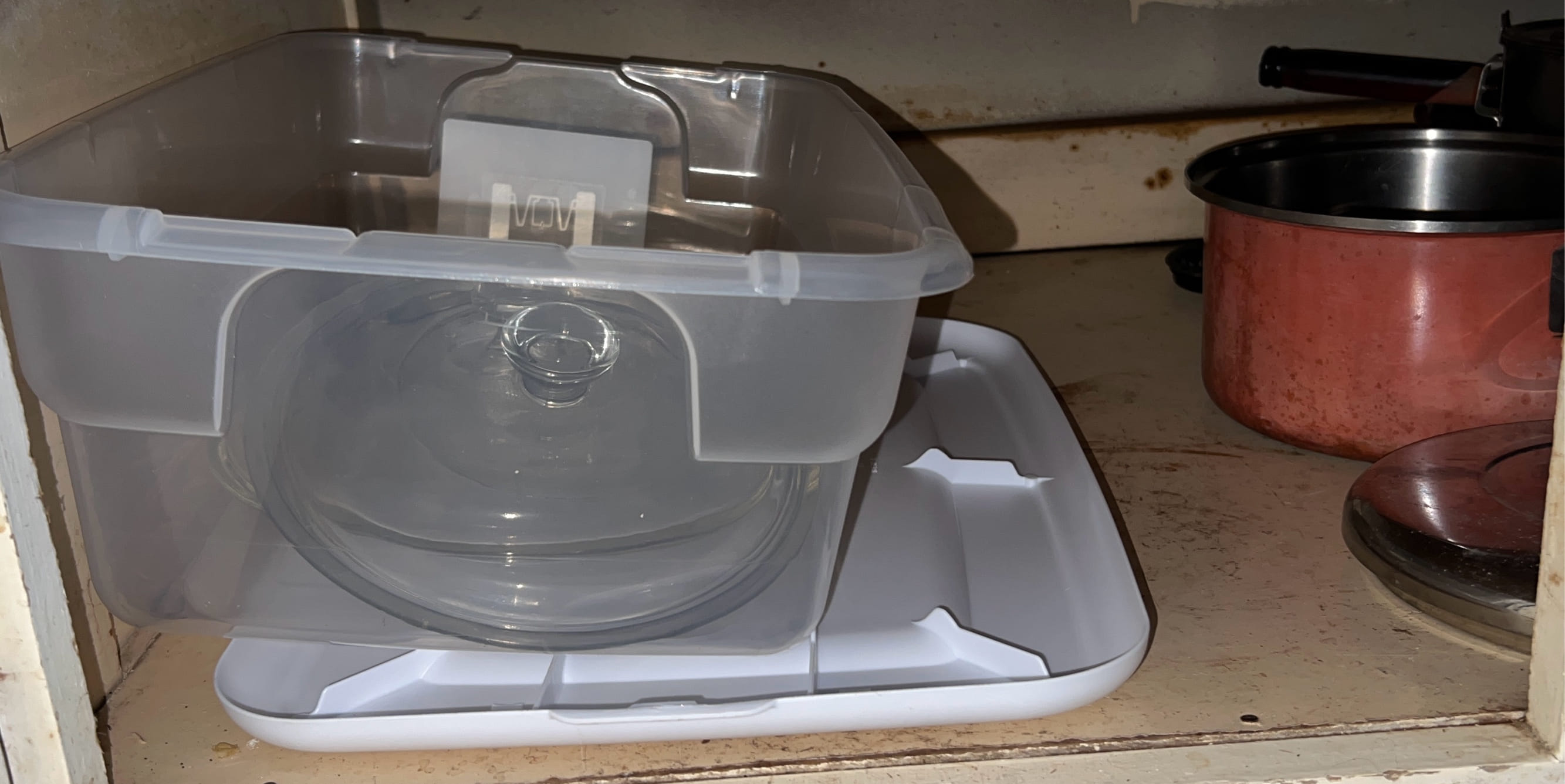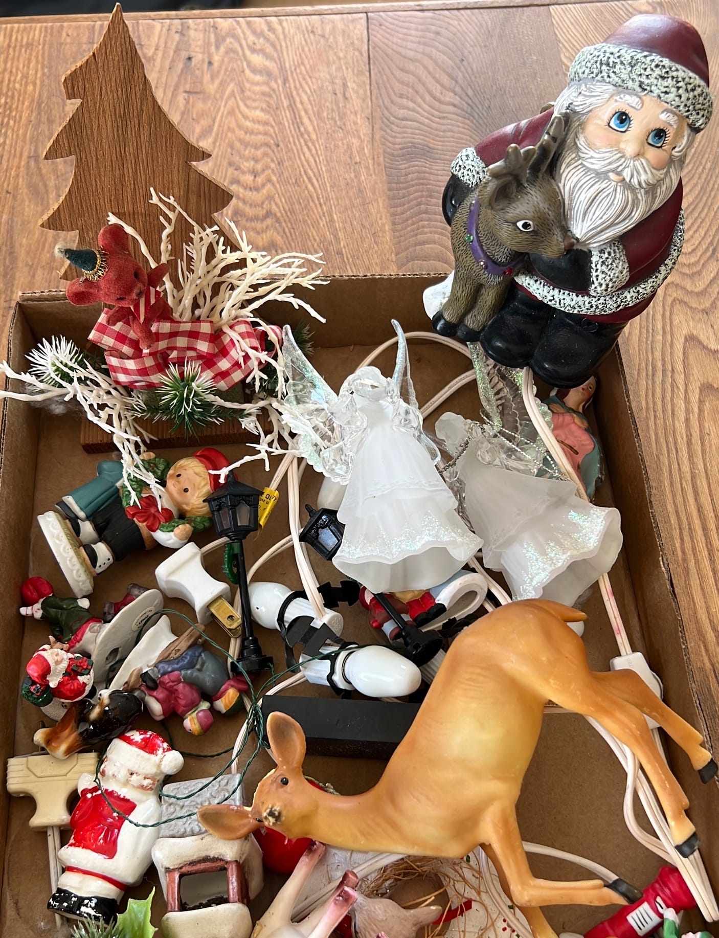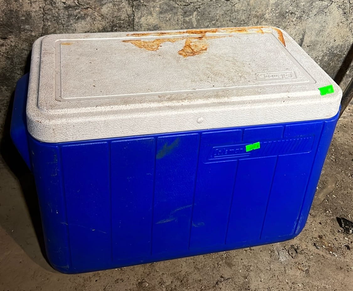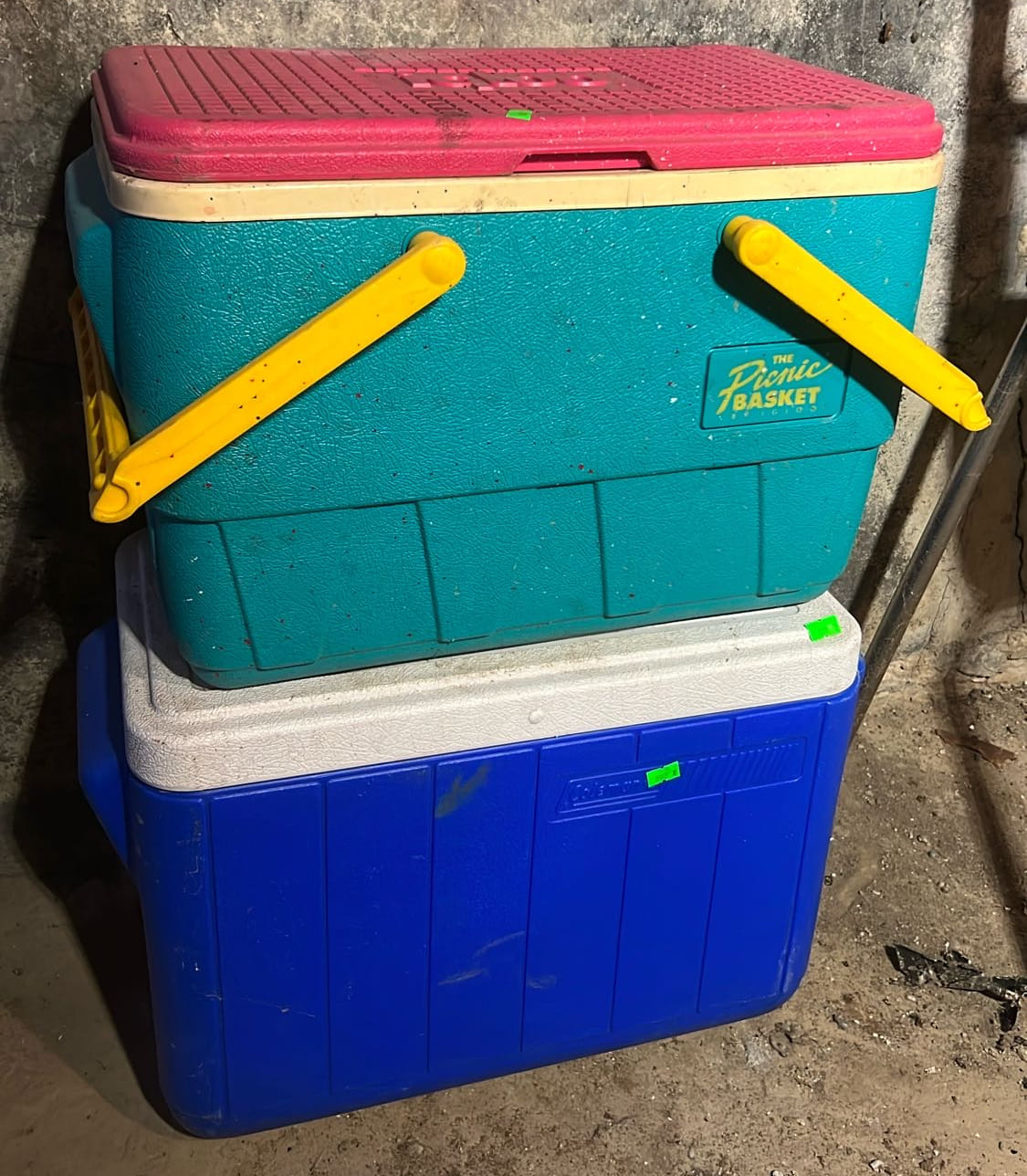 1129 Electric Water Bucket 10” • Electric Animal Pan 11” • Plastic Watering Can • Wood Fruit Crate missing one slat 19.5”x10”x13.25”