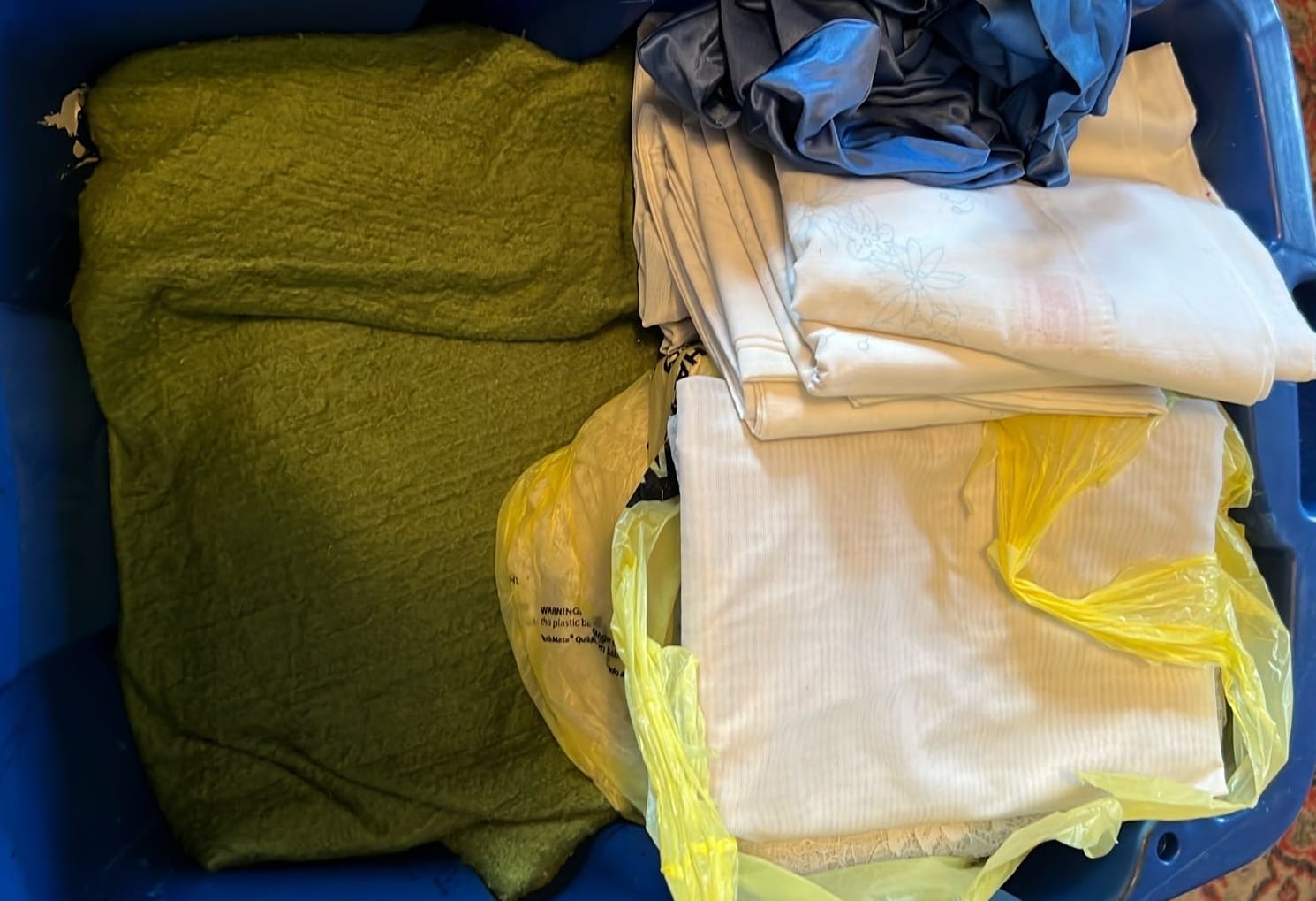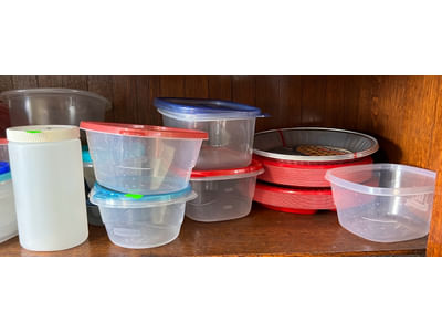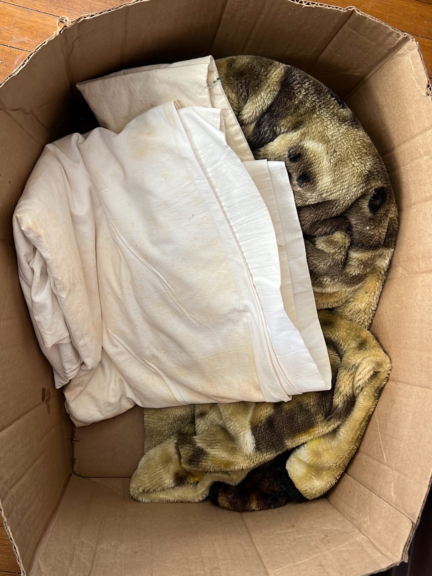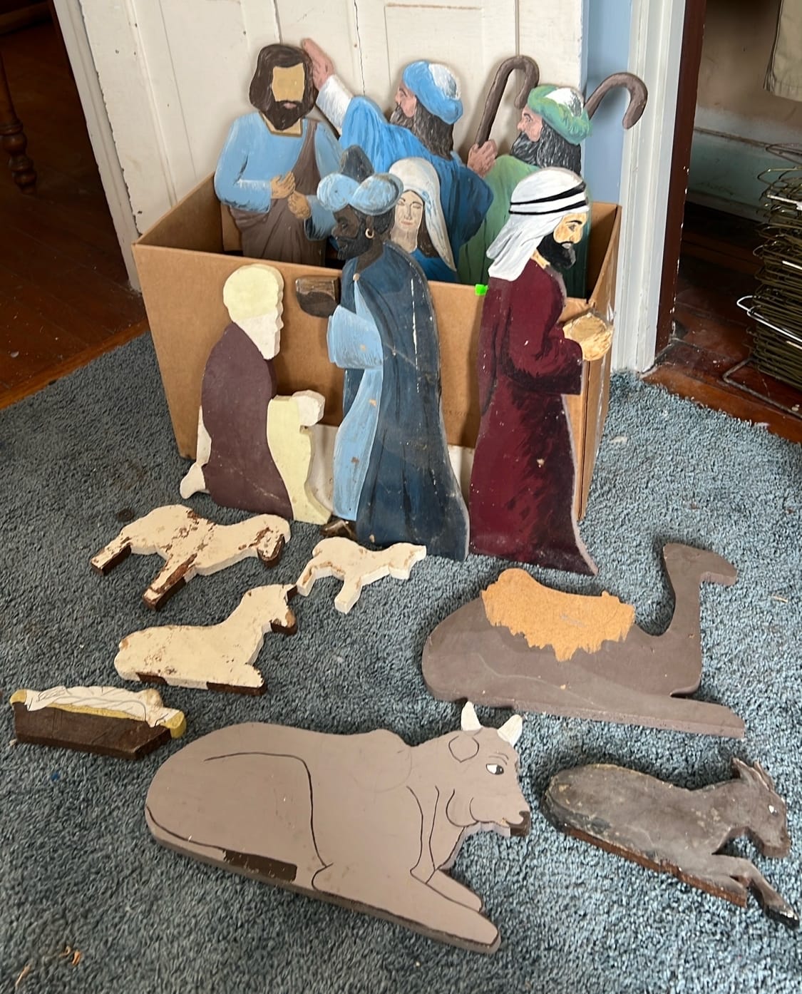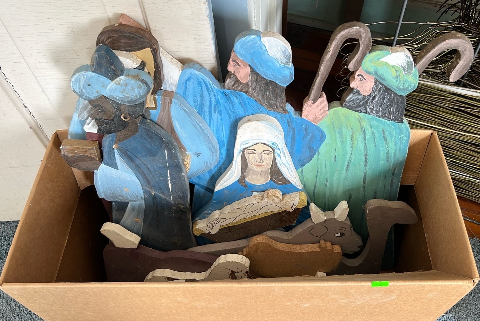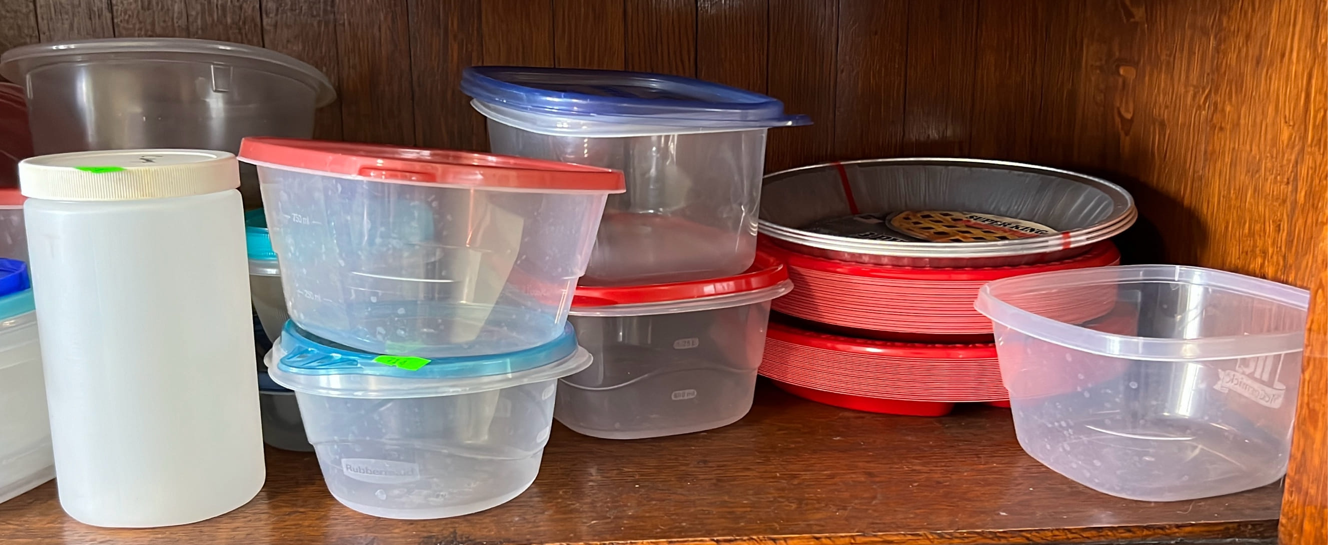 1129 Electric Water Bucket 10” • Electric Animal Pan 11” • Plastic Watering Can • Wood Fruit Crate missing one slat 19.5”x10”x13.25”
