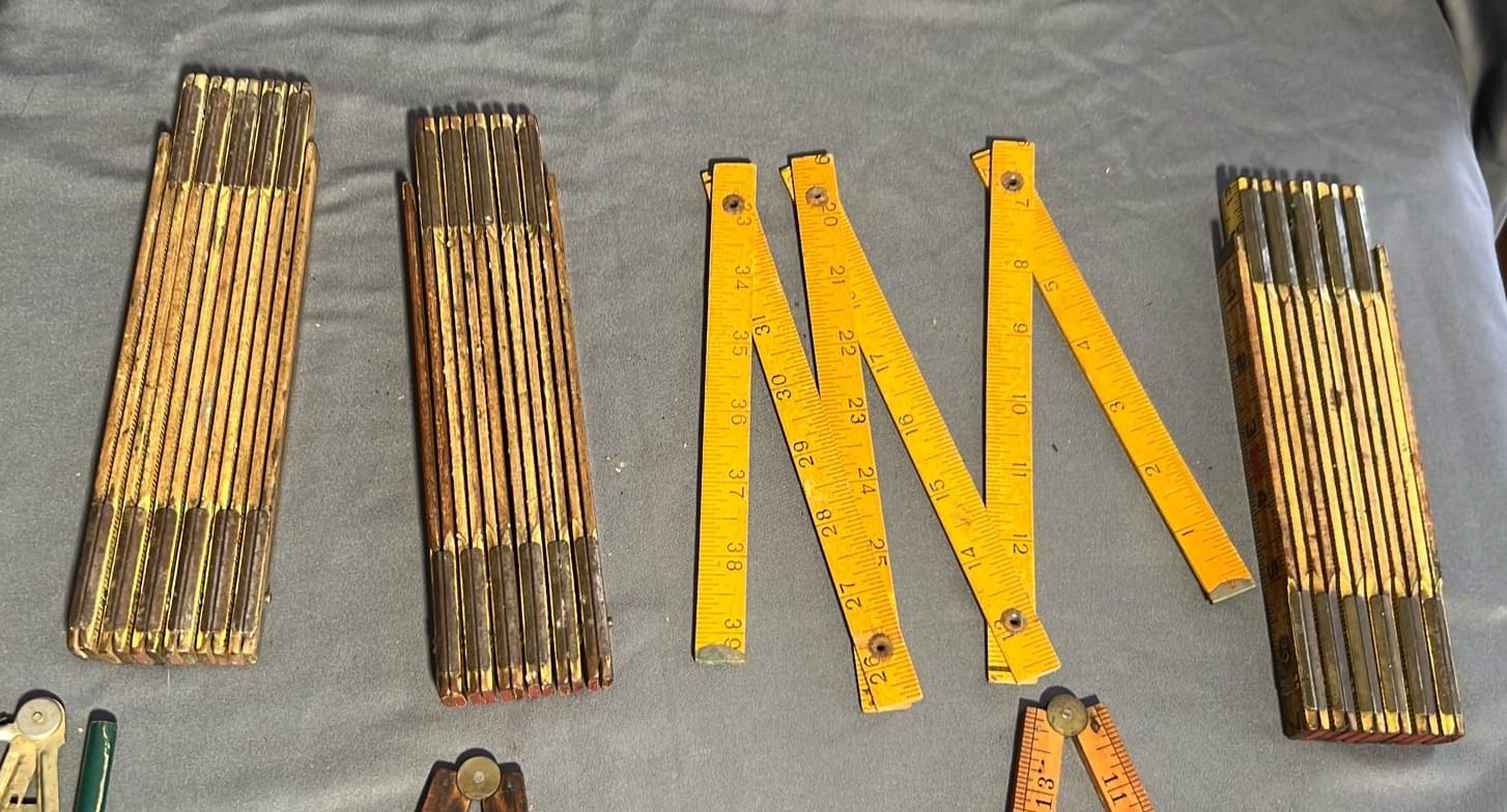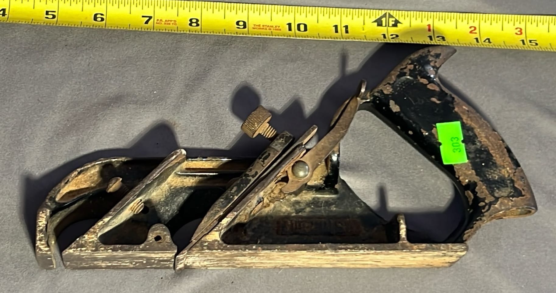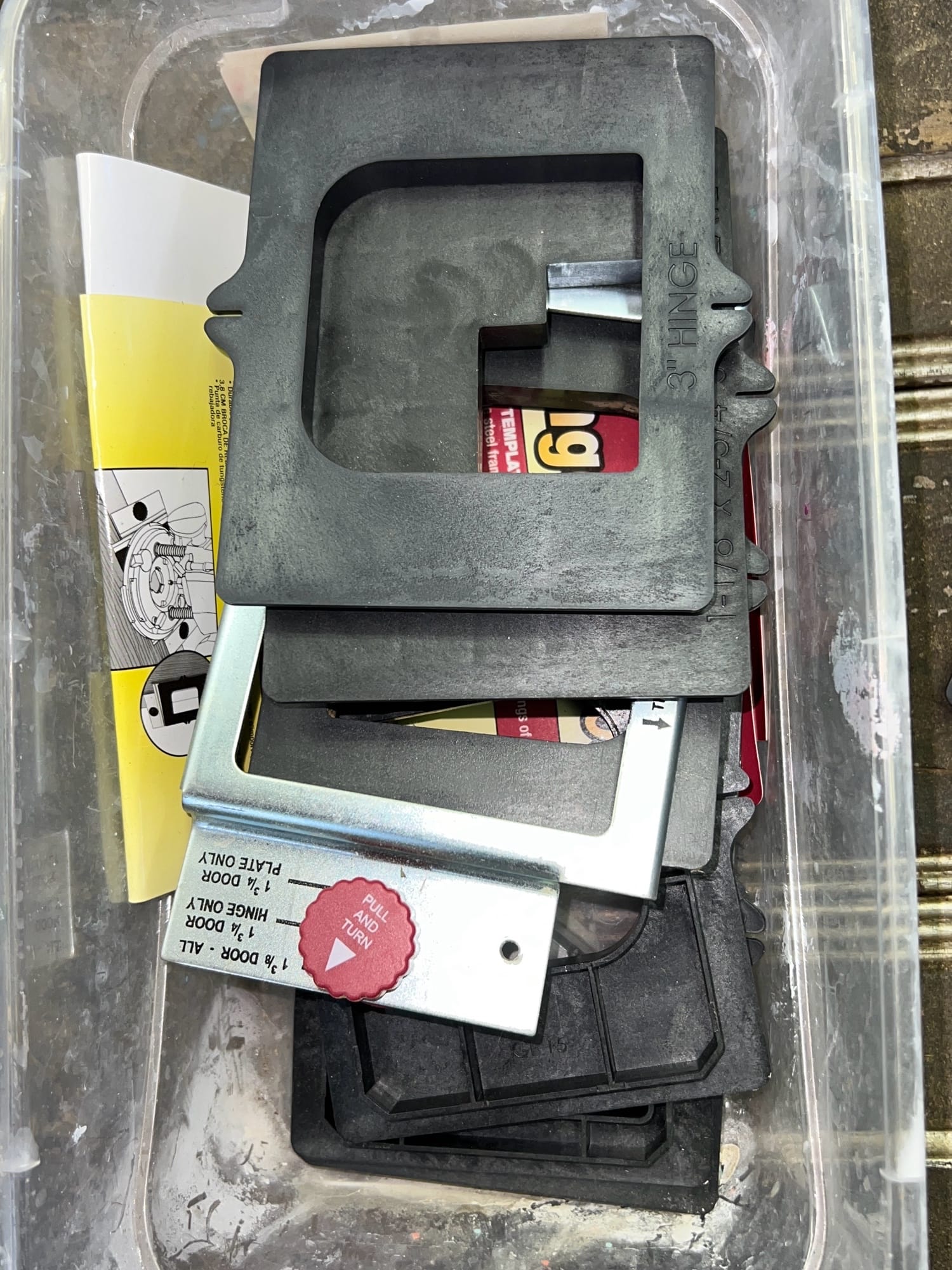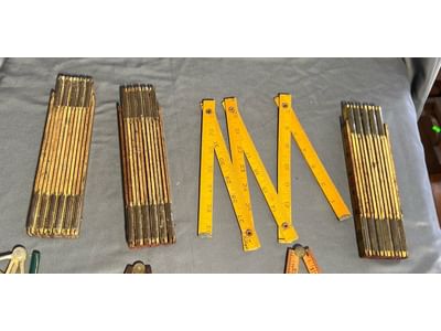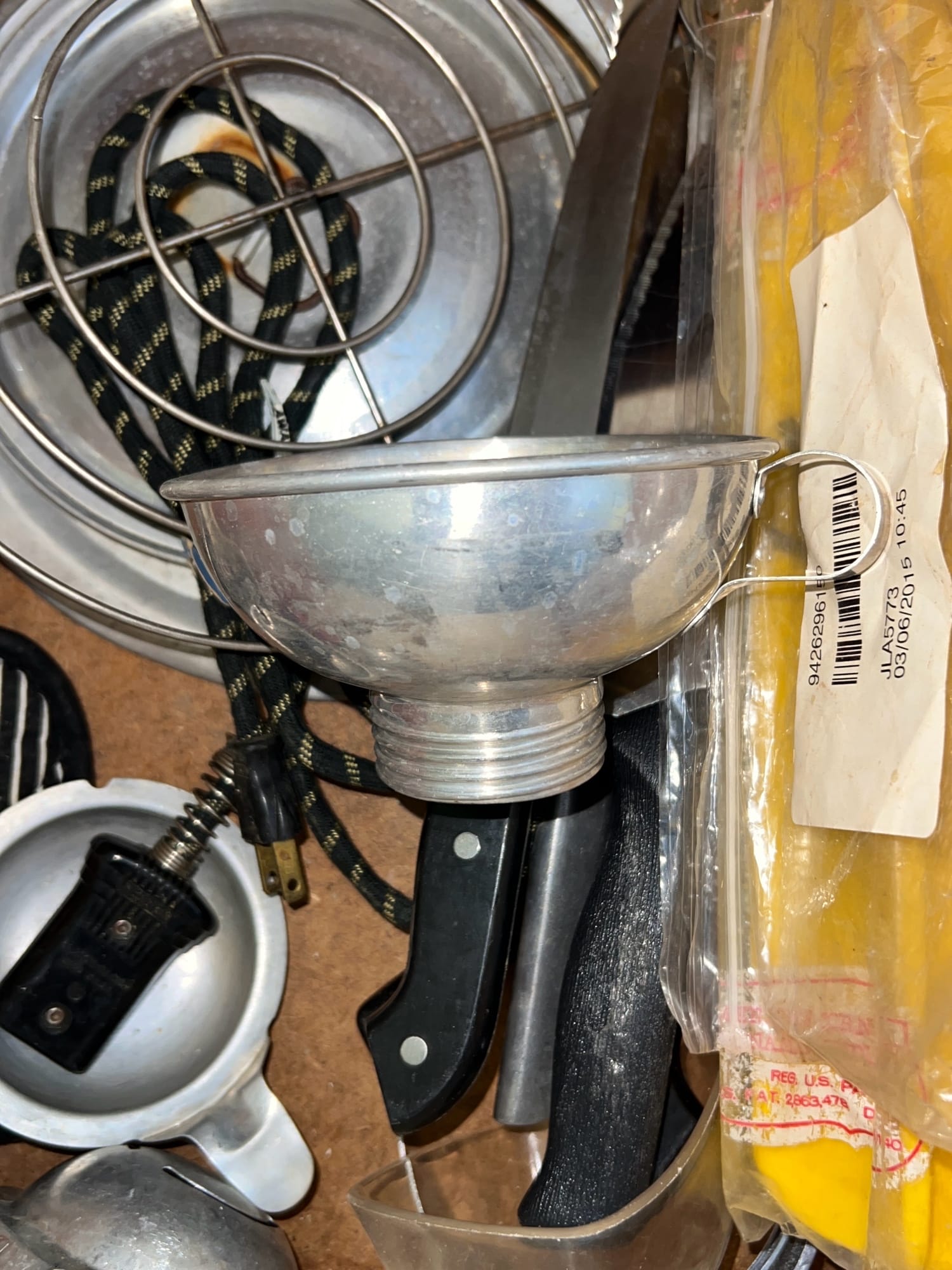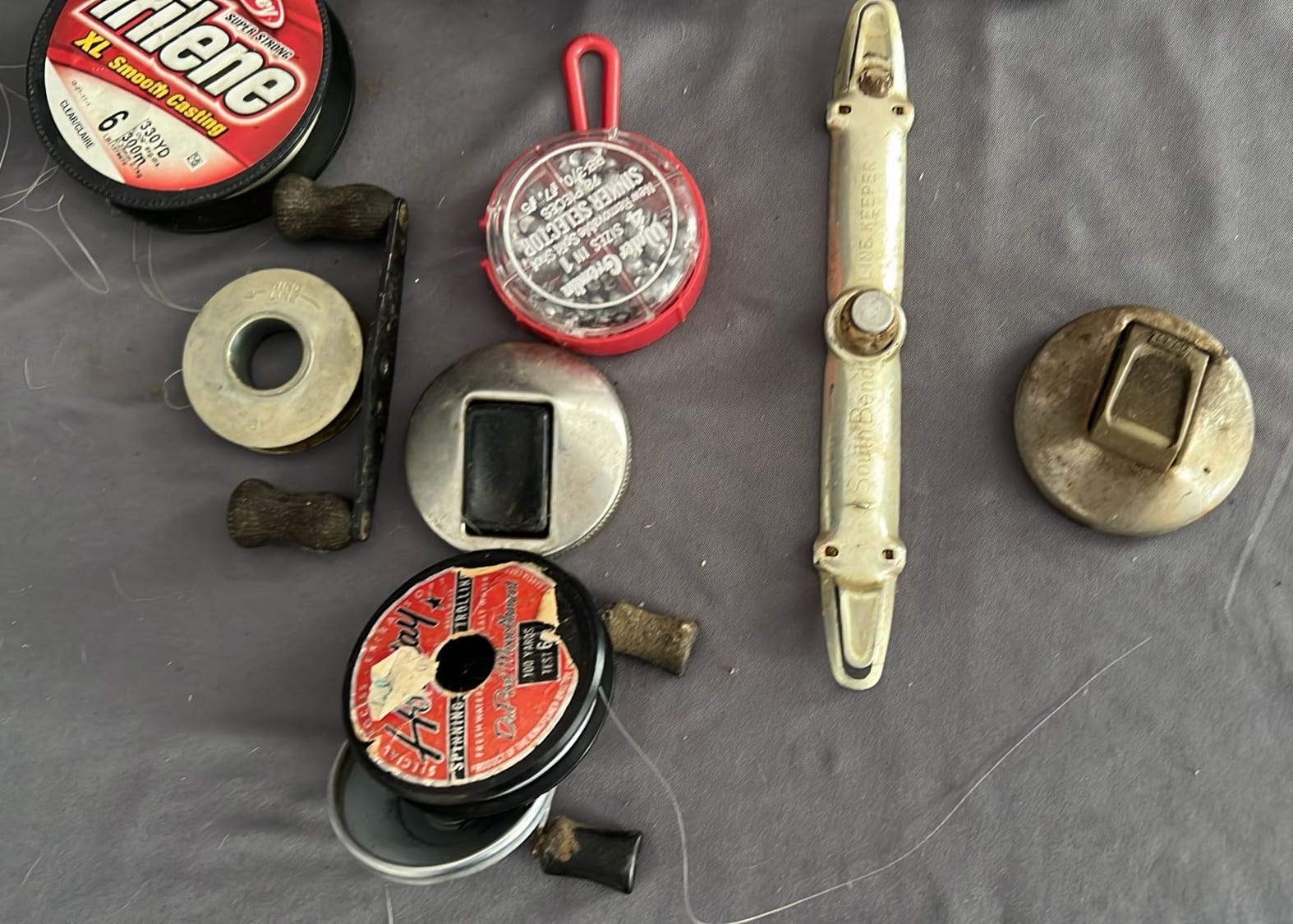 1107 Black & Decker #76-234 Deluxe Router Guide • Caster assortment (Rusty) • Gold Mining Pan 11” • Arrow 1/2” Staples • Aluminium Alloy Square • Splitting Wedge • misc