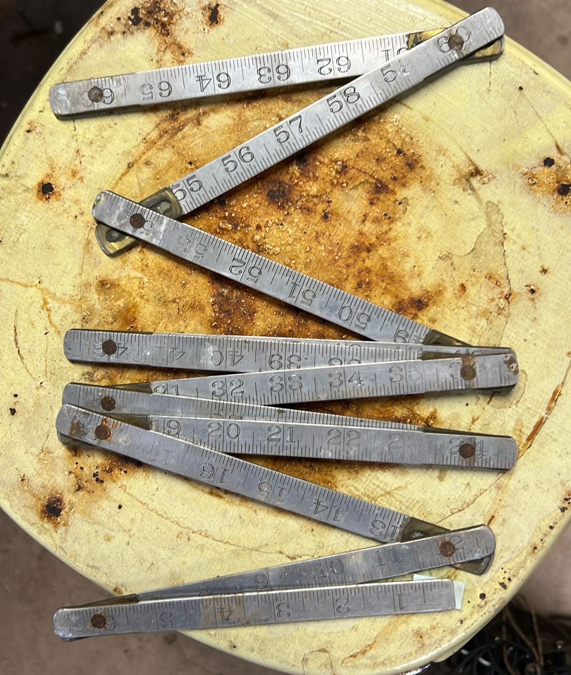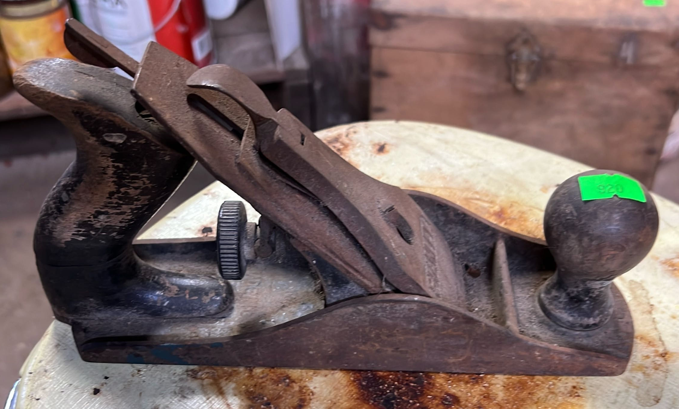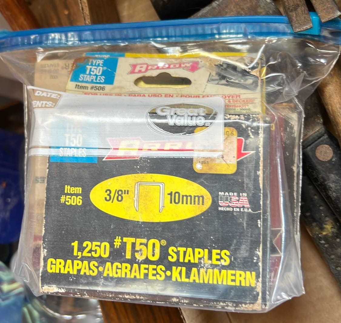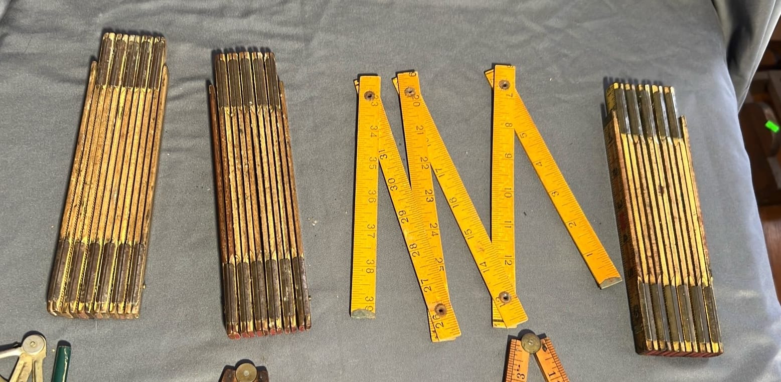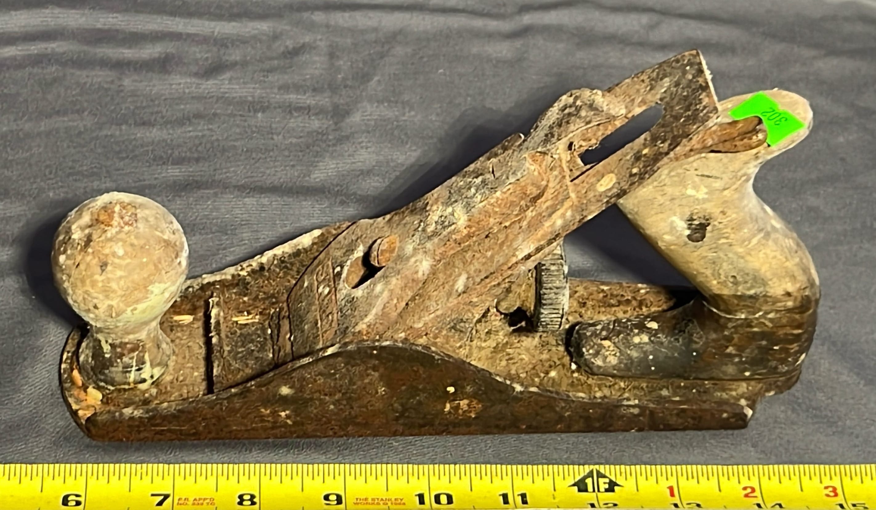 1107 Black & Decker #76-234 Deluxe Router Guide • Caster assortment (Rusty) • Gold Mining Pan 11” • Arrow 1/2” Staples • Aluminium Alloy Square • Splitting Wedge • misc