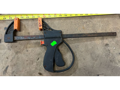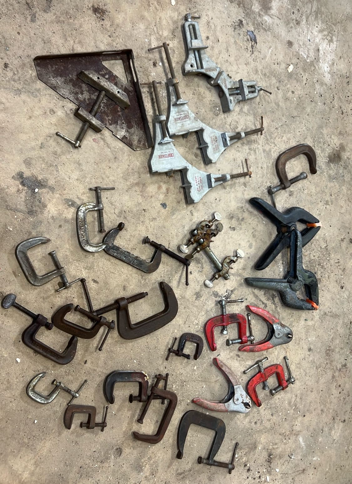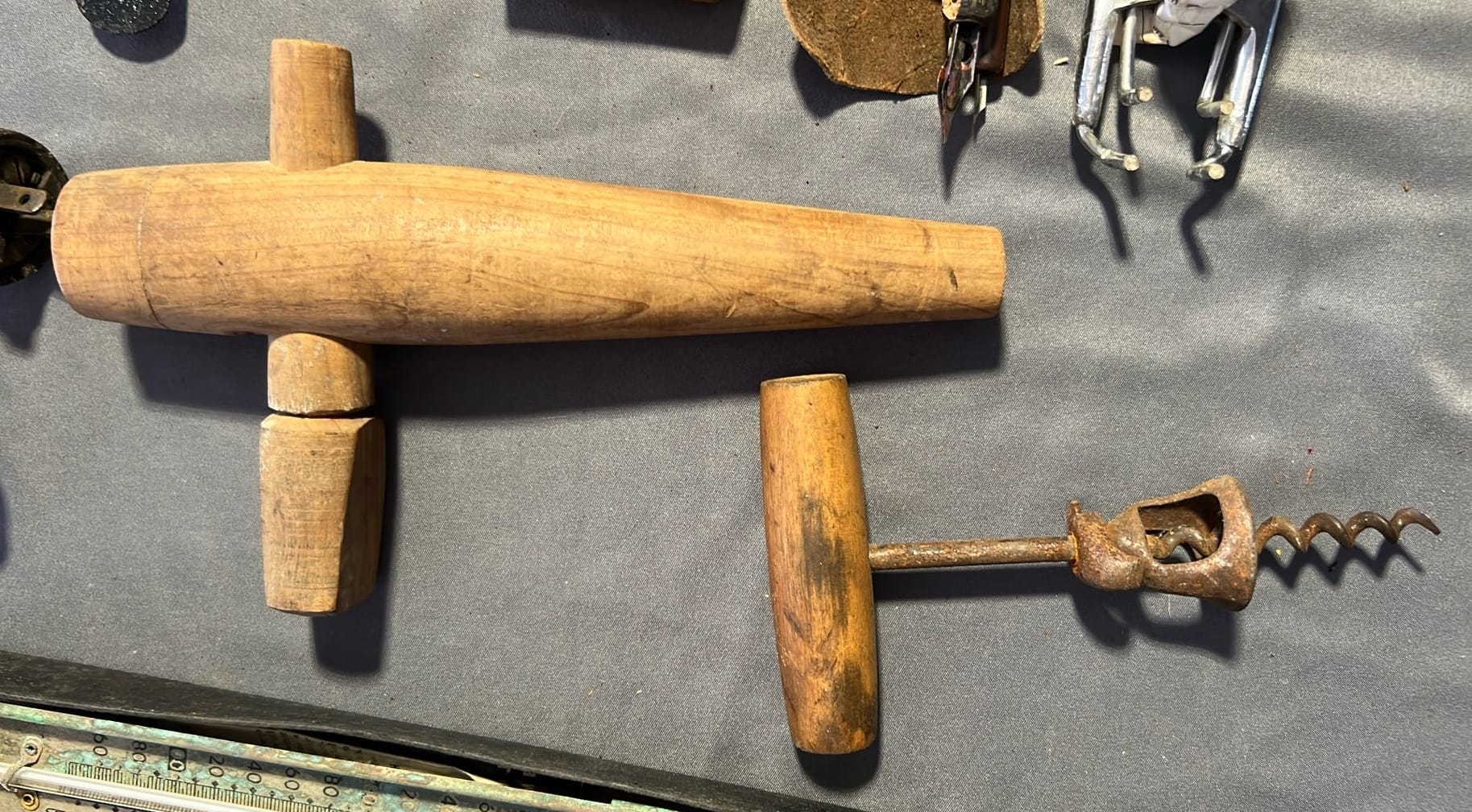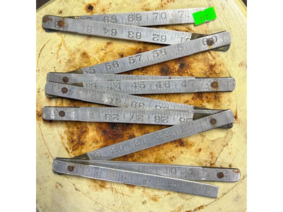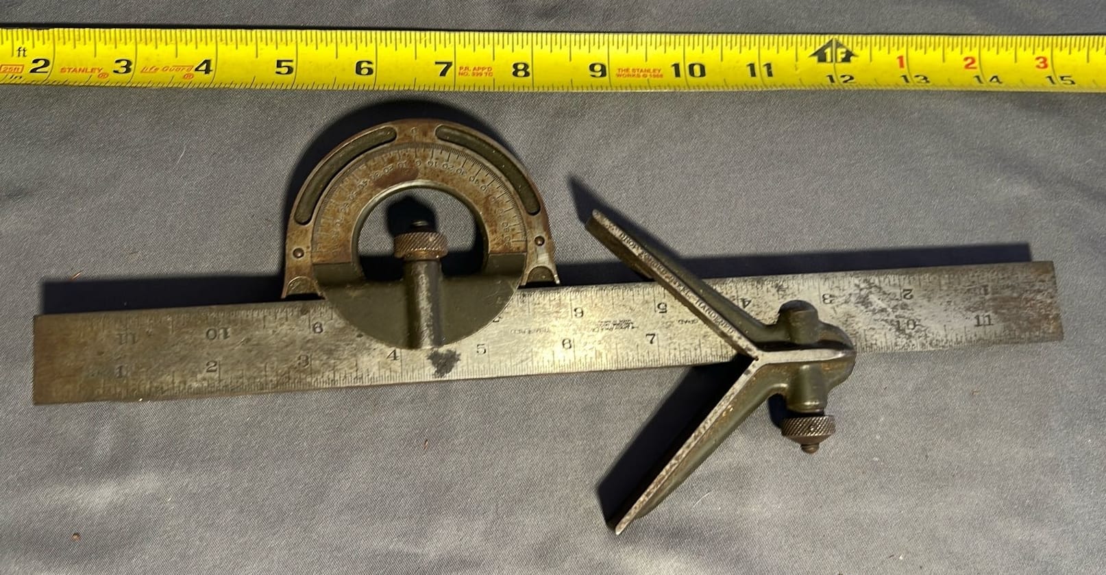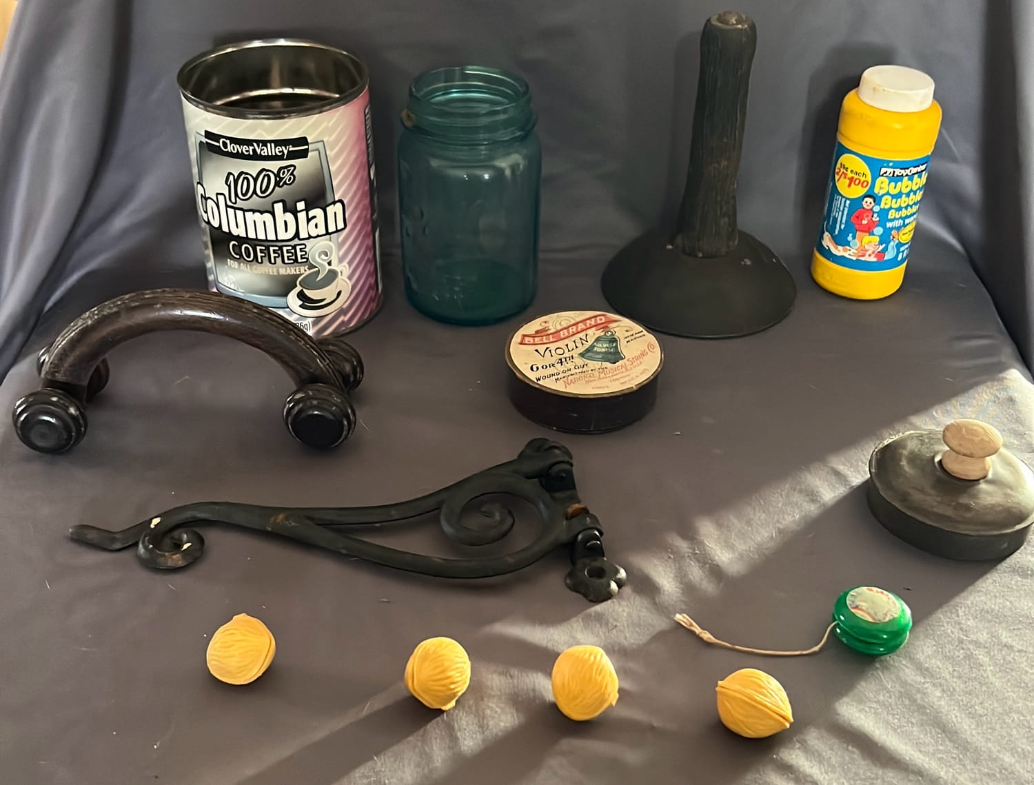 1107 Black & Decker #76-234 Deluxe Router Guide • Caster assortment (Rusty) • Gold Mining Pan 11” • Arrow 1/2” Staples • Aluminium Alloy Square • Splitting Wedge • misc