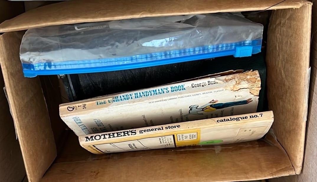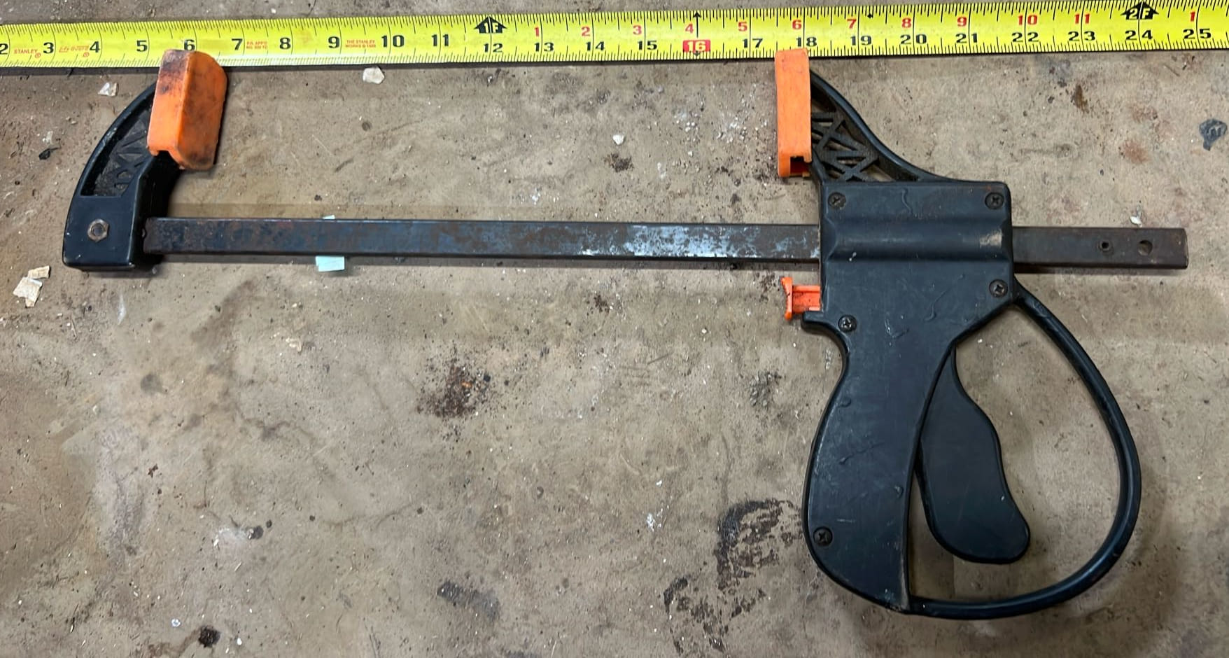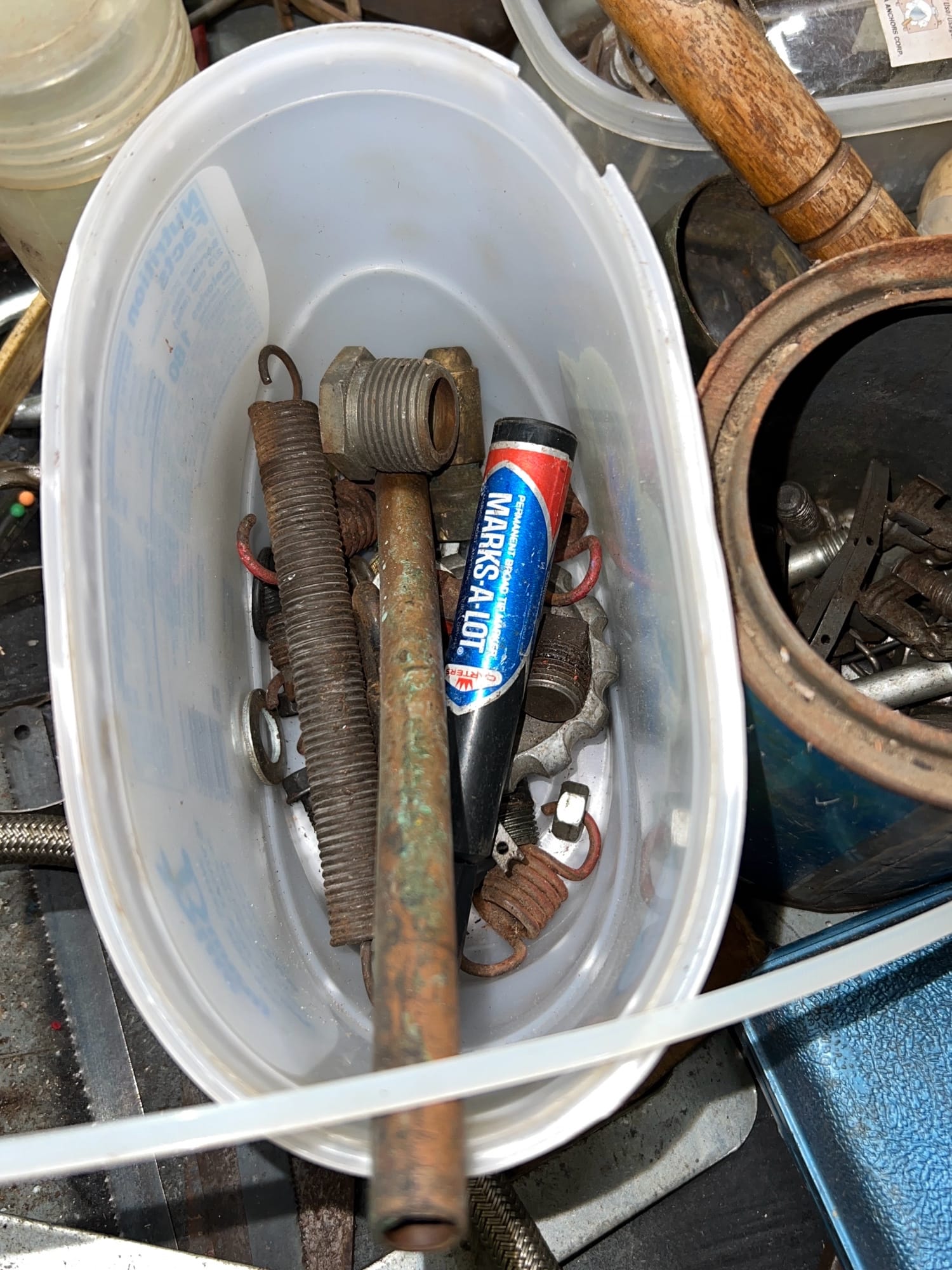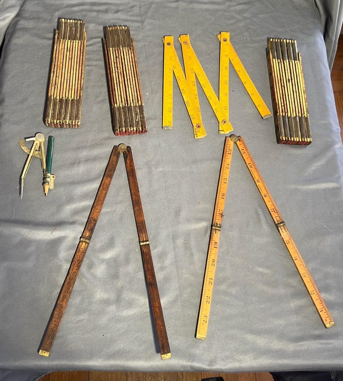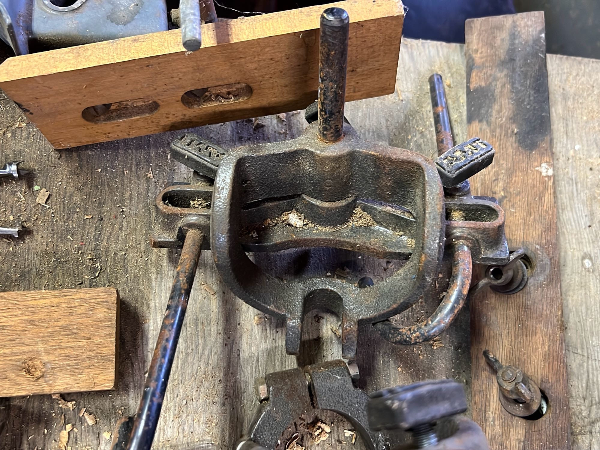 1107 Black & Decker #76-234 Deluxe Router Guide • Caster assortment (Rusty) • Gold Mining Pan 11” • Arrow 1/2” Staples • Aluminium Alloy Square • Splitting Wedge • misc