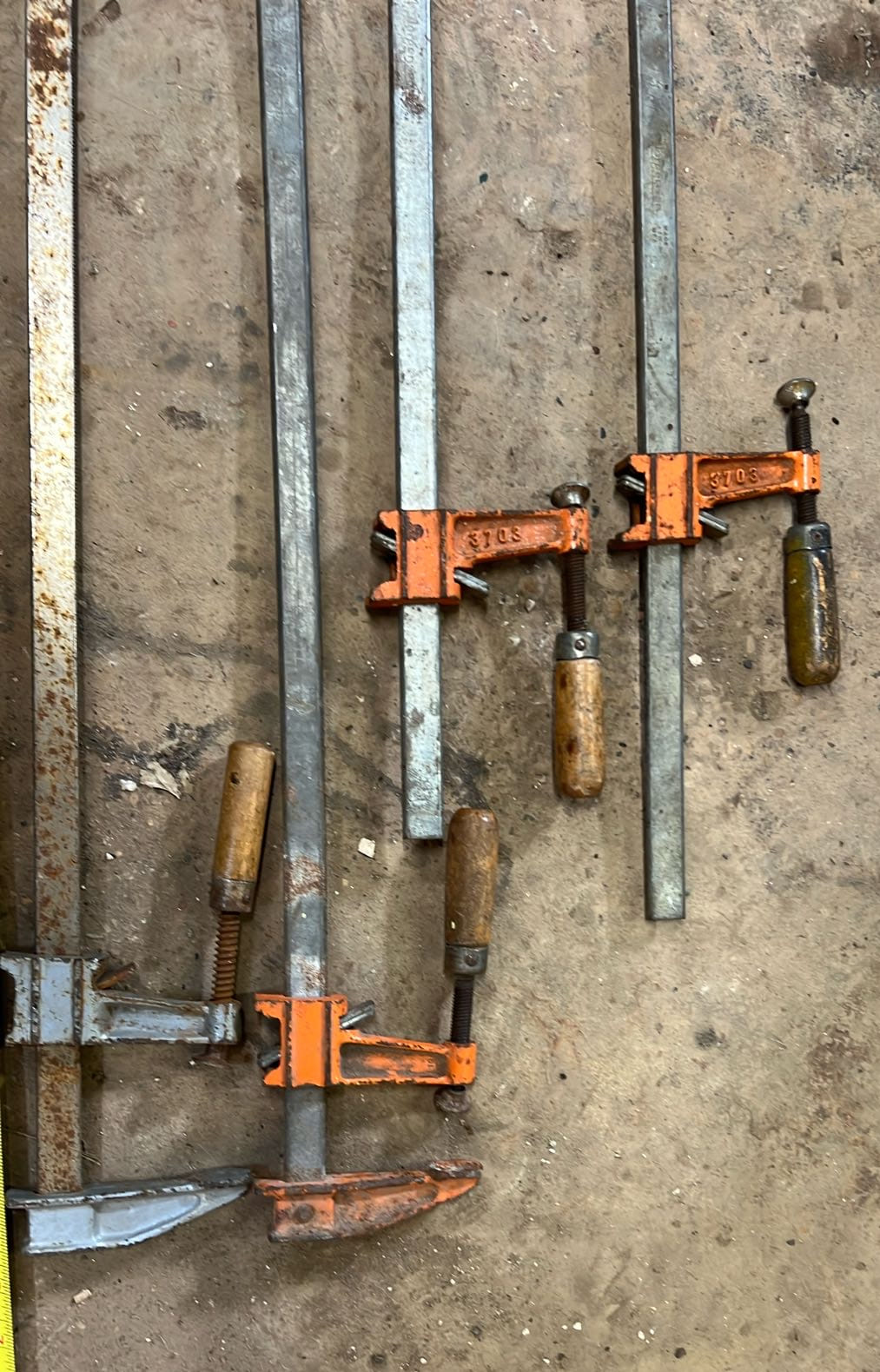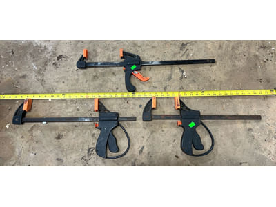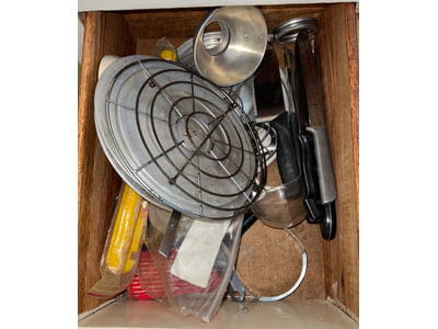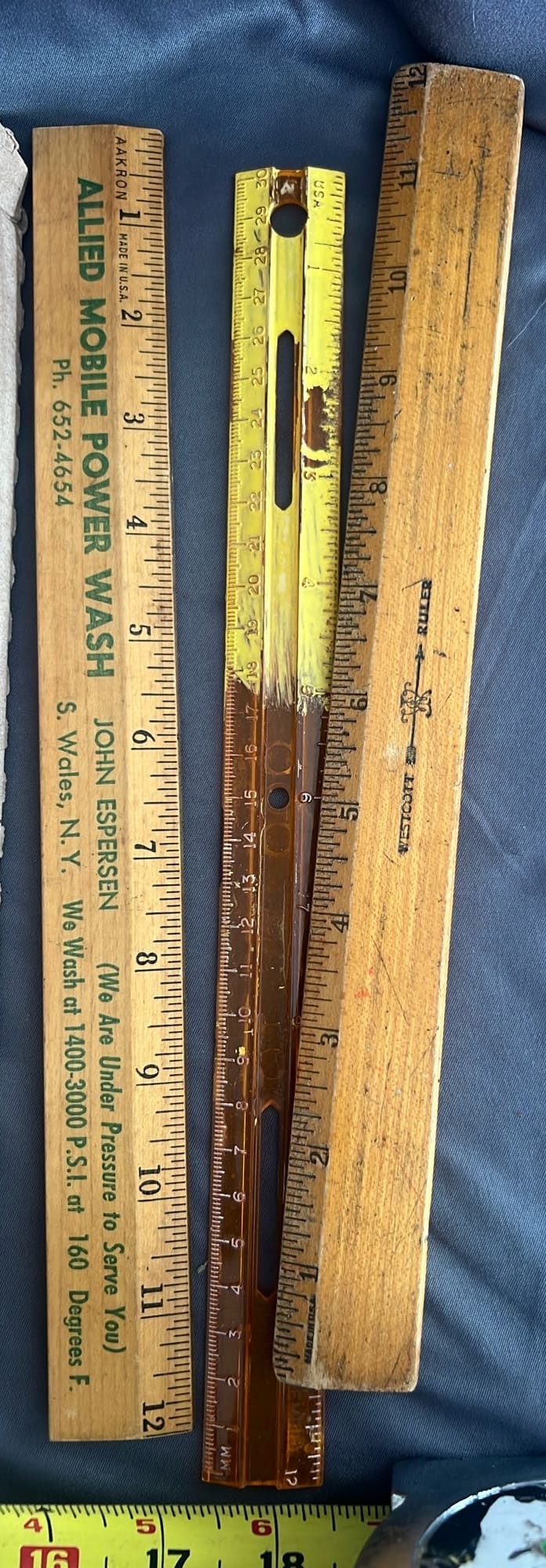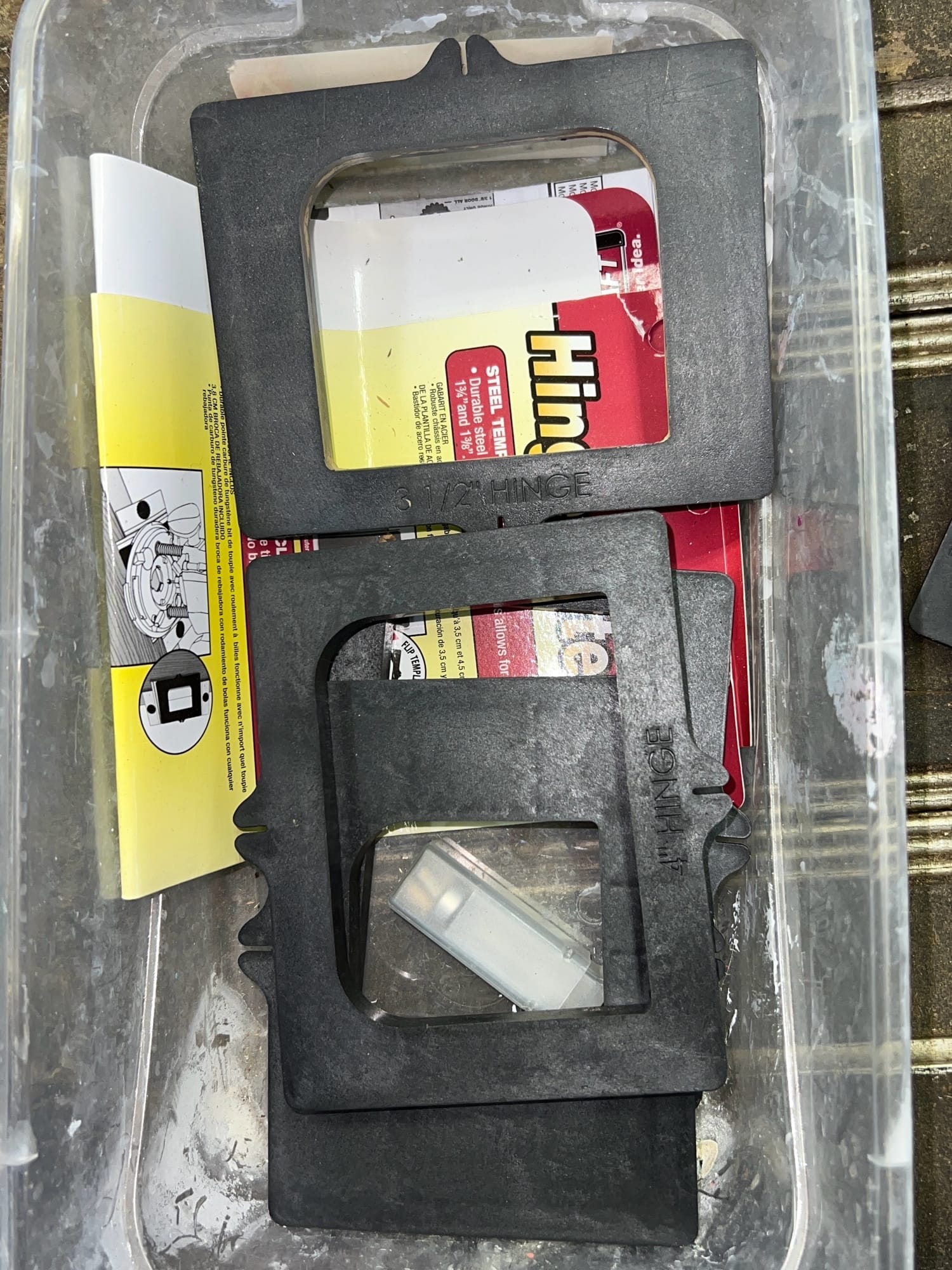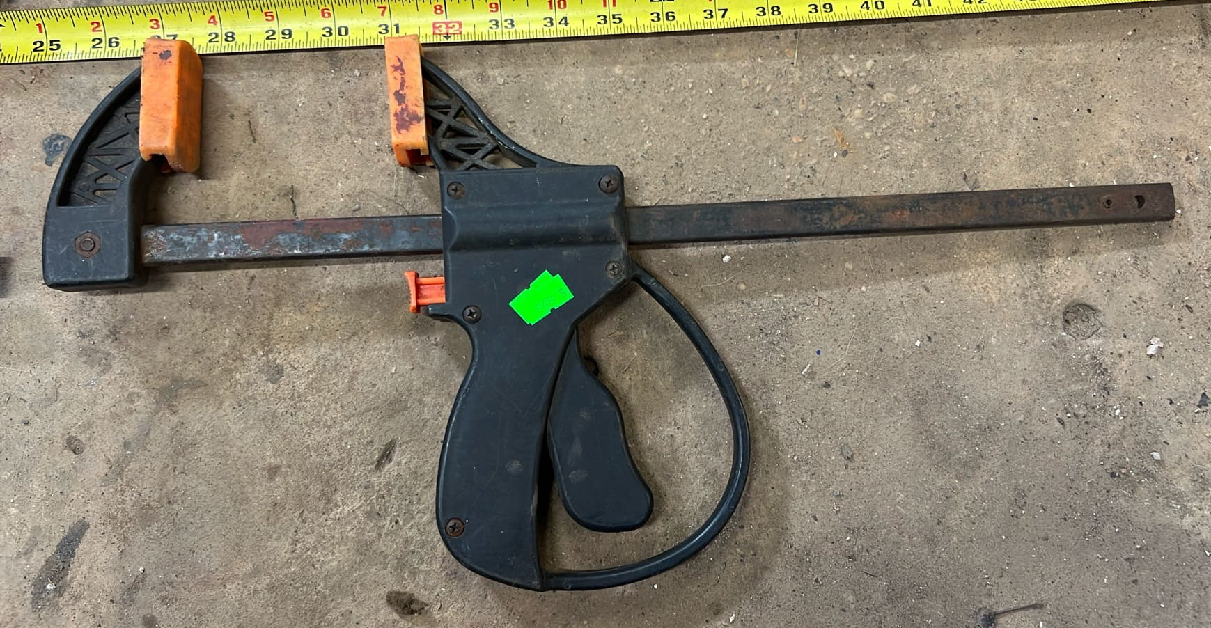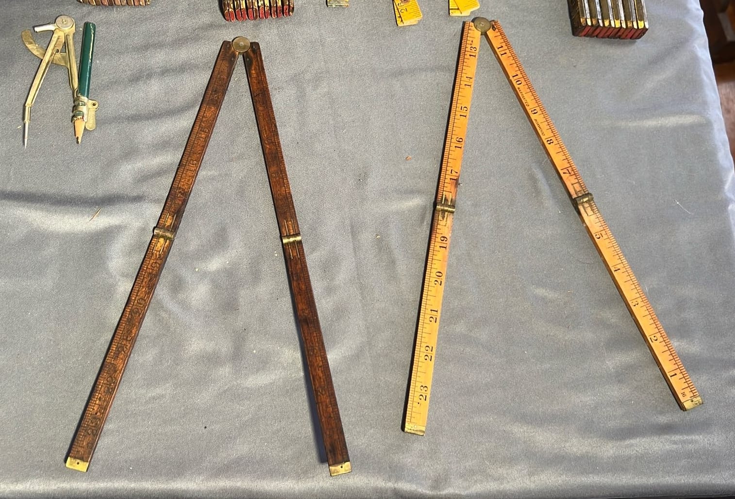 1107 Black & Decker #76-234 Deluxe Router Guide • Caster assortment (Rusty) • Gold Mining Pan 11” • Arrow 1/2” Staples • Aluminium Alloy Square • Splitting Wedge • misc