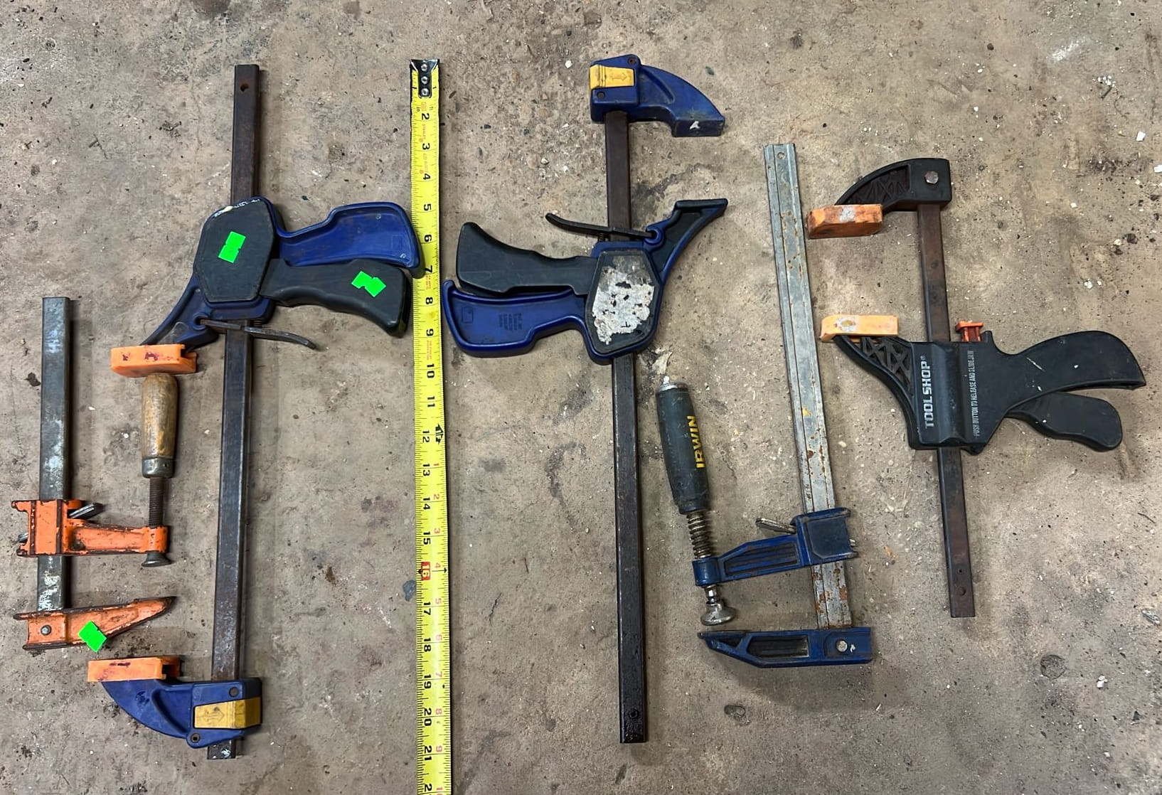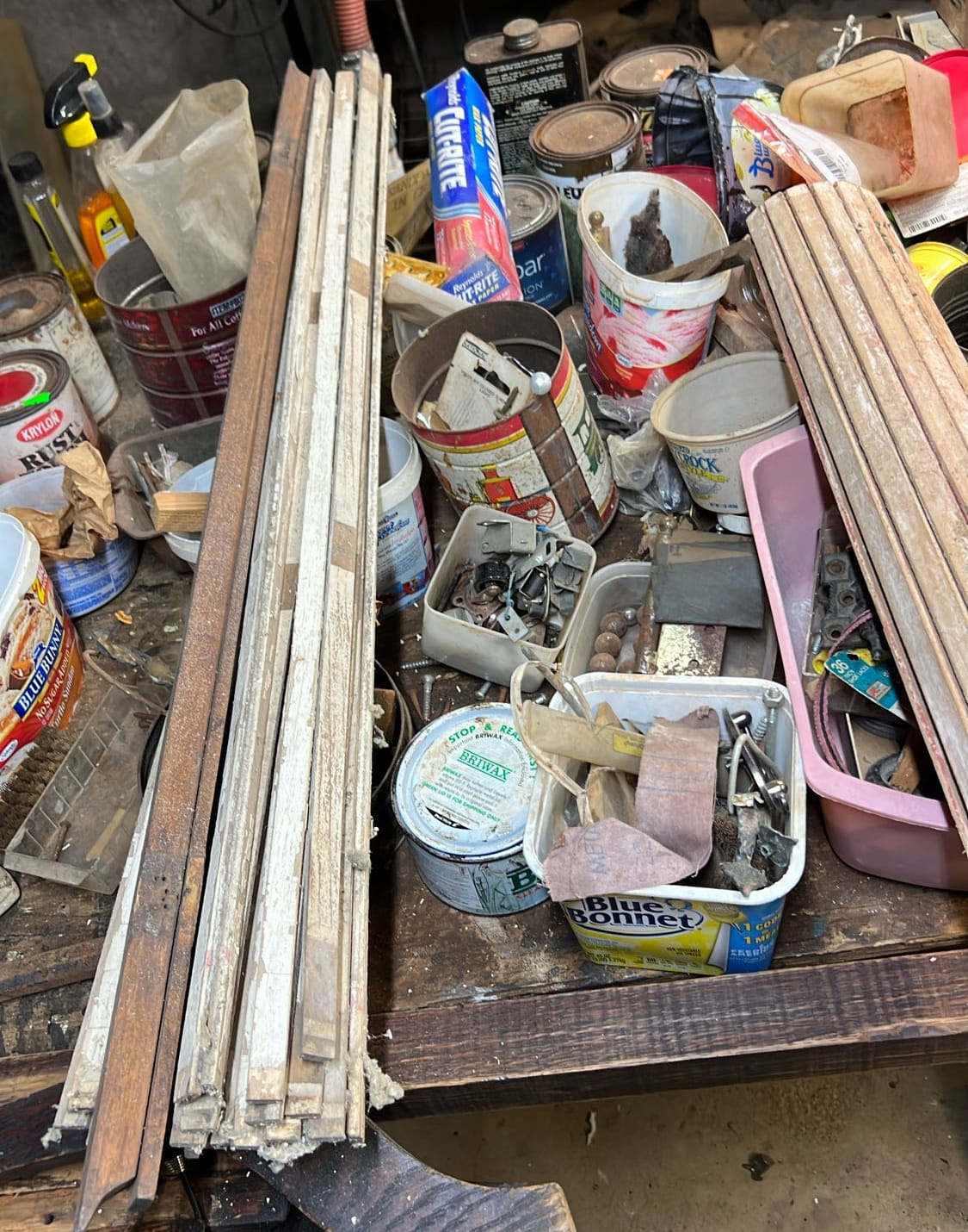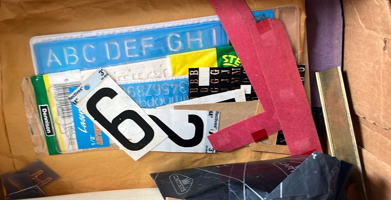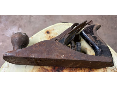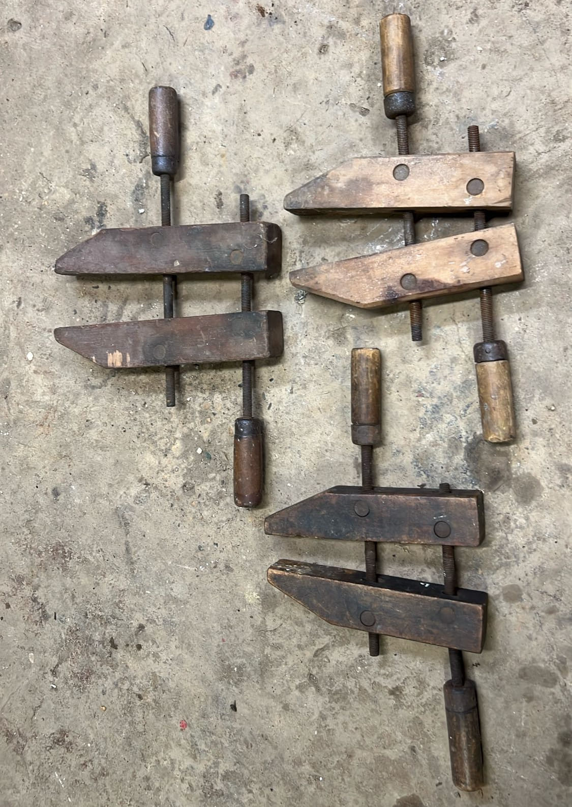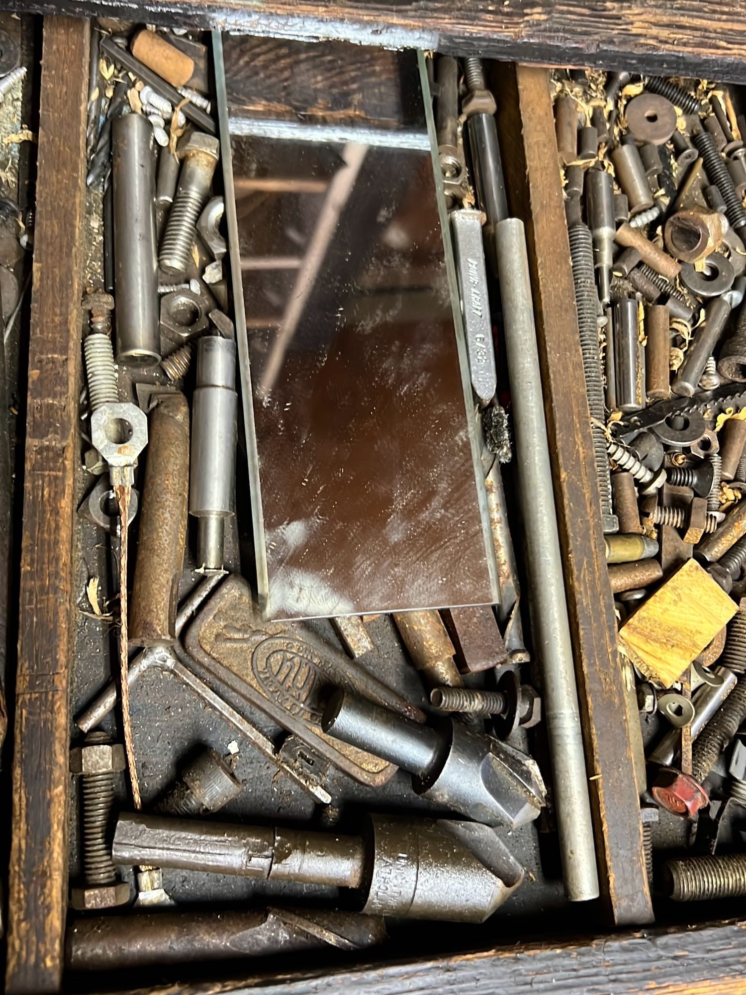 1107 Black & Decker #76-234 Deluxe Router Guide • Caster assortment (Rusty) • Gold Mining Pan 11” • Arrow 1/2” Staples • Aluminium Alloy Square • Splitting Wedge • misc