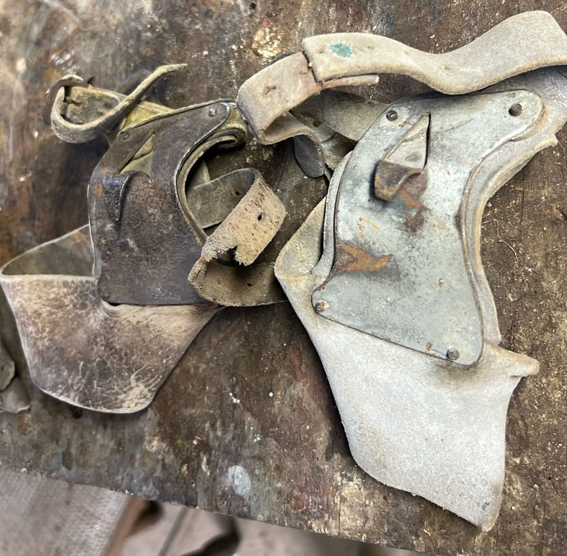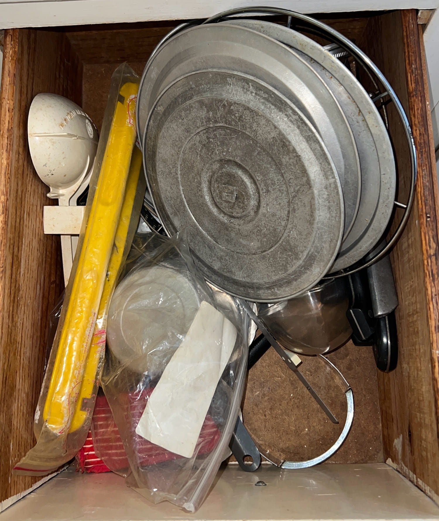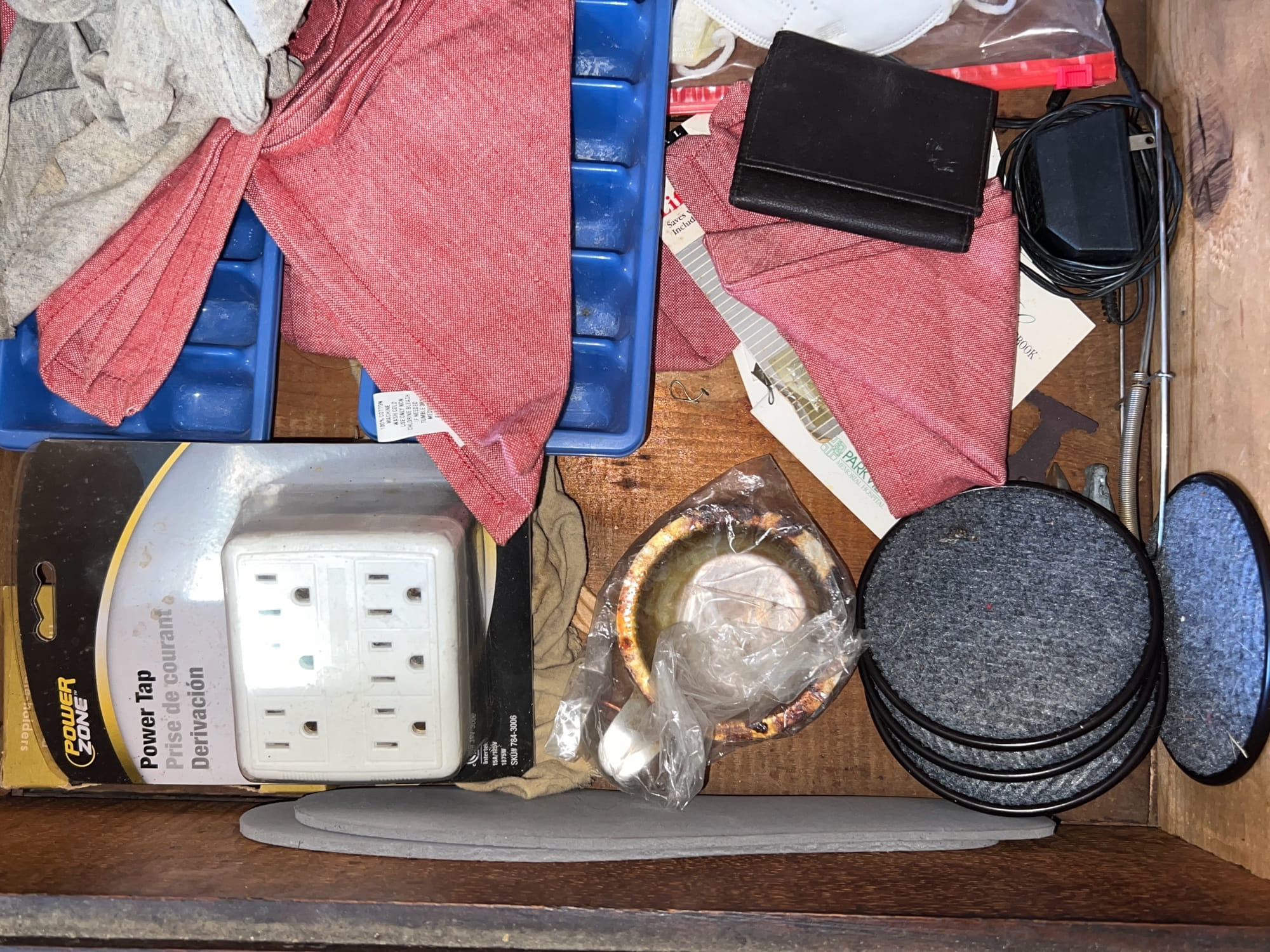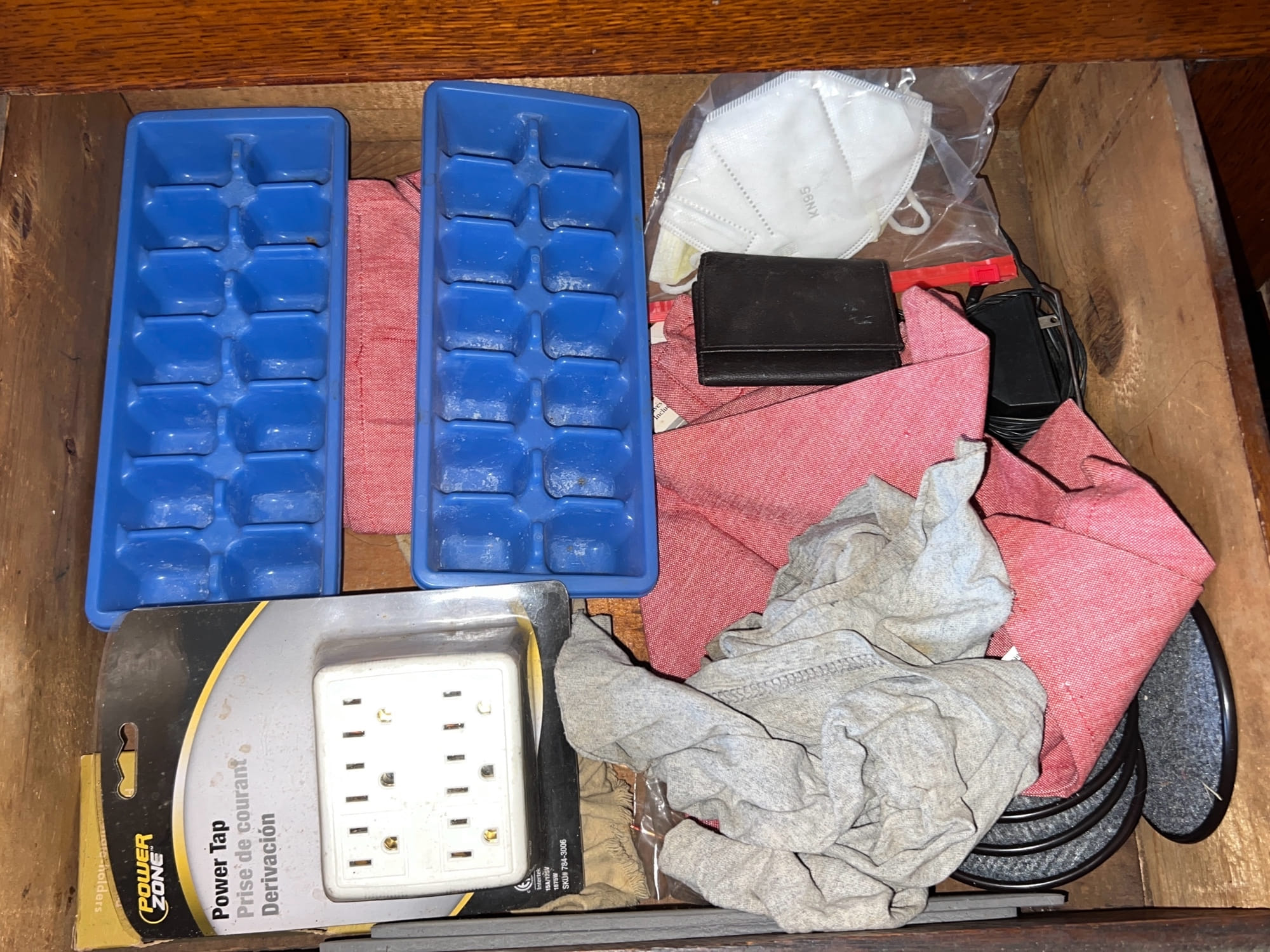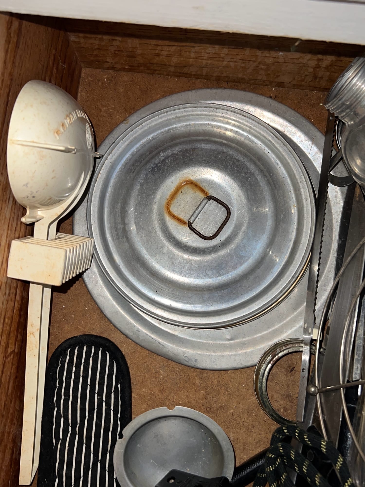 1107 Black & Decker #76-234 Deluxe Router Guide • Caster assortment (Rusty) • Gold Mining Pan 11” • Arrow 1/2” Staples • Aluminium Alloy Square • Splitting Wedge • misc