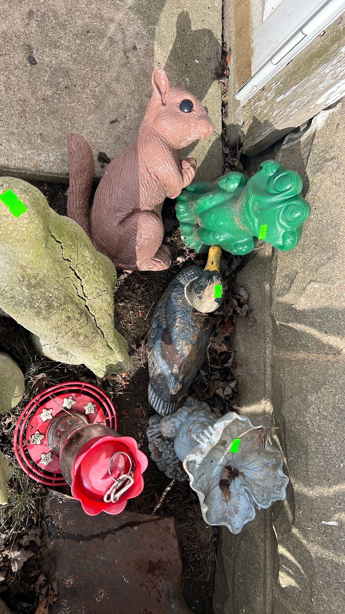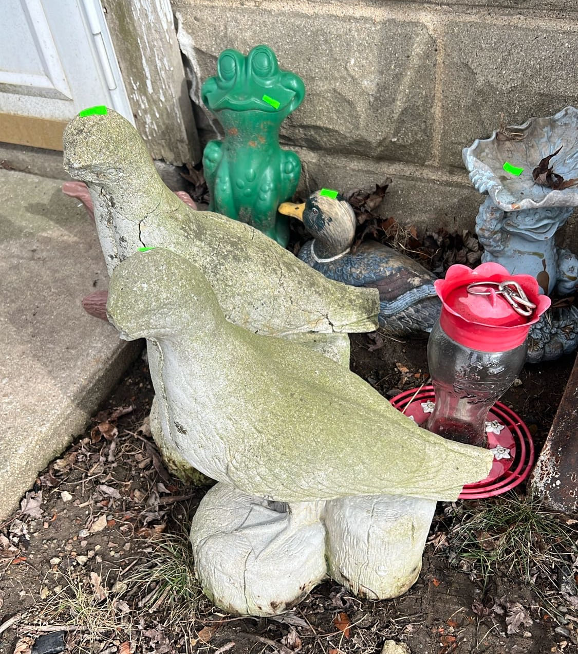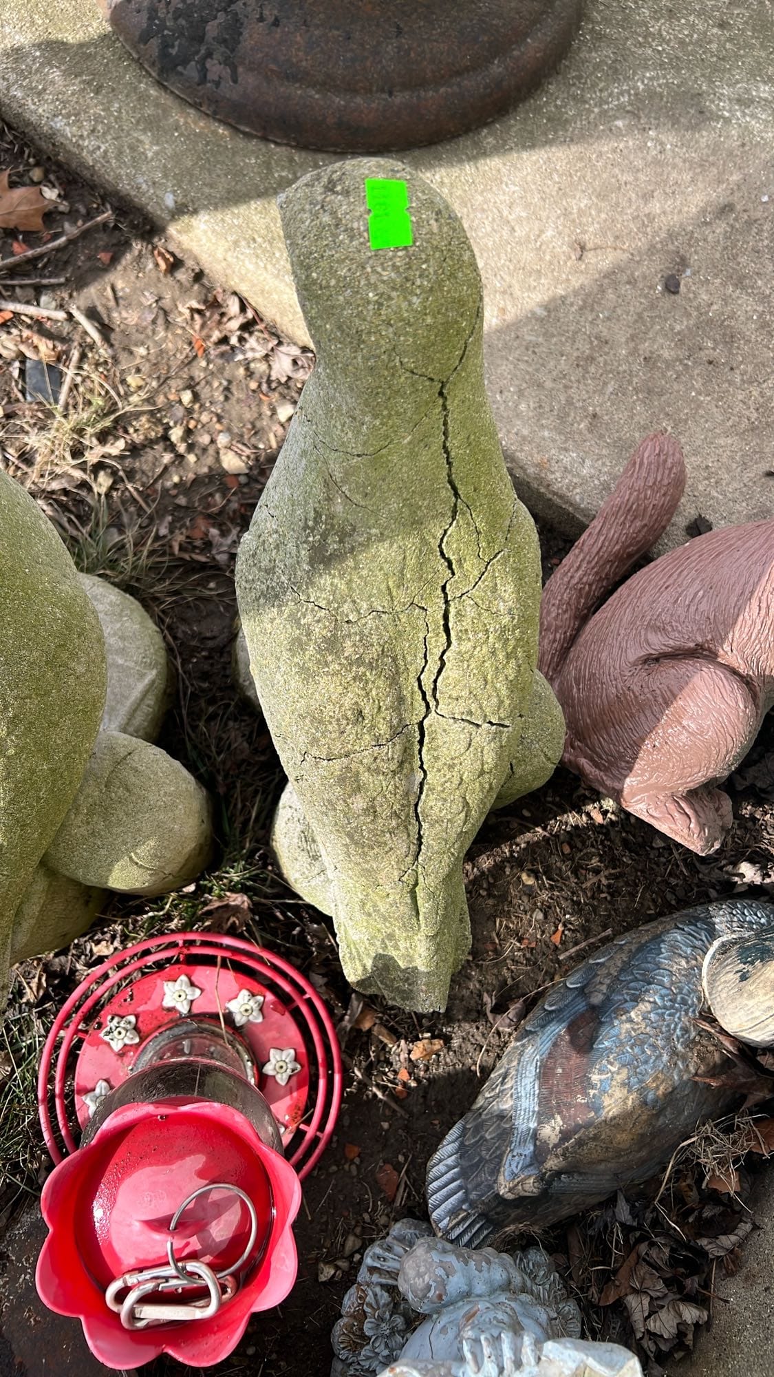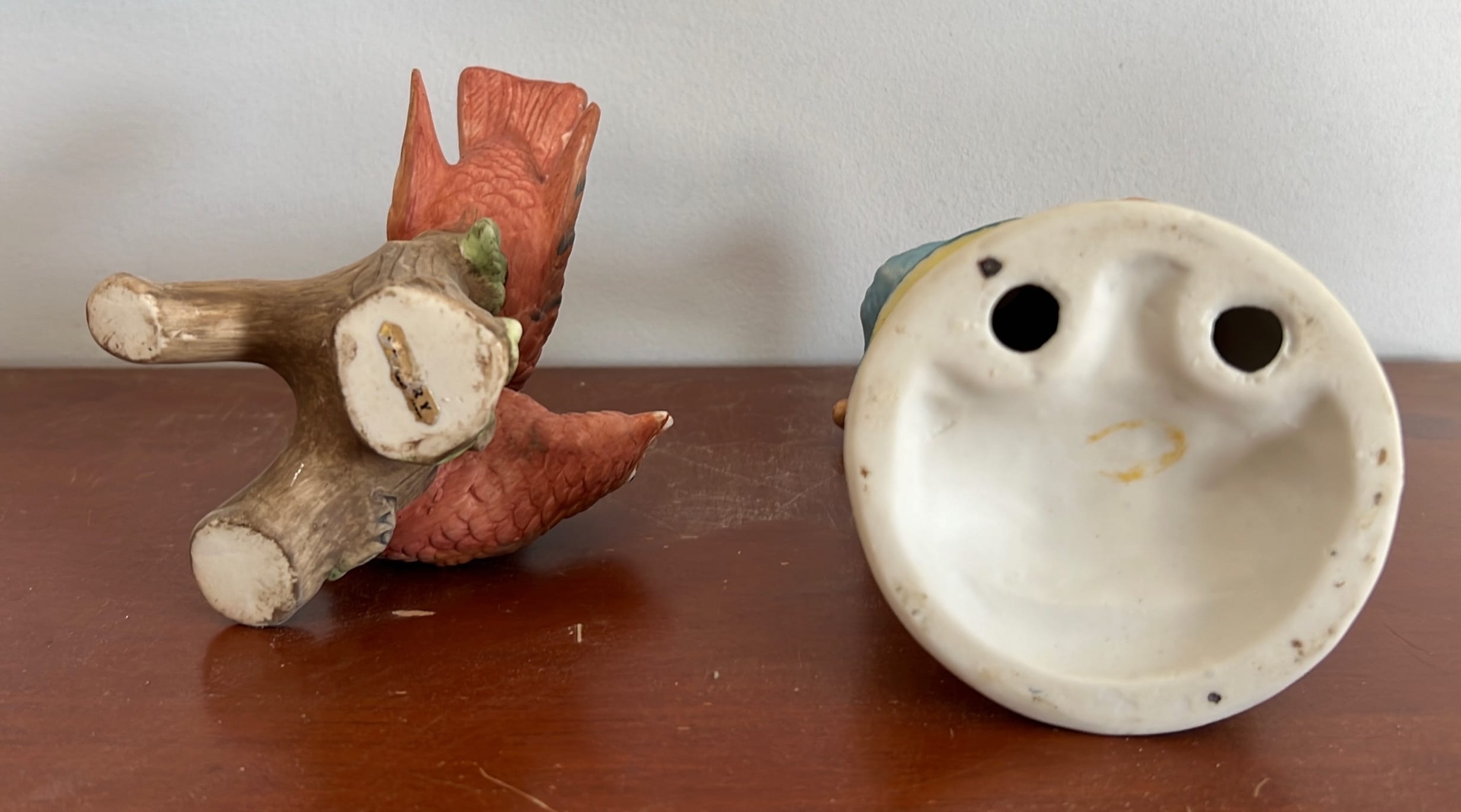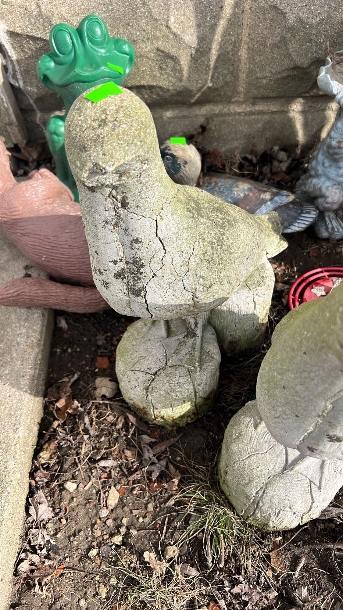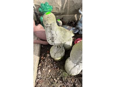 1161 Hummingbird Feeder, cement birds 17” - have damage, plastic lawn ornaments
