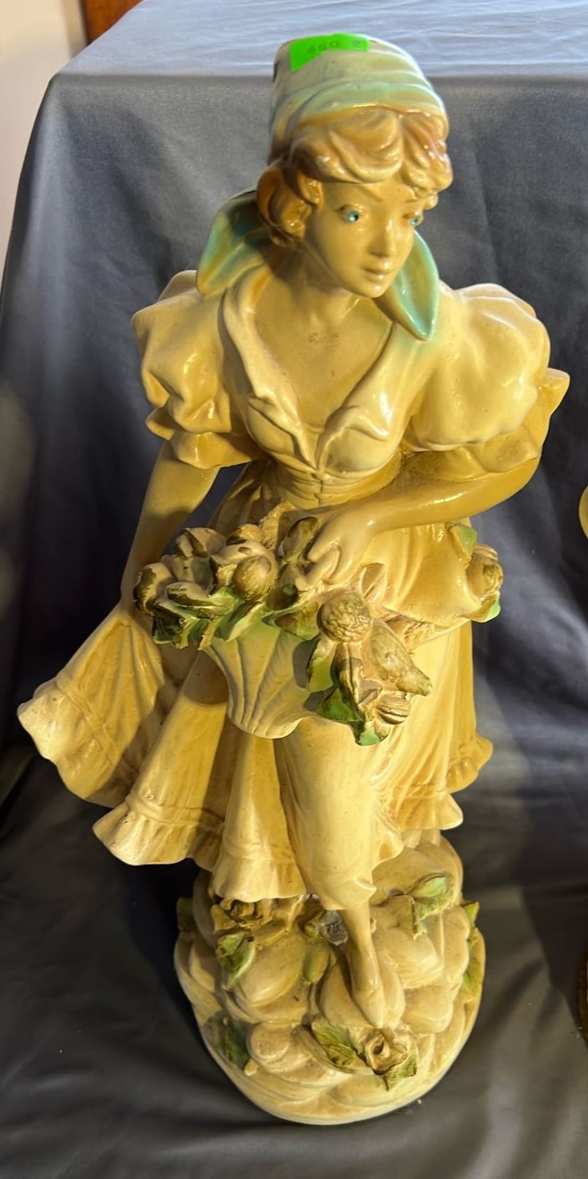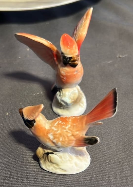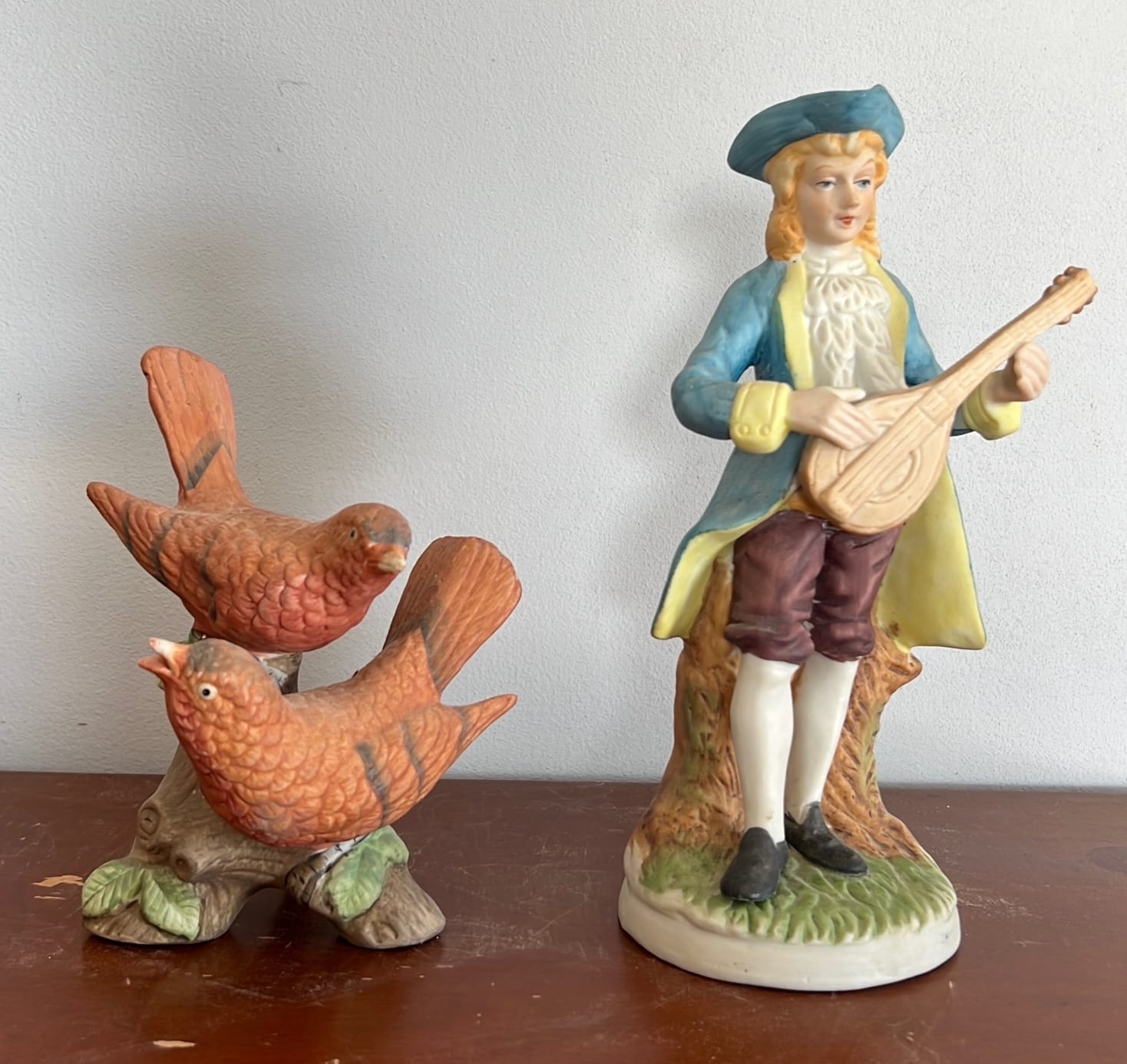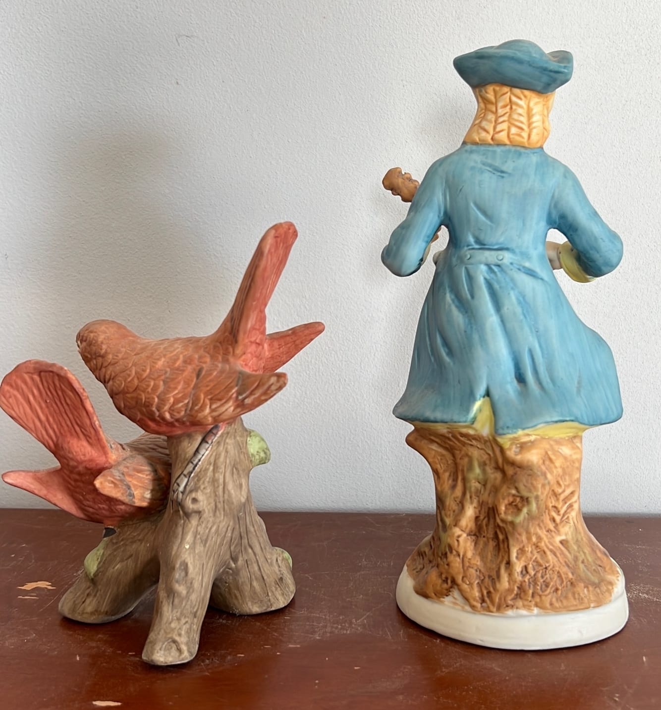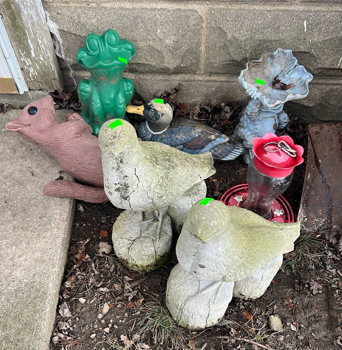 1161 Hummingbird Feeder, cement birds 17” - have damage, plastic lawn ornaments
