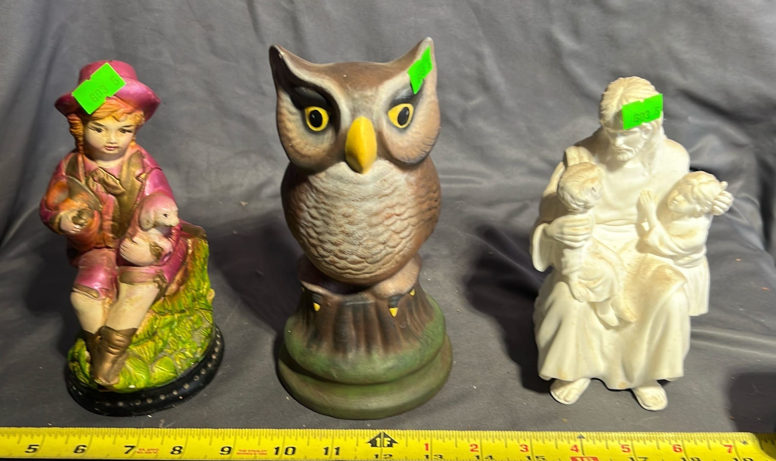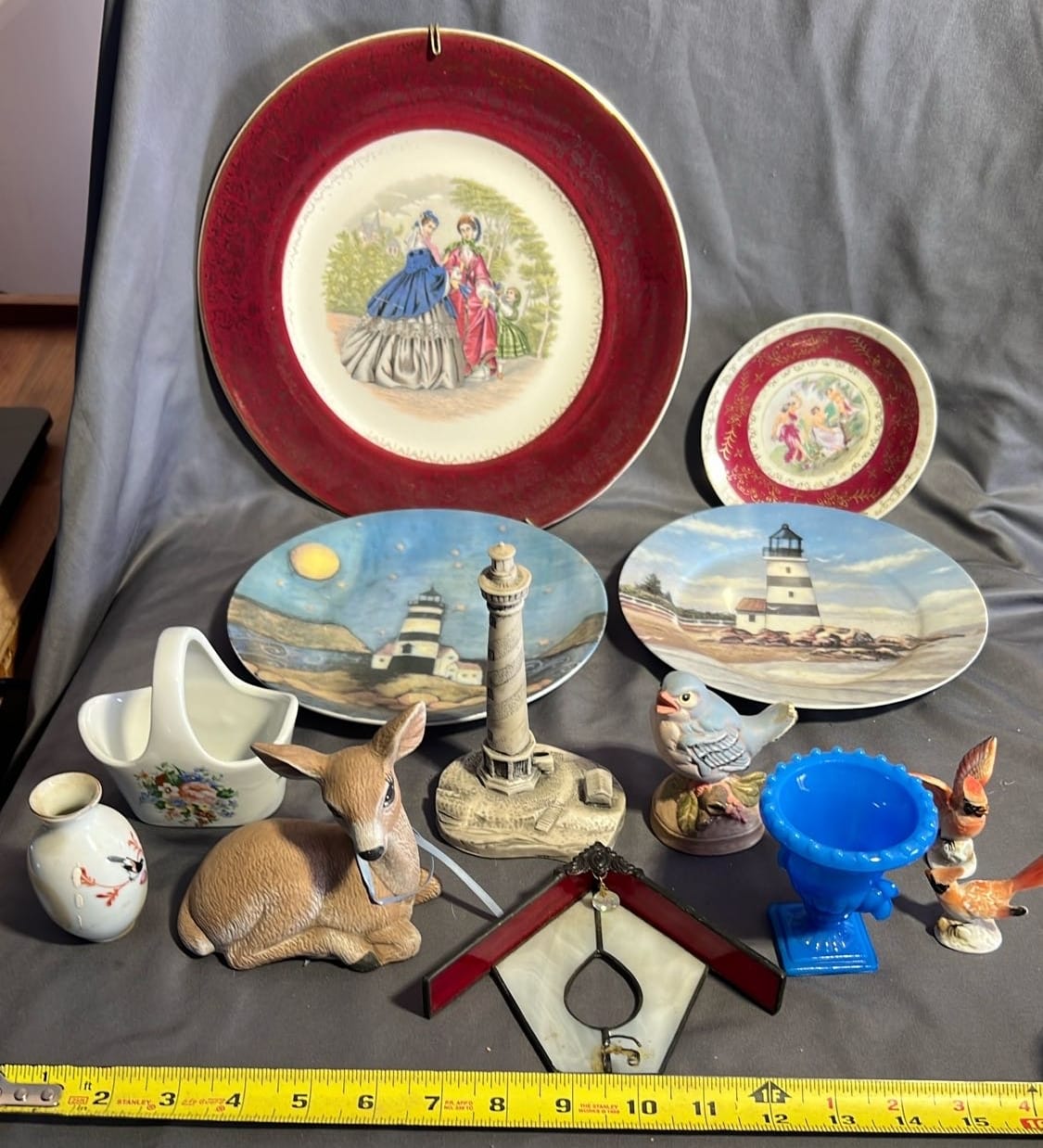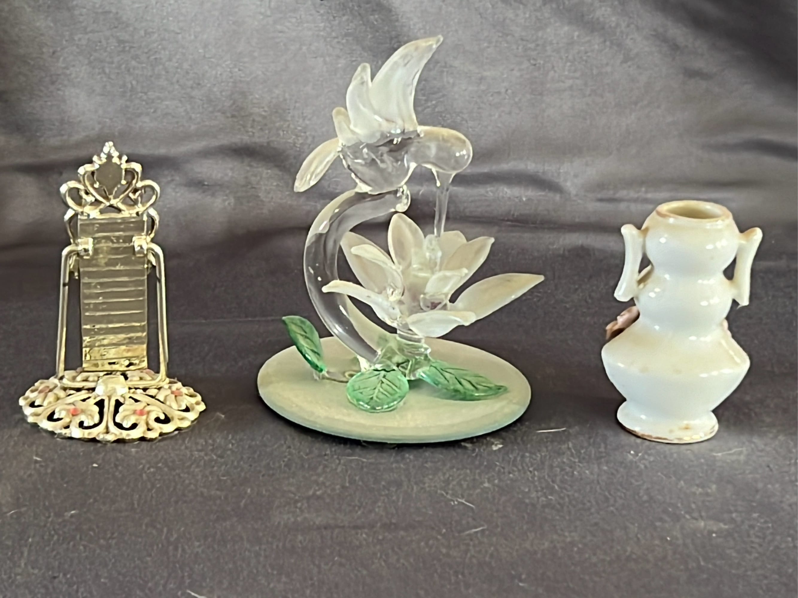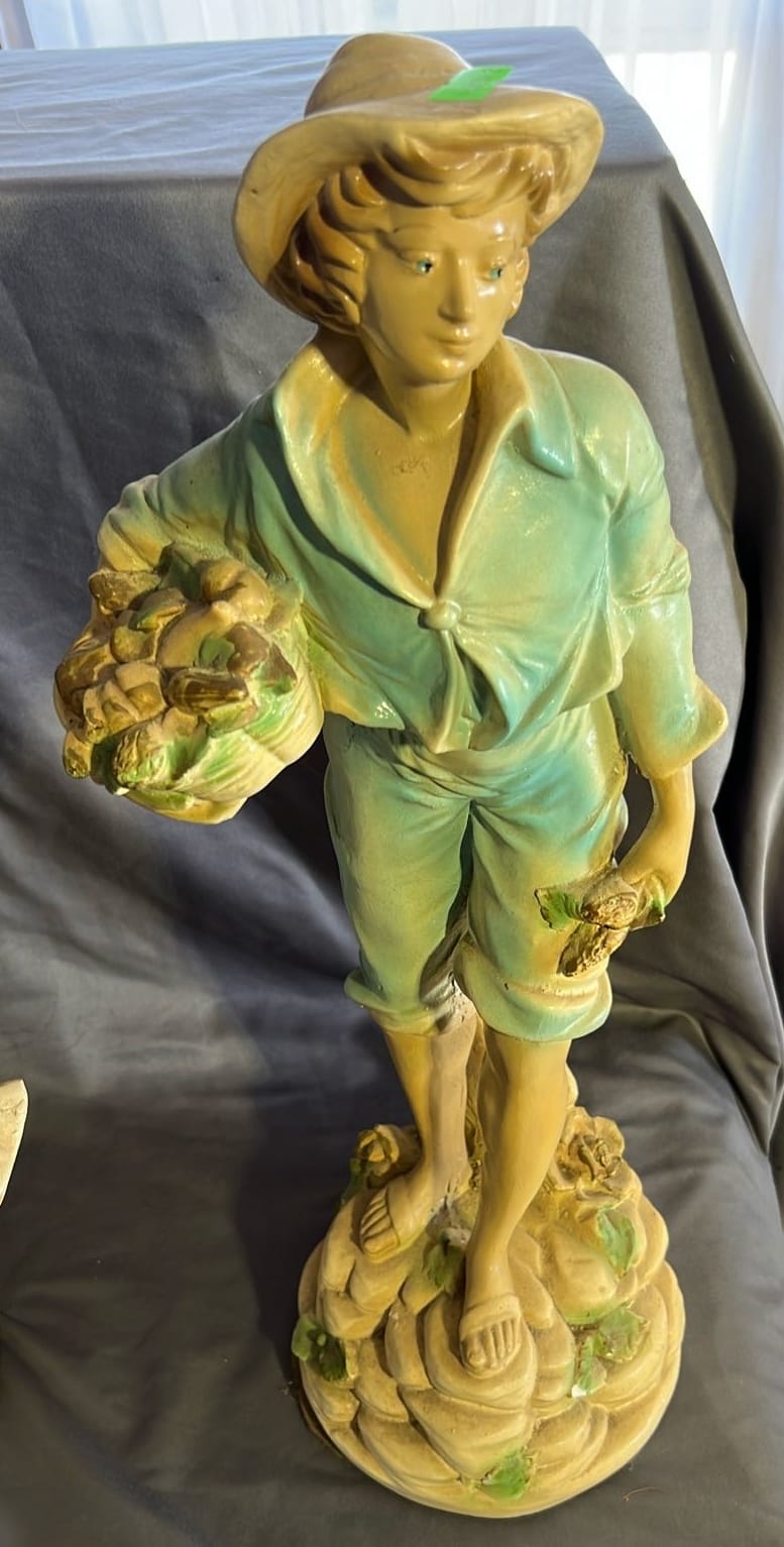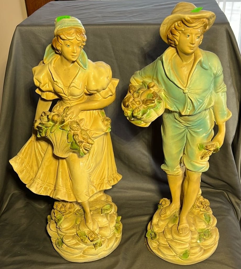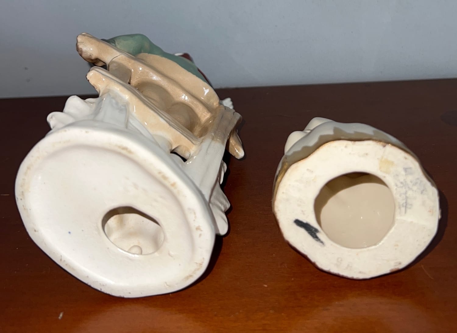 1161 Hummingbird Feeder, cement birds 17” - have damage, plastic lawn ornaments