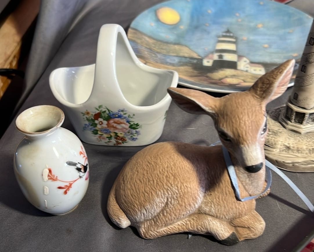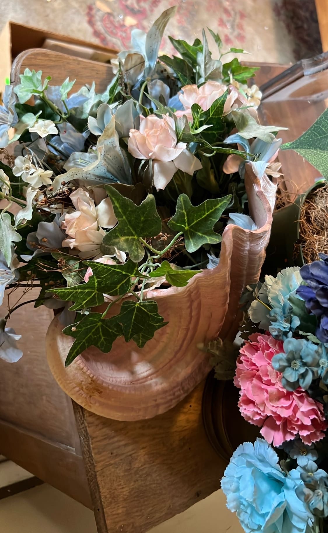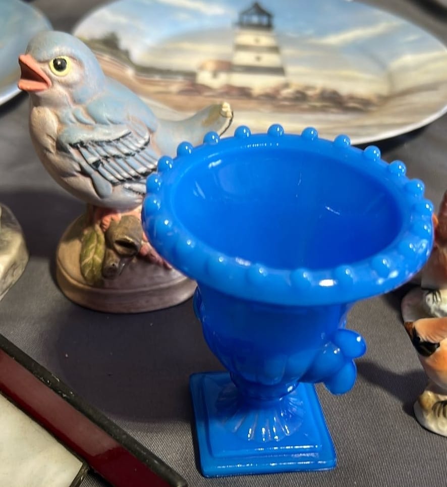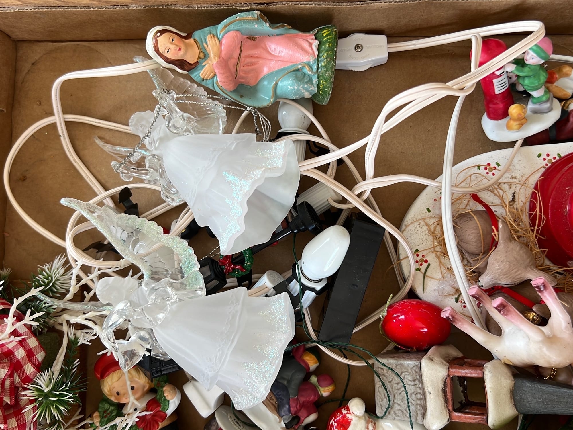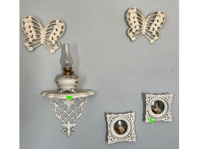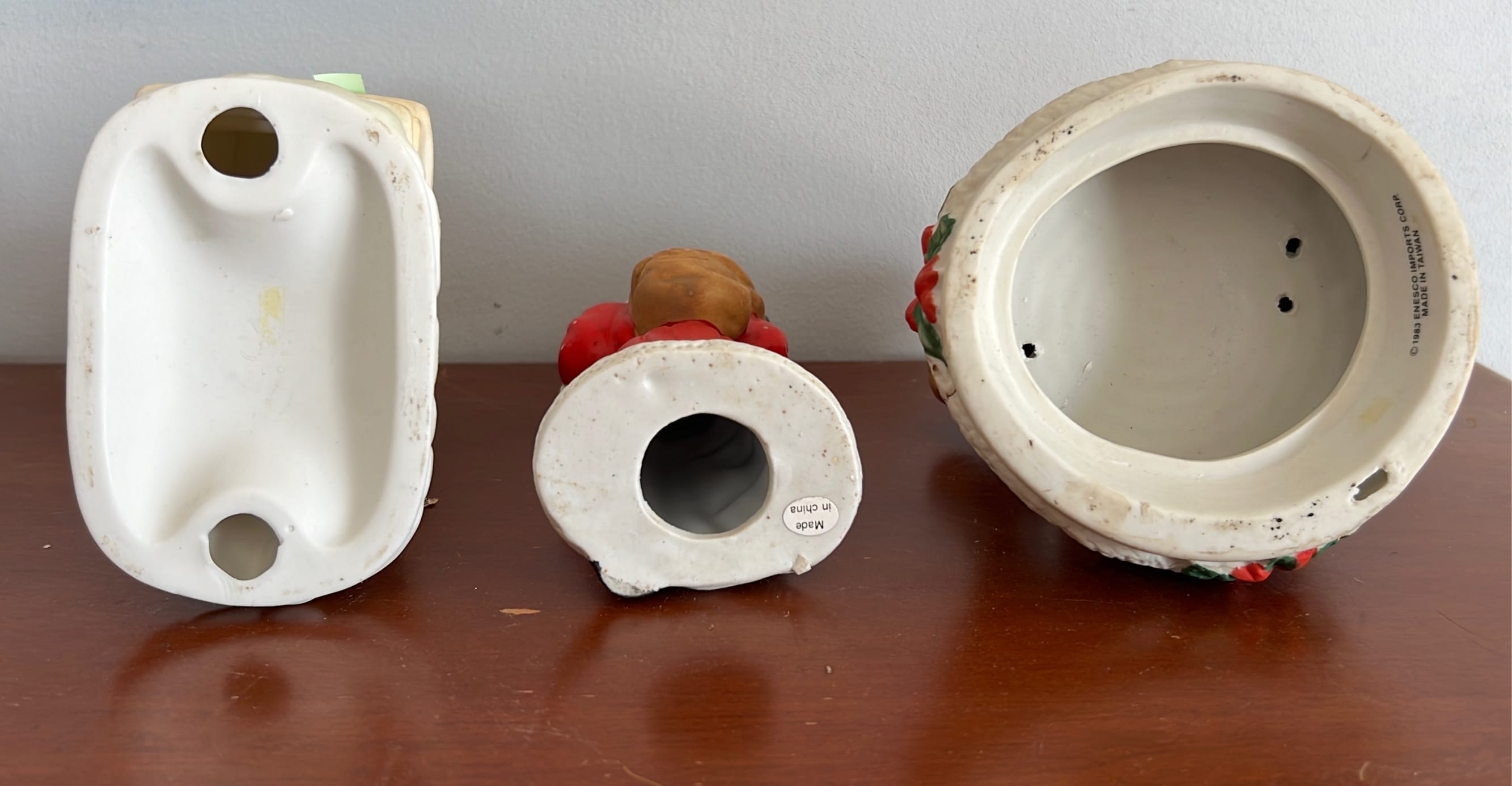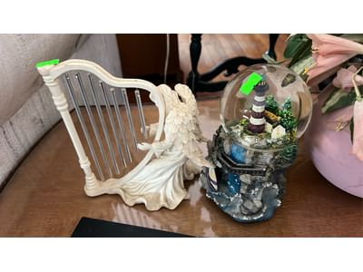 1161 Hummingbird Feeder, cement birds 17” - have damage, plastic lawn ornaments