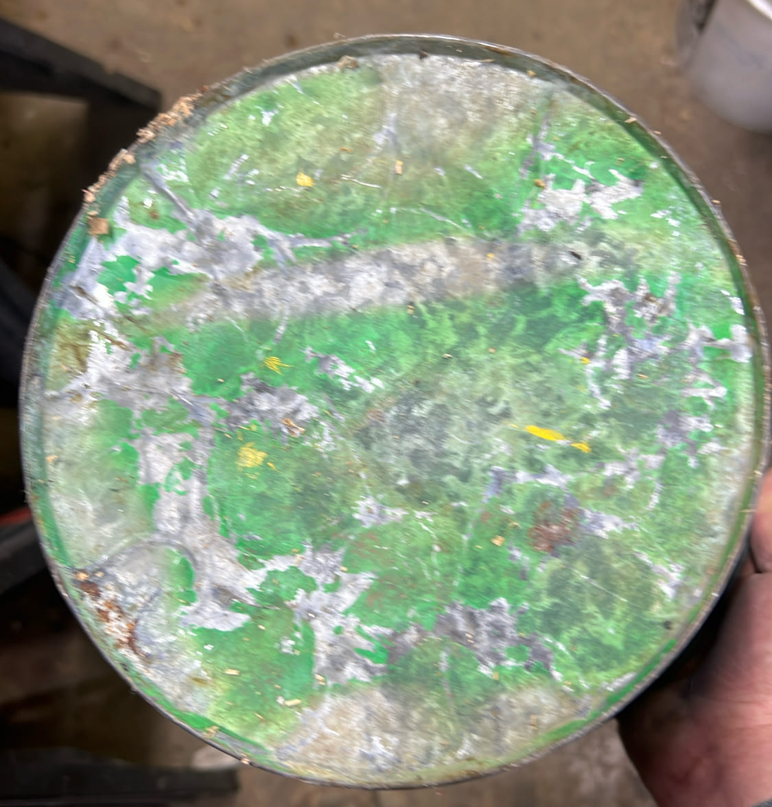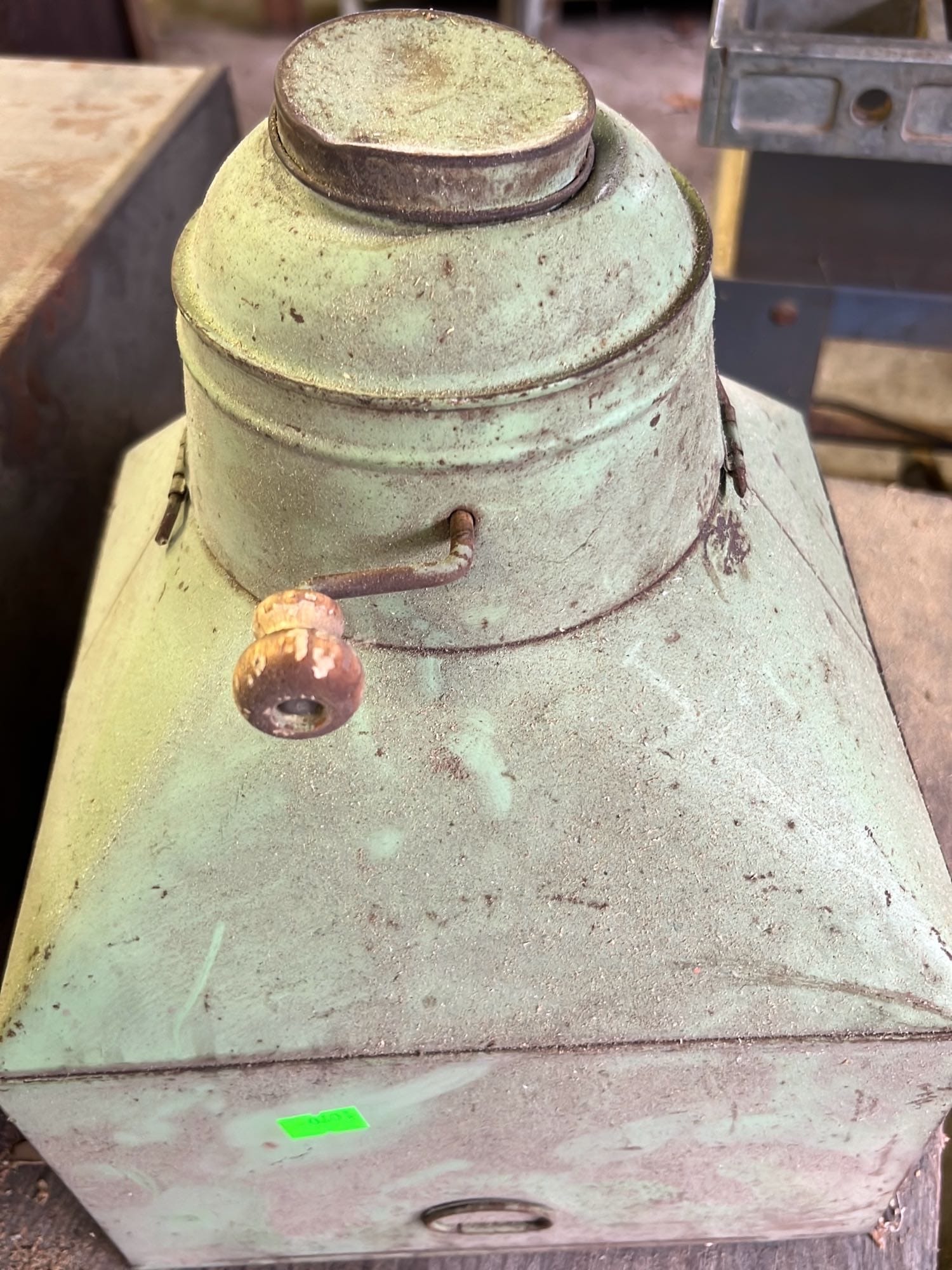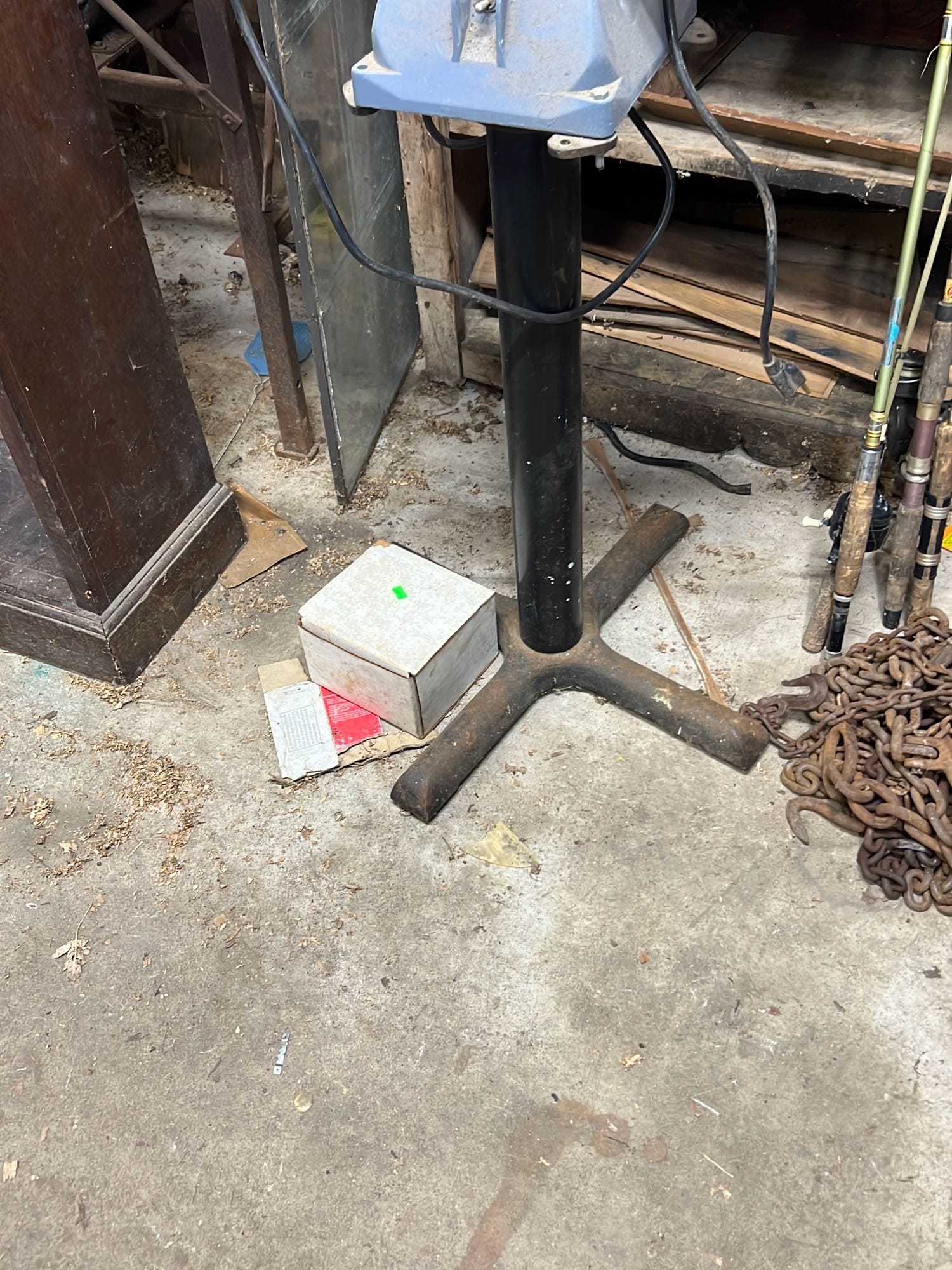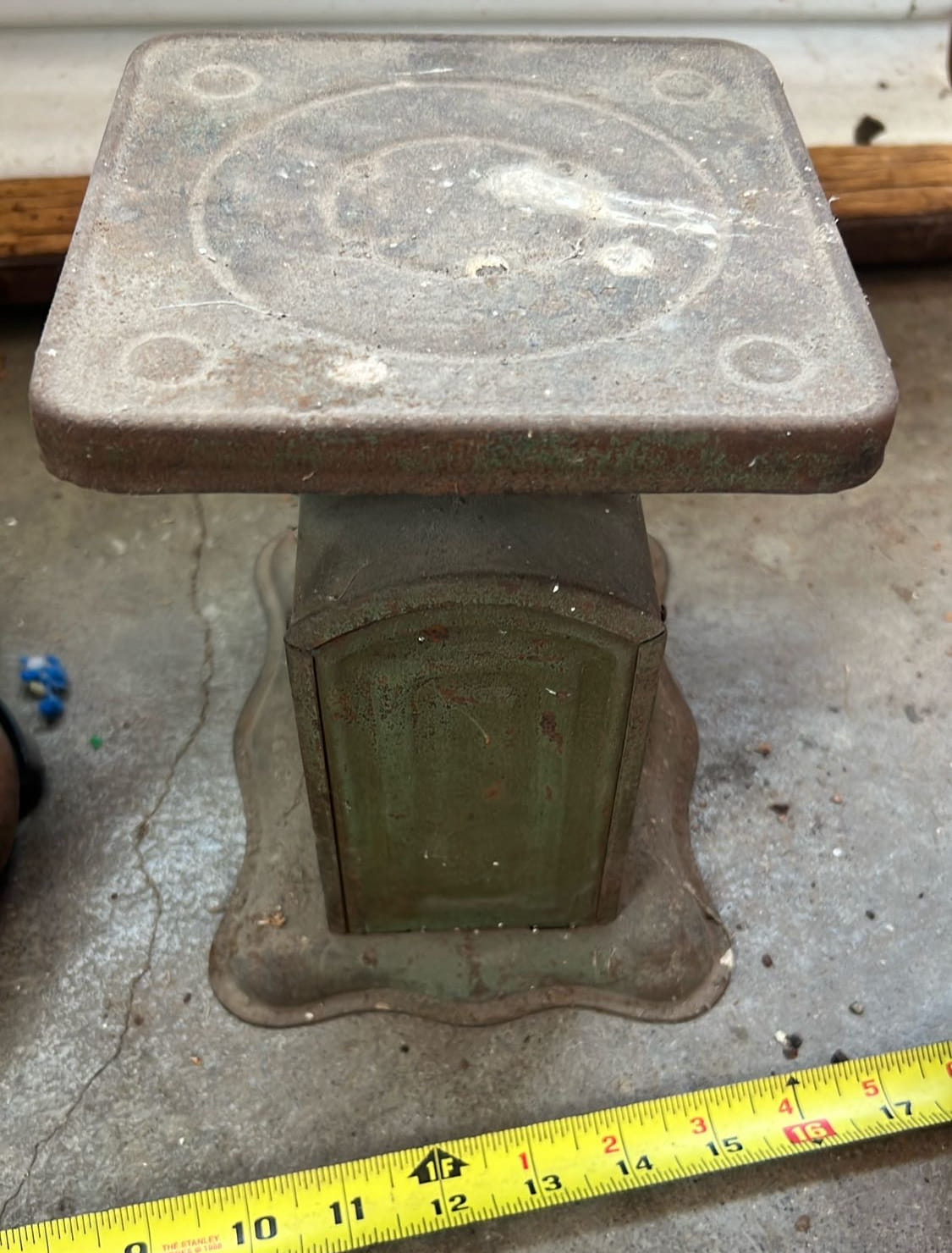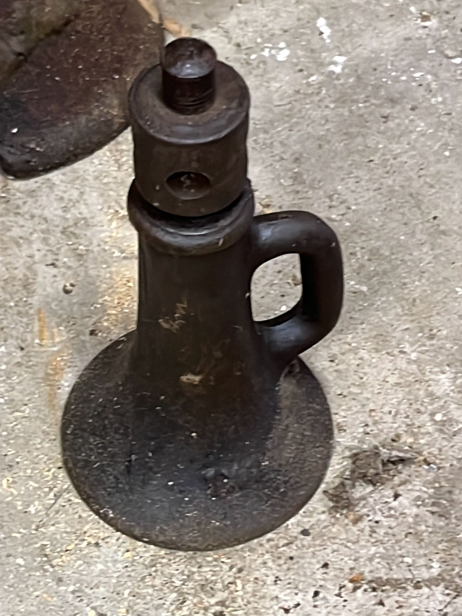 1173 Milk can half full of cement 24”, mail box base, metal umbrella base 18”