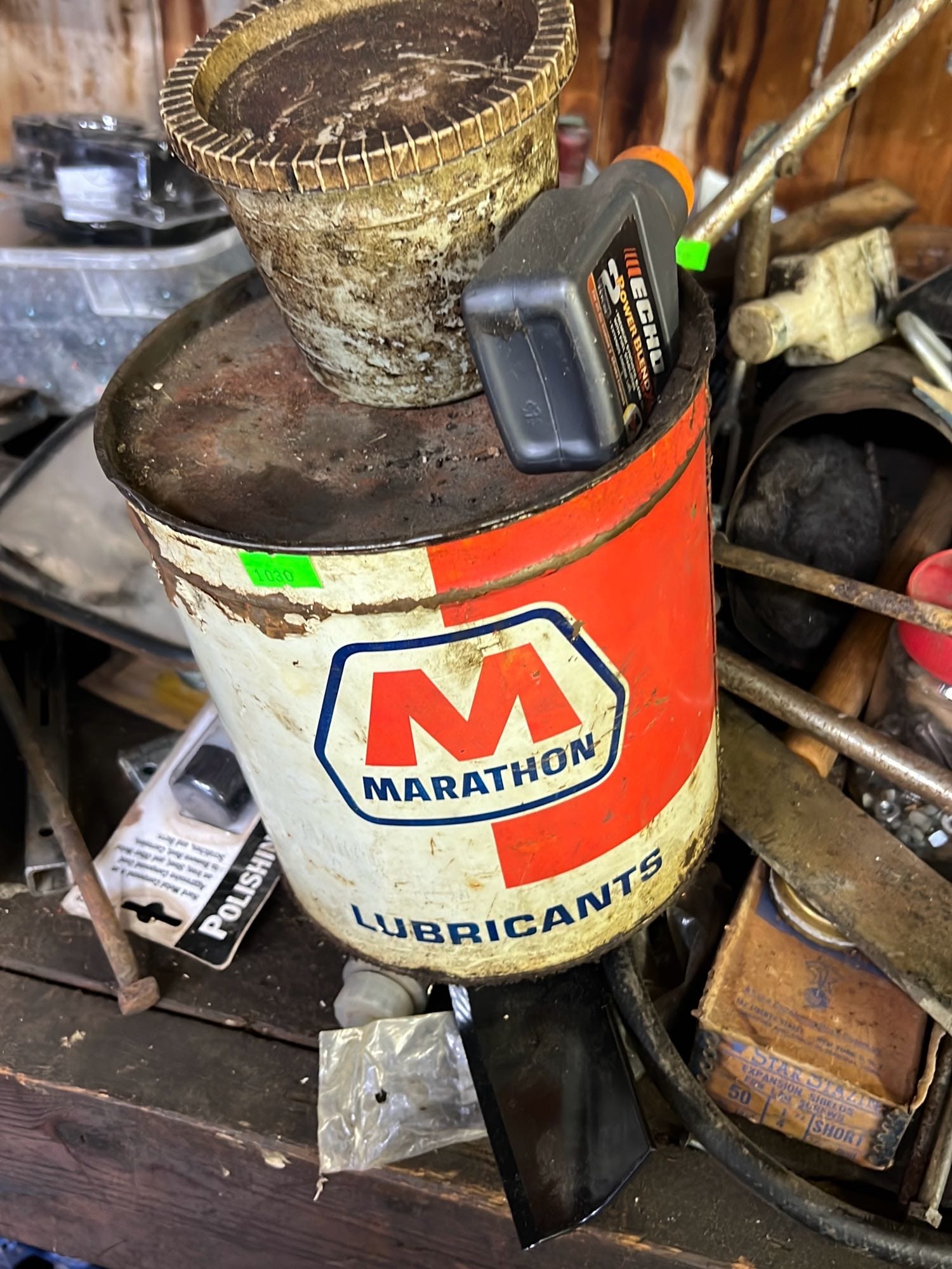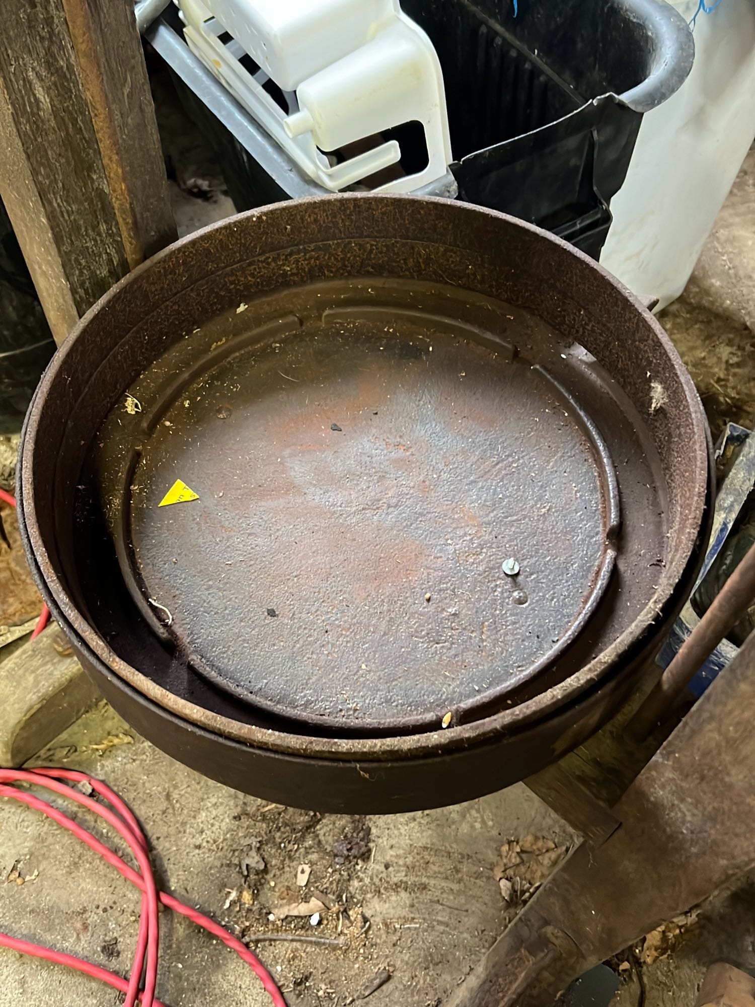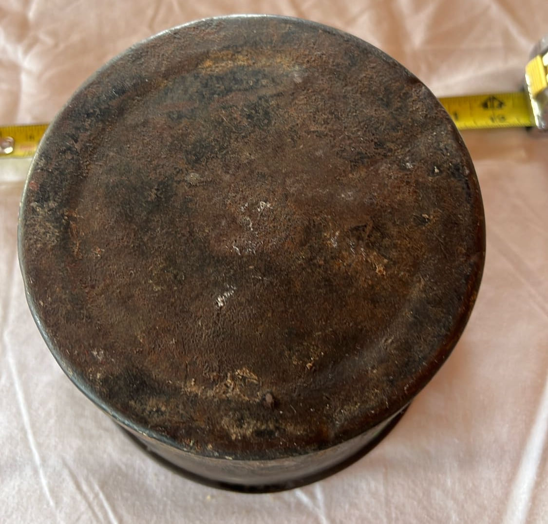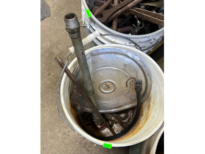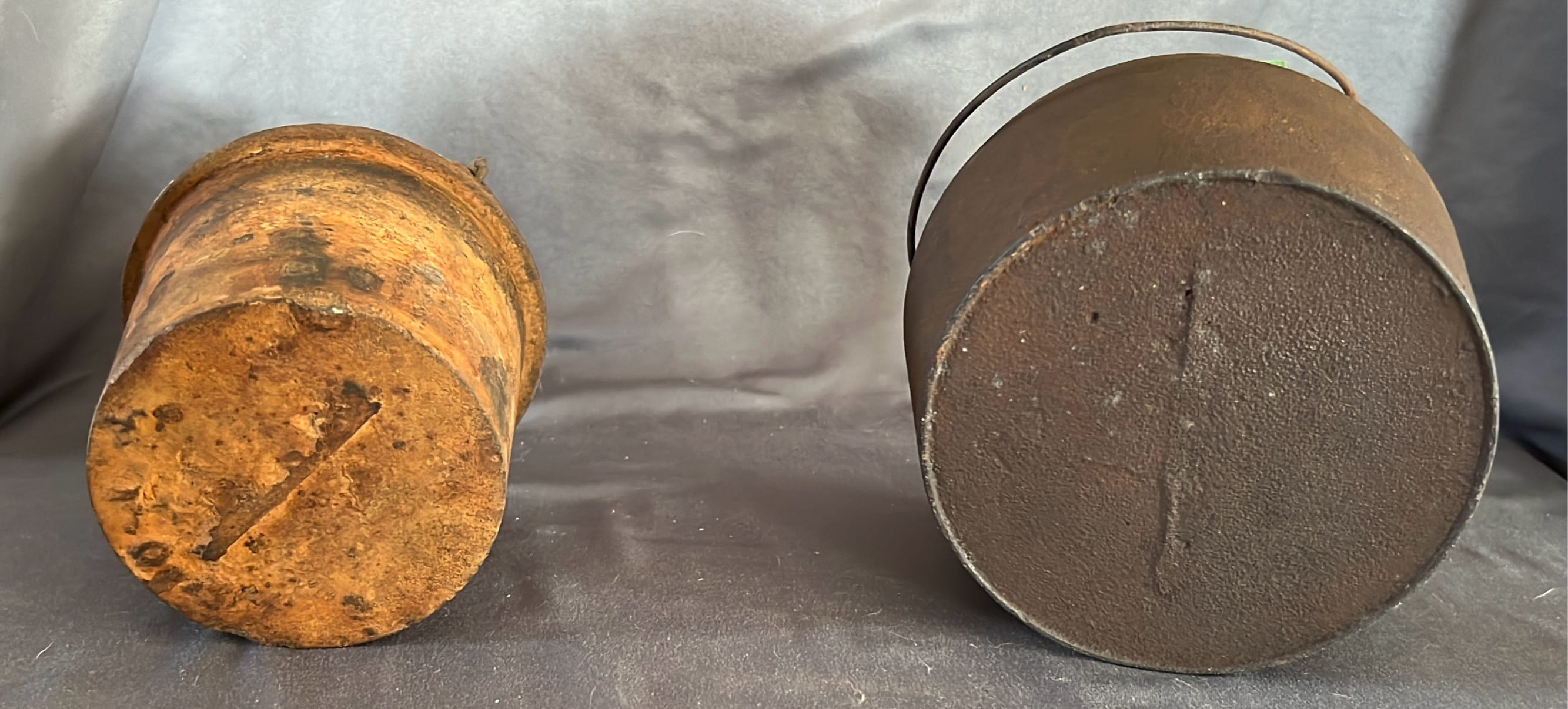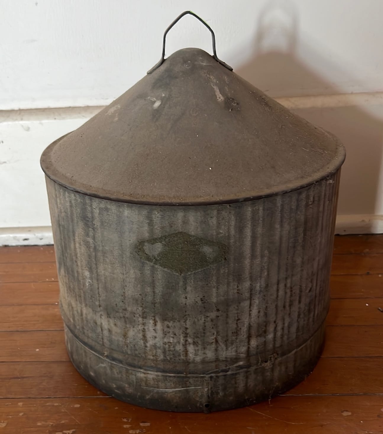 1173 Milk can half full of cement 24”, mail box base, metal umbrella base 18”