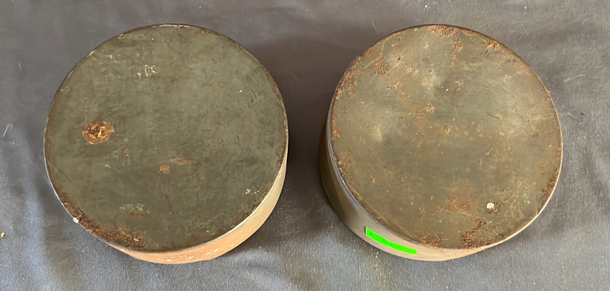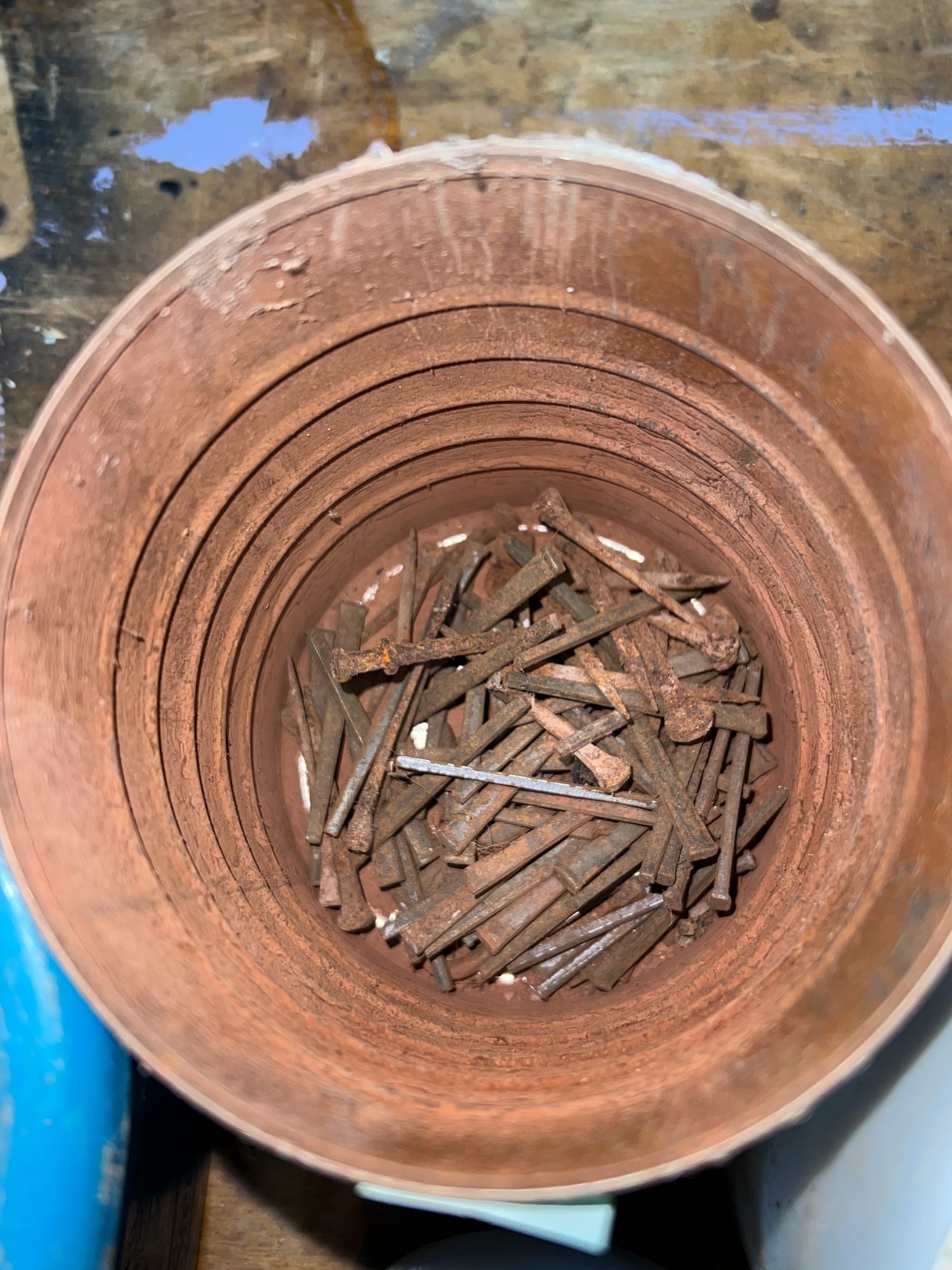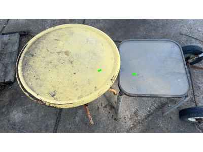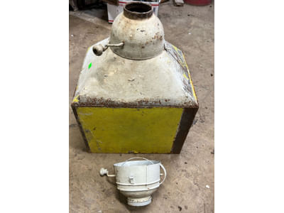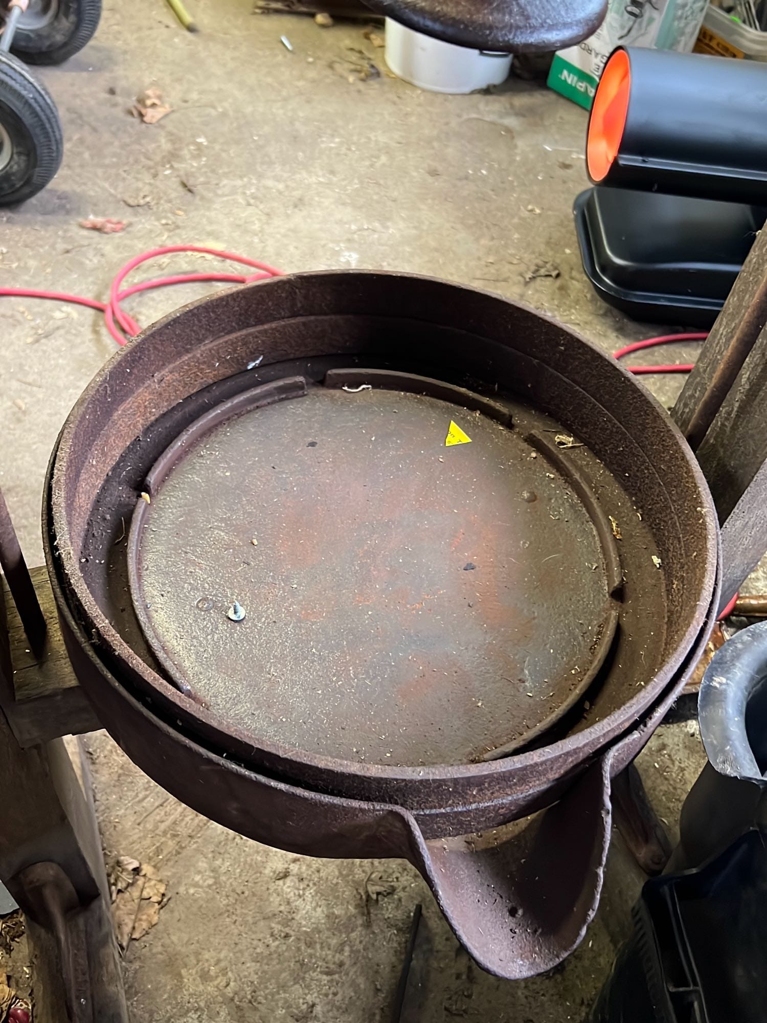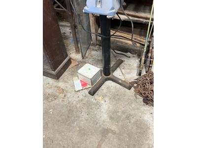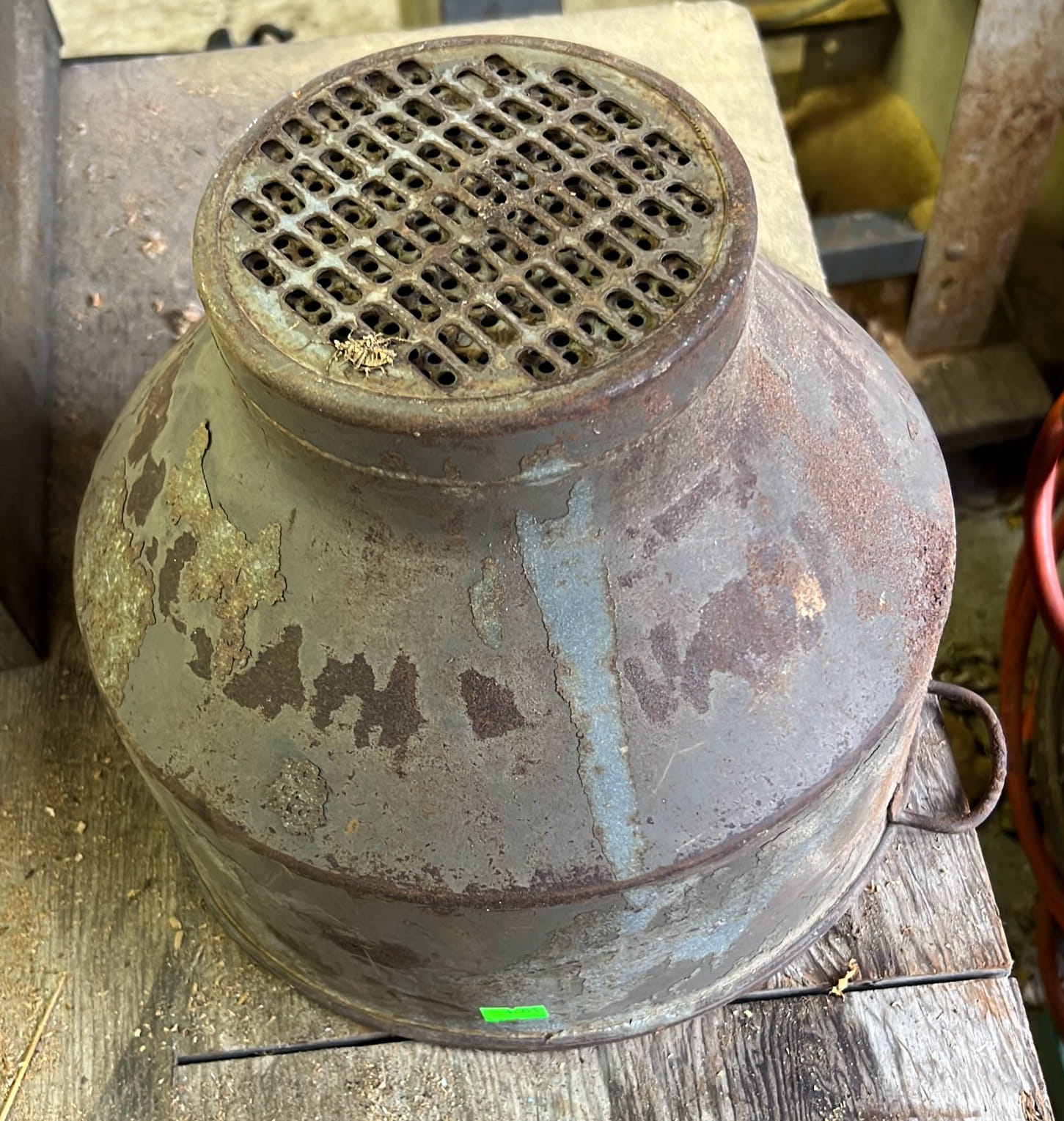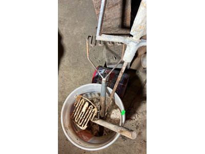 1173 Milk can half full of cement 24”, mail box base, metal umbrella base 18”
