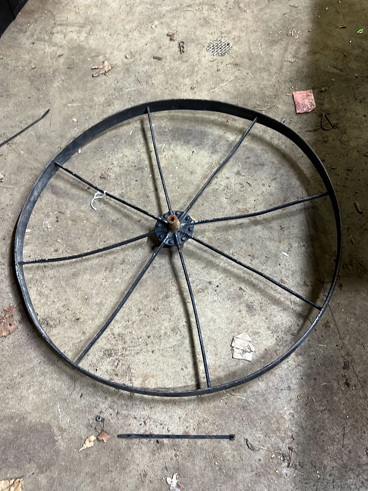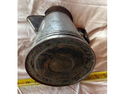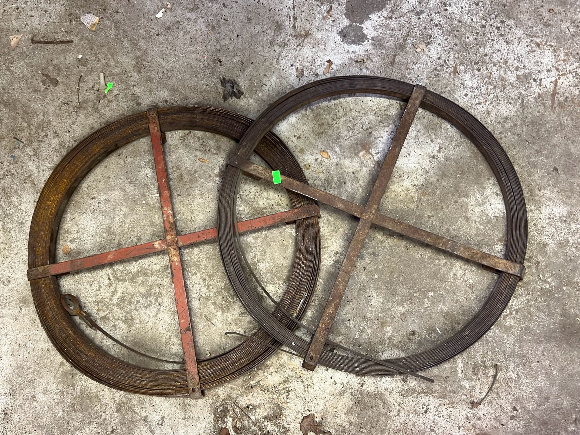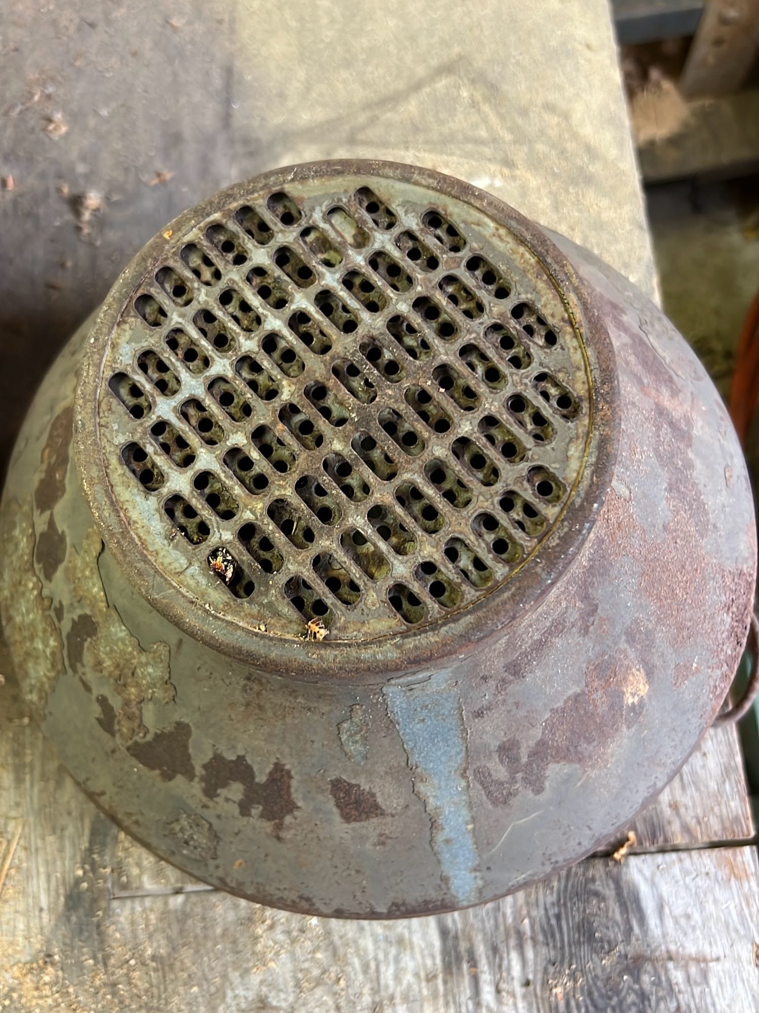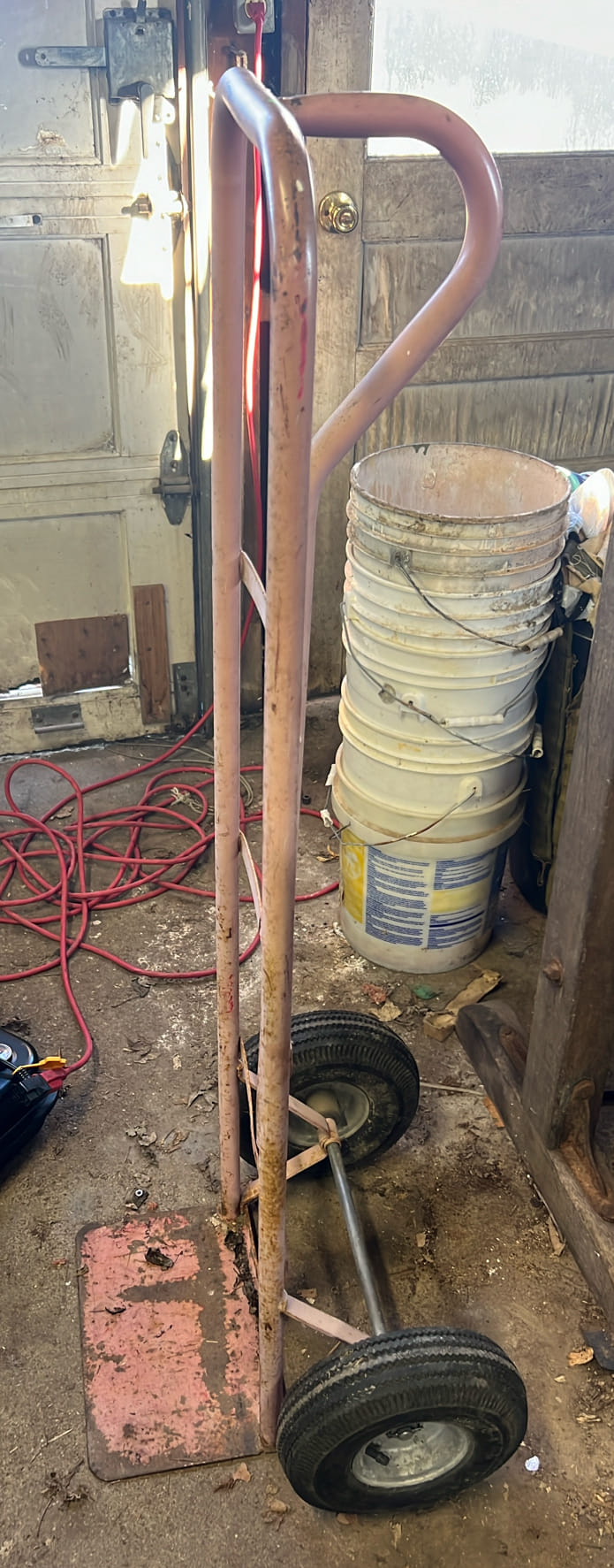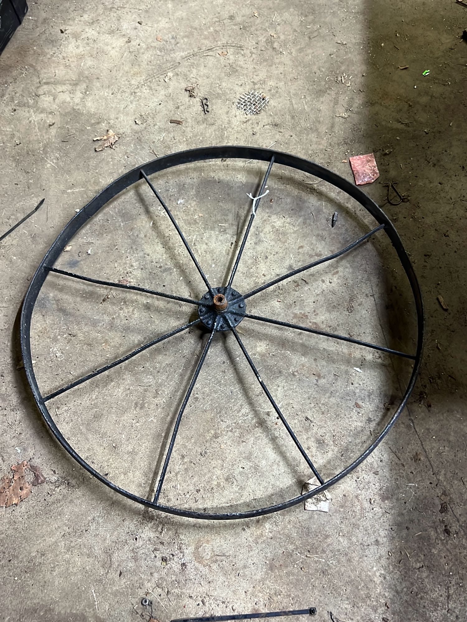 1173 Milk can half full of cement 24”, mail box base, metal umbrella base 18”