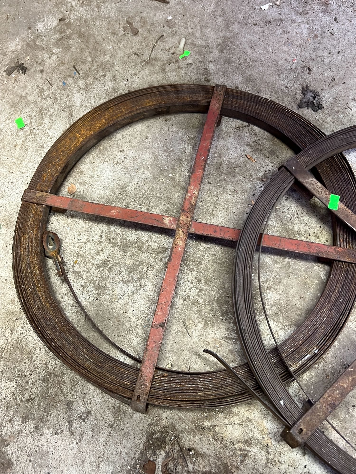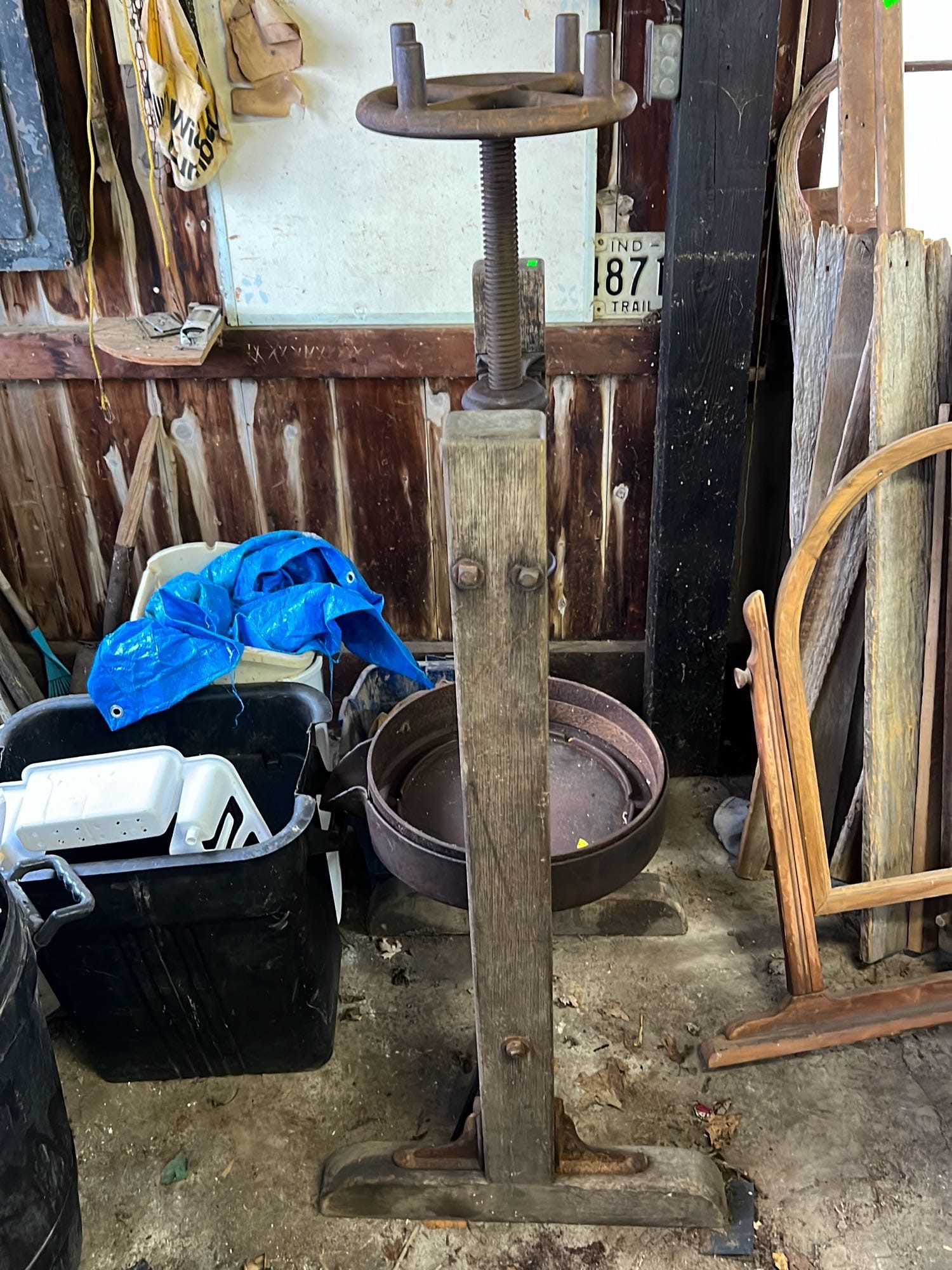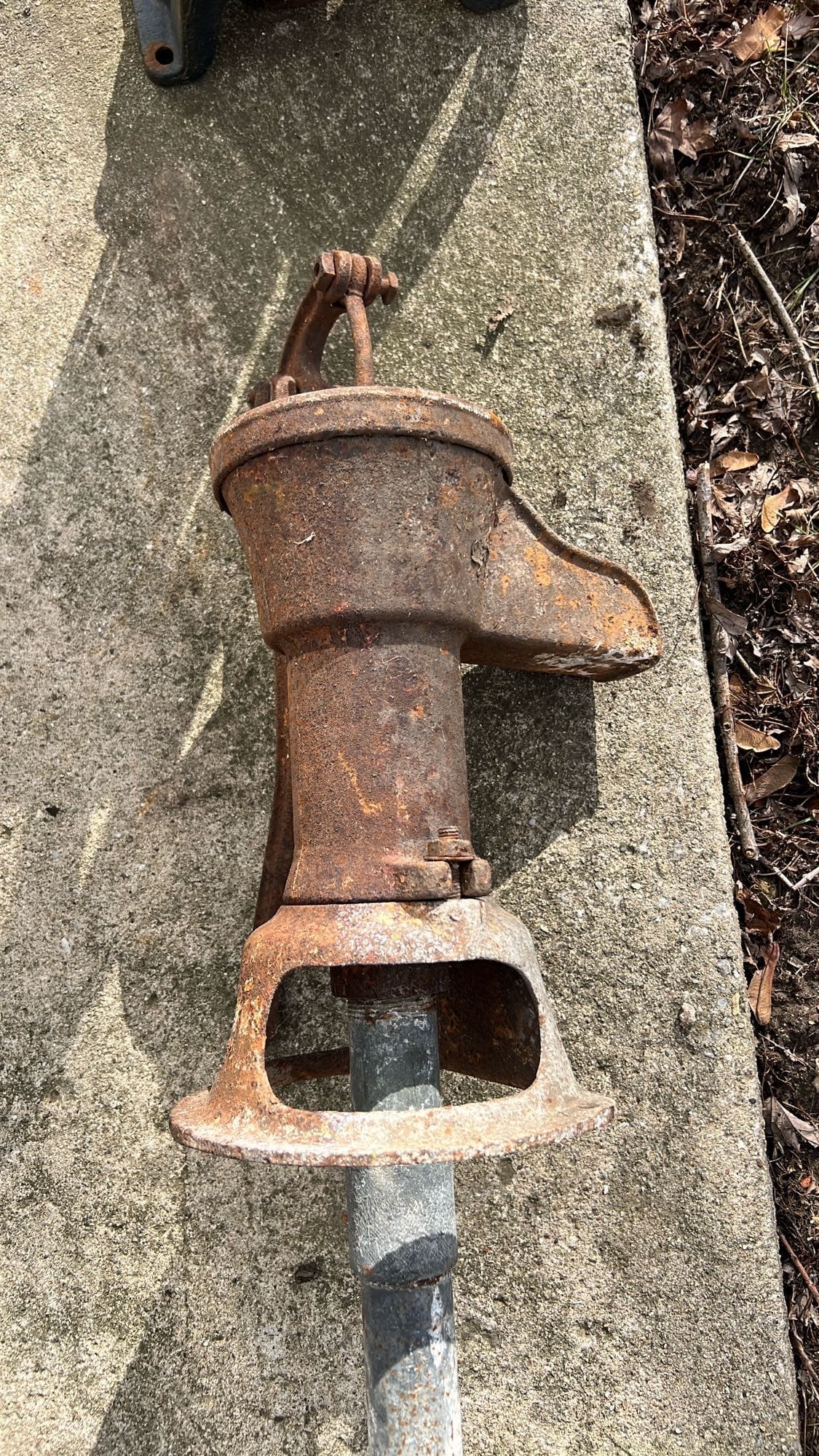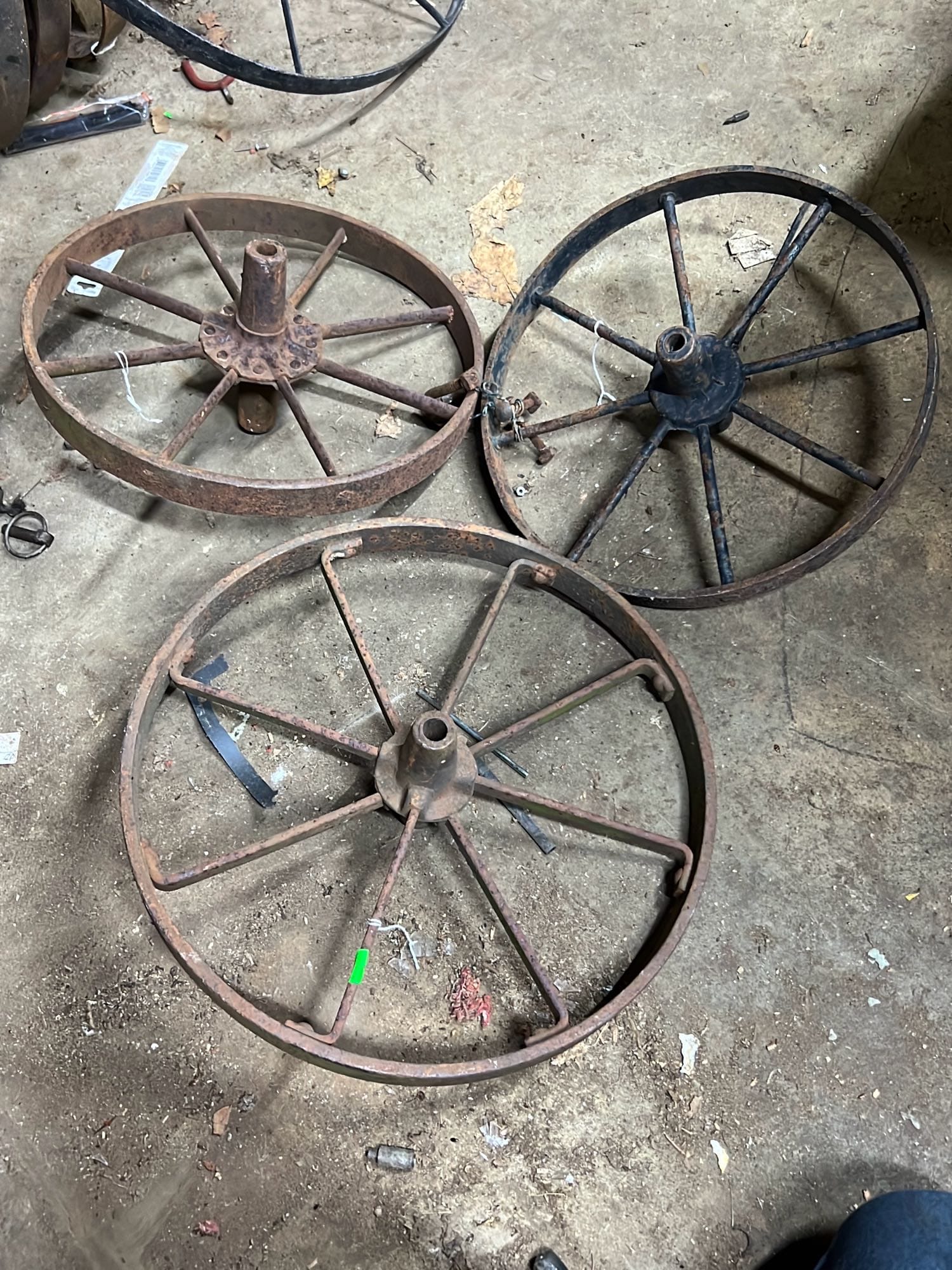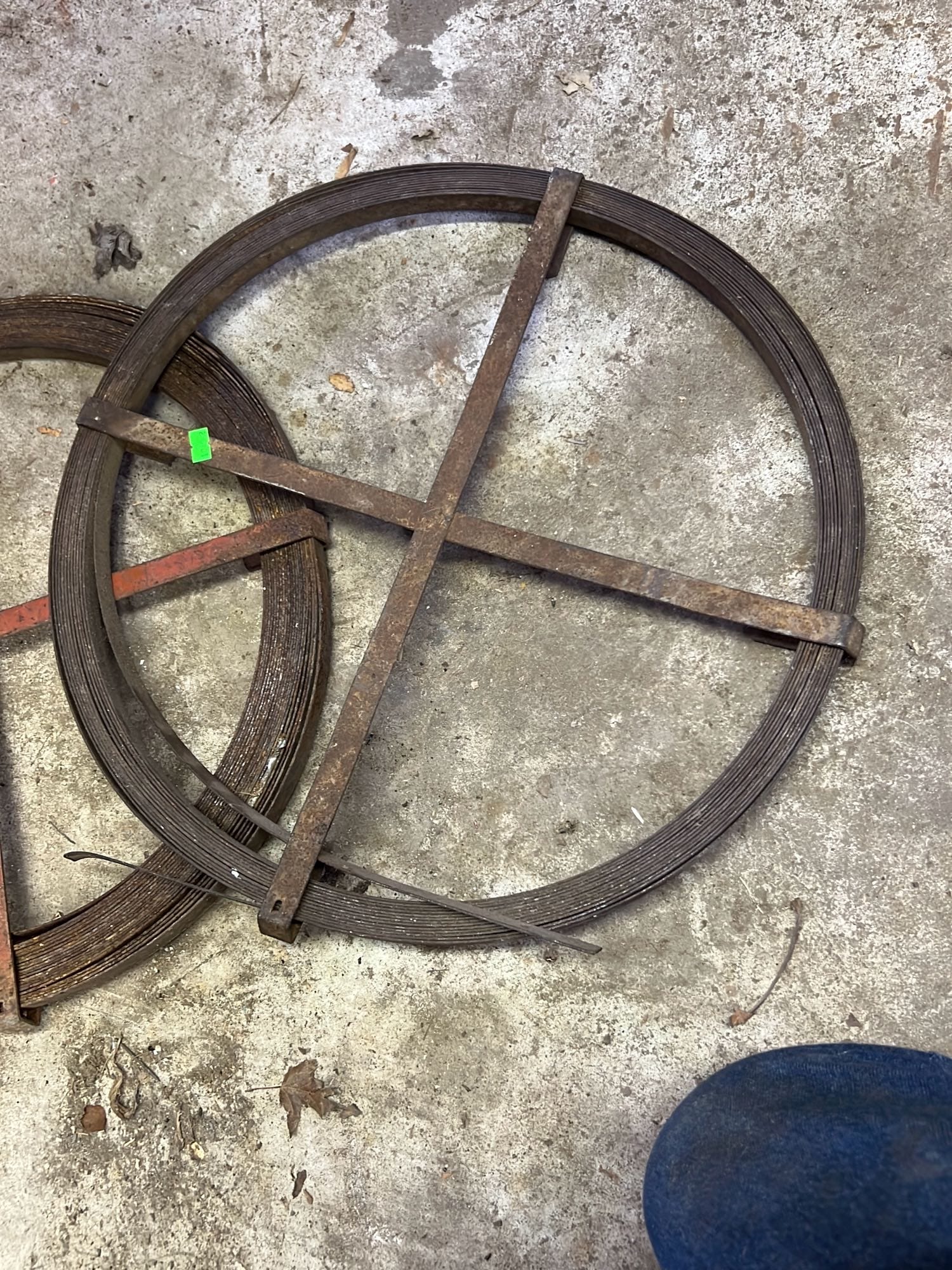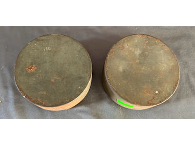 1173 Milk can half full of cement 24”, mail box base, metal umbrella base 18”
