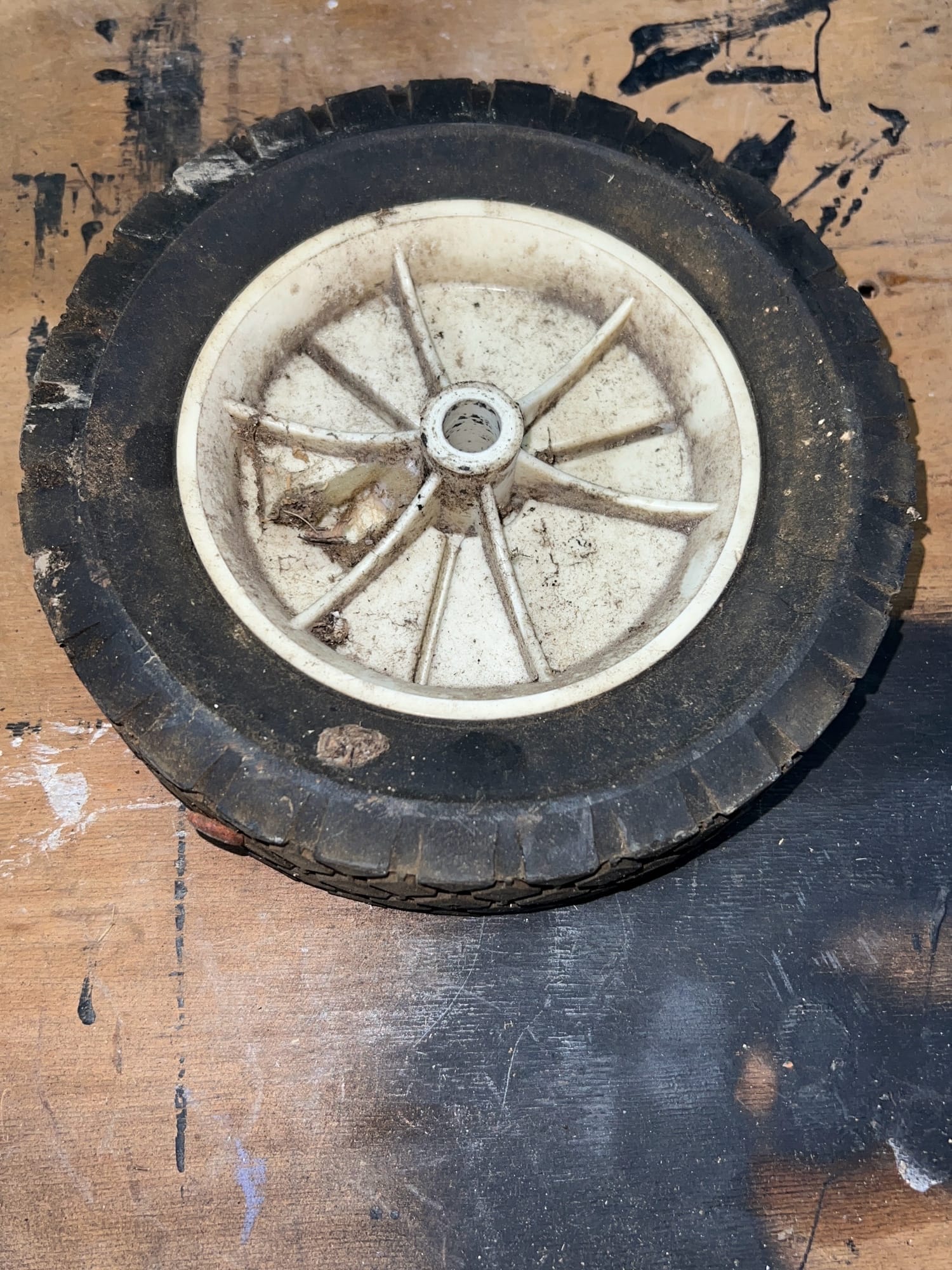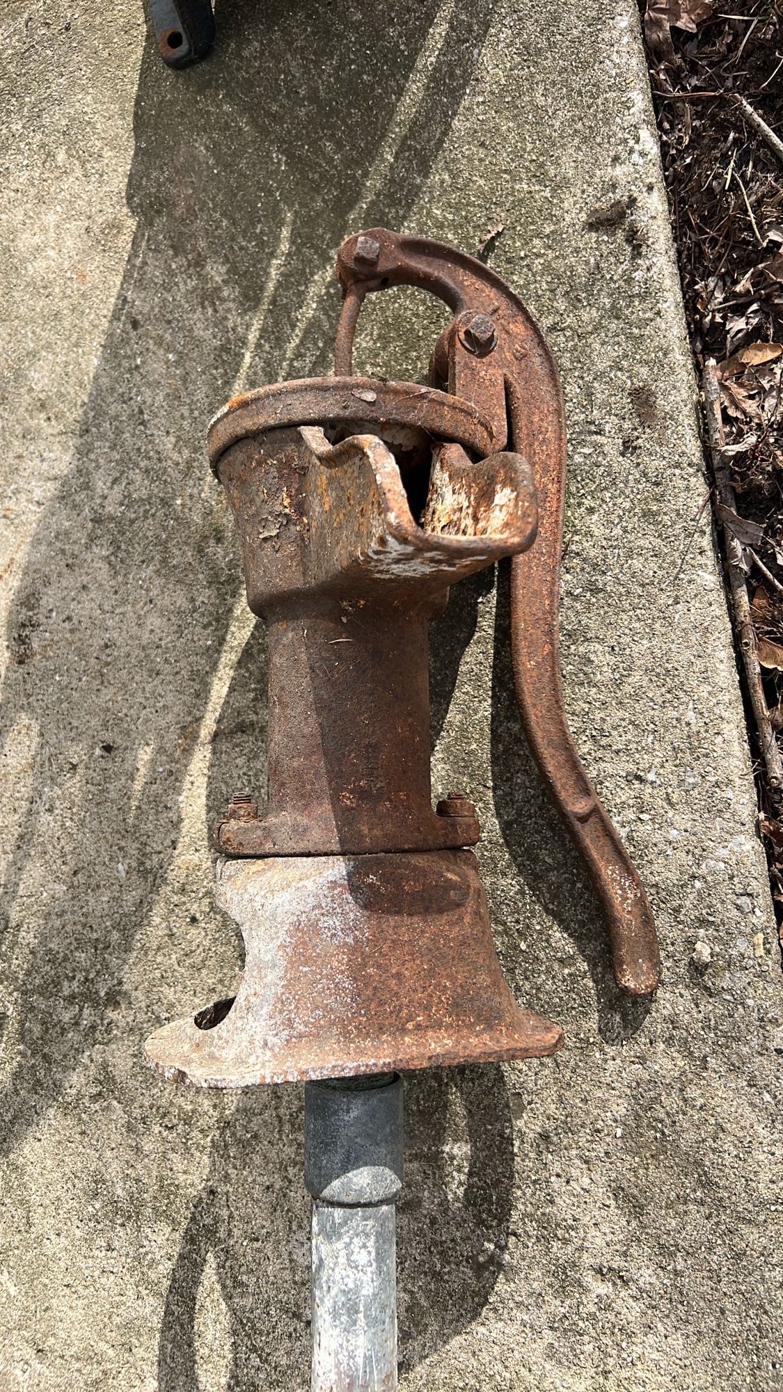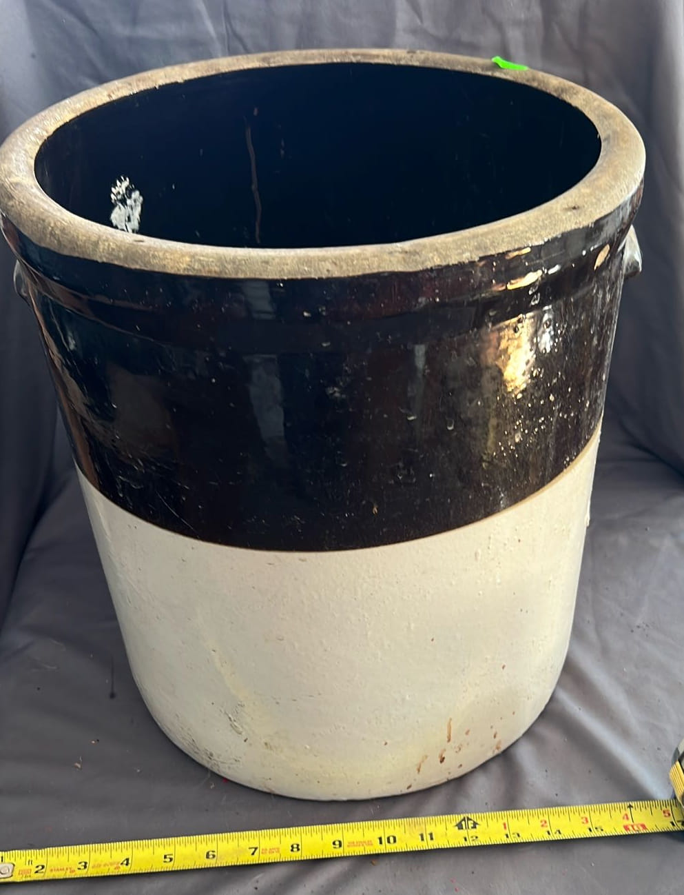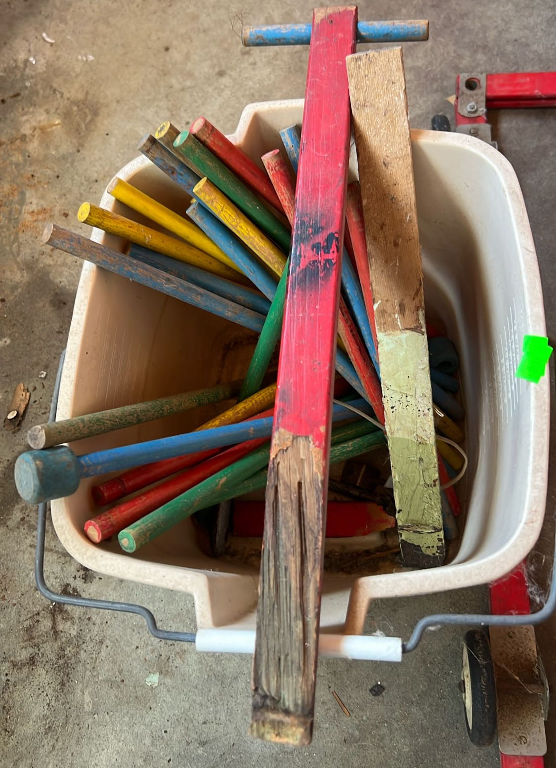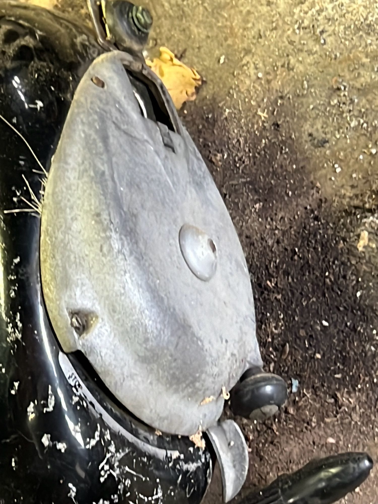 1173 Milk can half full of cement 24”, mail box base, metal umbrella base 18”
