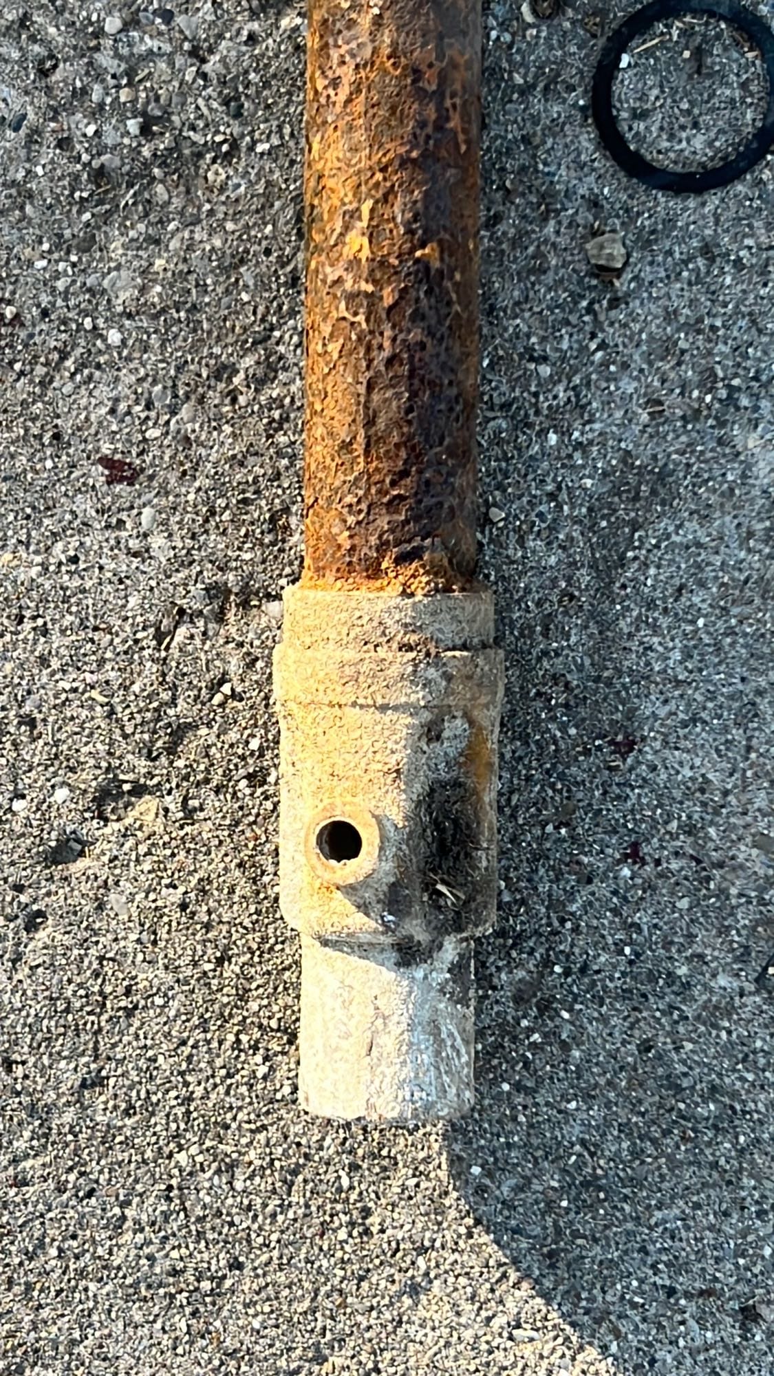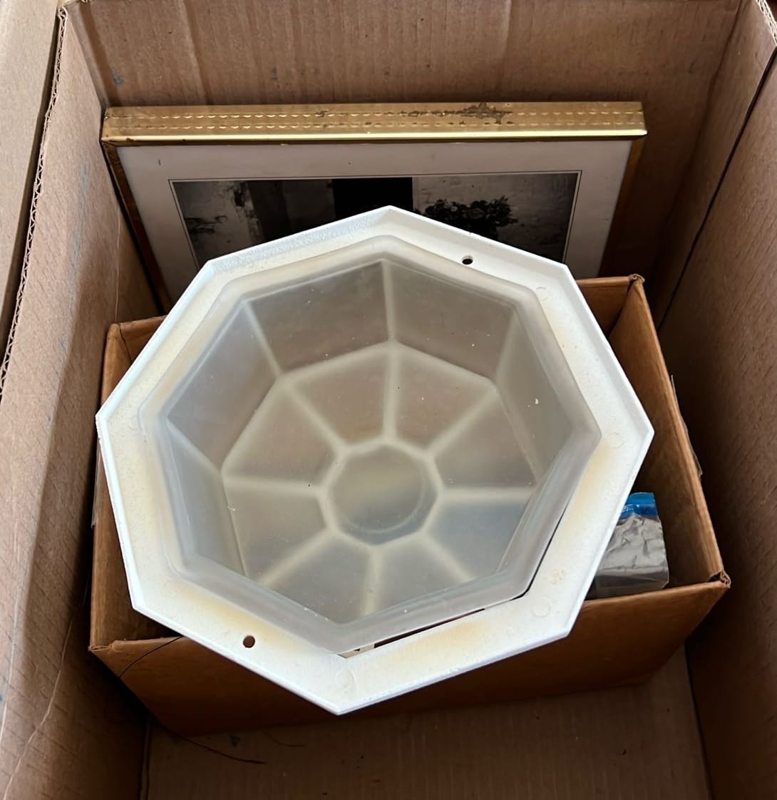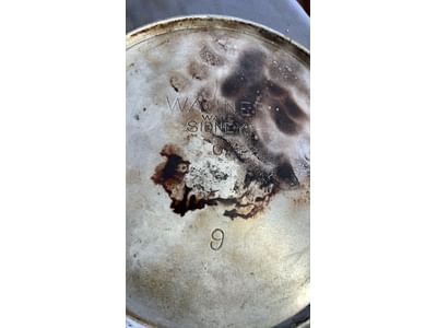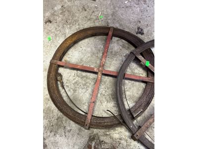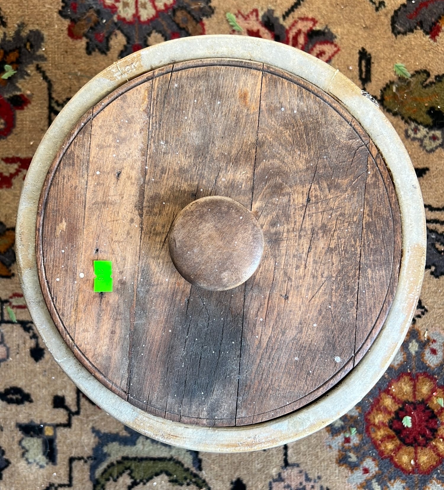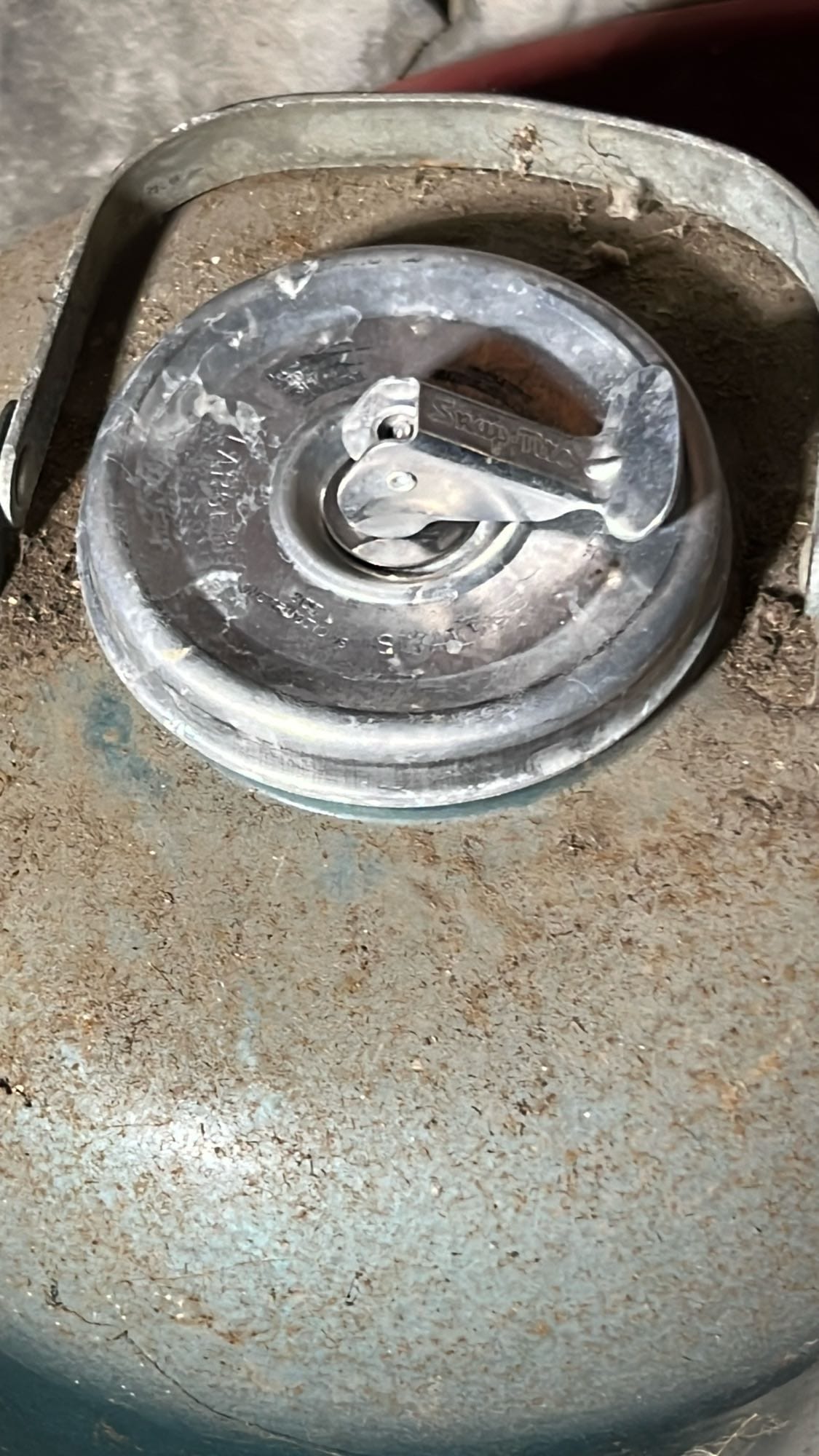 1173 Milk can half full of cement 24”, mail box base, metal umbrella base 18”