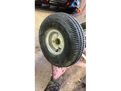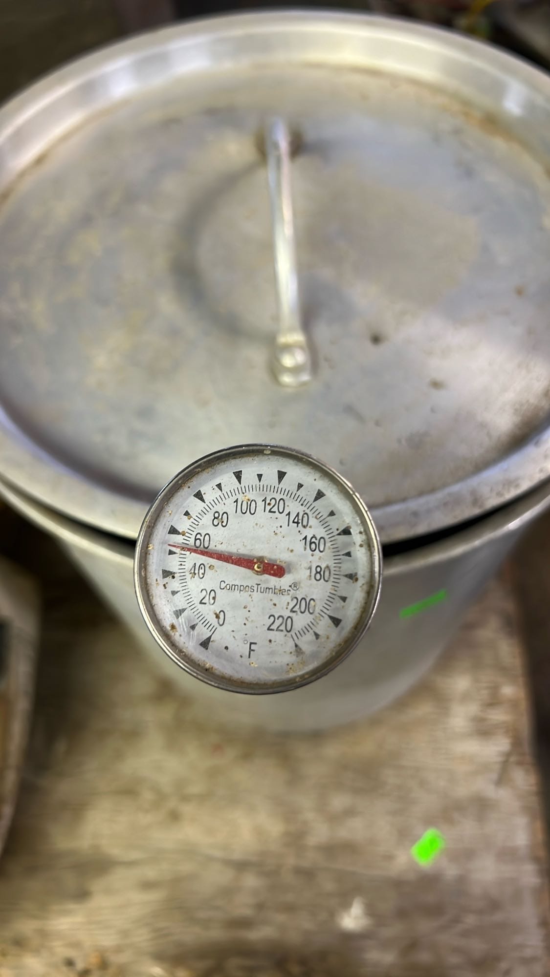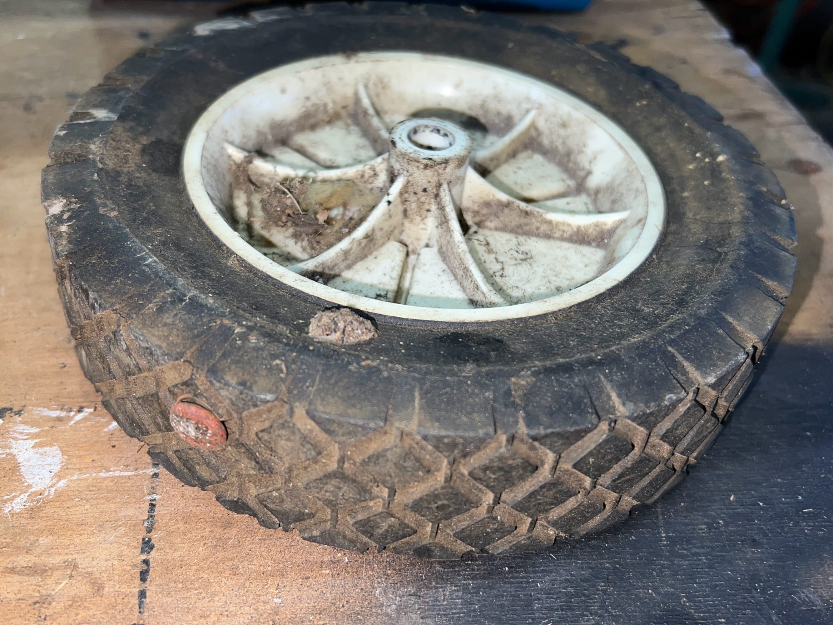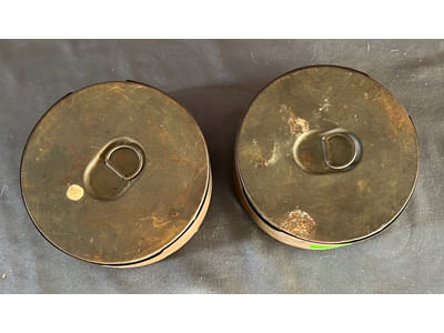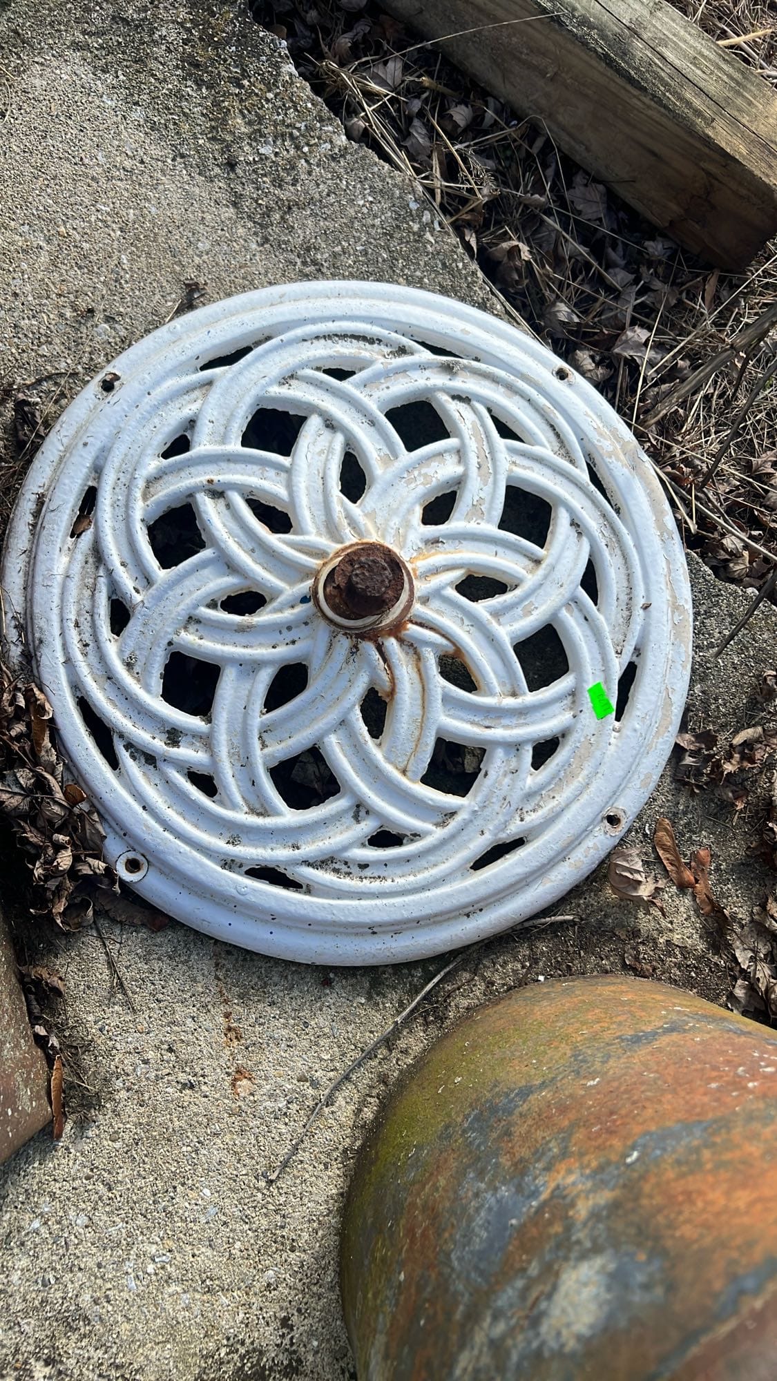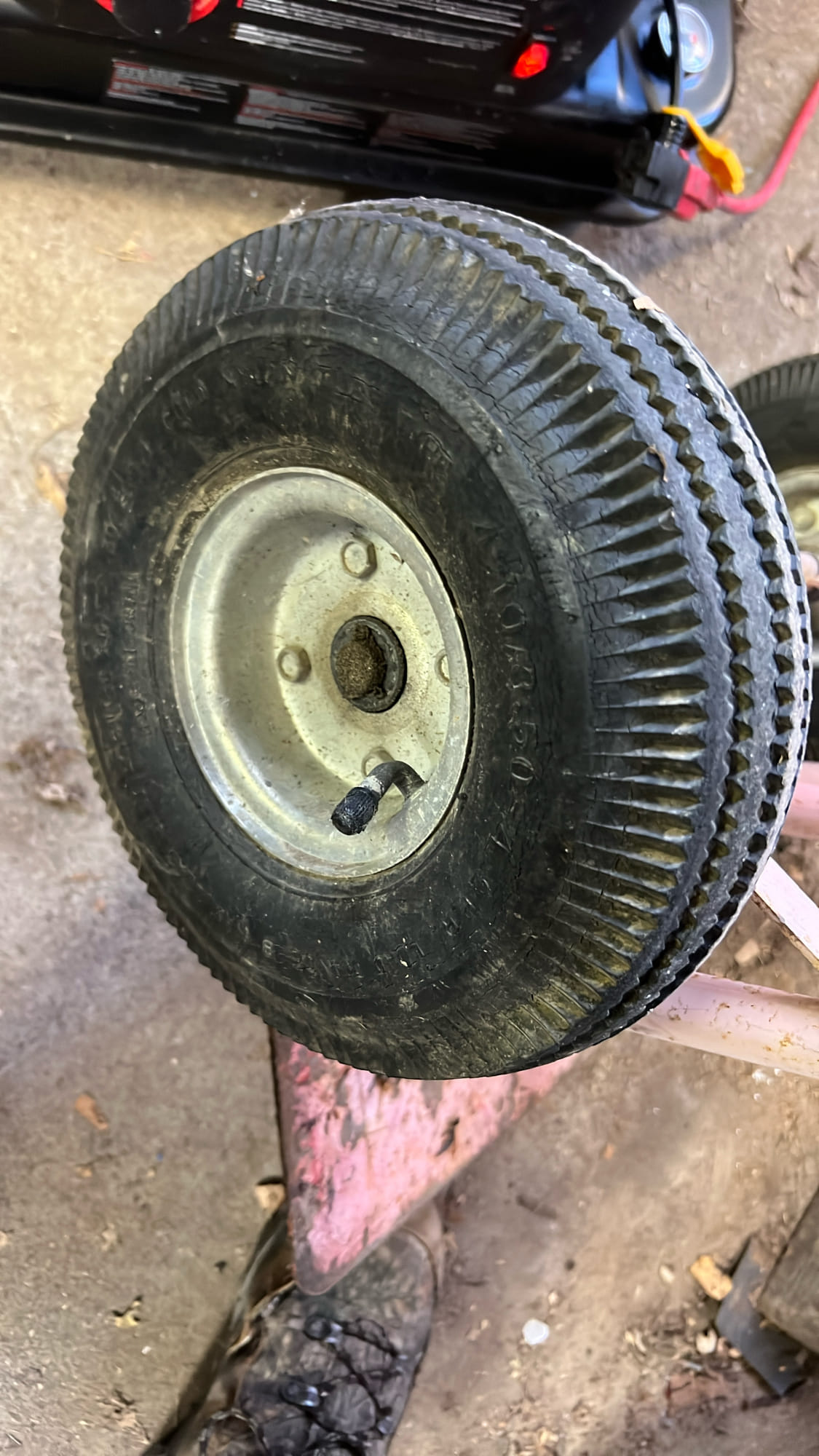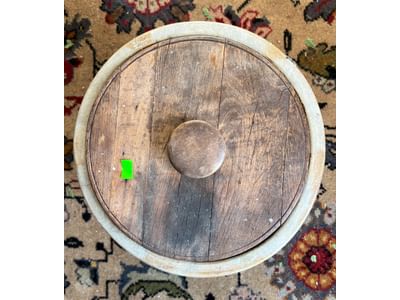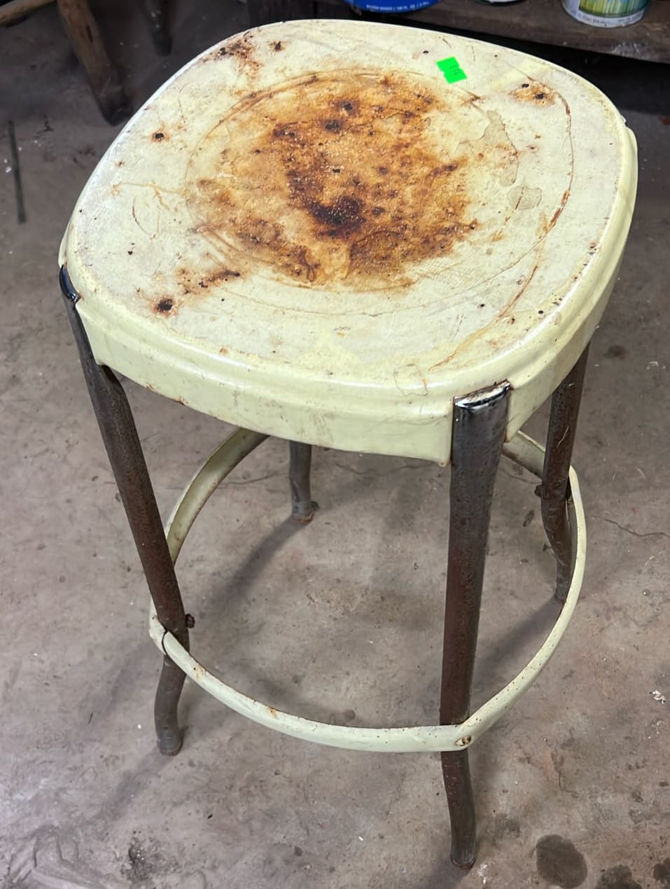1173 Milk can half full of cement 24”, mail box base, metal umbrella base 18”