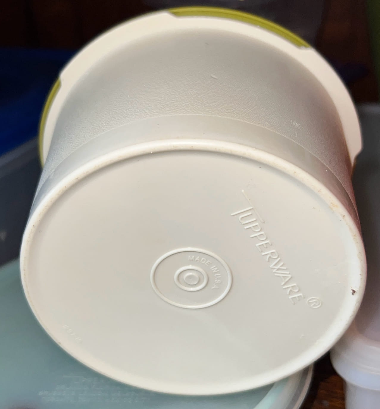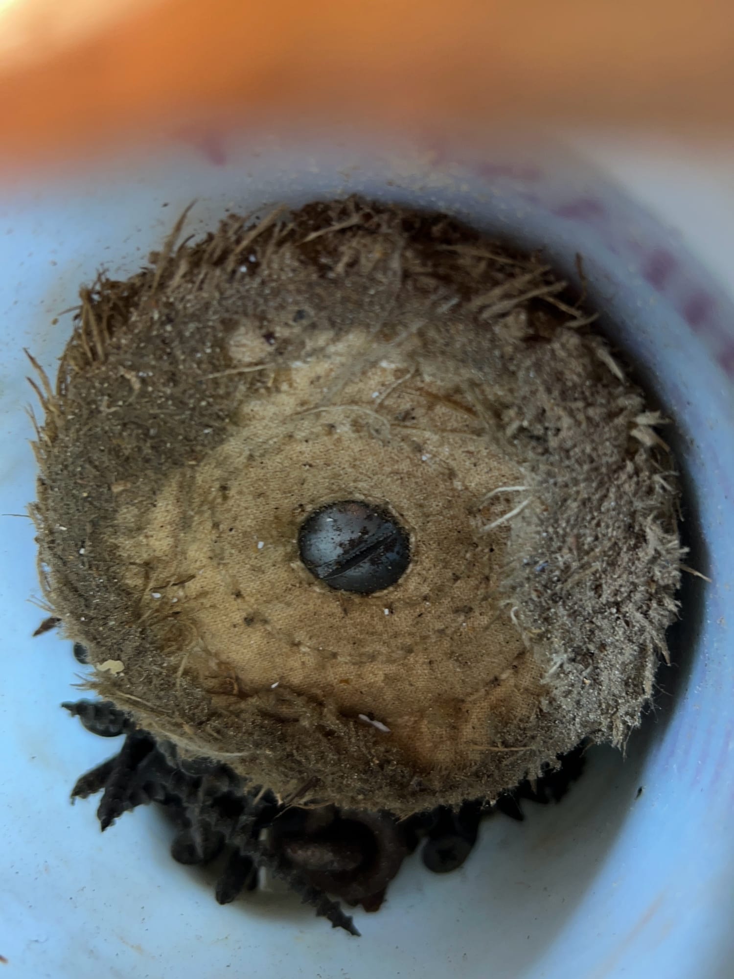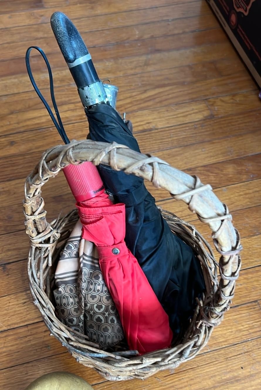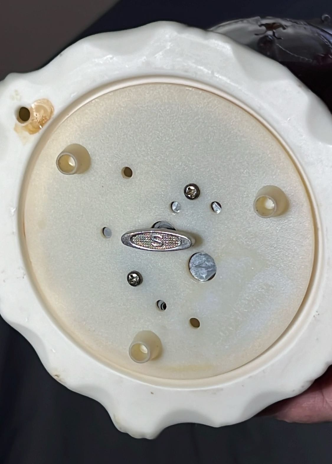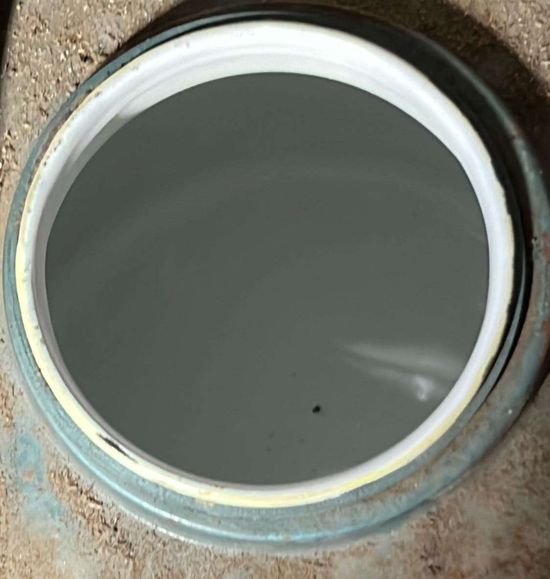 1173 Milk can half full of cement 24”, mail box base, metal umbrella base 18”