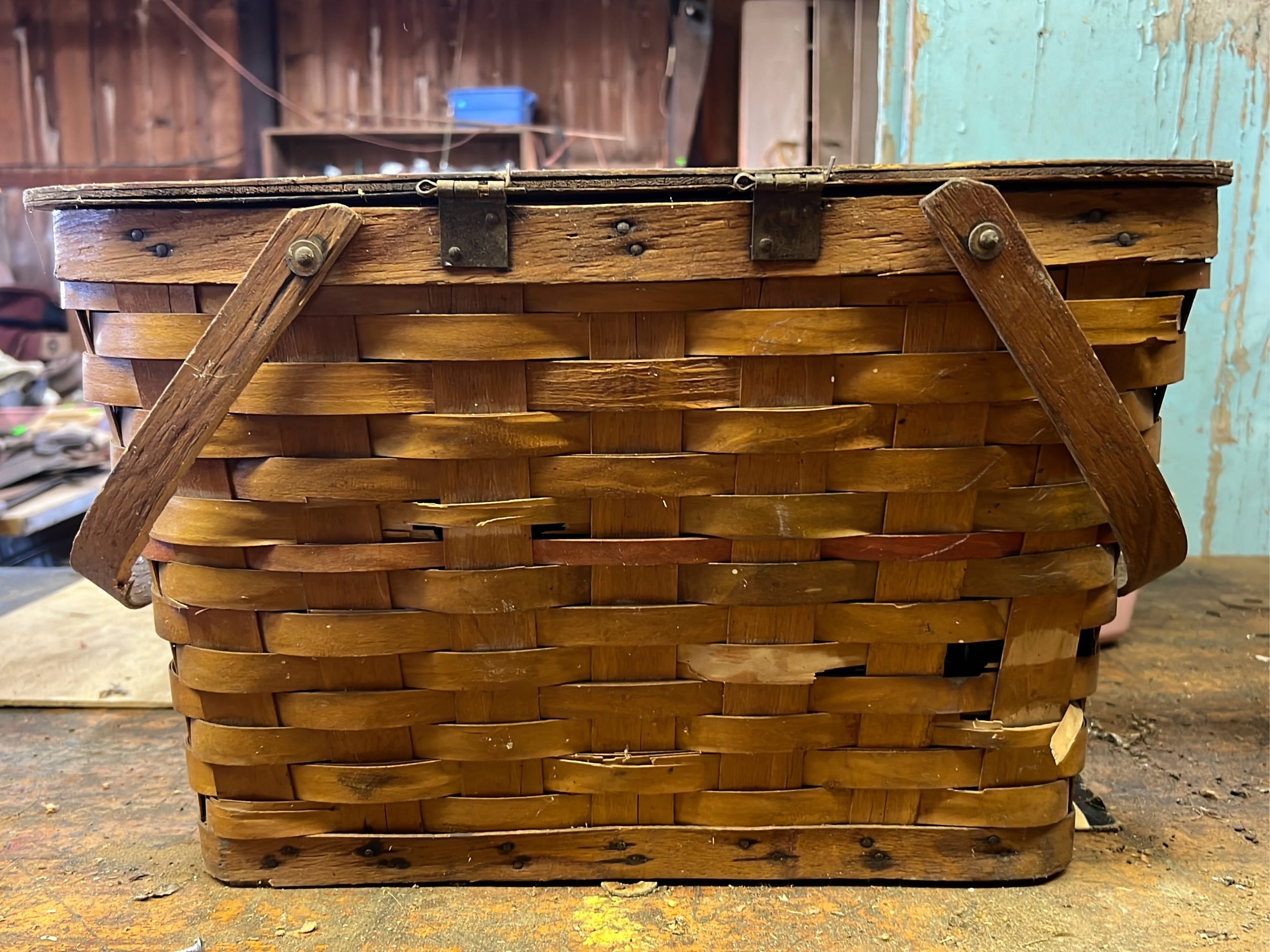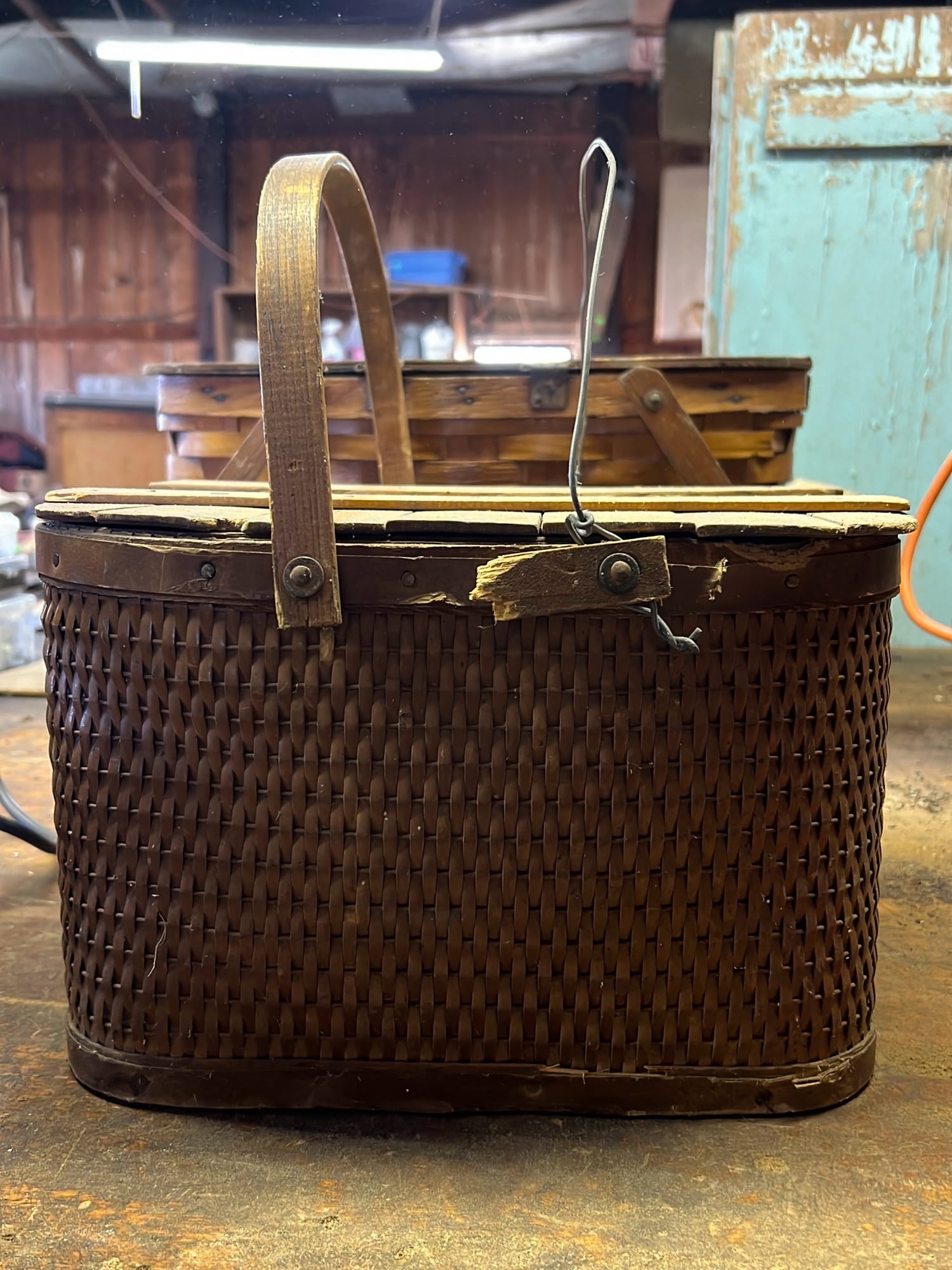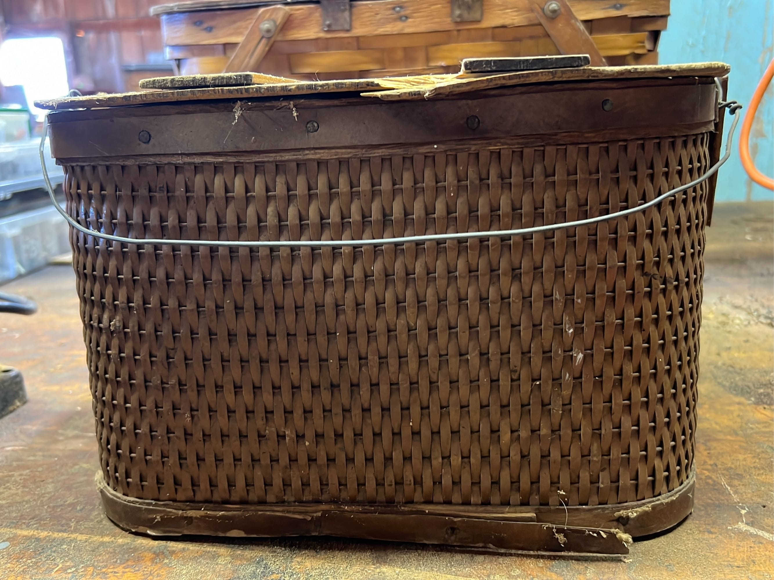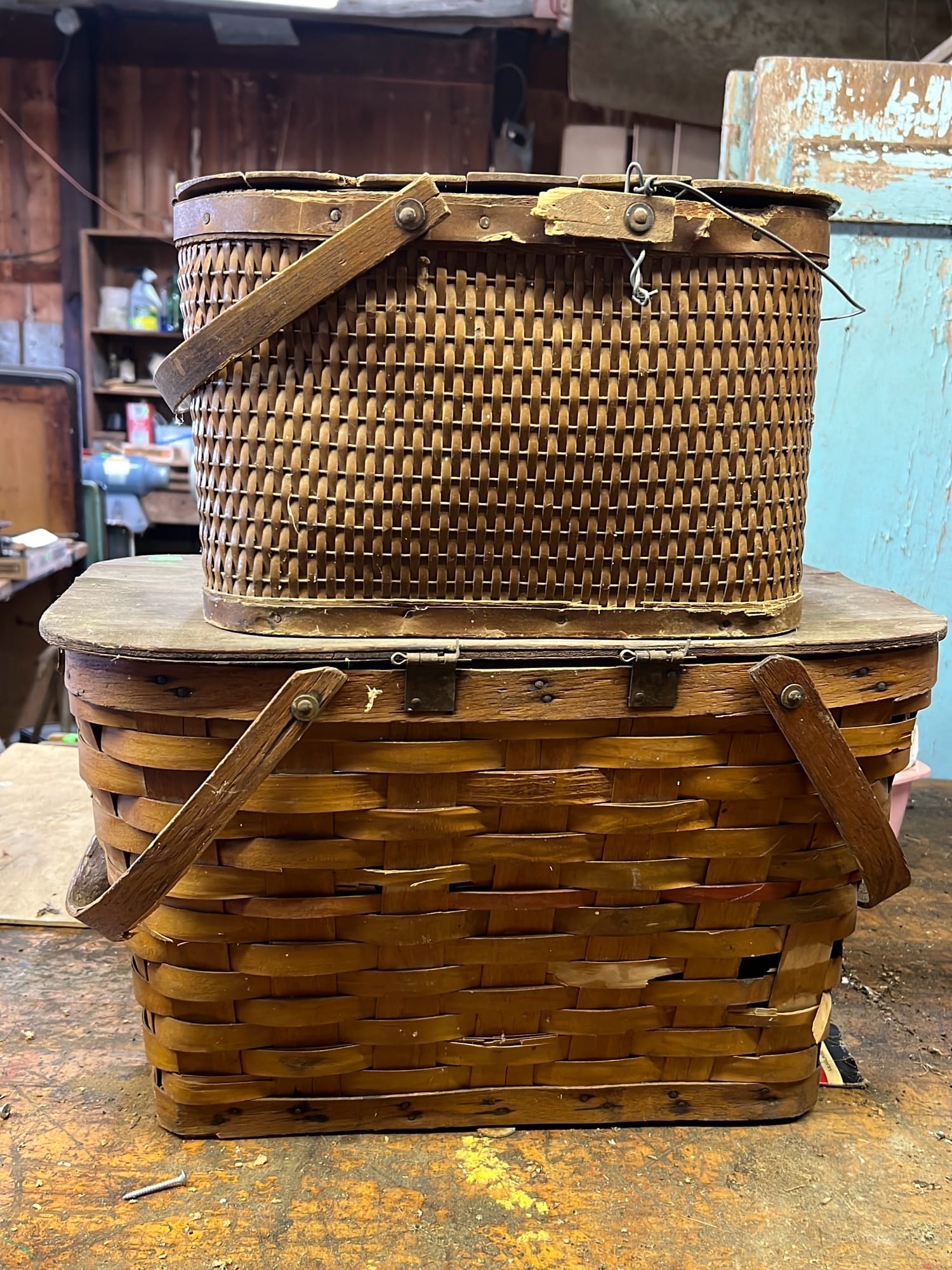 1088a Two Woven Picnic Baskets 13.75”x8.75”x13.75”, 19”x12”x13.5”