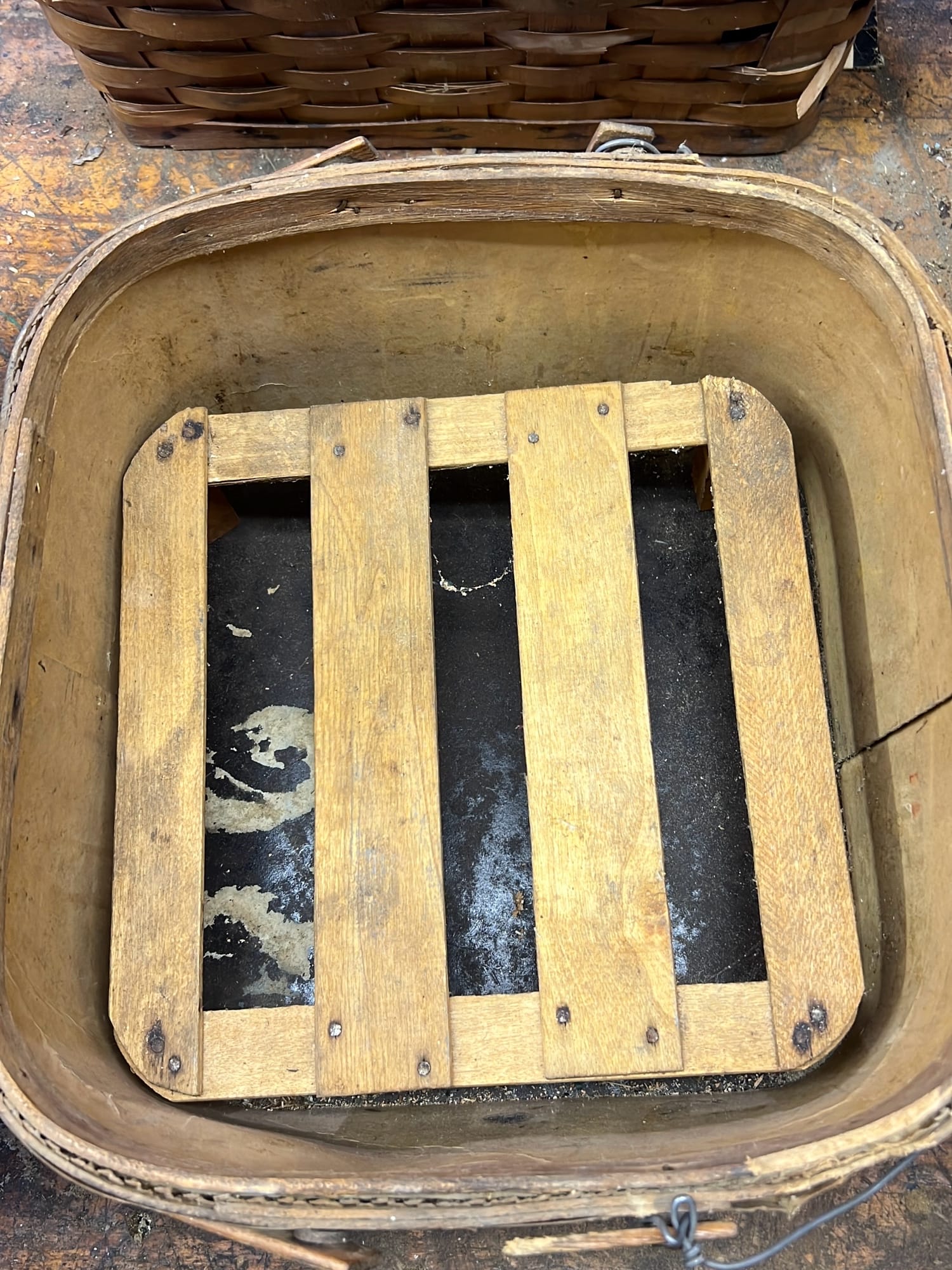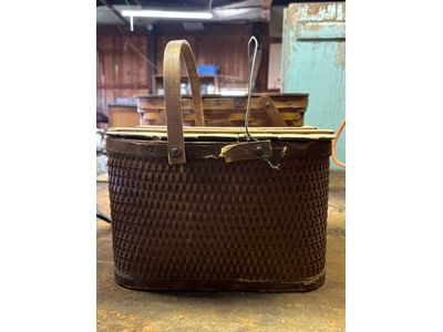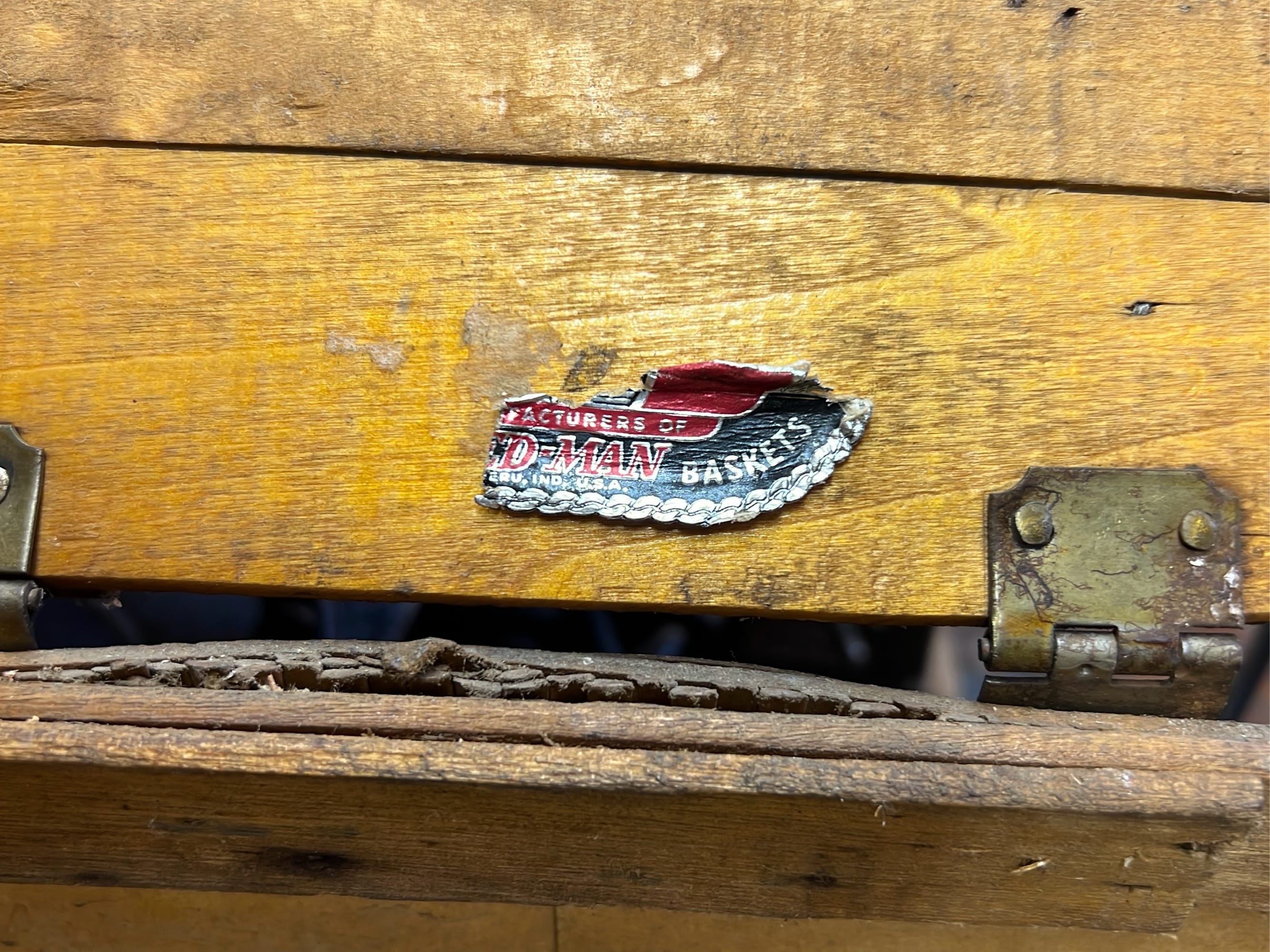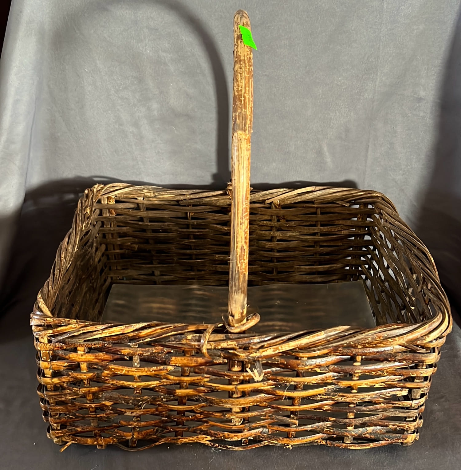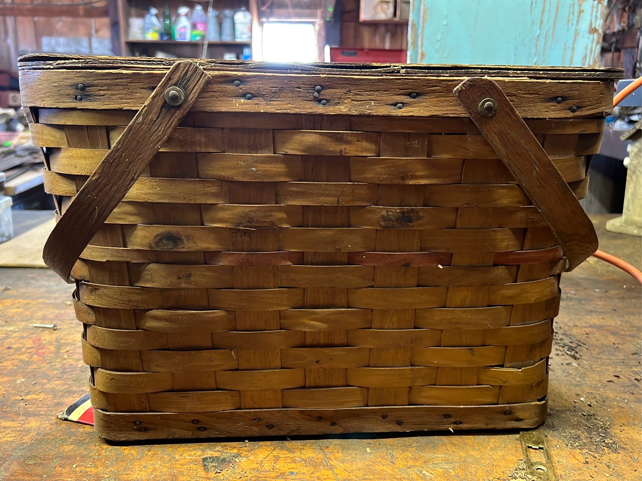 1088a Two Woven Picnic Baskets 13.75”x8.75”x13.75”, 19”x12”x13.5”