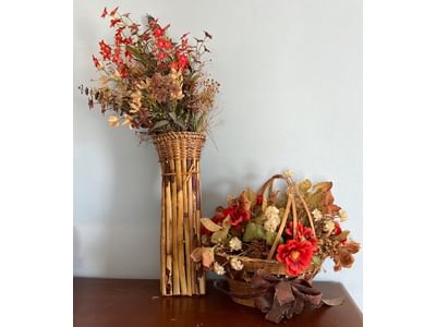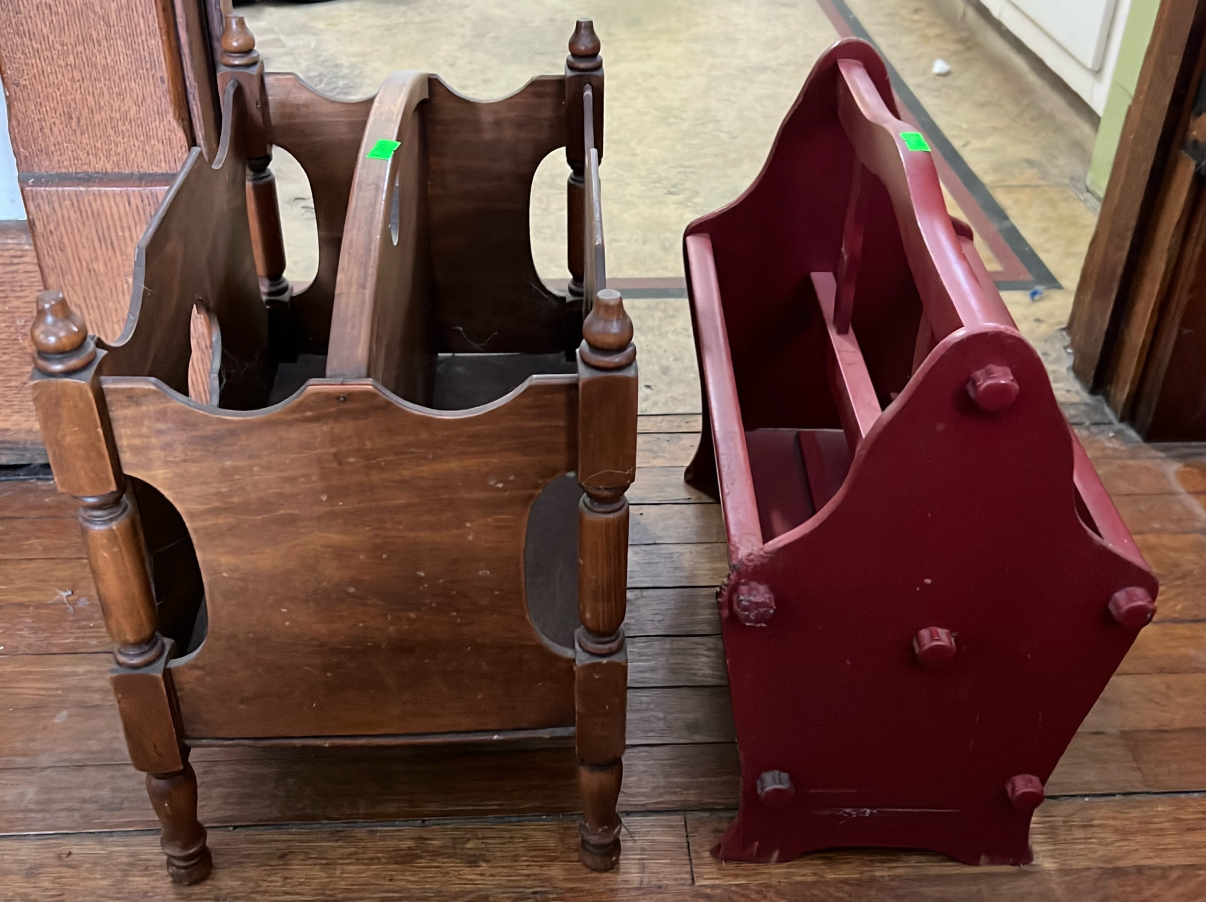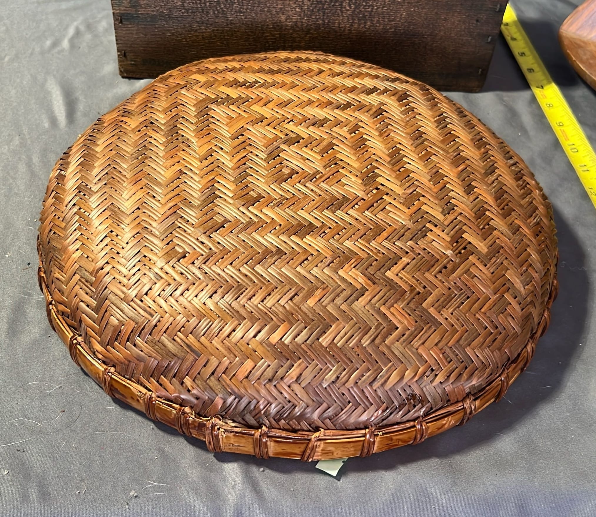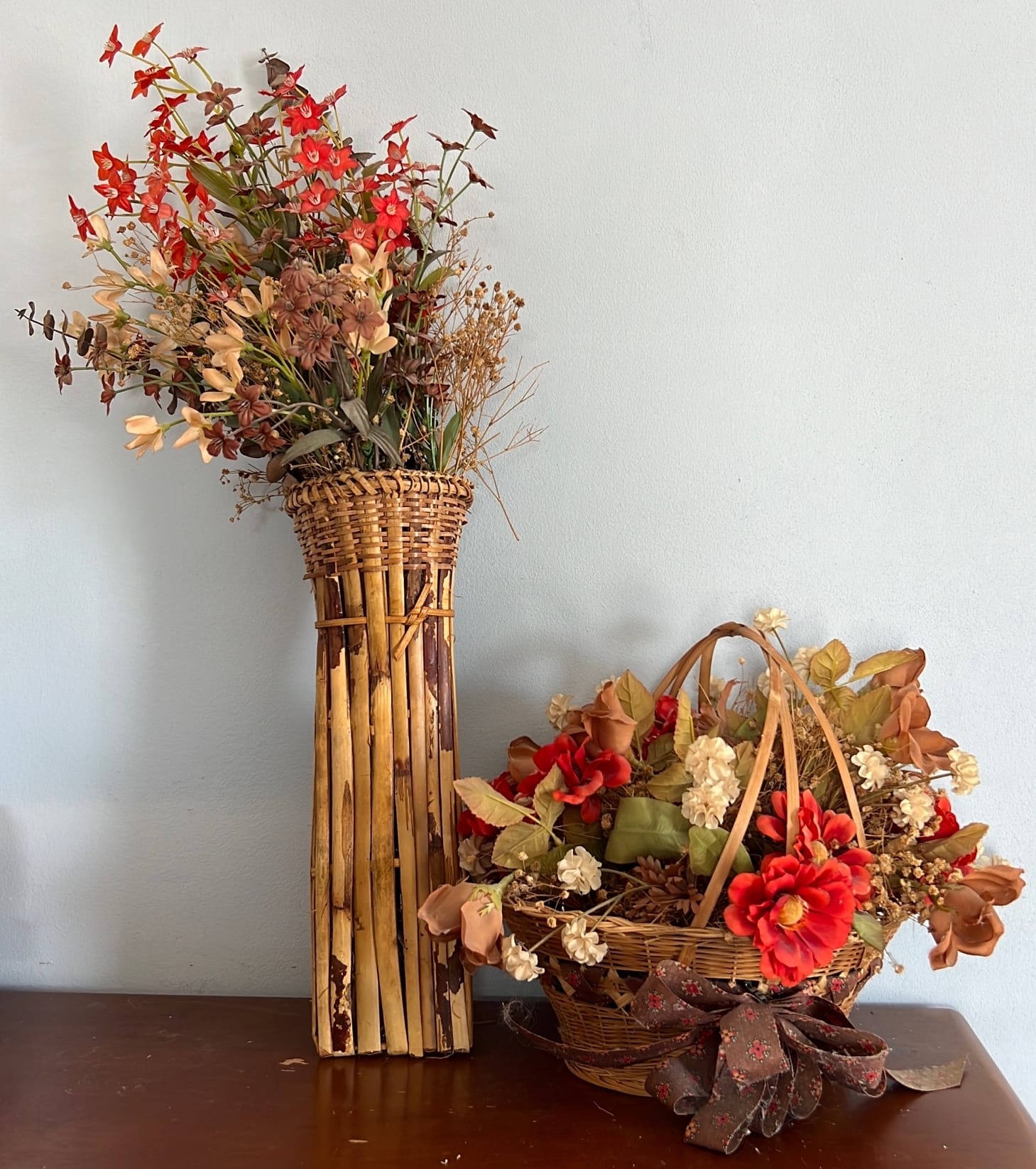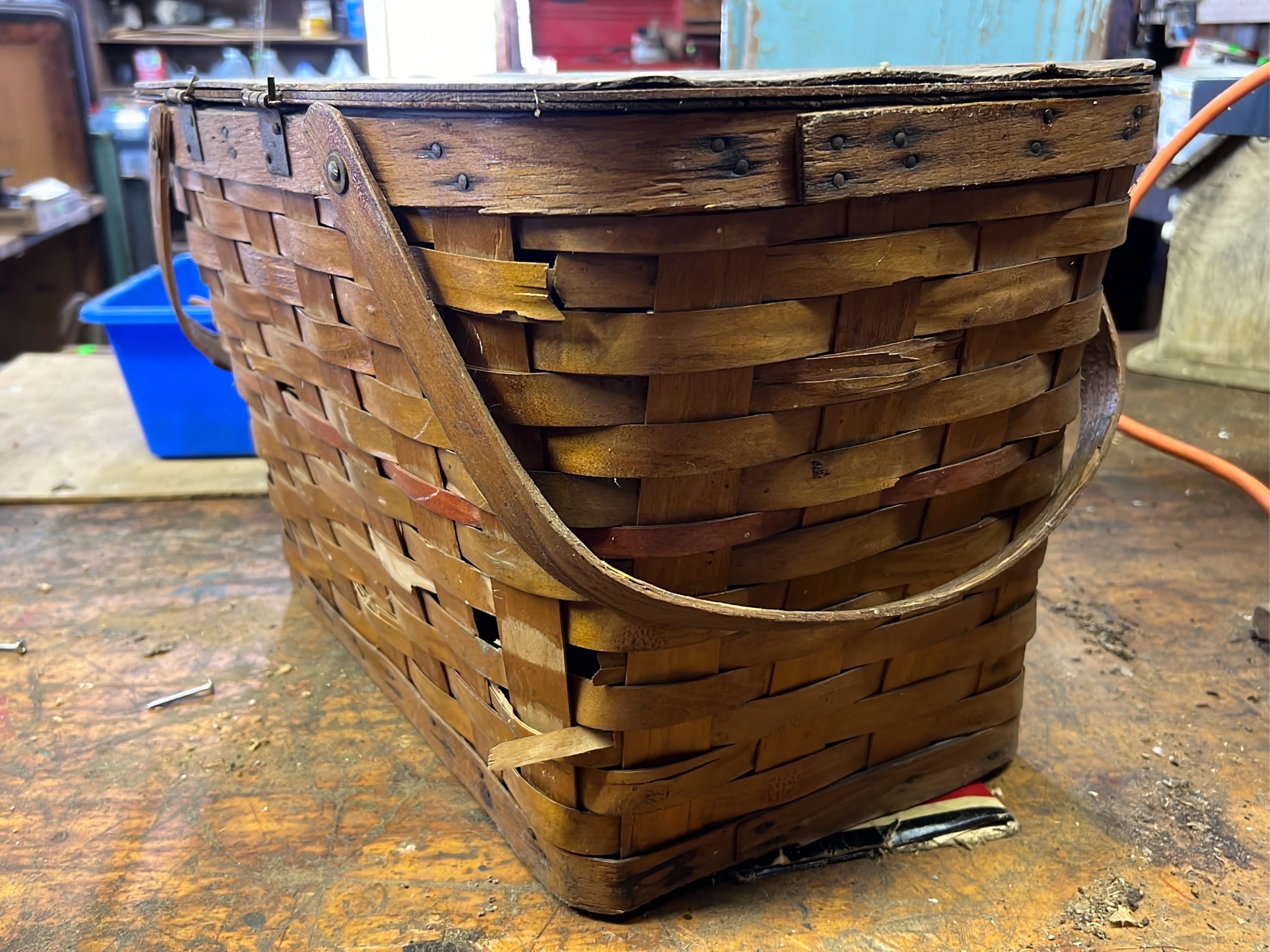1088a Two Woven Picnic Baskets 13.75”x8.75”x13.75”, 19”x12”x13.5”