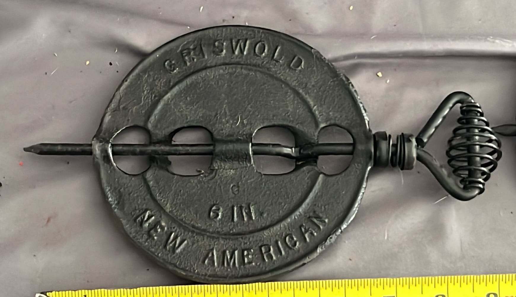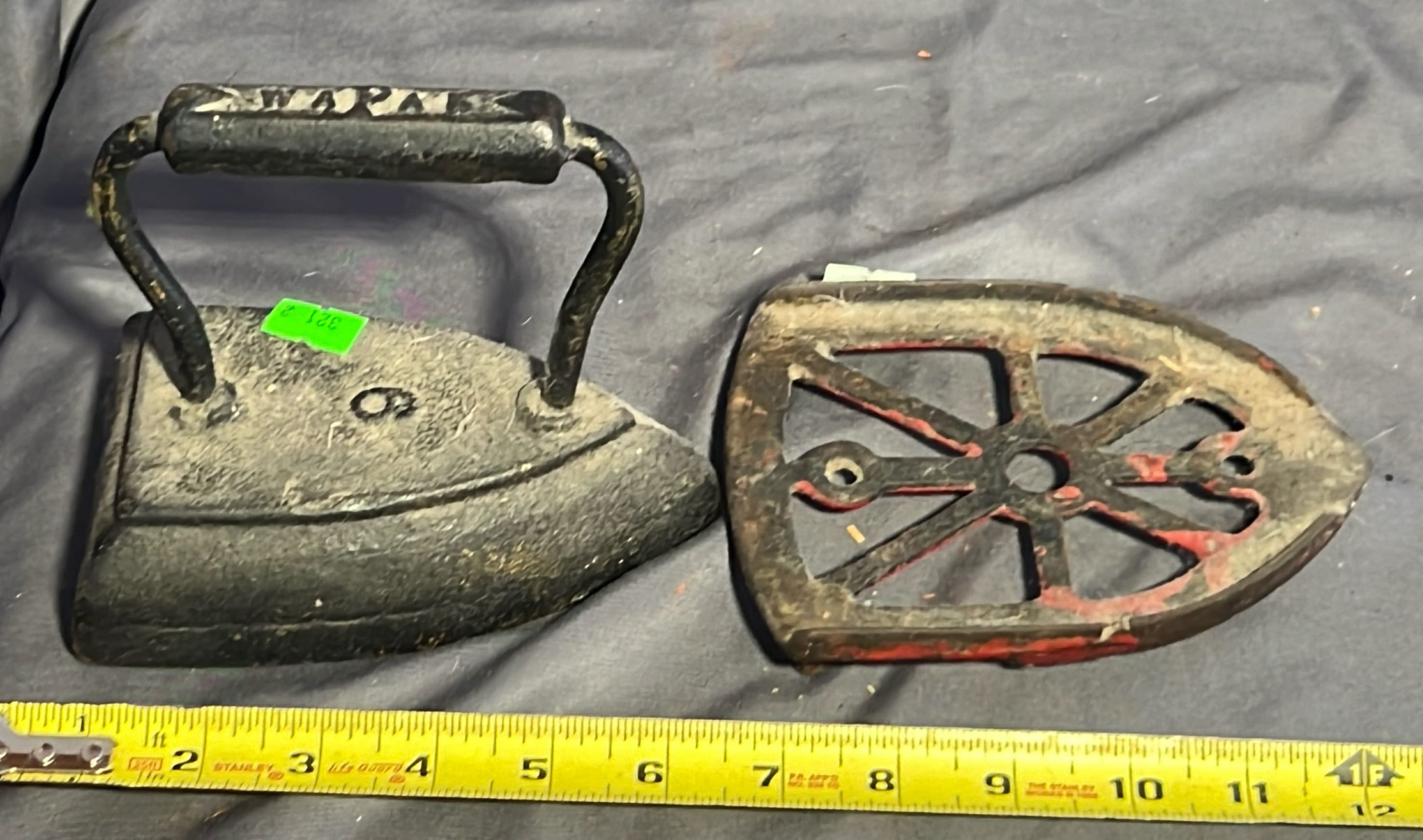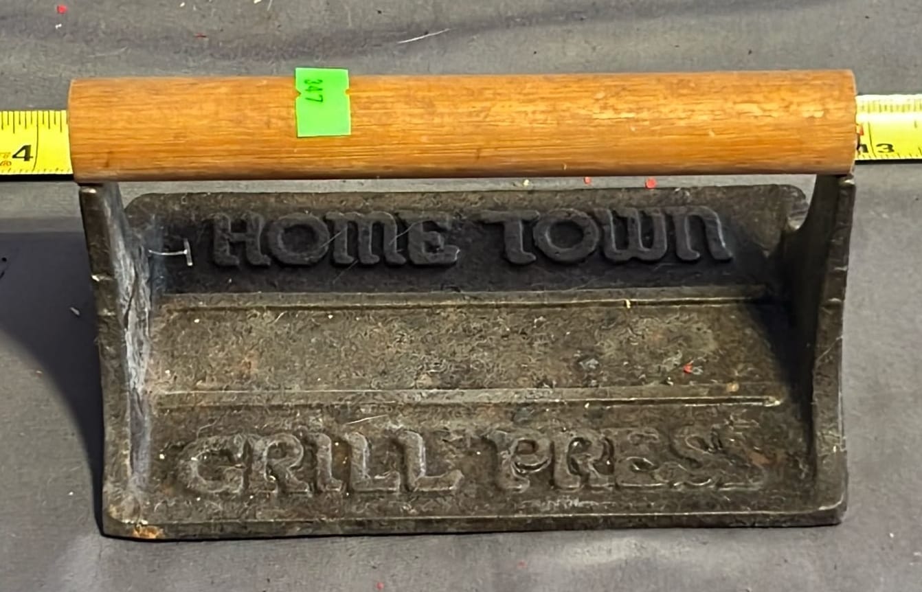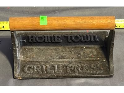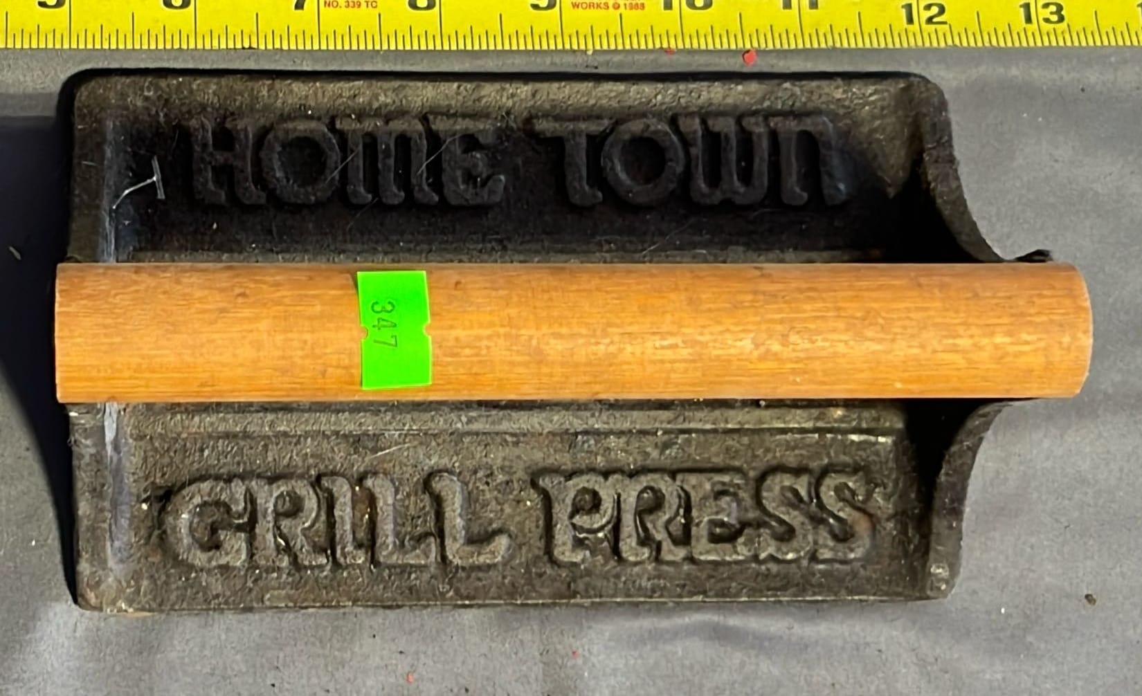 1119 Cast Iron Paper Log Roller 7.75”x13.5” • Cast Iron Grill Plate/Meat Press 8”x9.5”