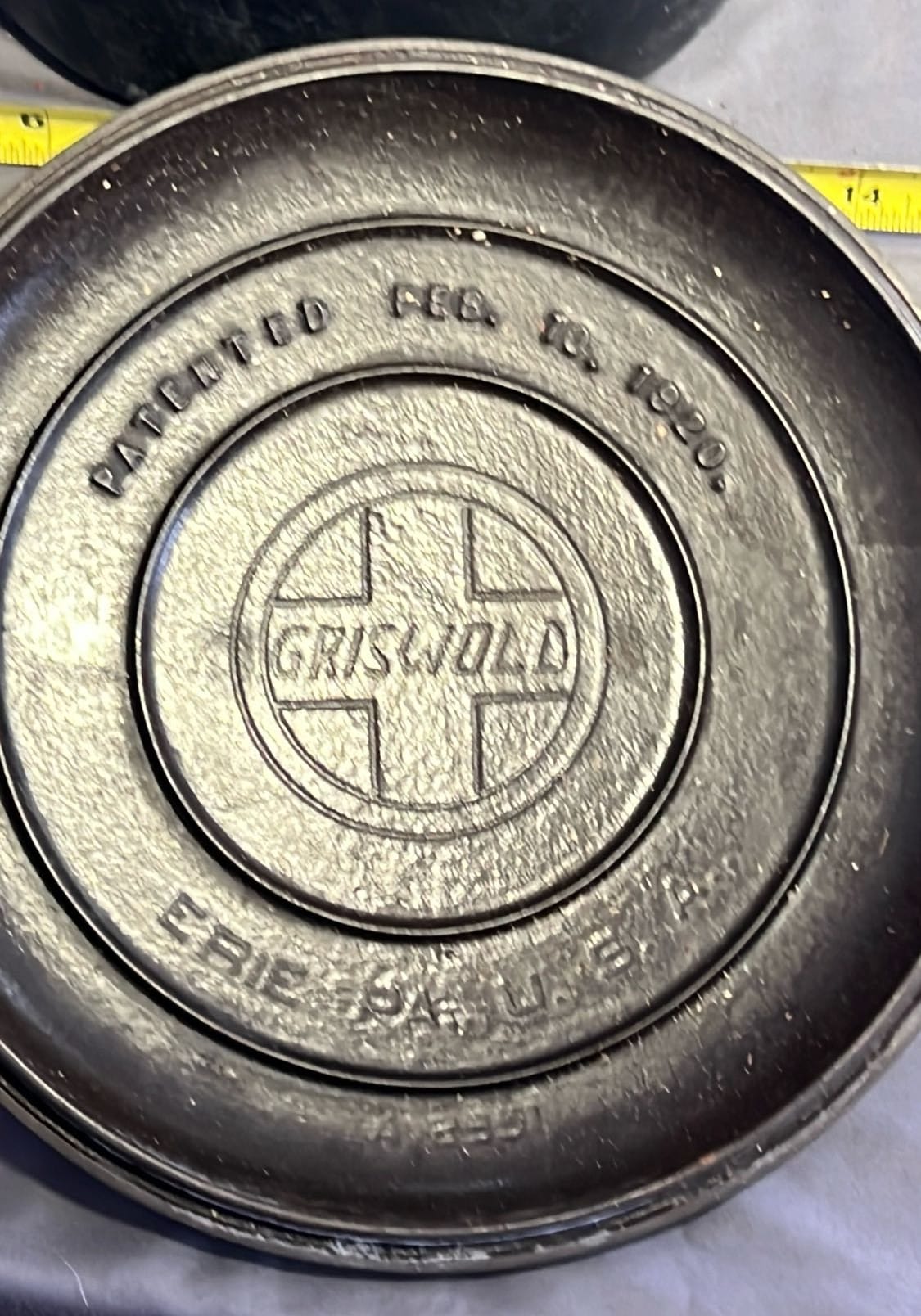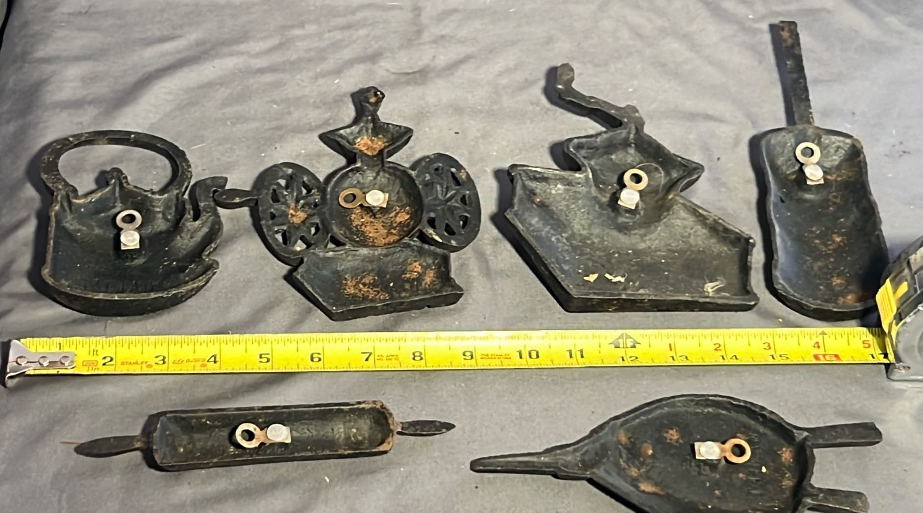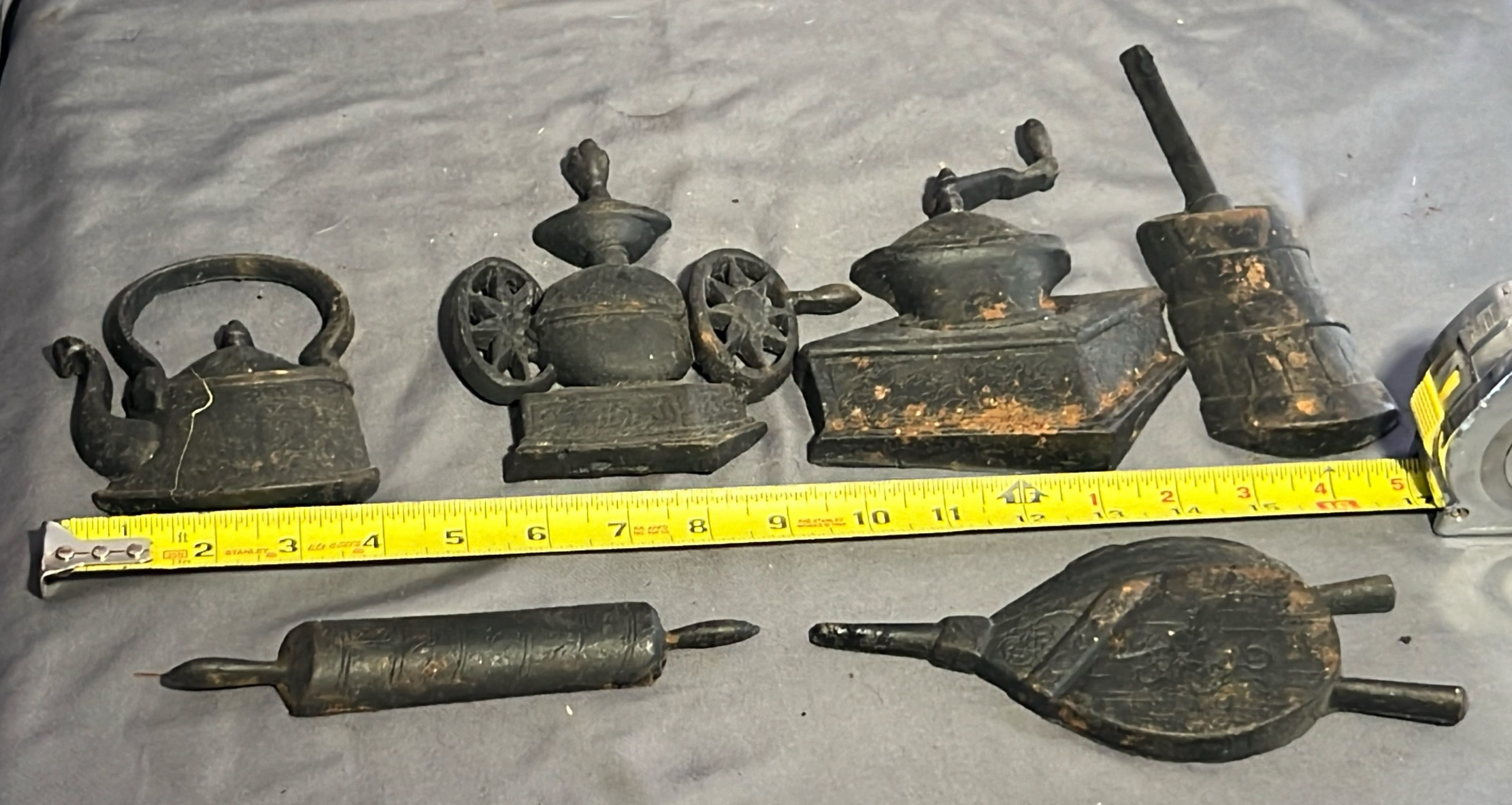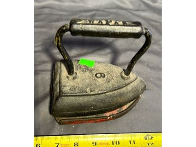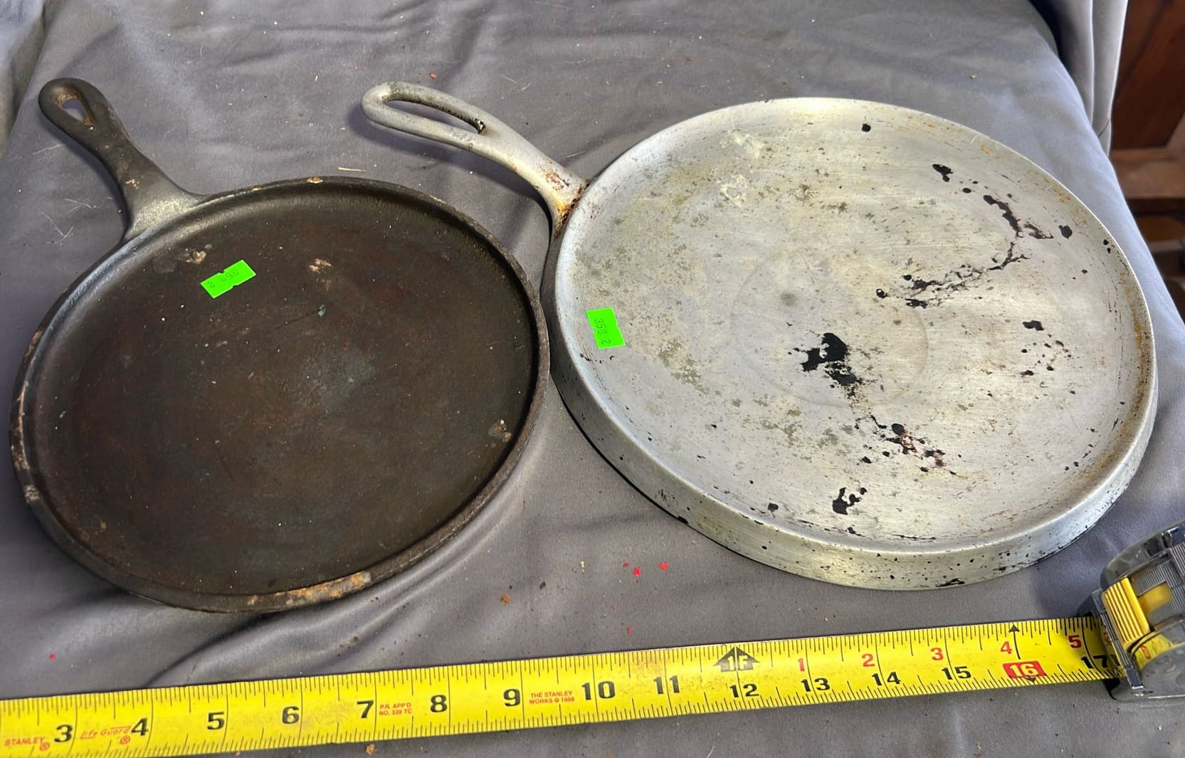 1119 Cast Iron Paper Log Roller 7.75”x13.5” • Cast Iron Grill Plate/Meat Press 8”x9.5”