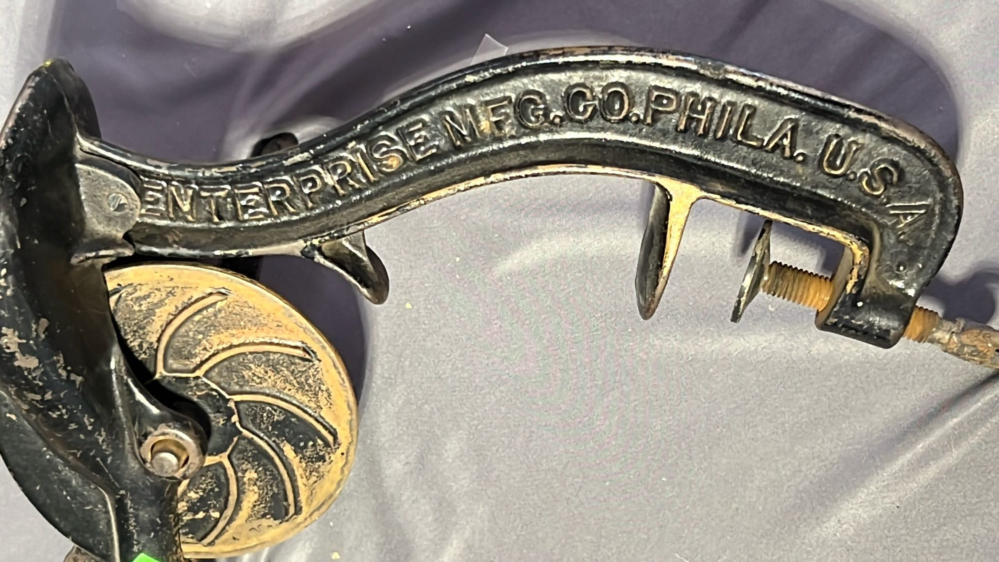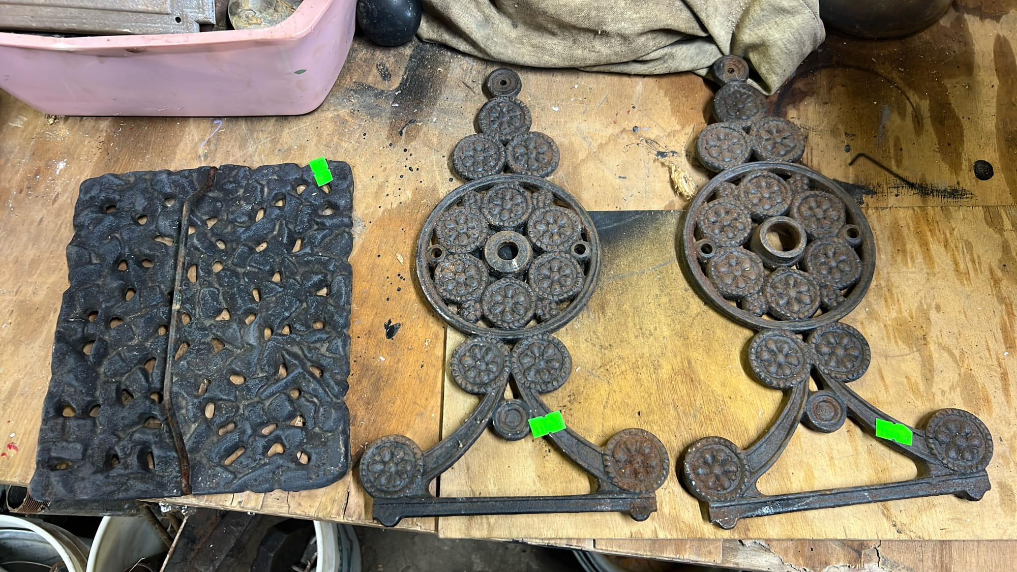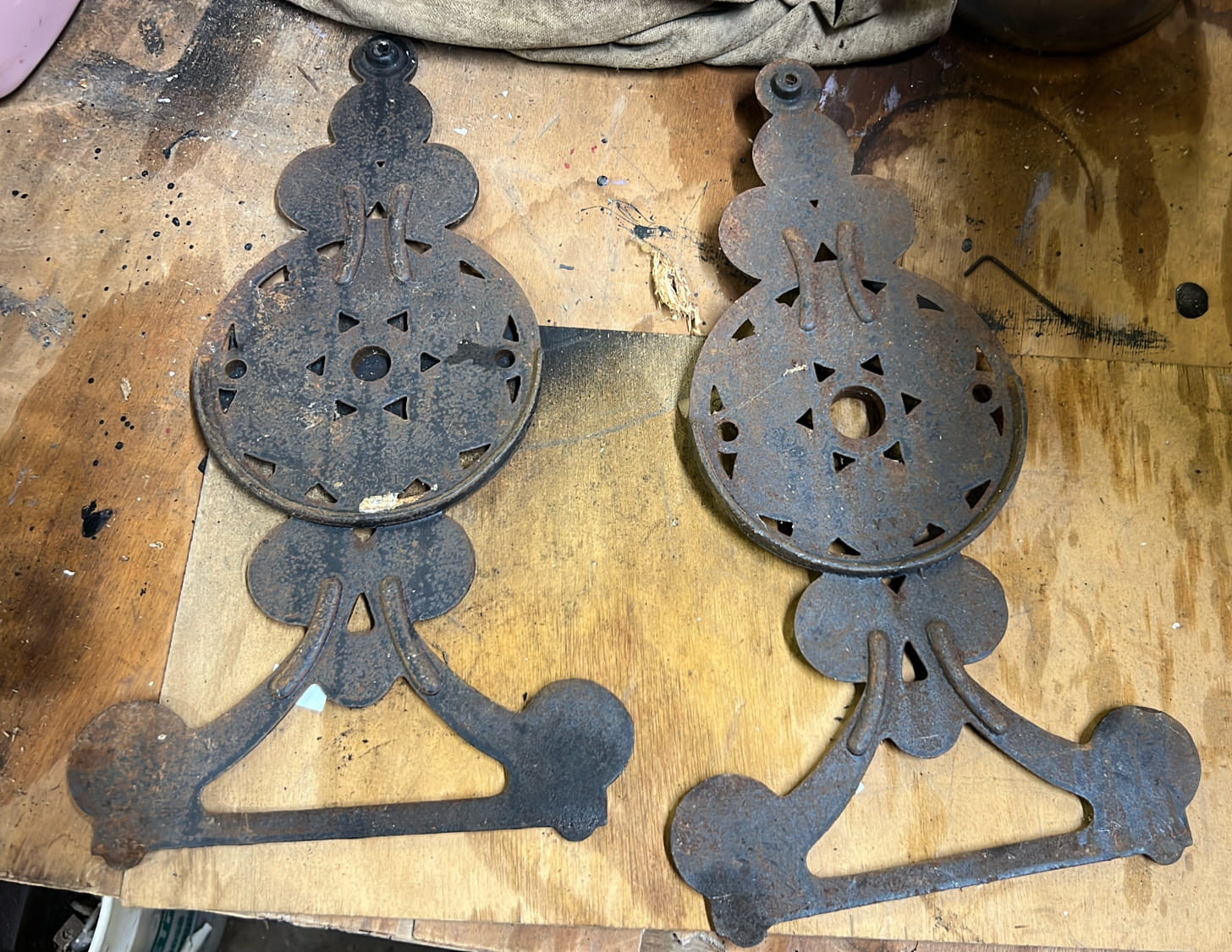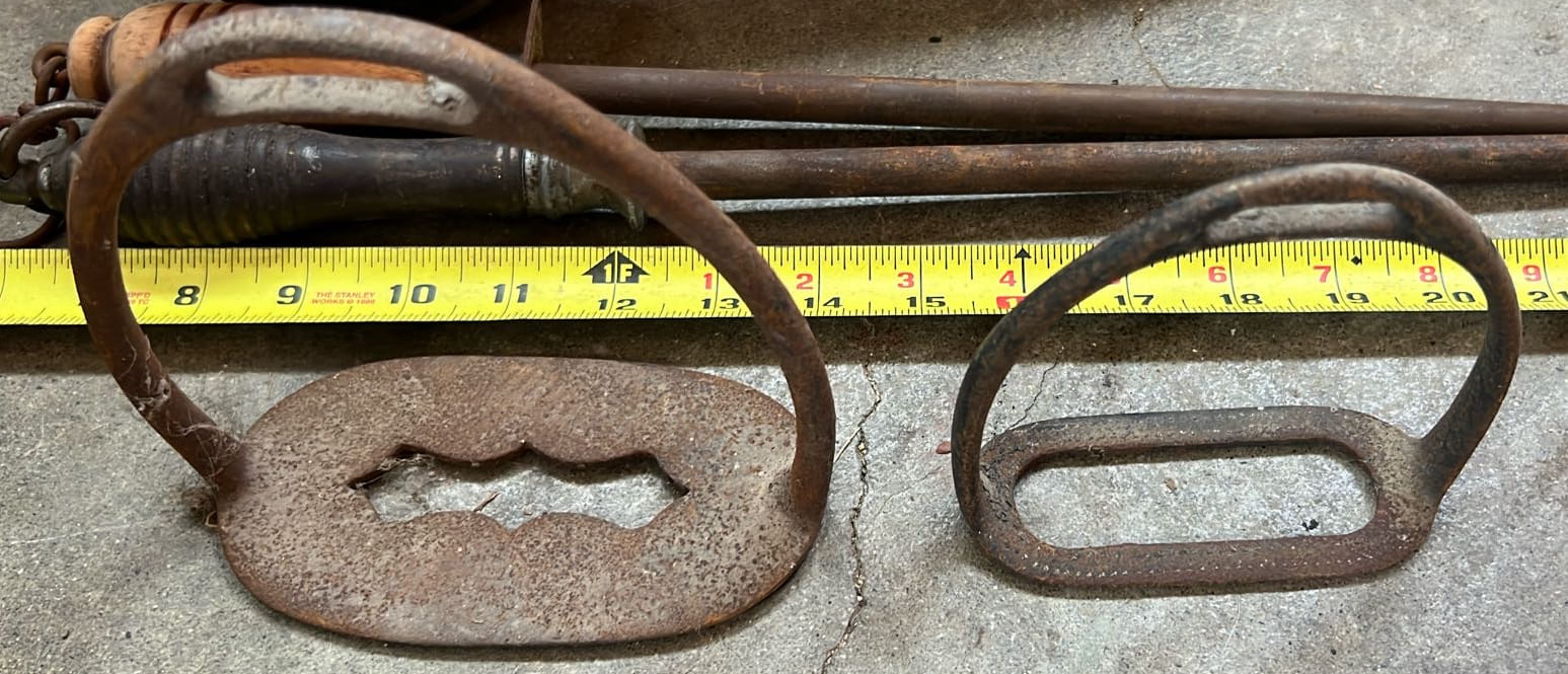 1119 Cast Iron Paper Log Roller 7.75”x13.5” • Cast Iron Grill Plate/Meat Press 8”x9.5”