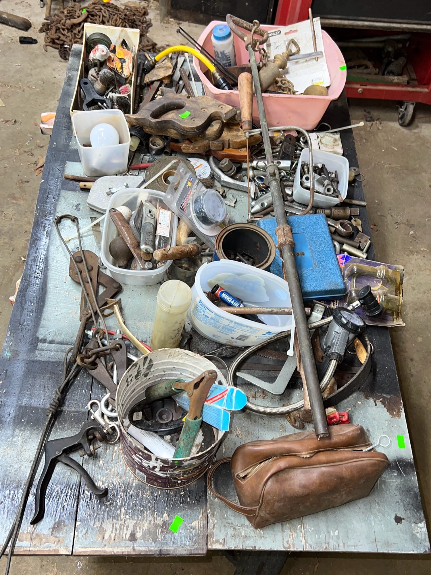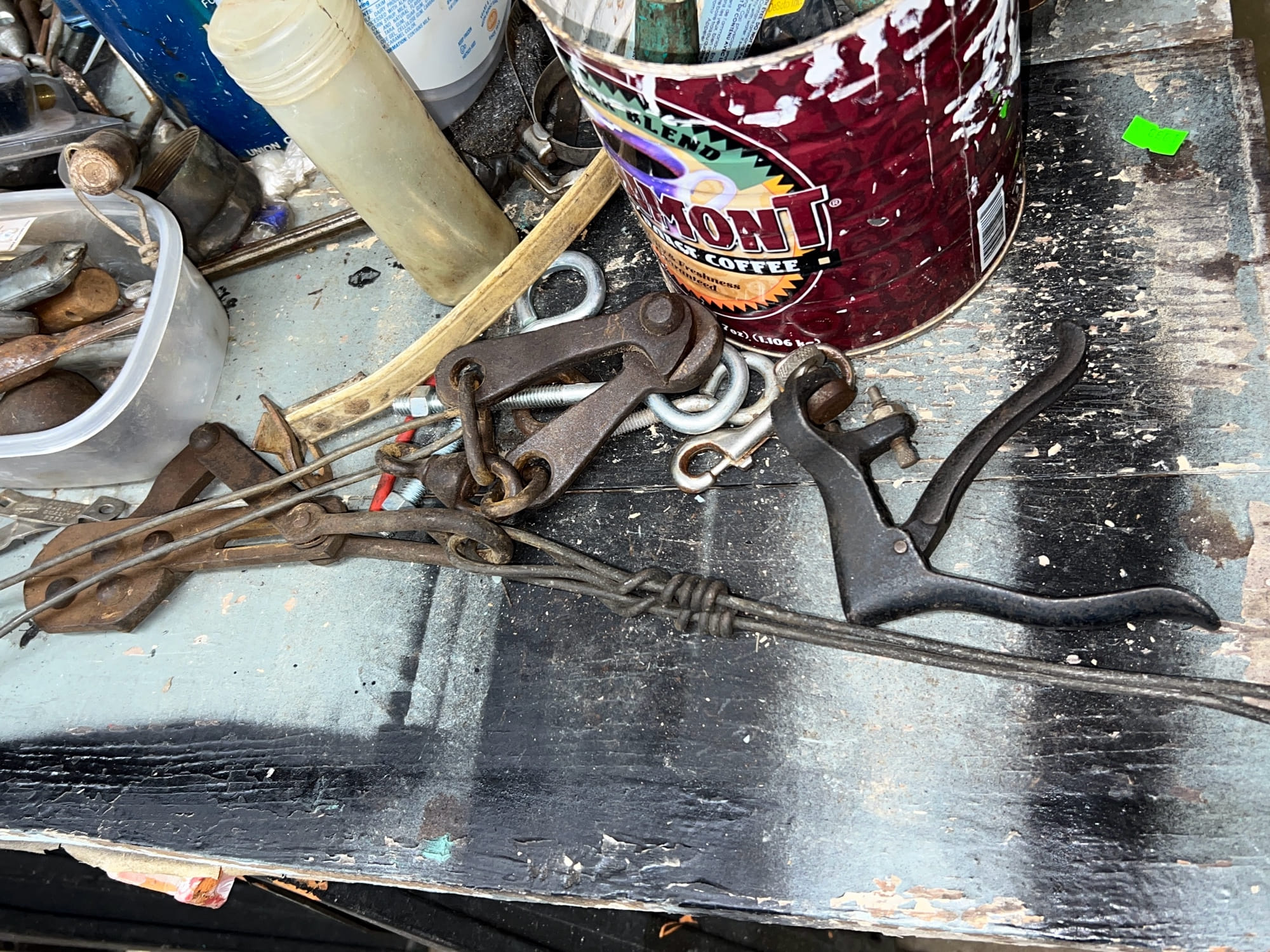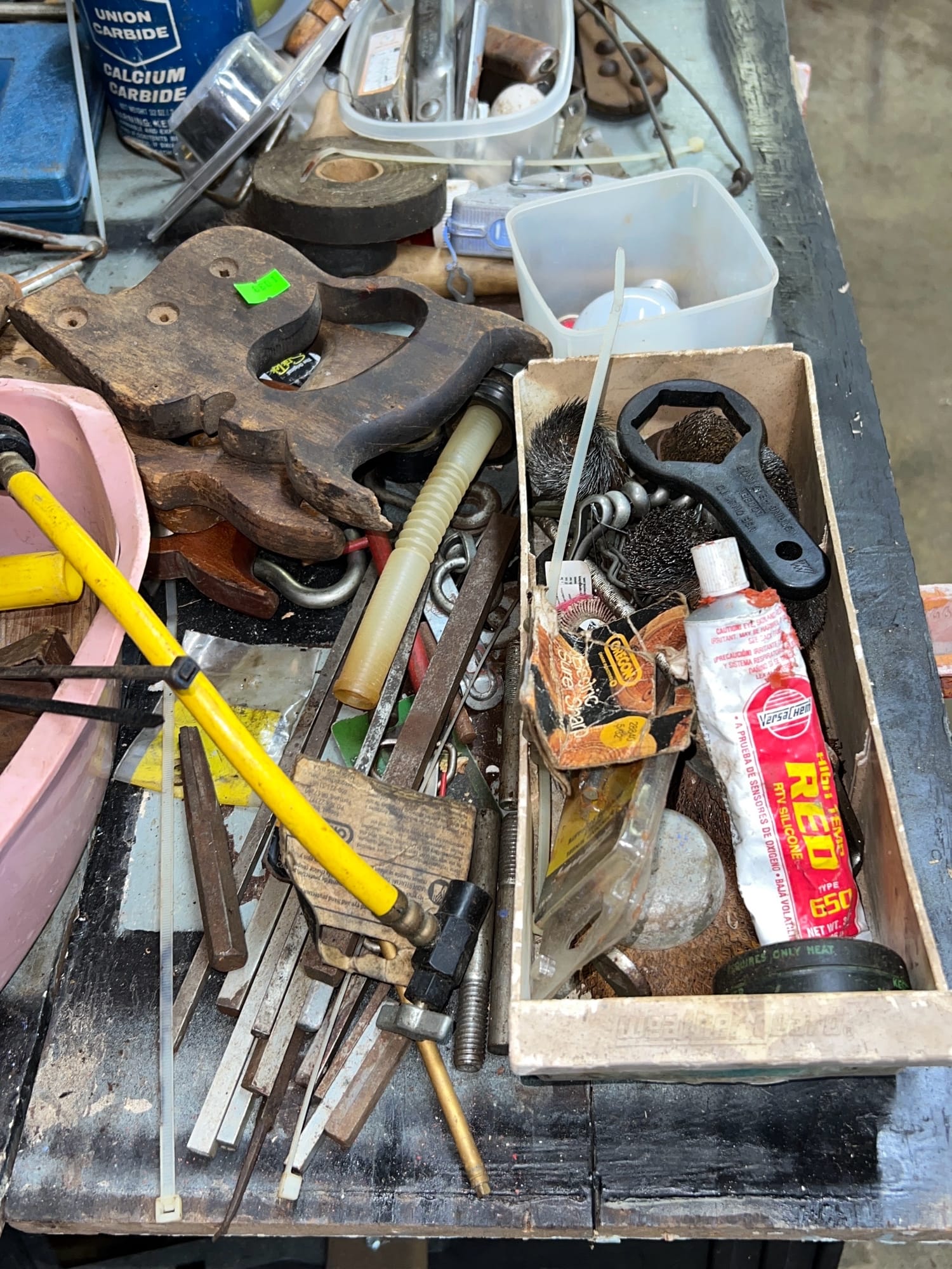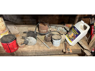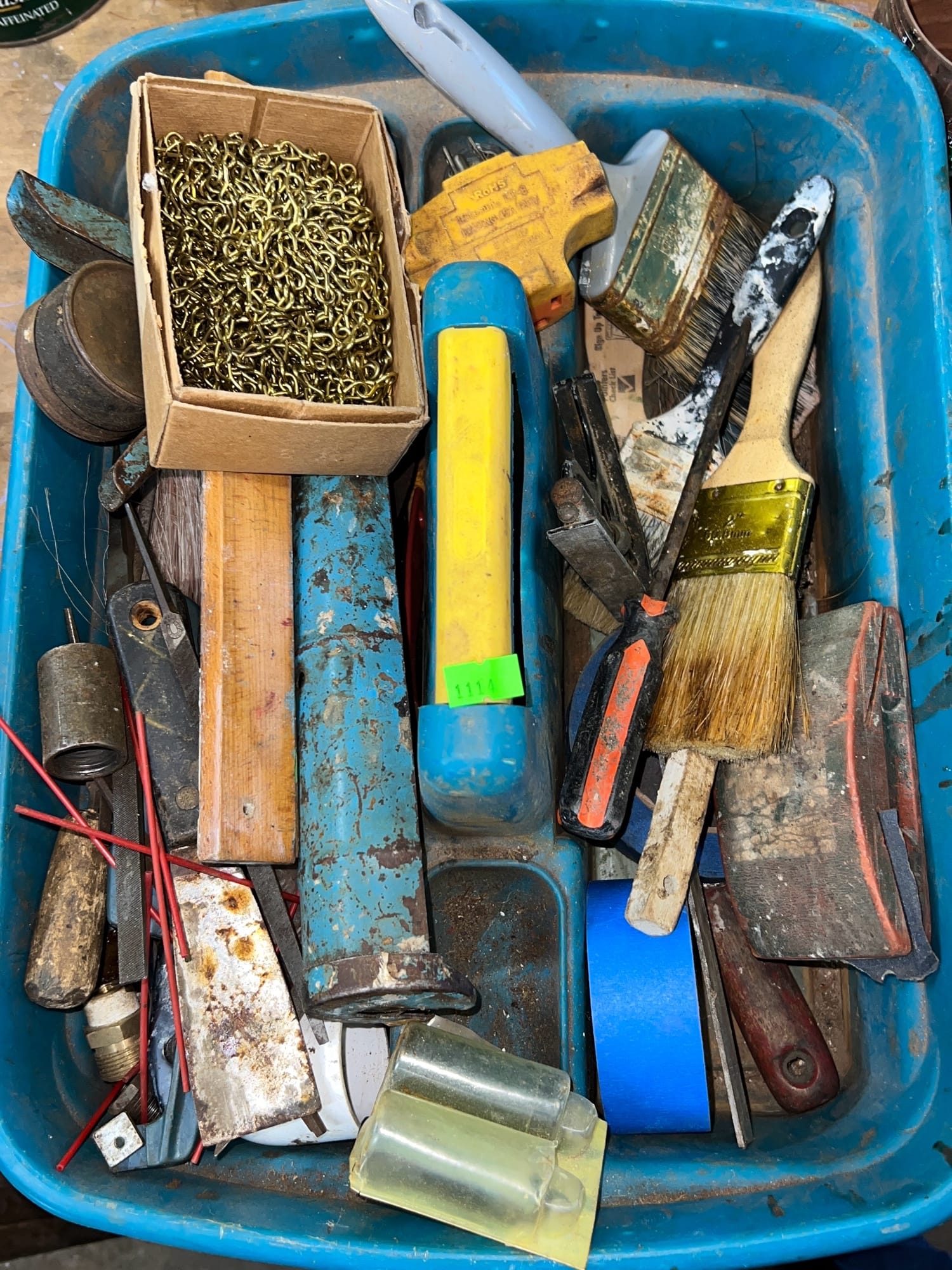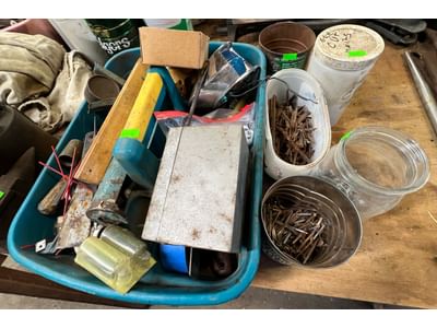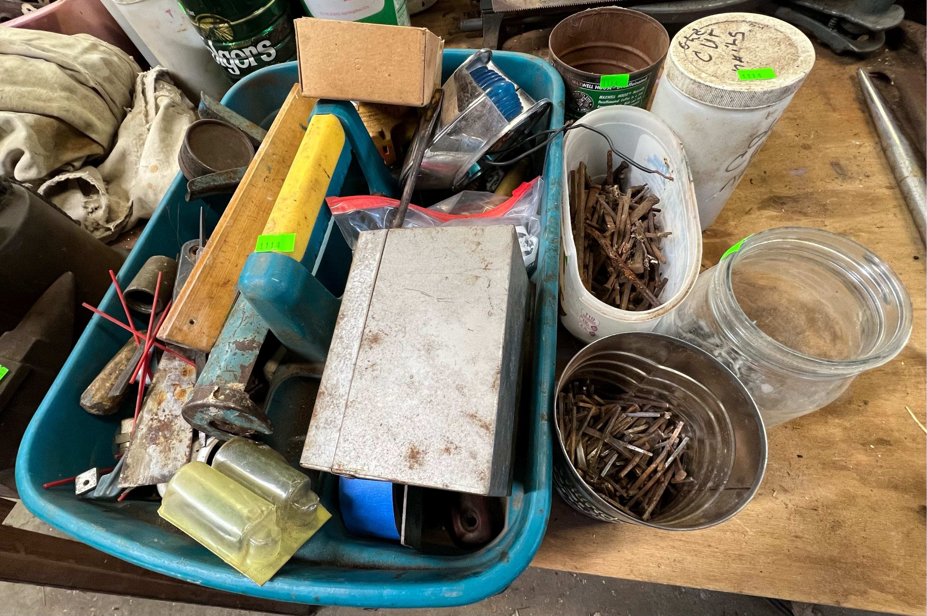 1114 Horseshoe Nail assortment • Chain • Files • Caulk Gun • Tote 17.5” • misc